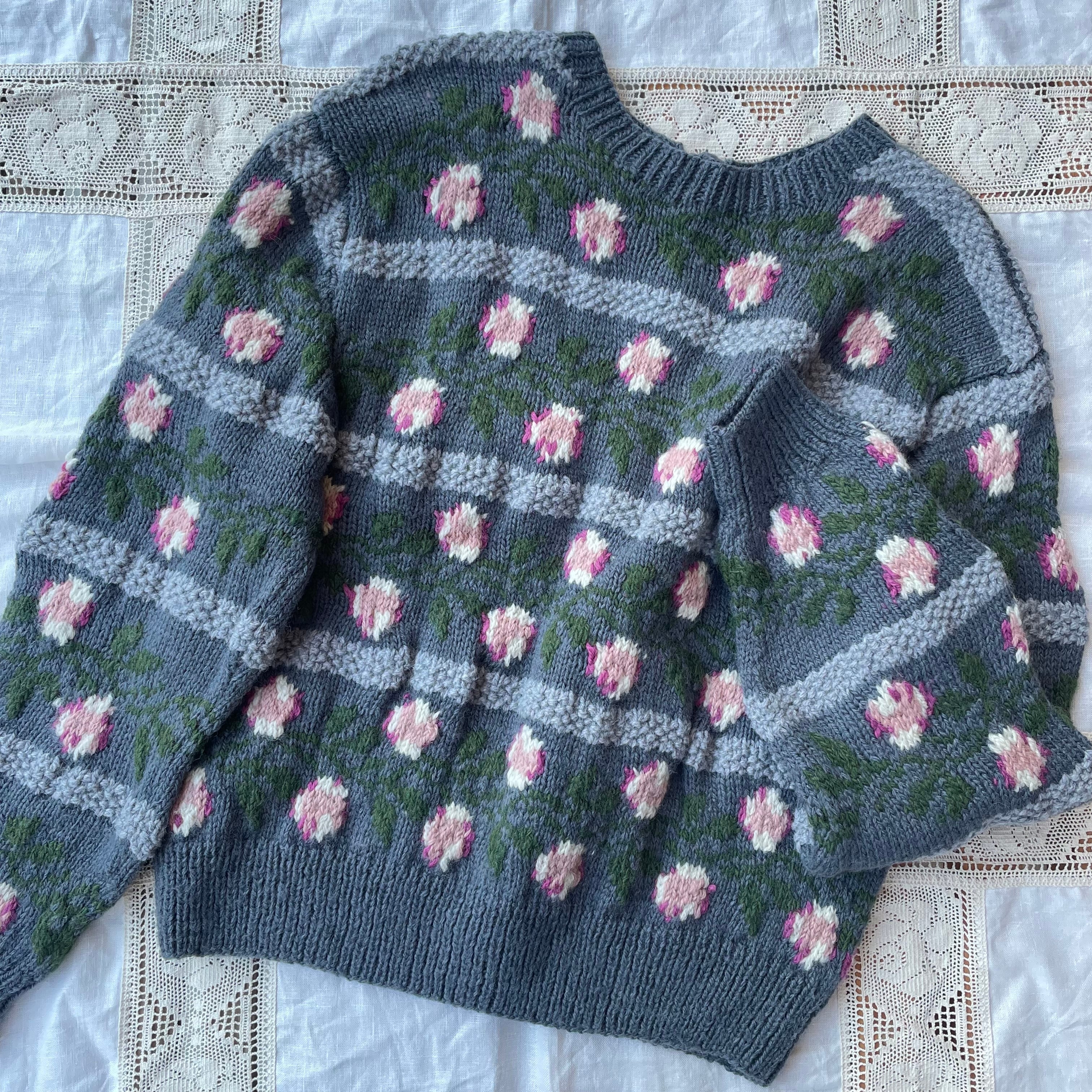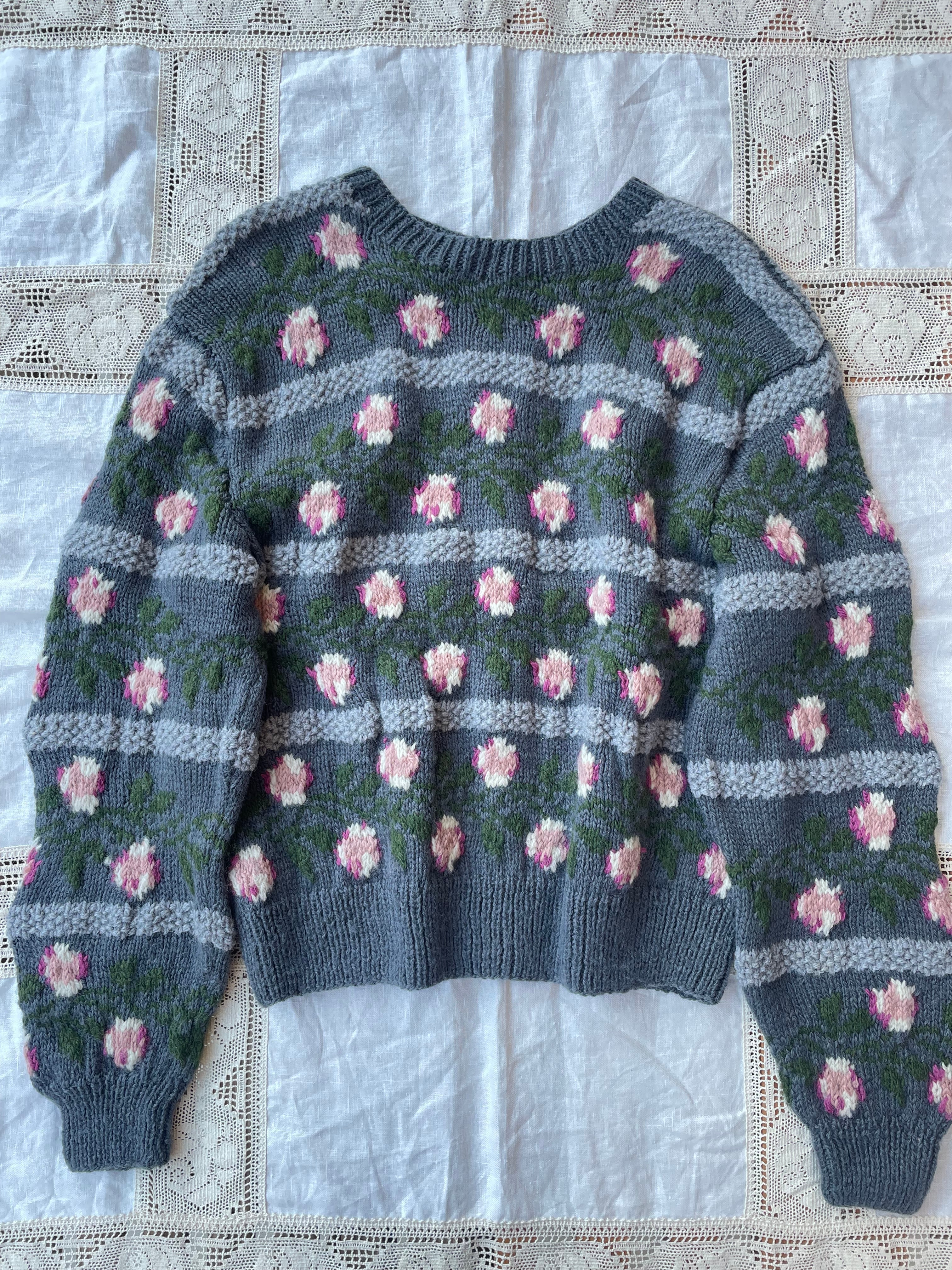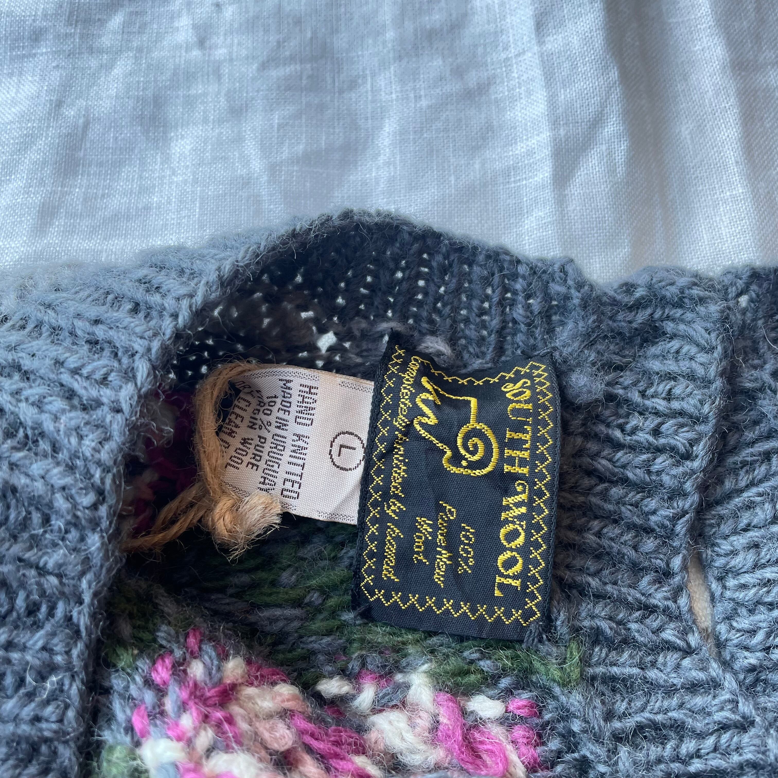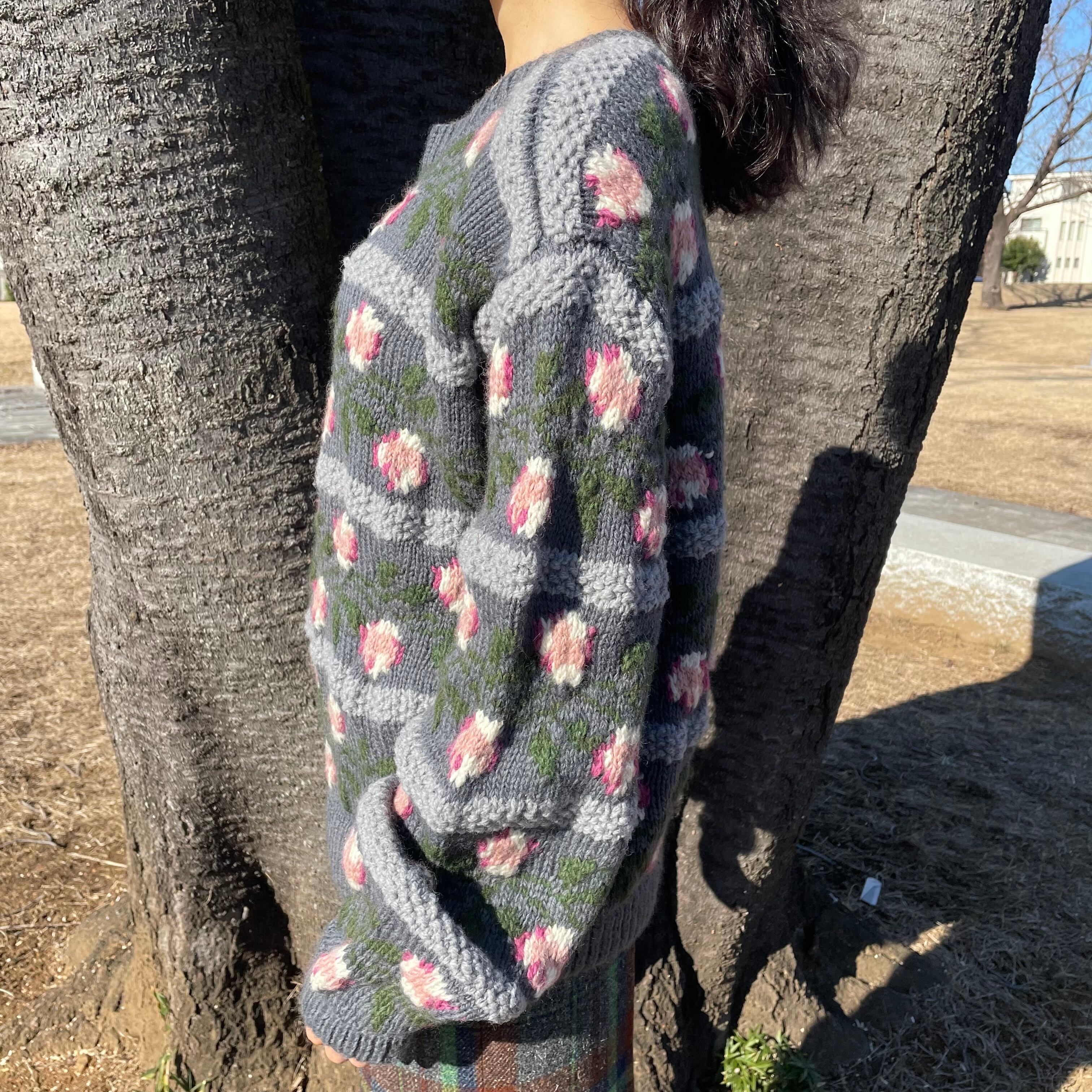 ニットセーター 古着 ヴィンテージ 花柄 ウール グレー ウルグアイ製 KP6