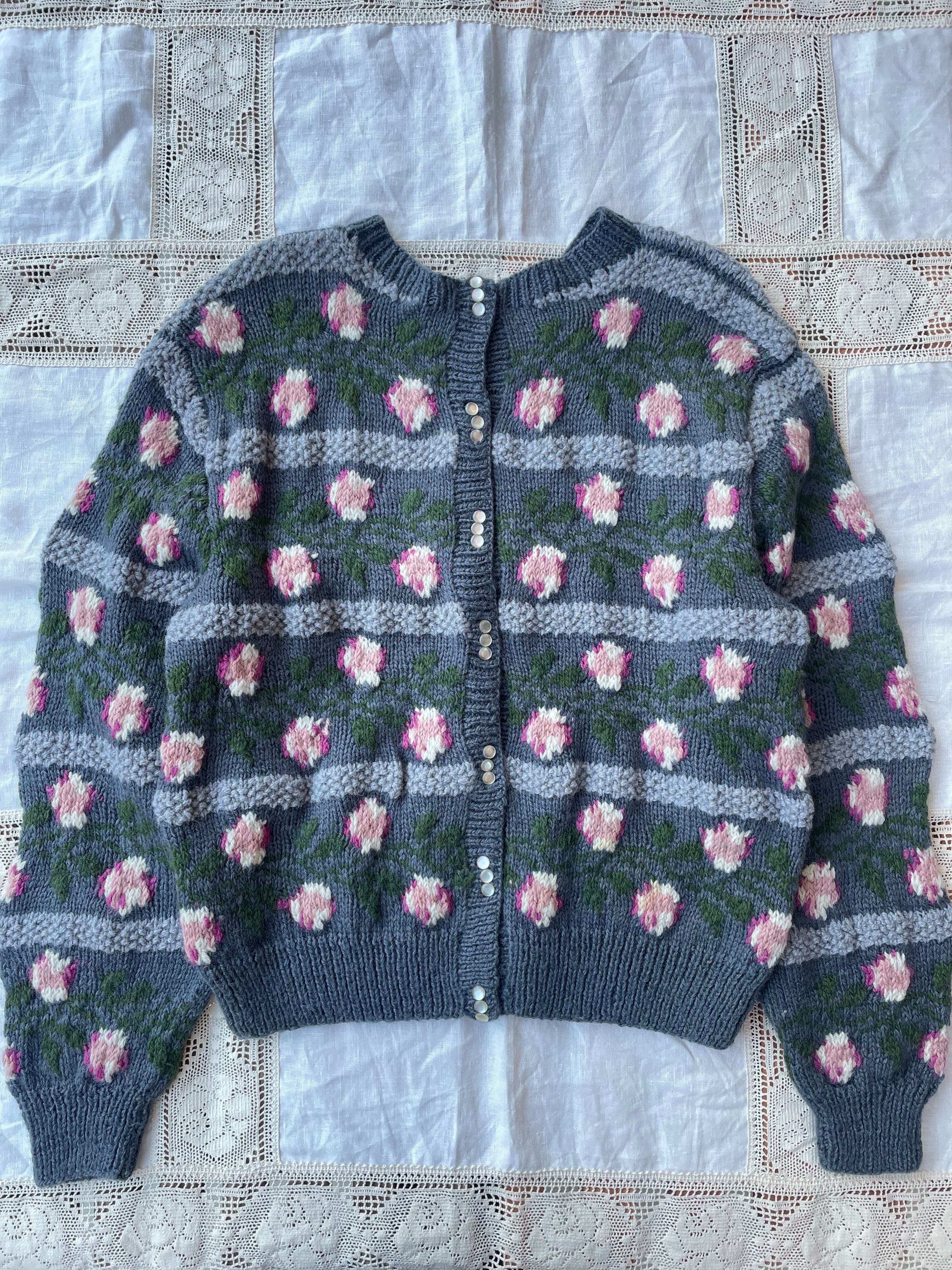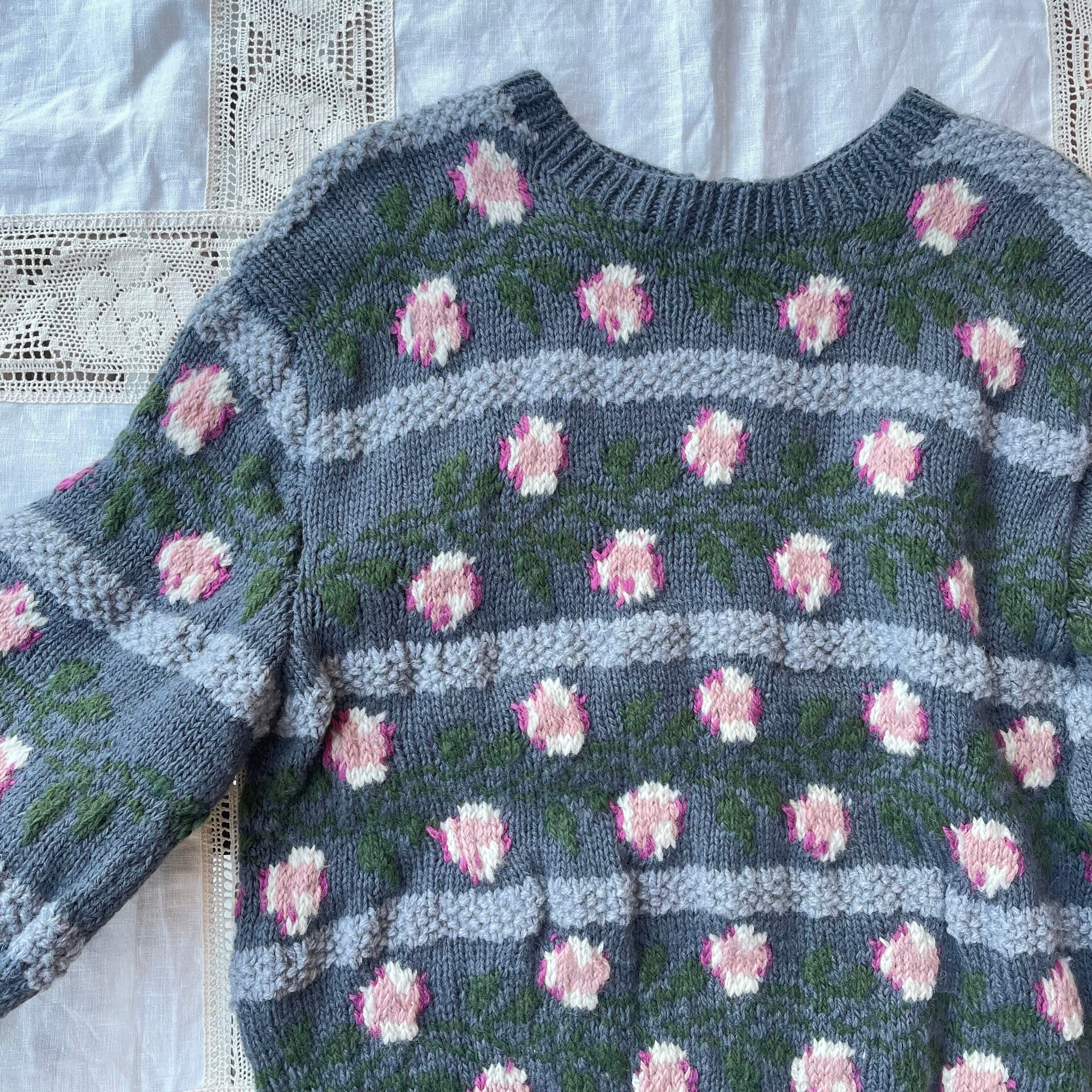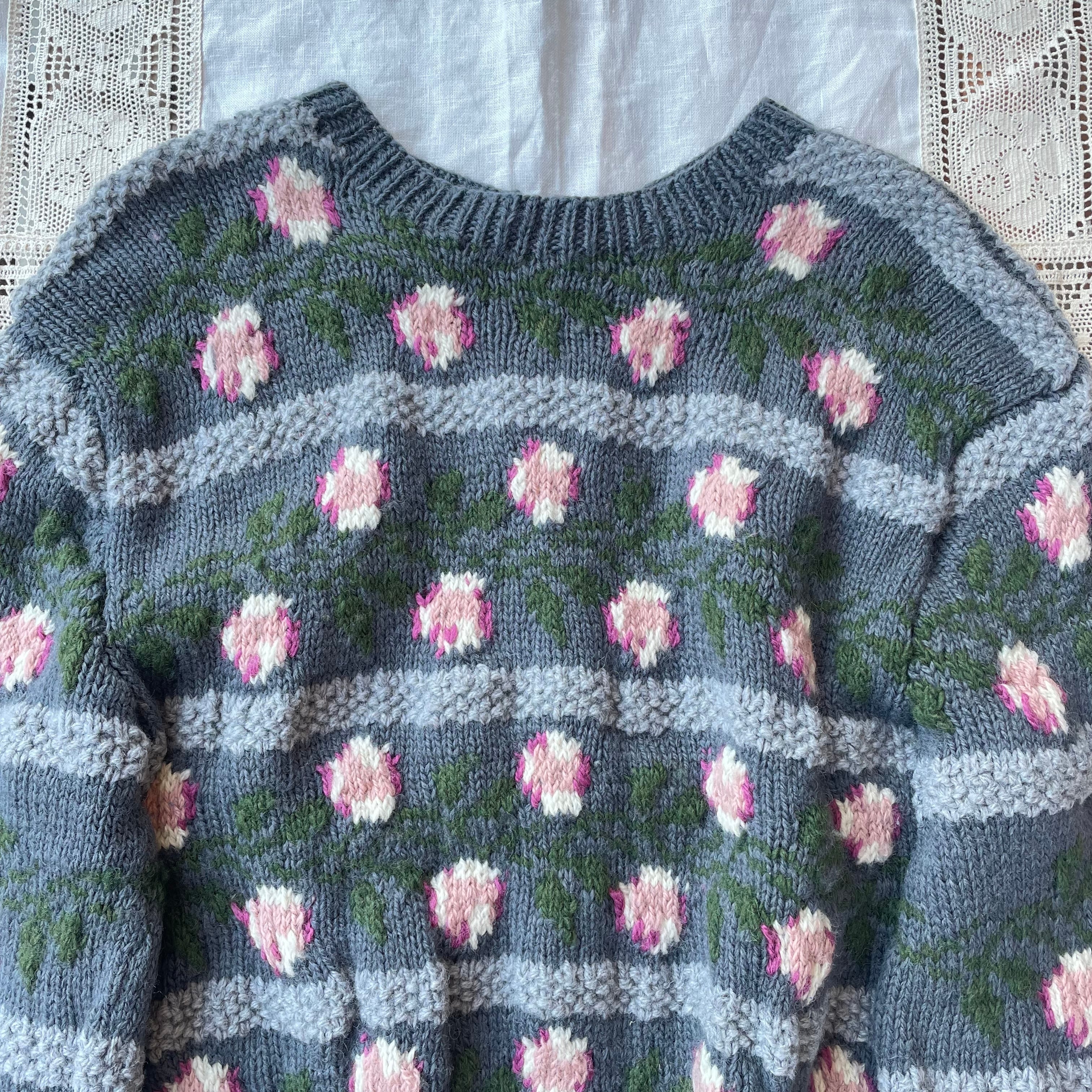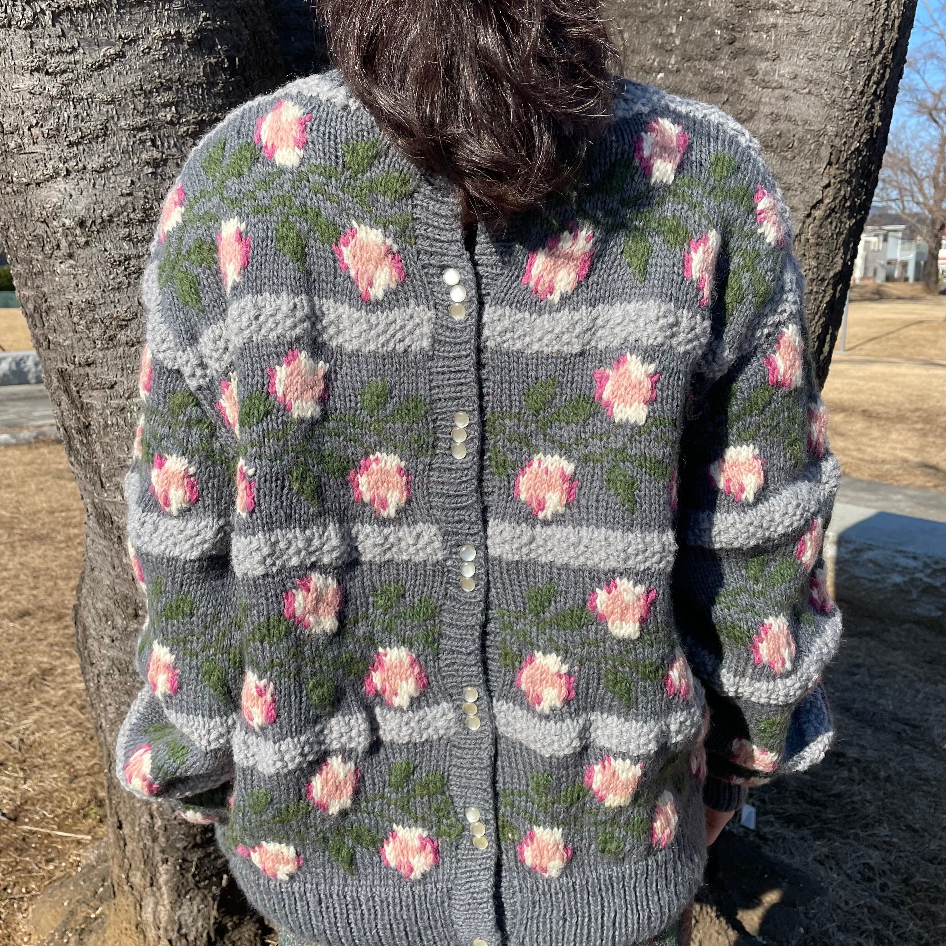 ニットセーター 古着 ヴィンテージ 花柄 ウール グレー ウルグアイ製 KP6