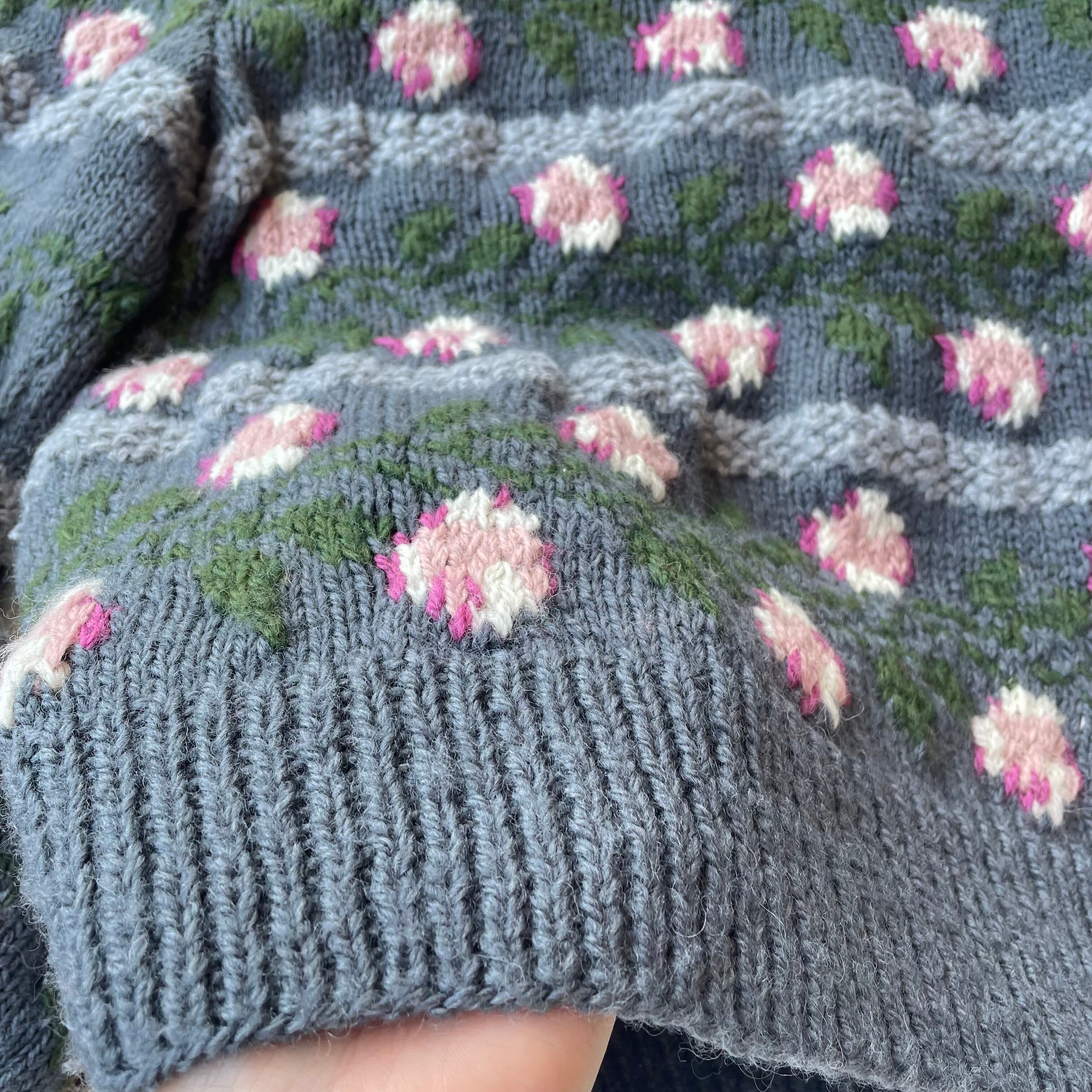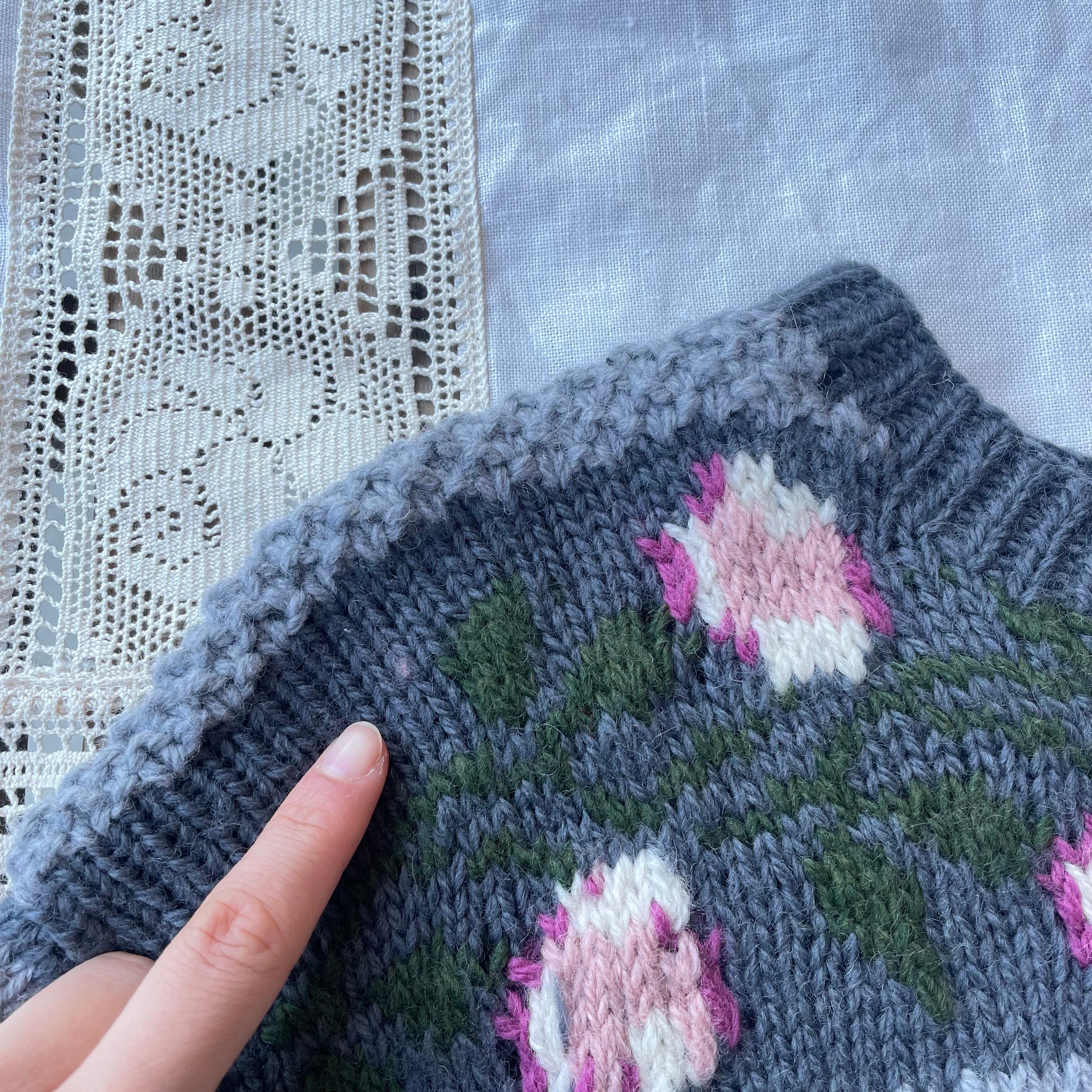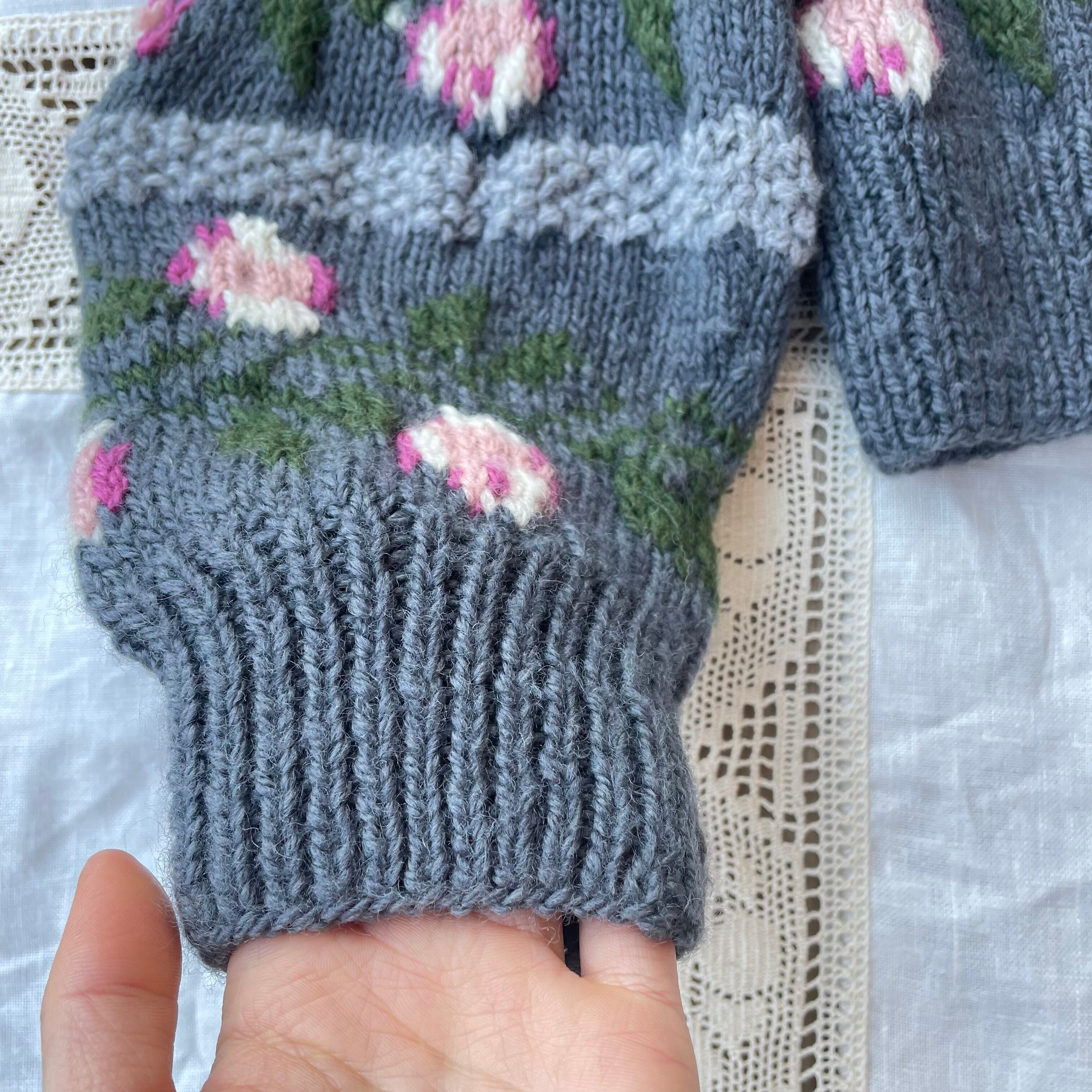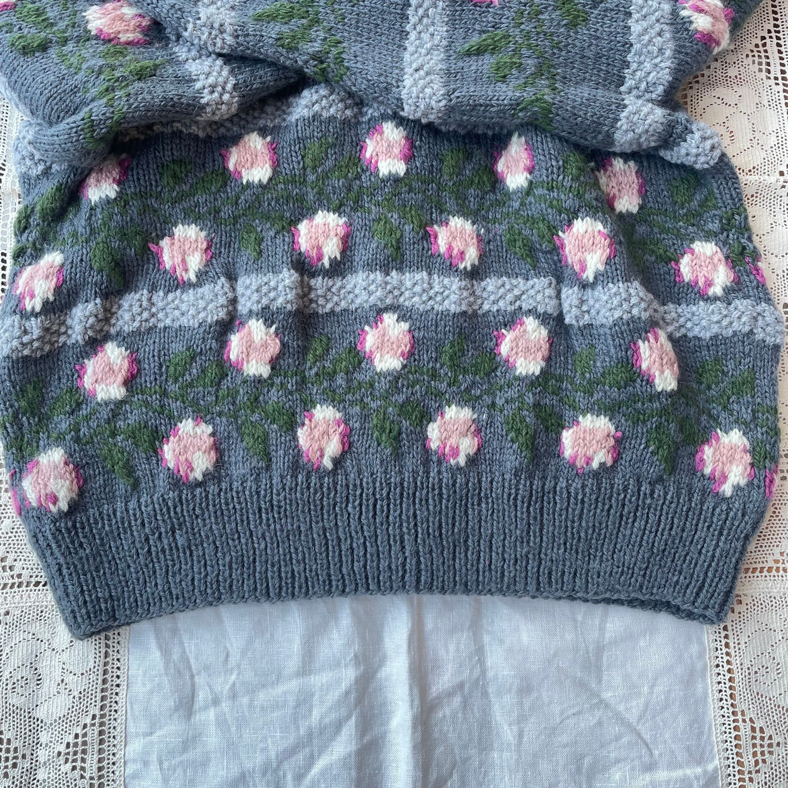 ニットセーター 古着 ヴィンテージ 花柄 ウール グレー ウルグアイ製 KP6