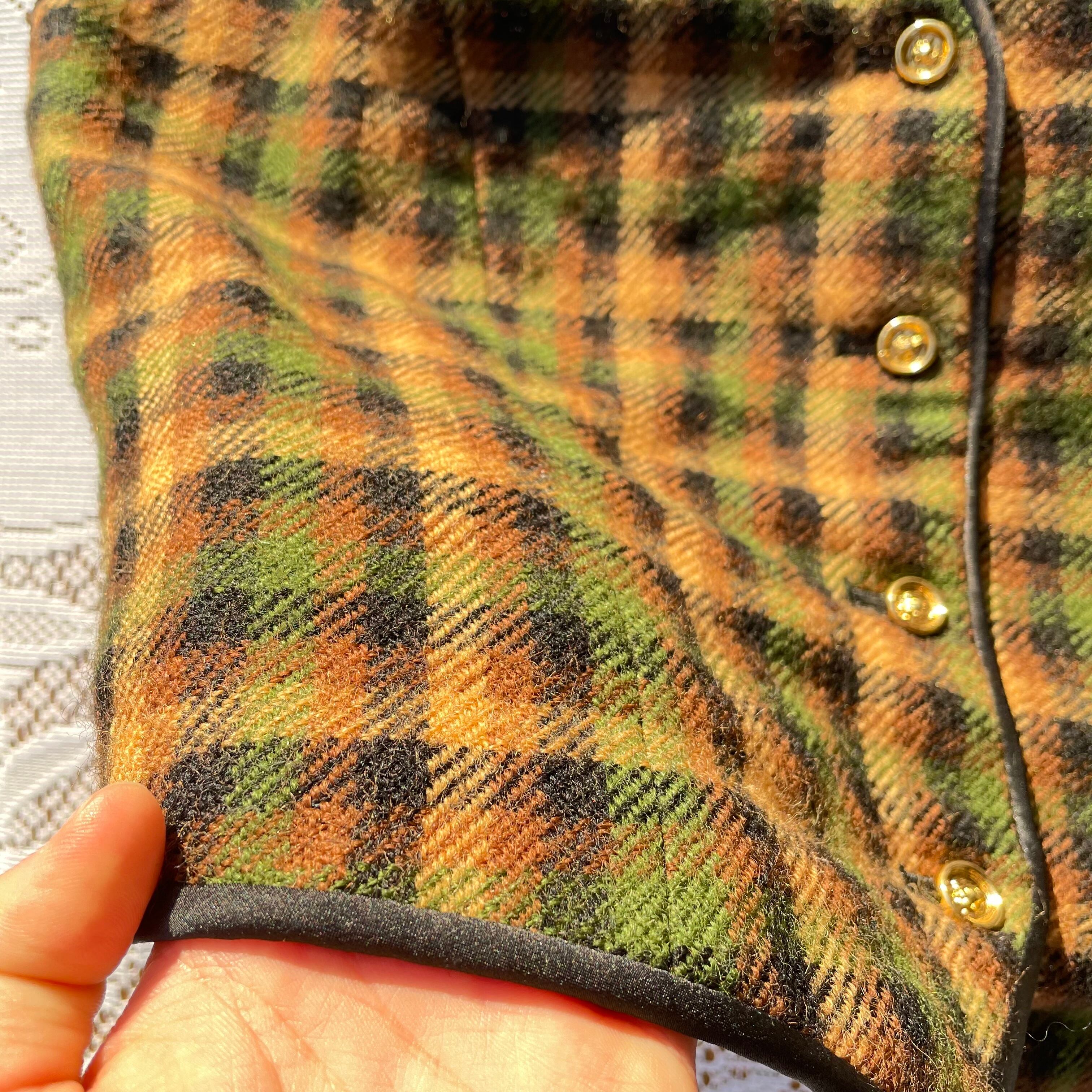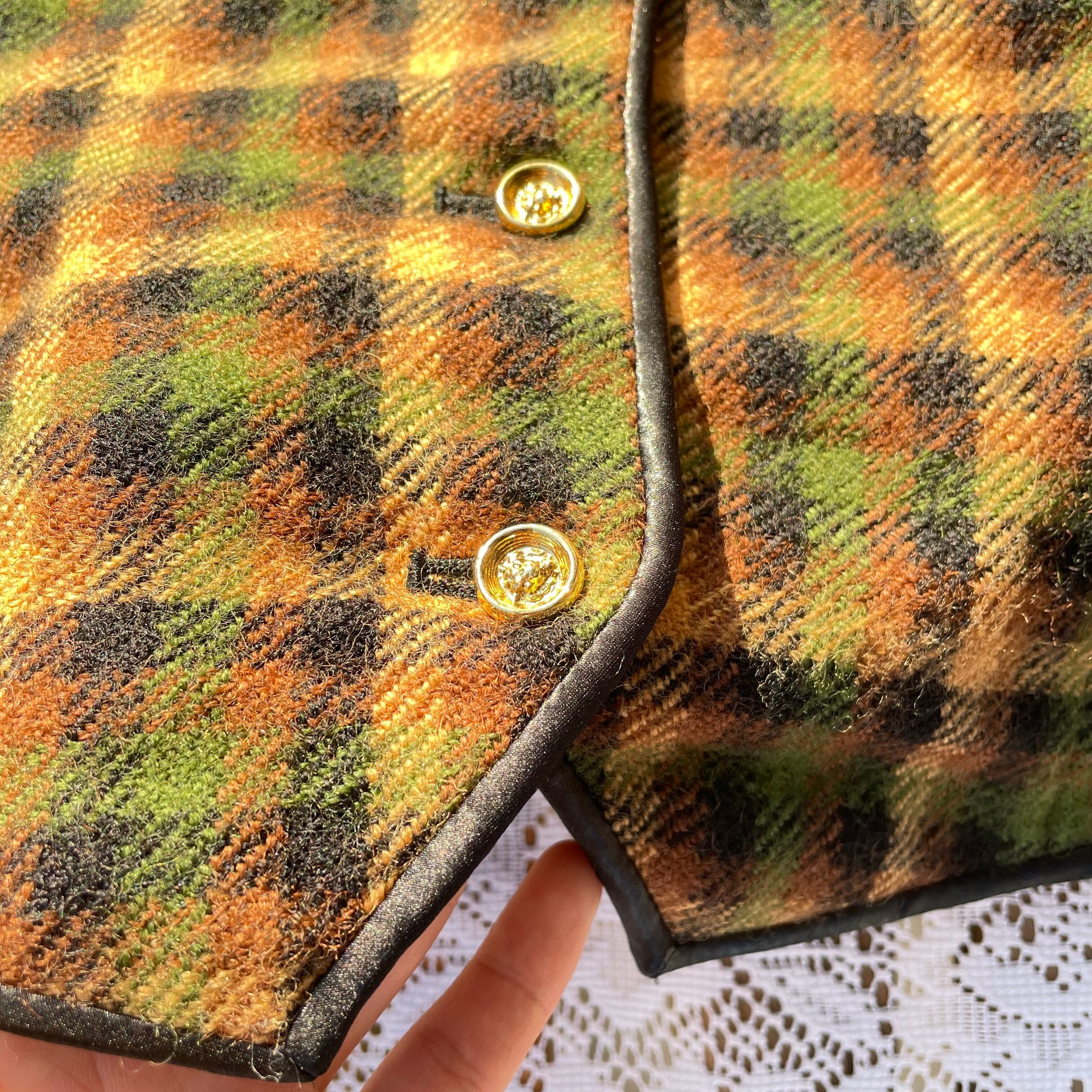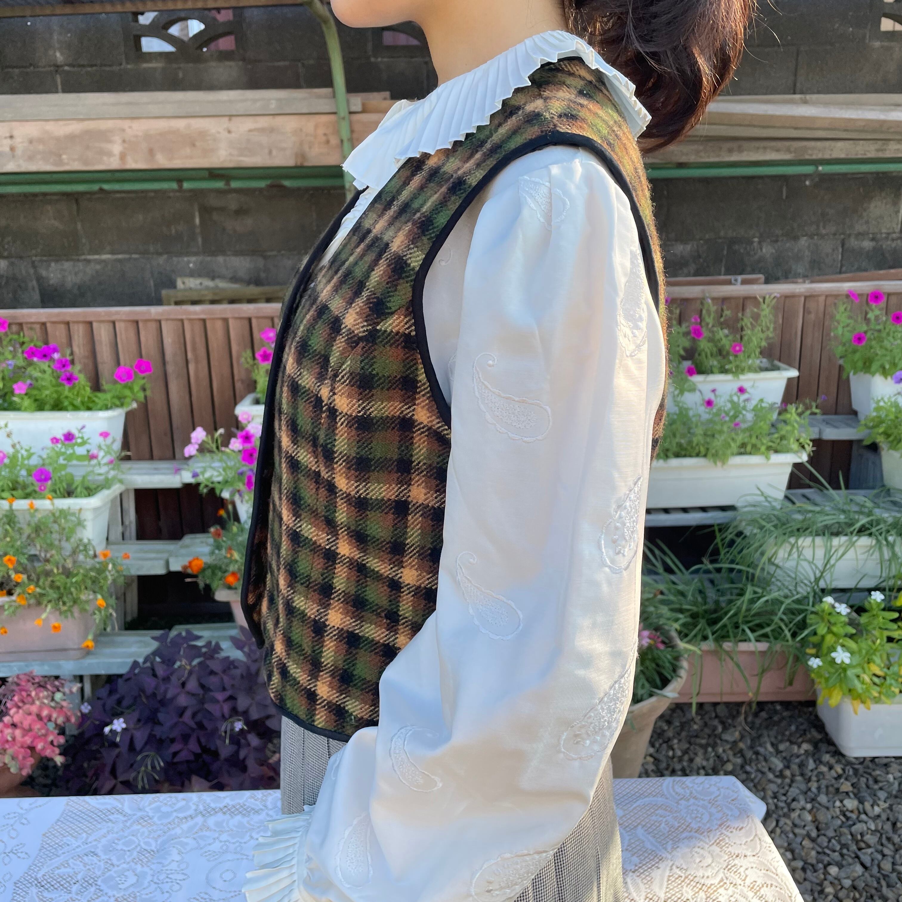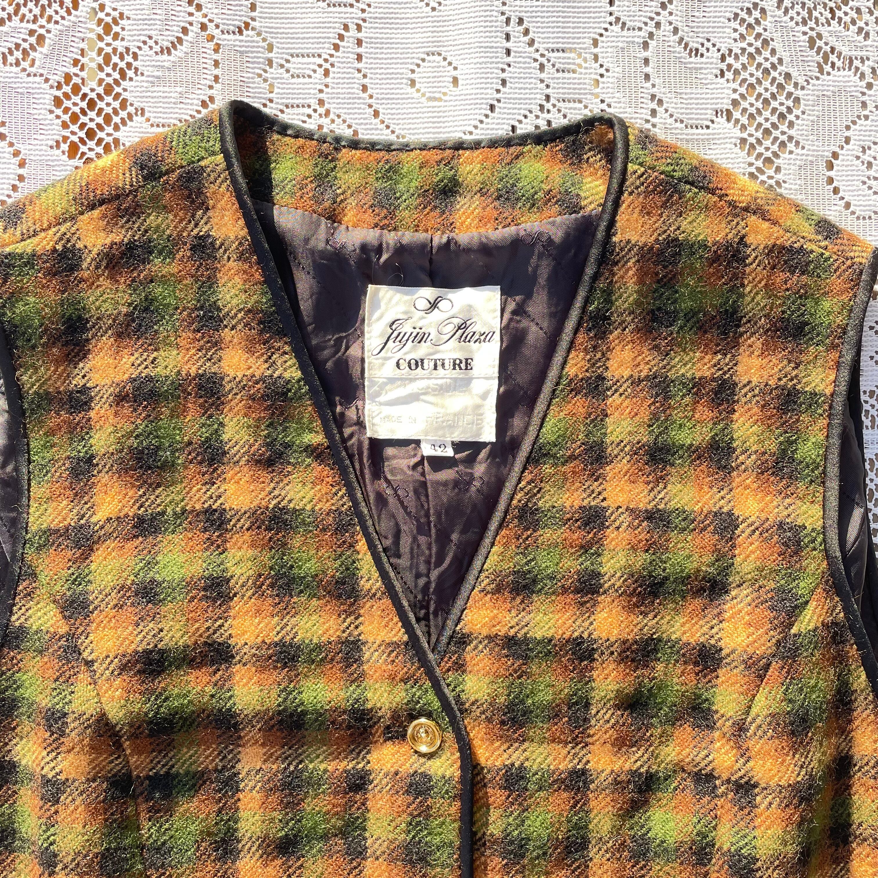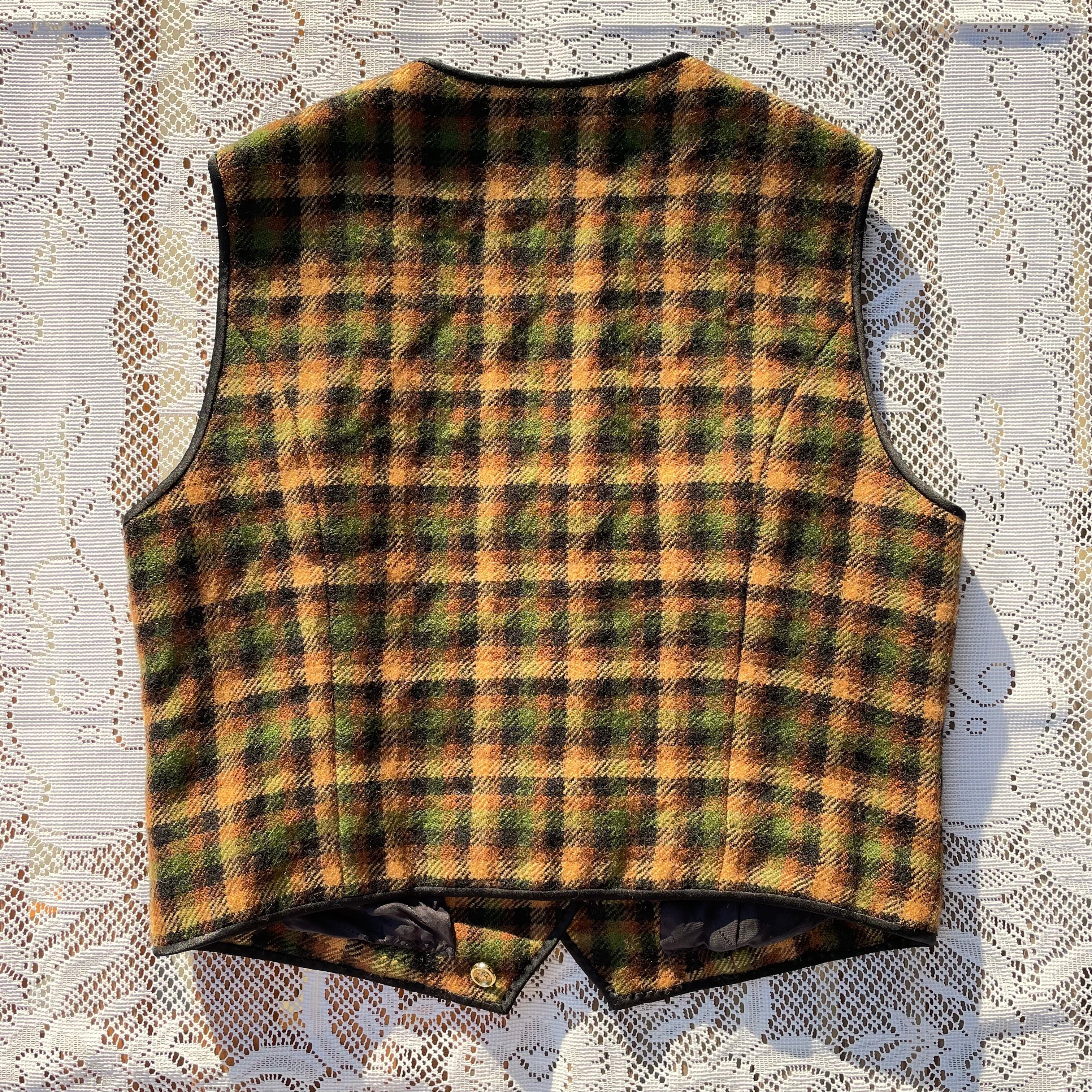 ベスト 古着 ヴィンテージ ウール チェック イエロー グリーン GM114