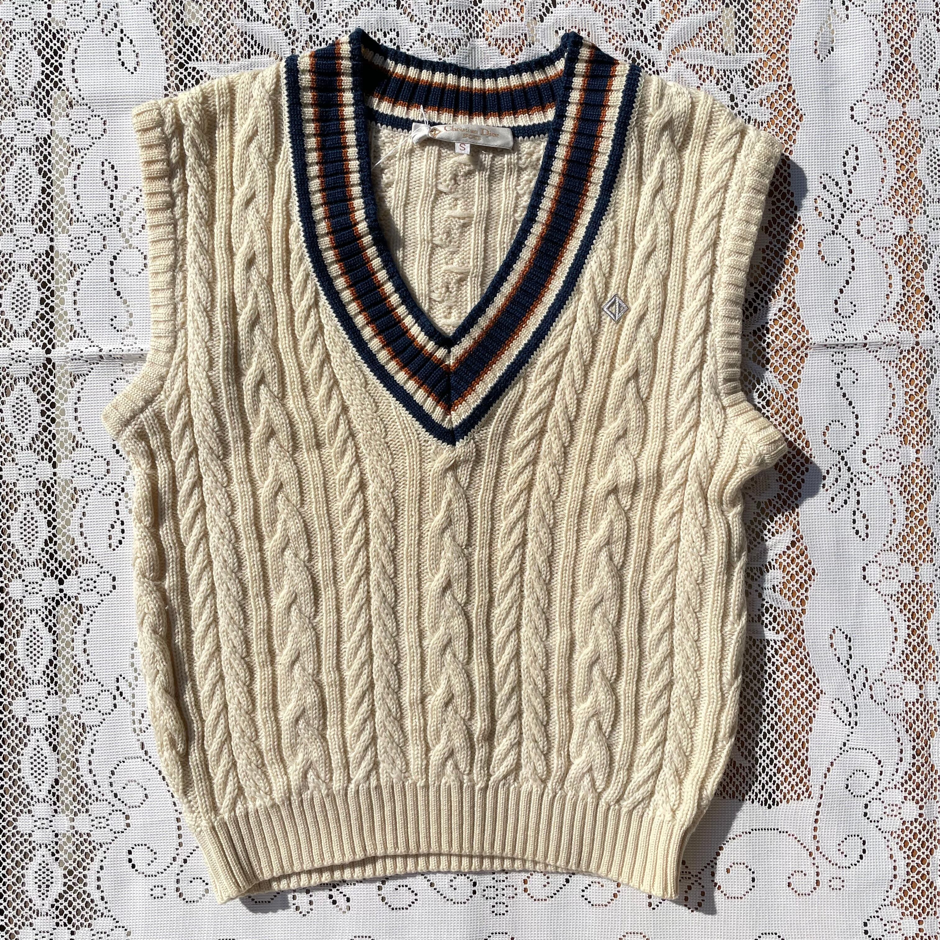 ニットベスト 古着 ヴィンテージ レトロ Christian Dior ホワイト ネイビー GM58