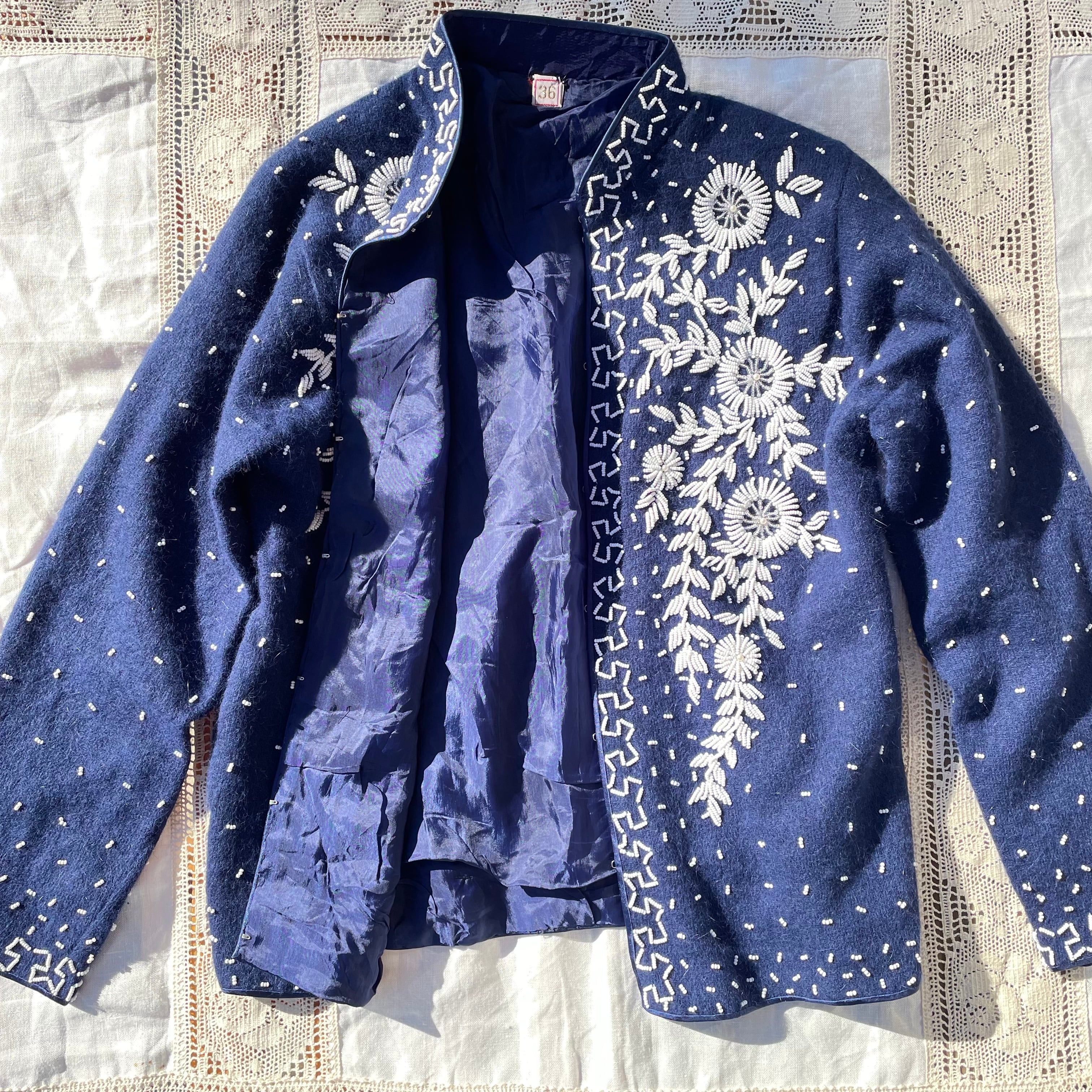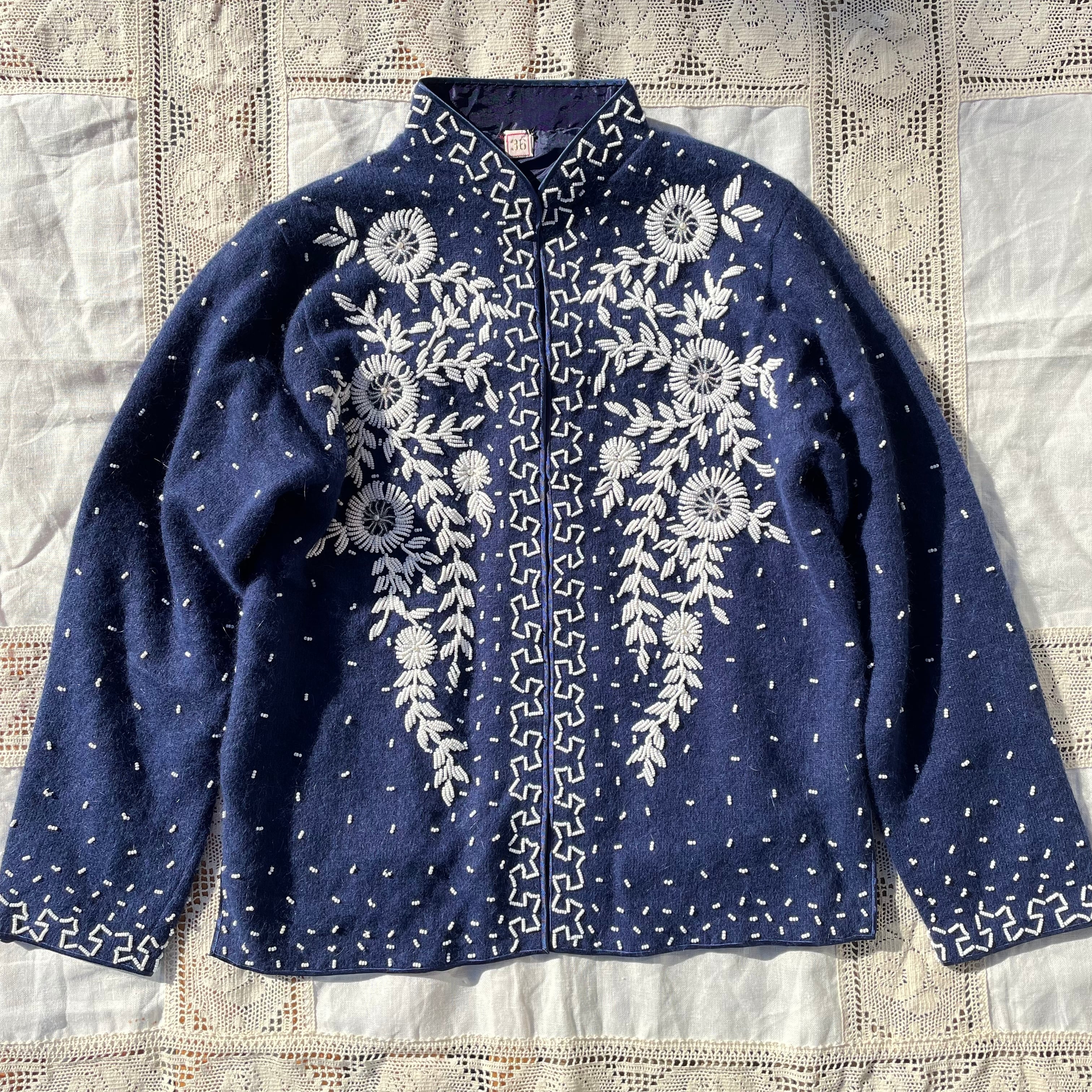 ビーズ刺繍が施されたヴィンテージカーディガン