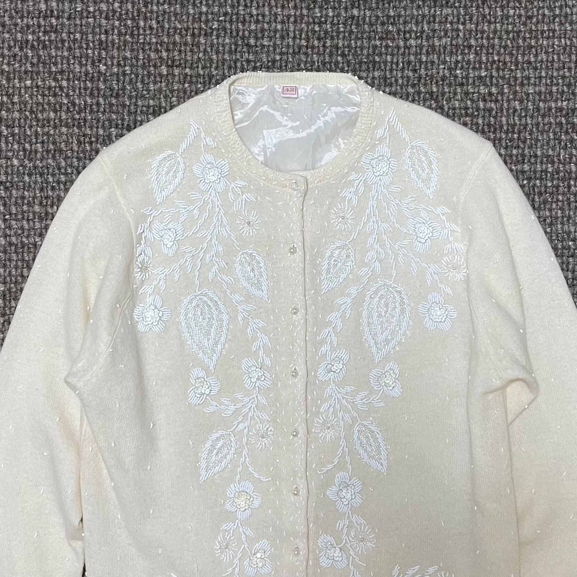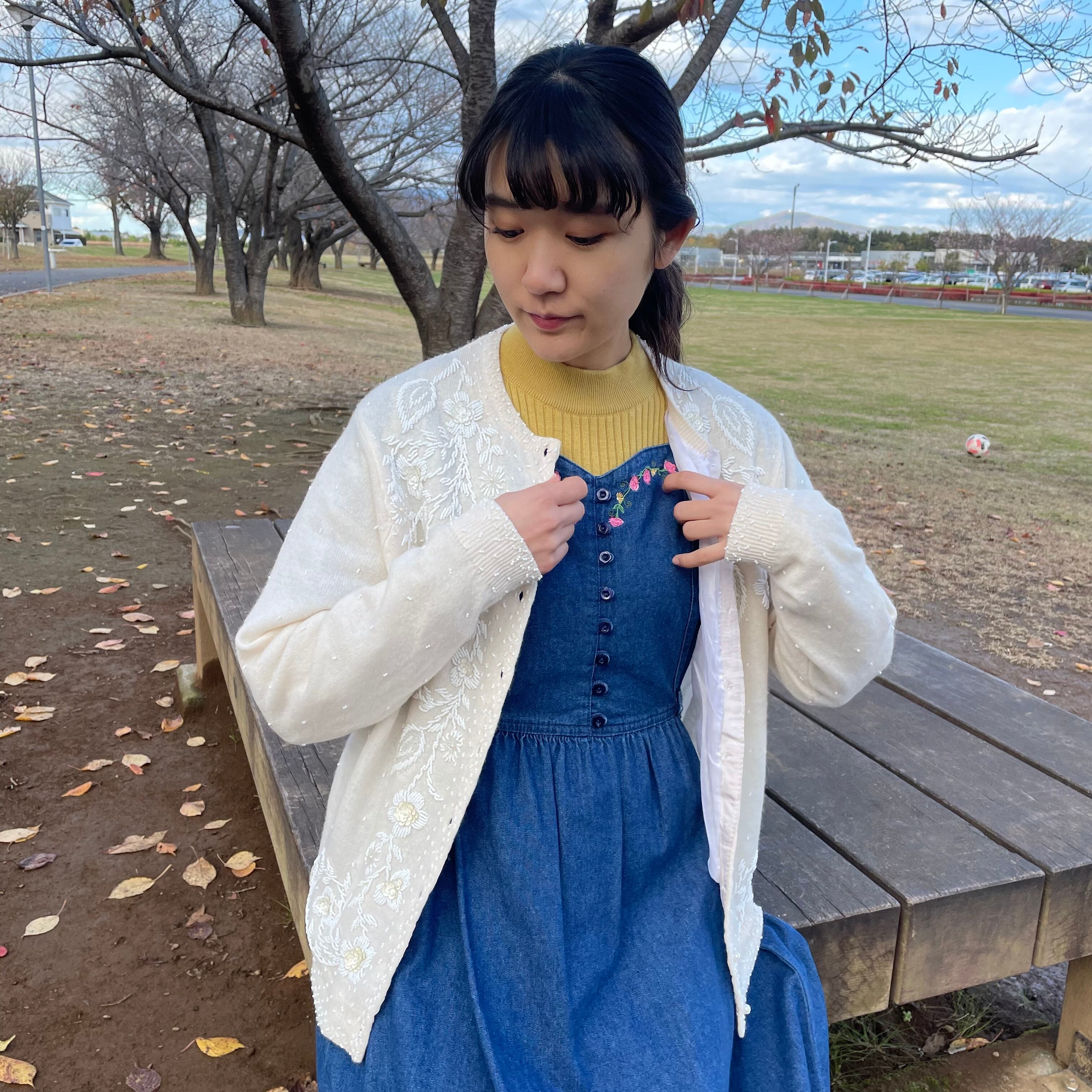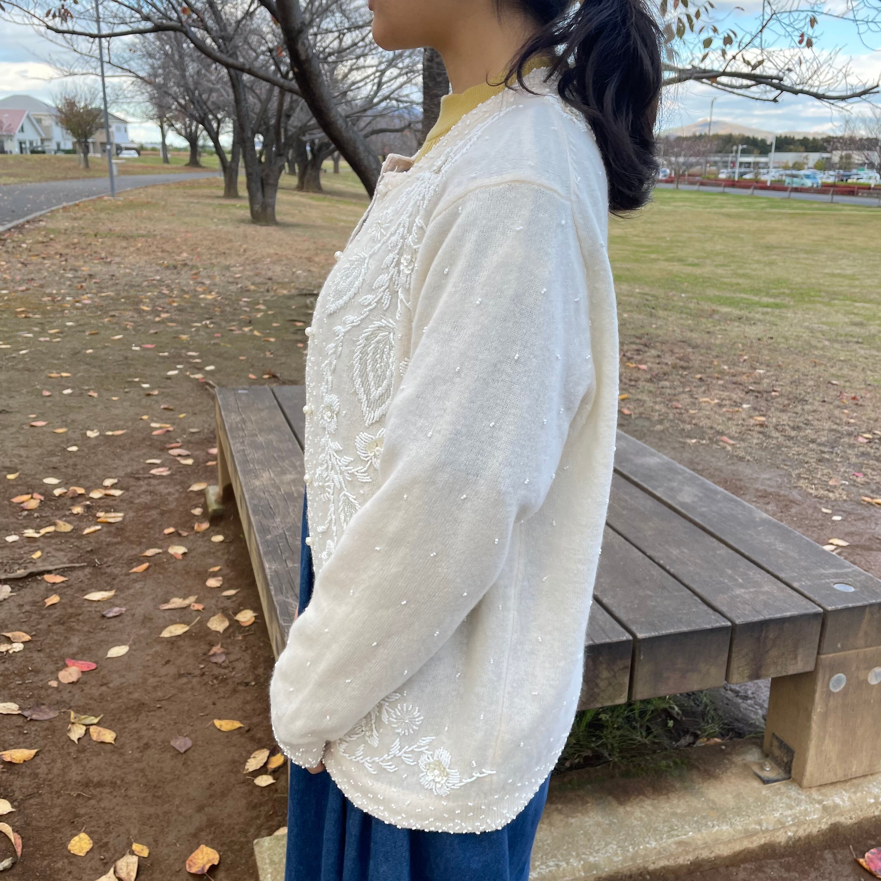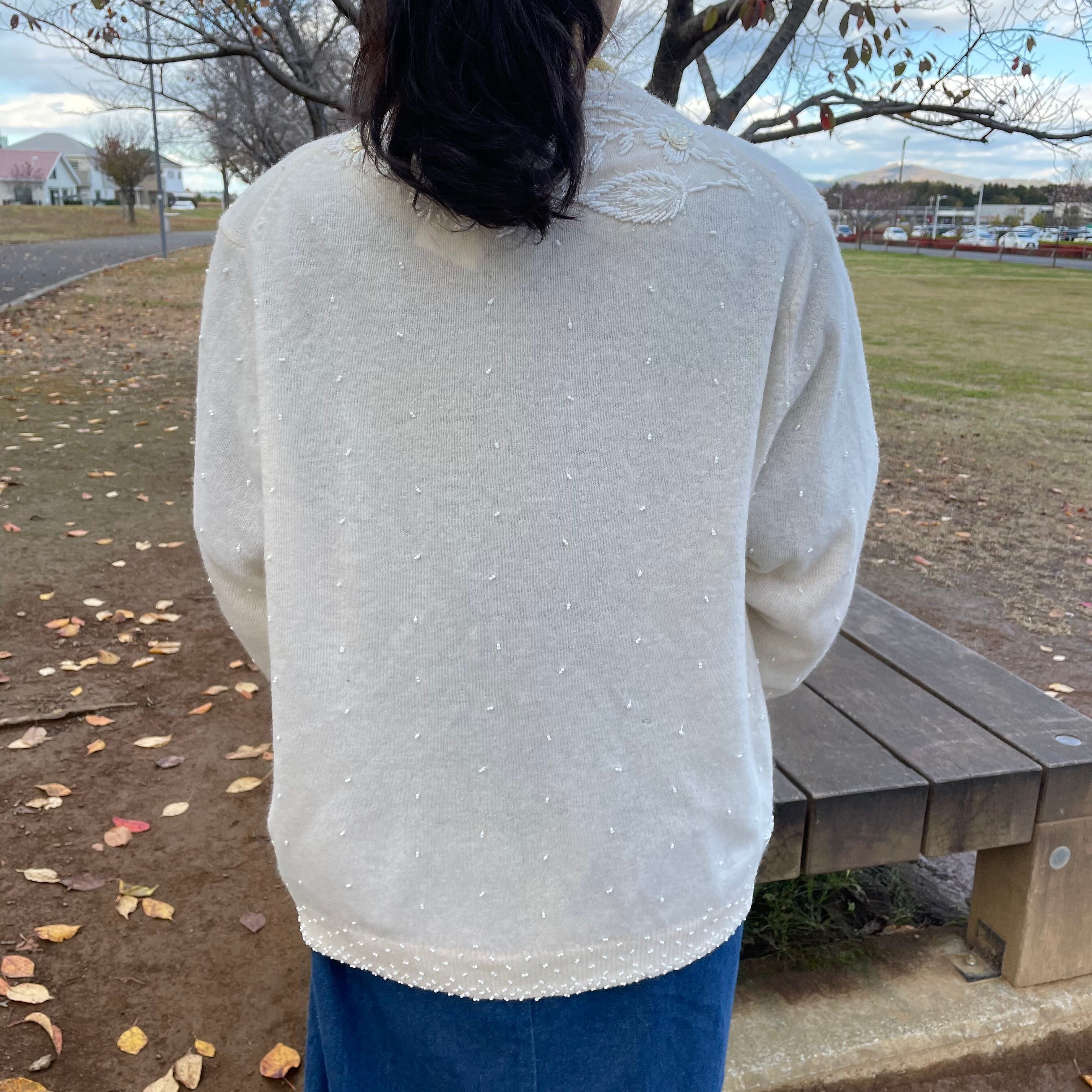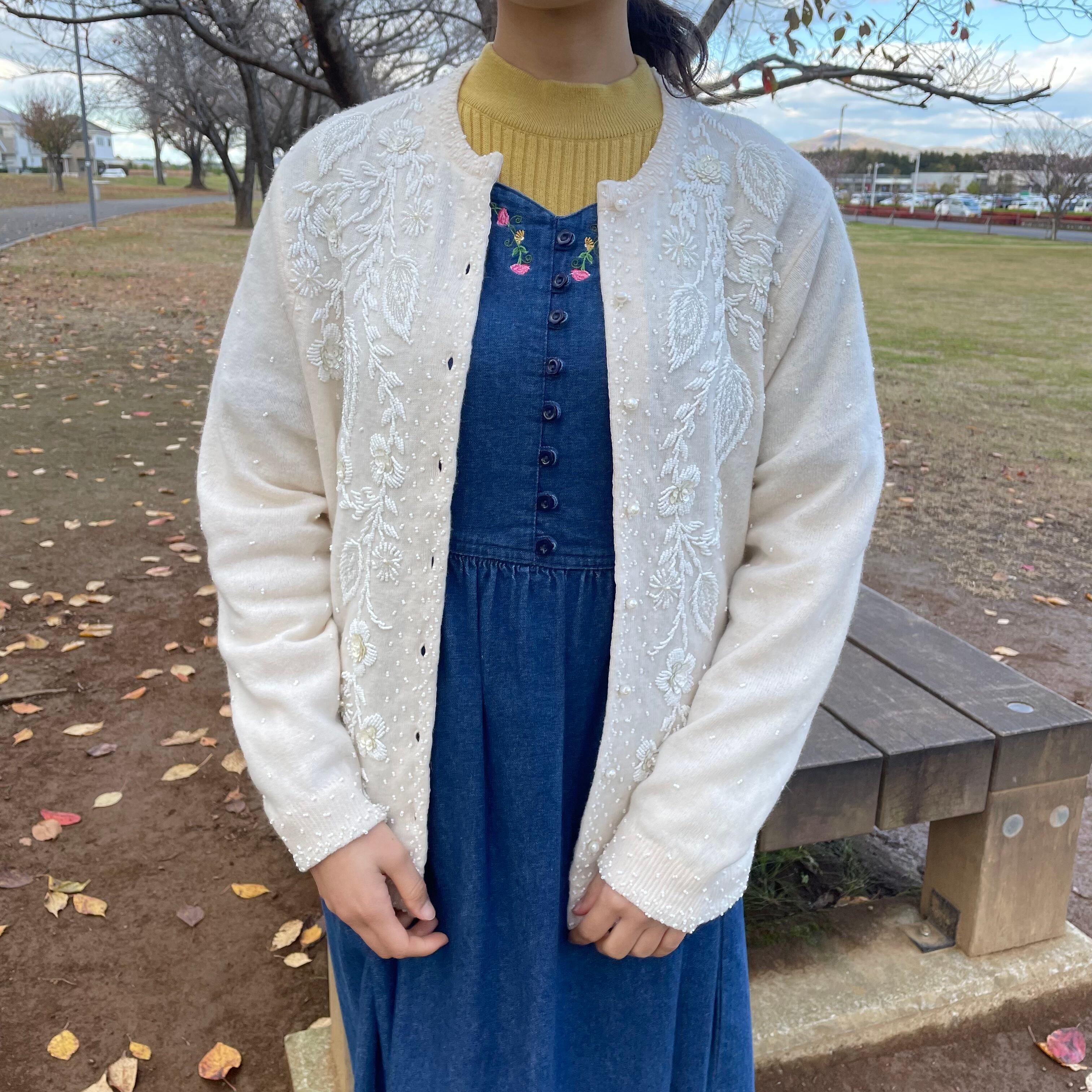 ビーズ刺繍が施された繊細なカーディガン