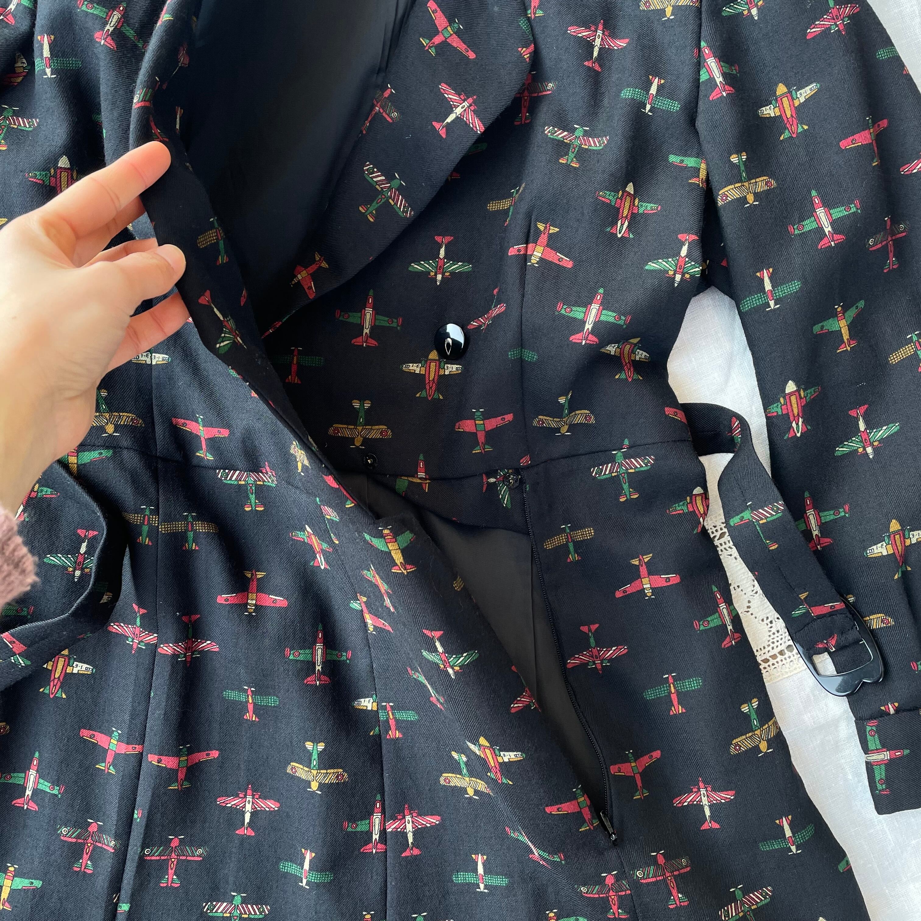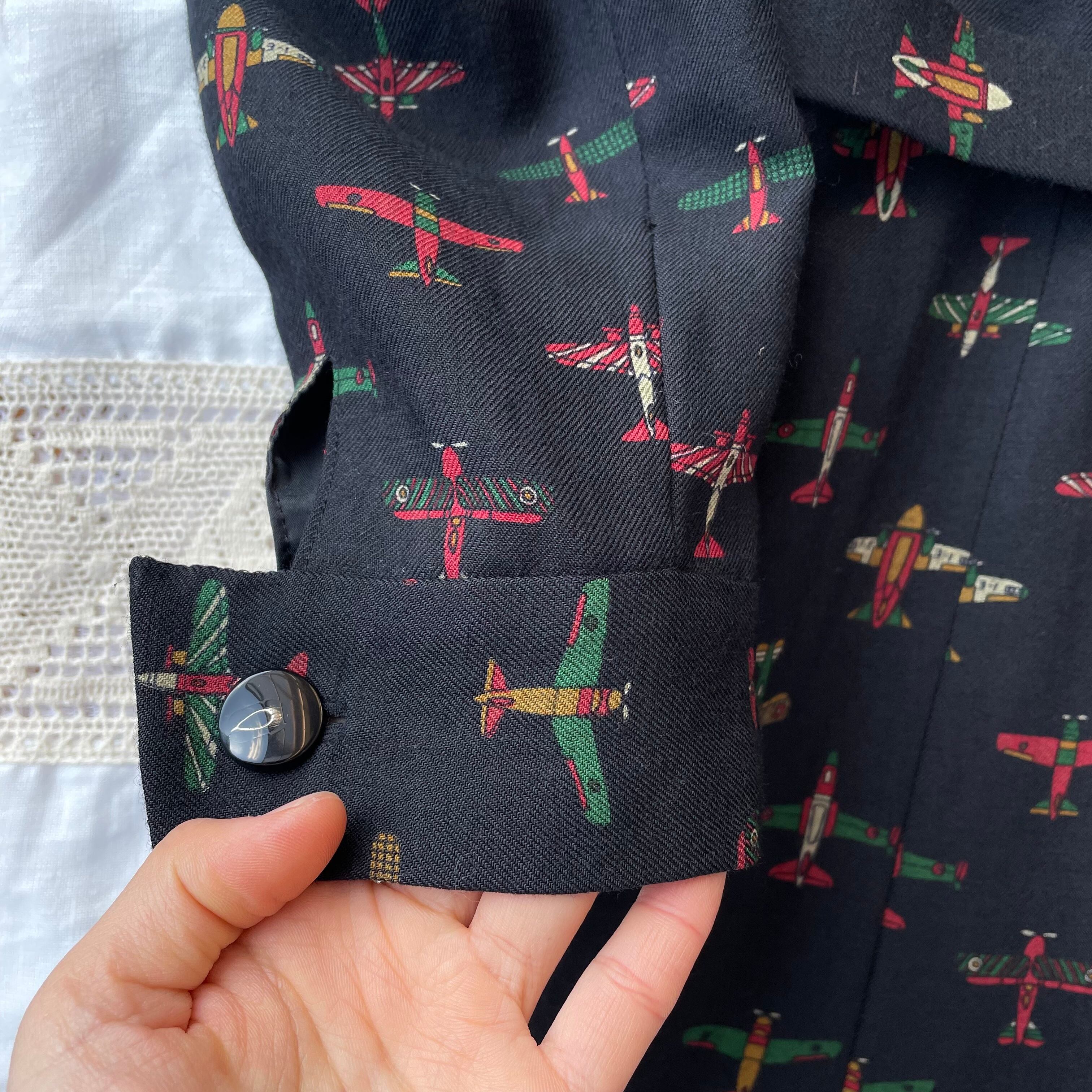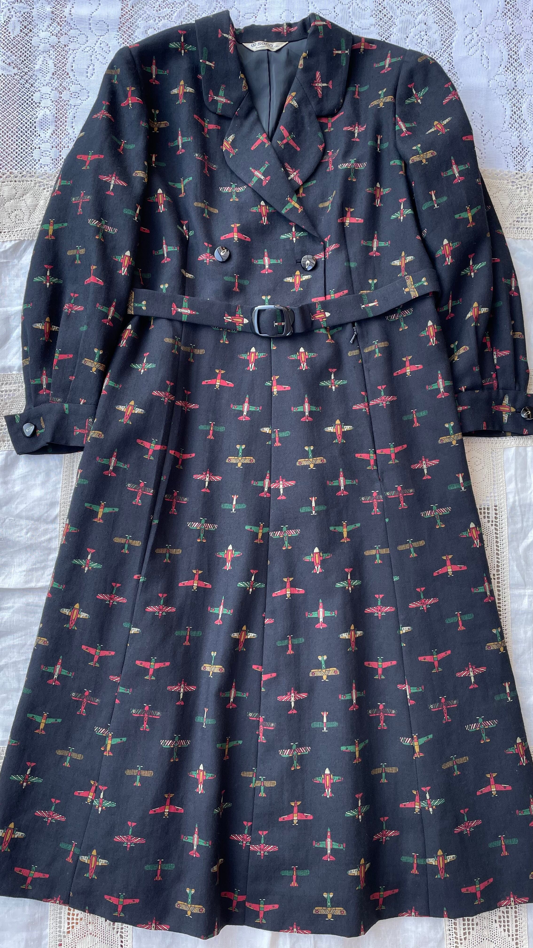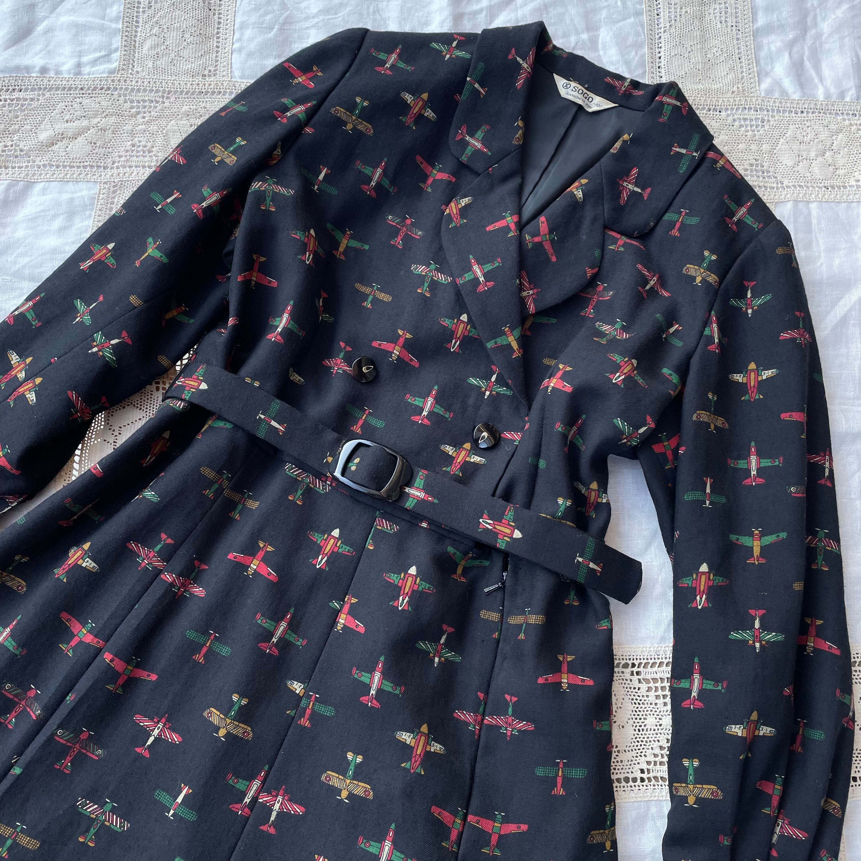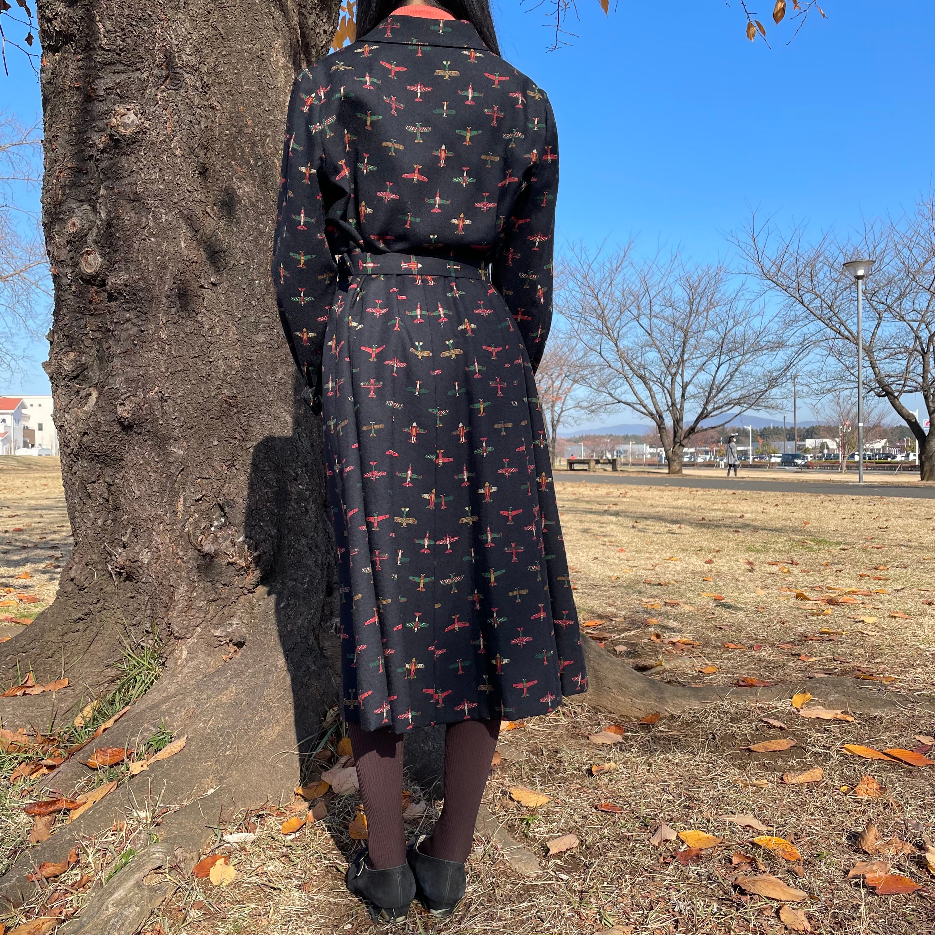 ワンピース 古着 ヴィンテージ 日本製 総柄 クラシカル ブラック FB90