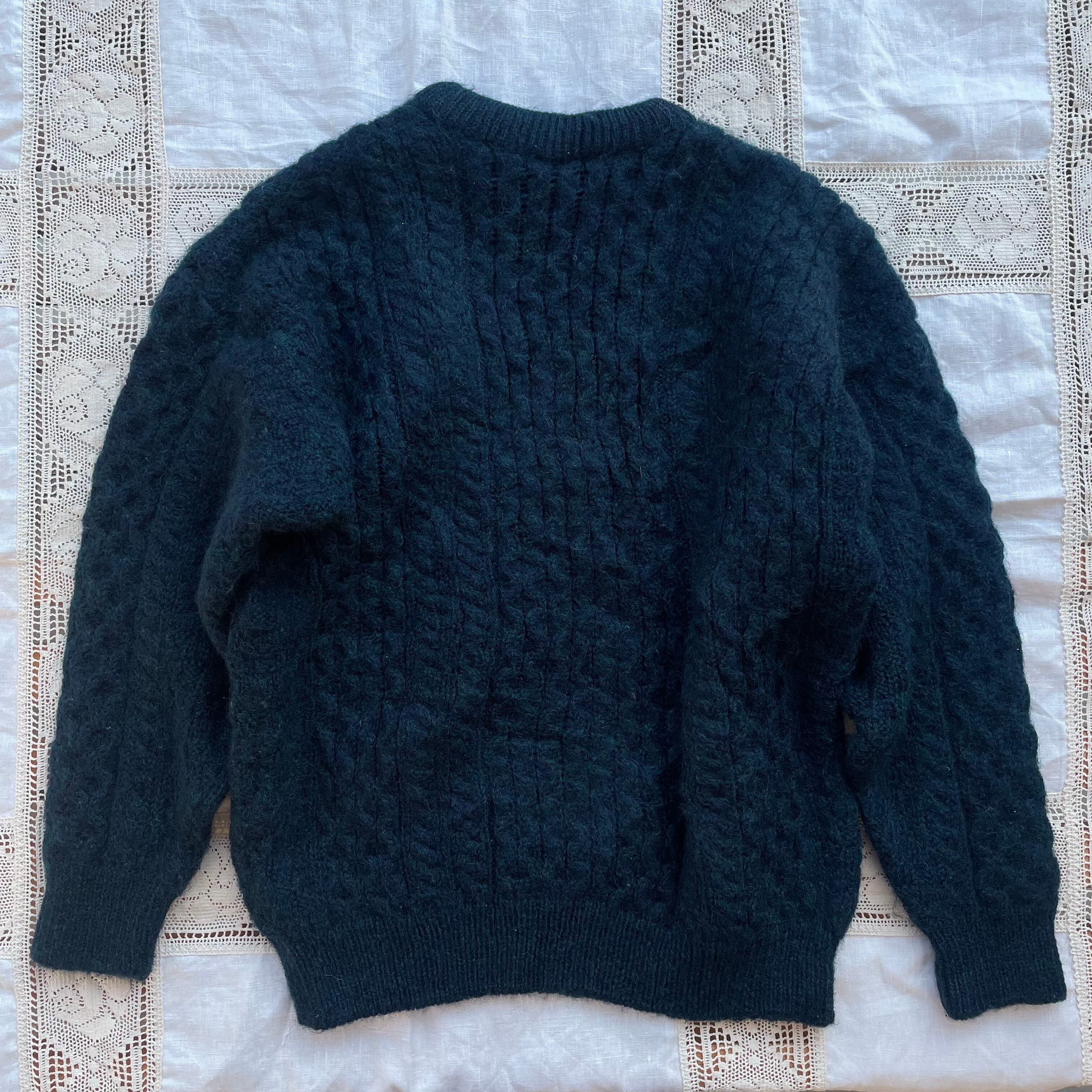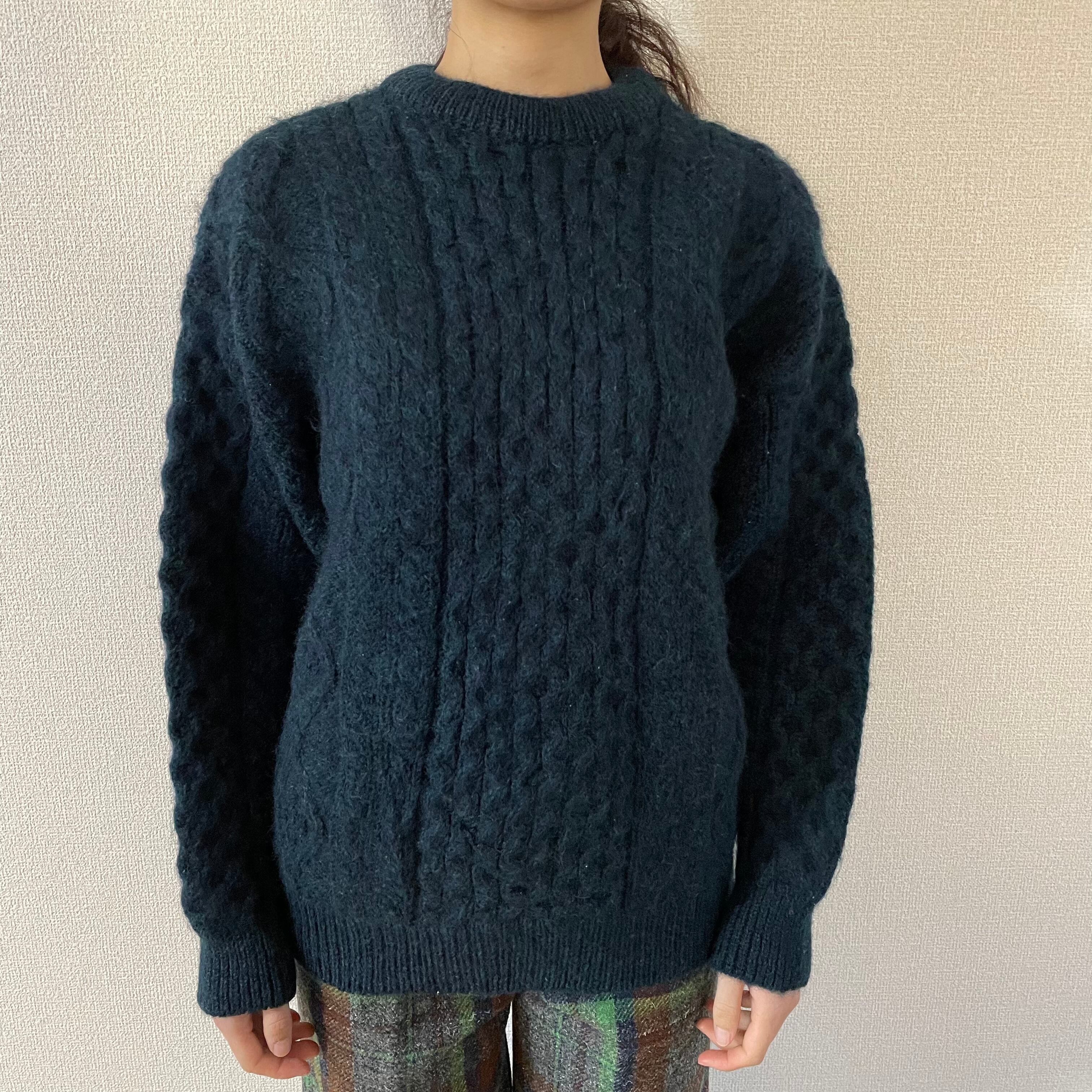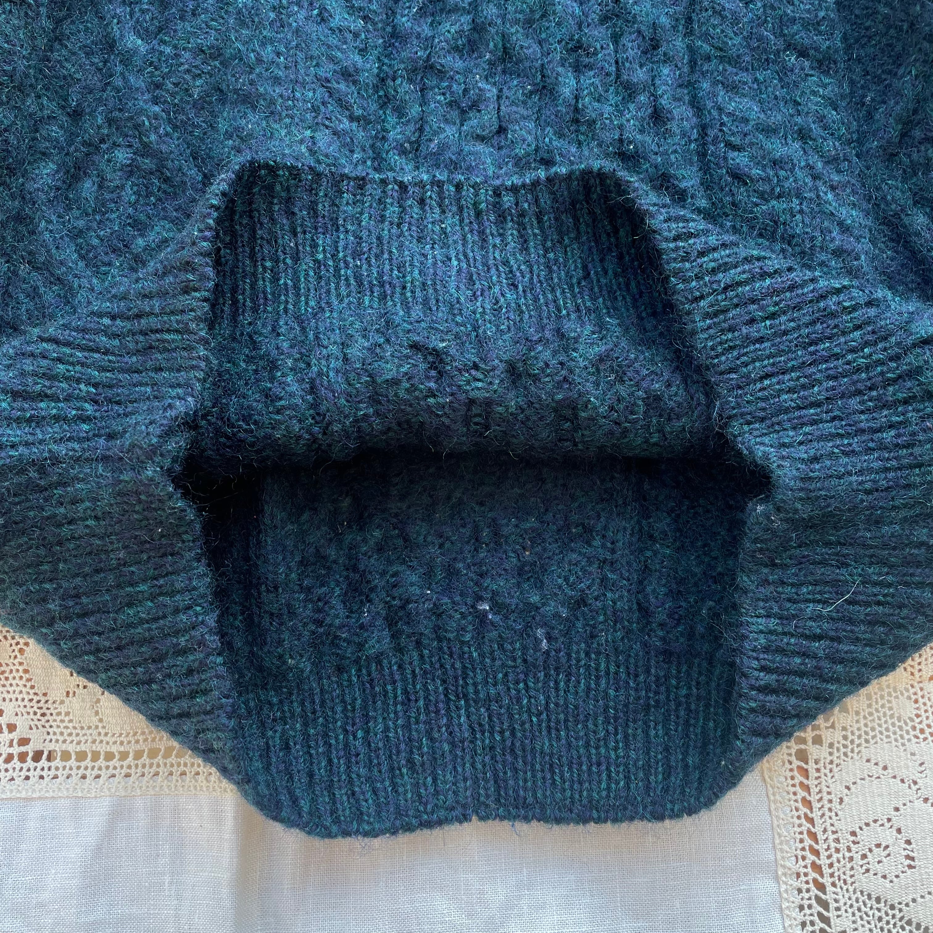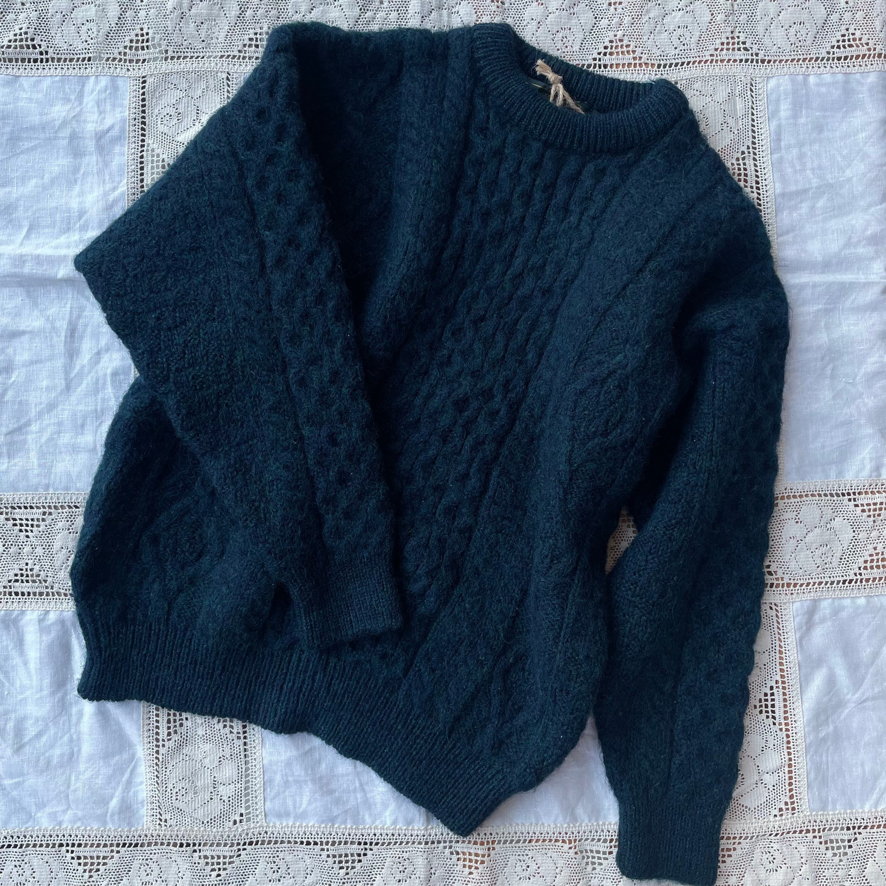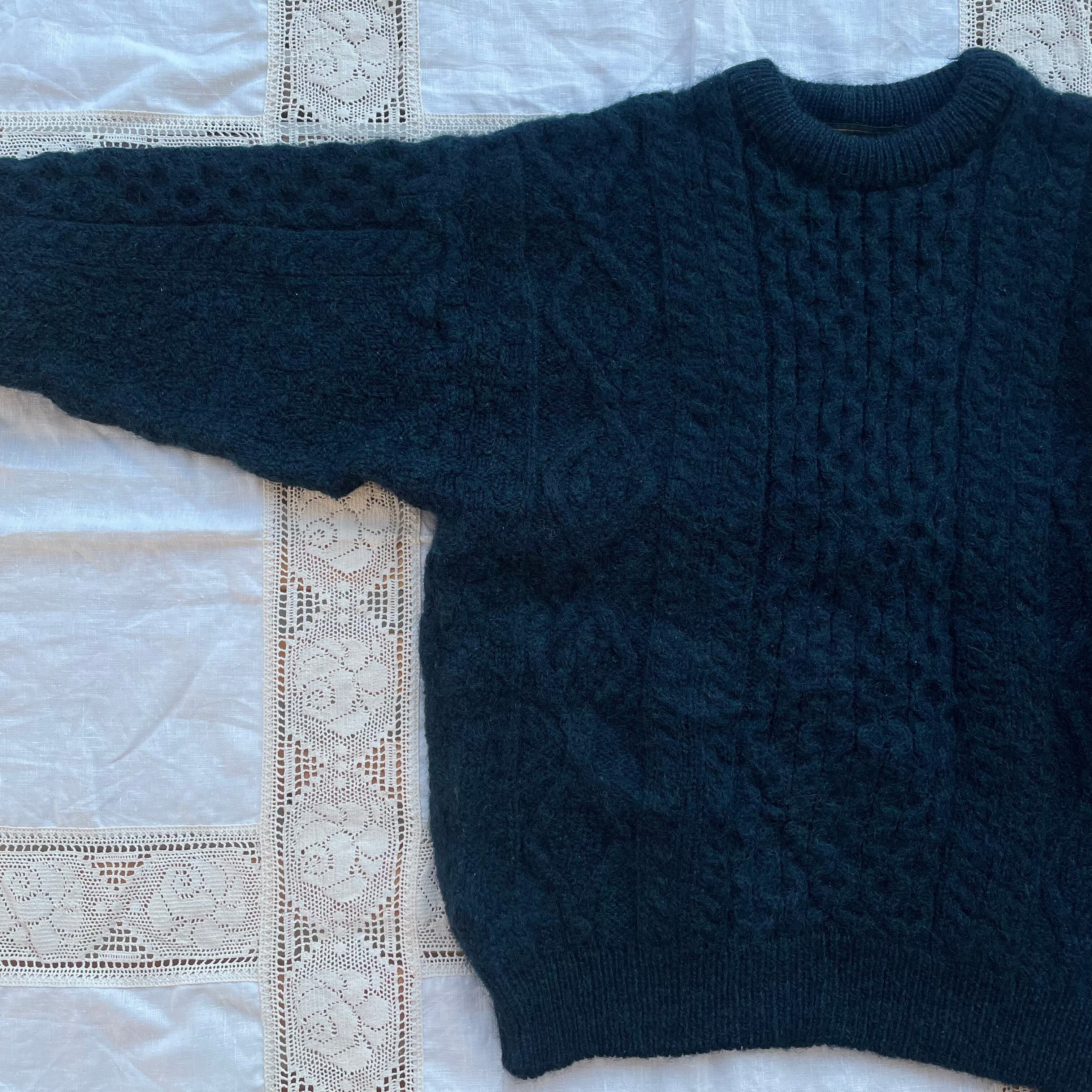 ニットセーター 古着 ヴィンテージ アランニット アイルランド製 ウール ネイビー KP5