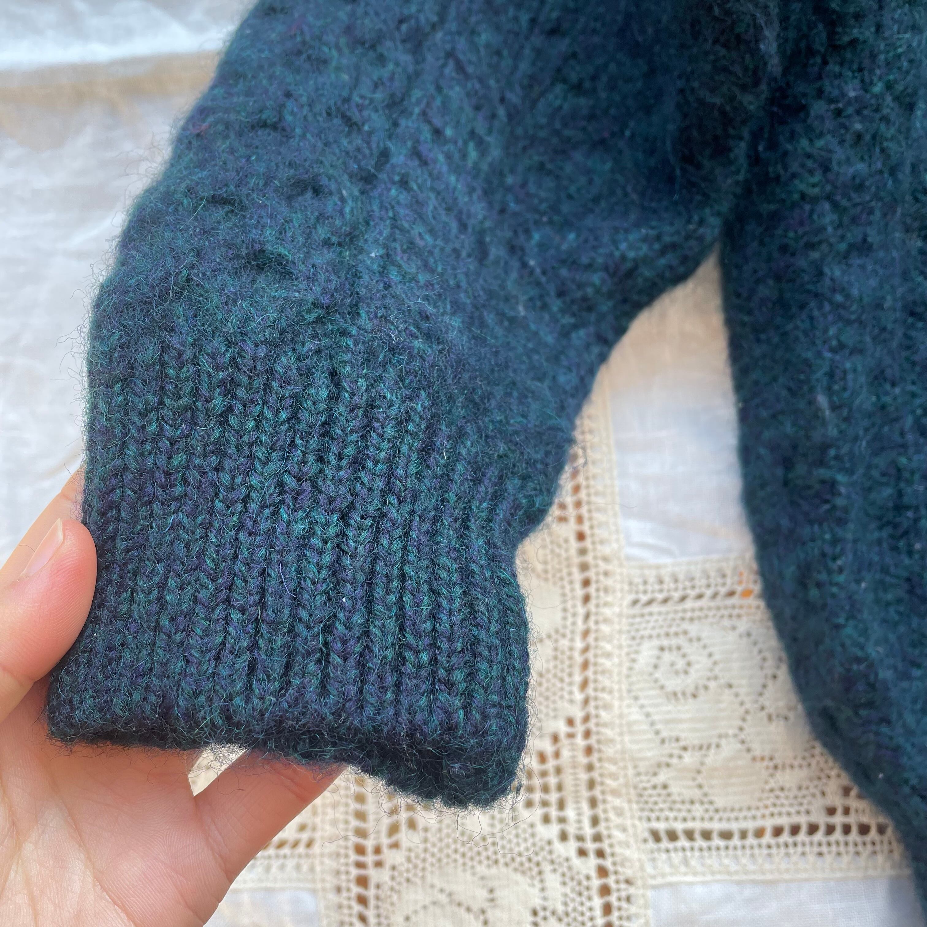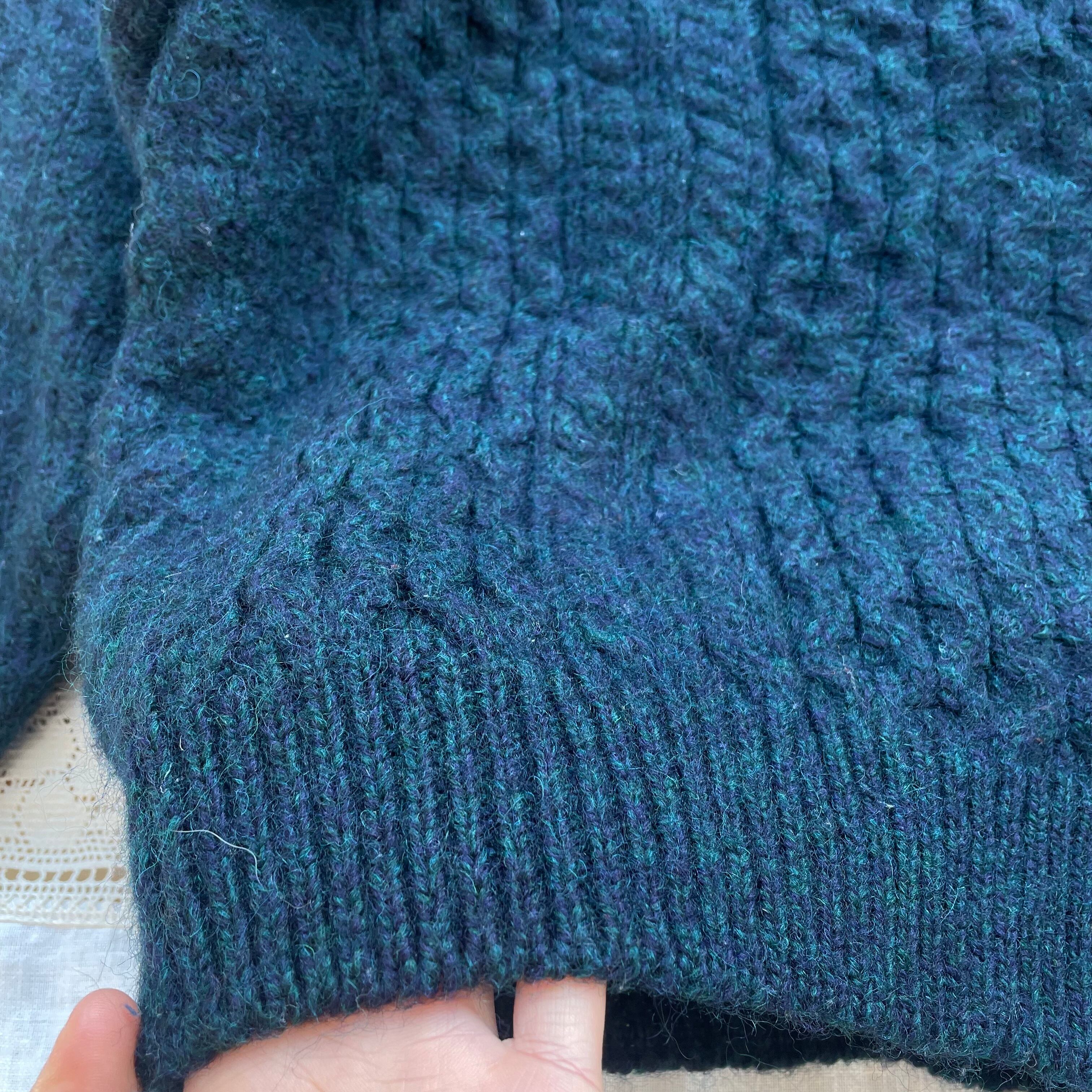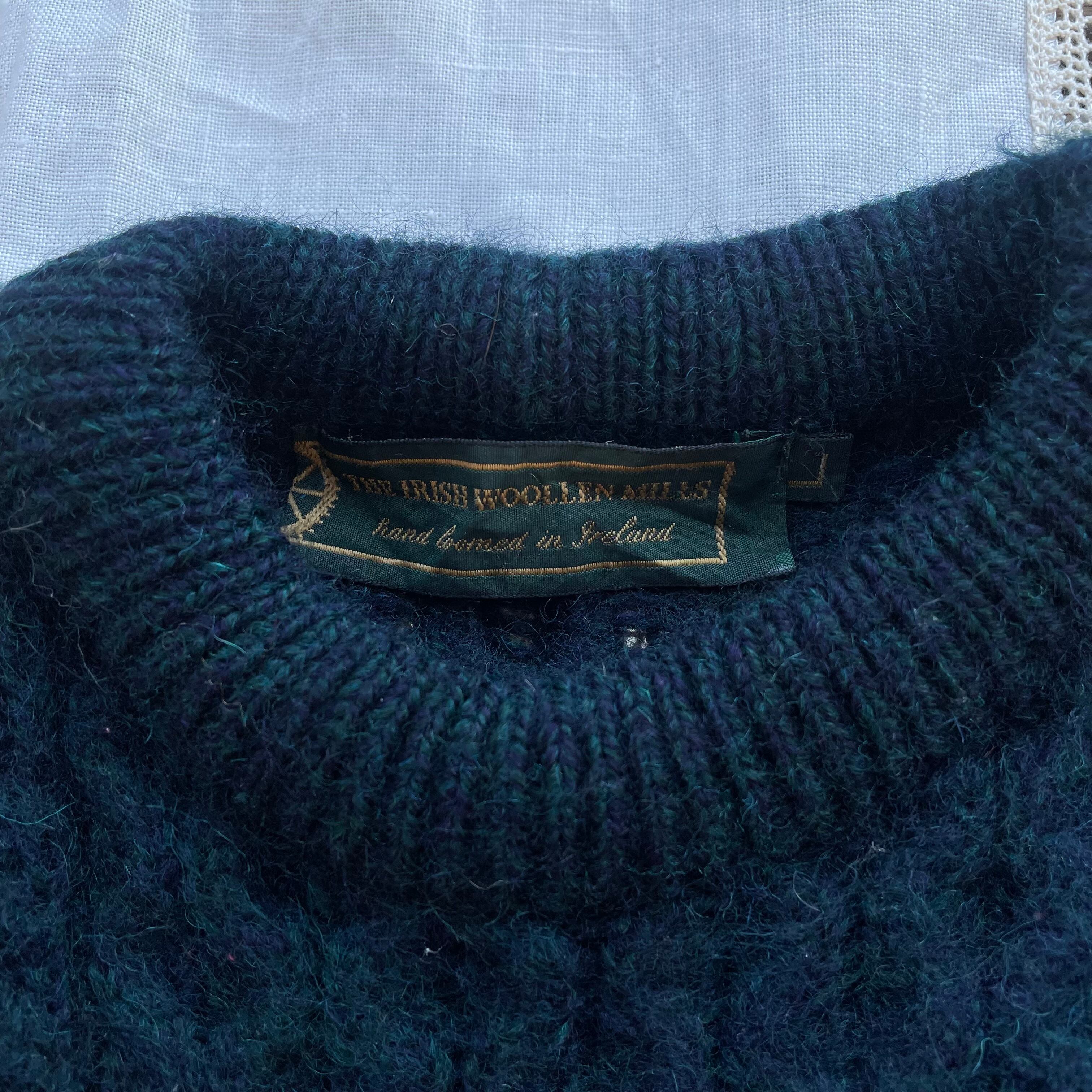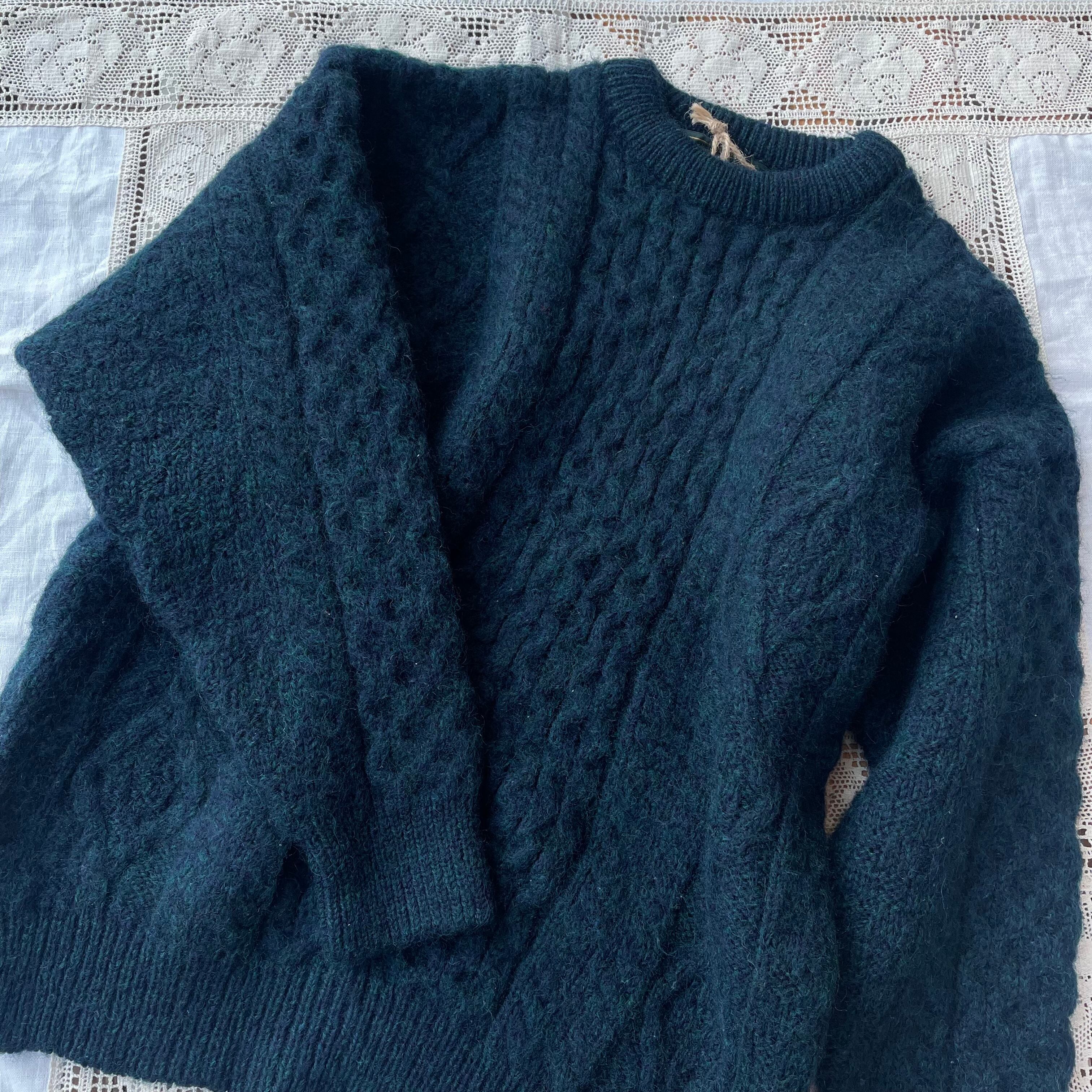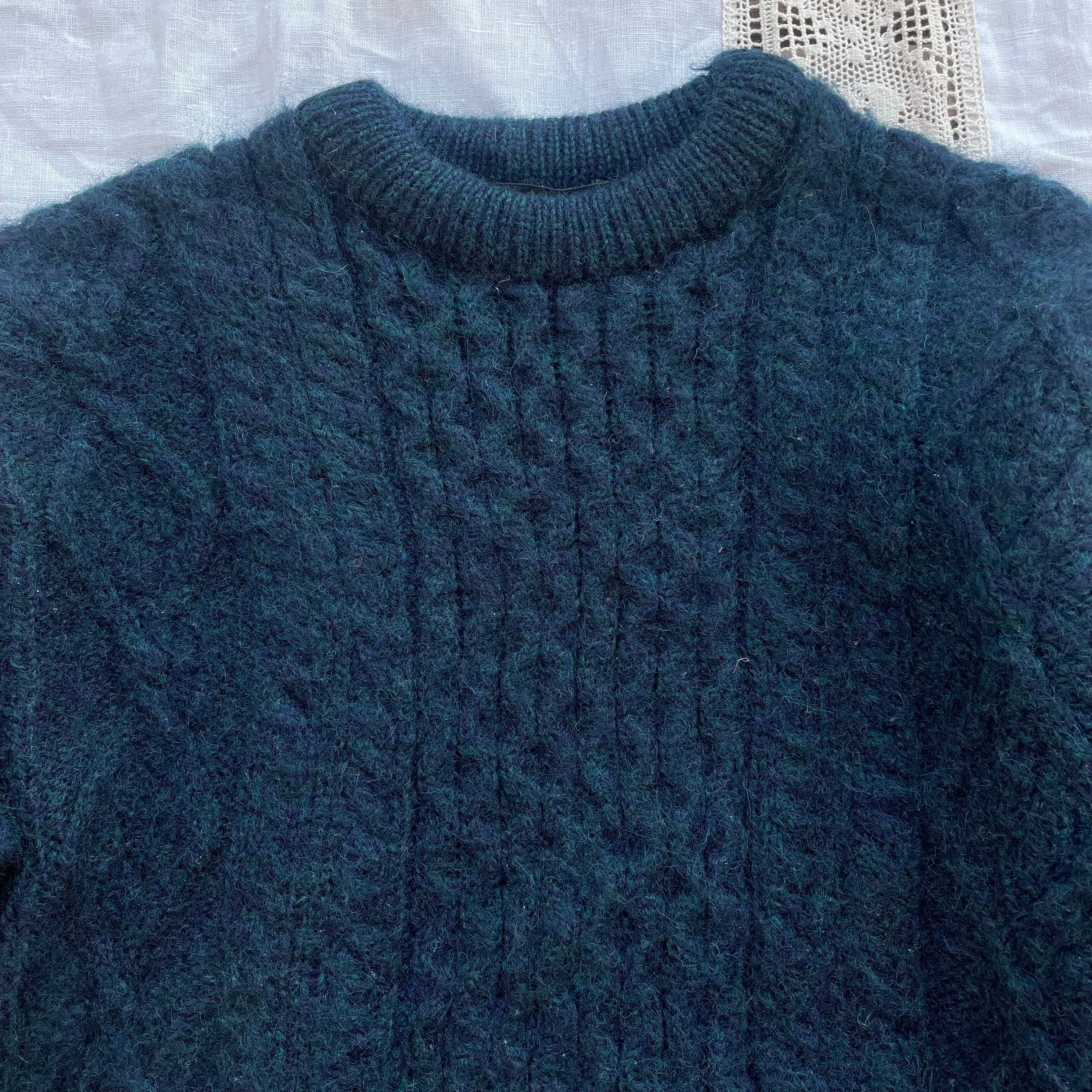 ニットセーター 古着 ヴィンテージ アランニット アイルランド製 ウール ネイビー KP5