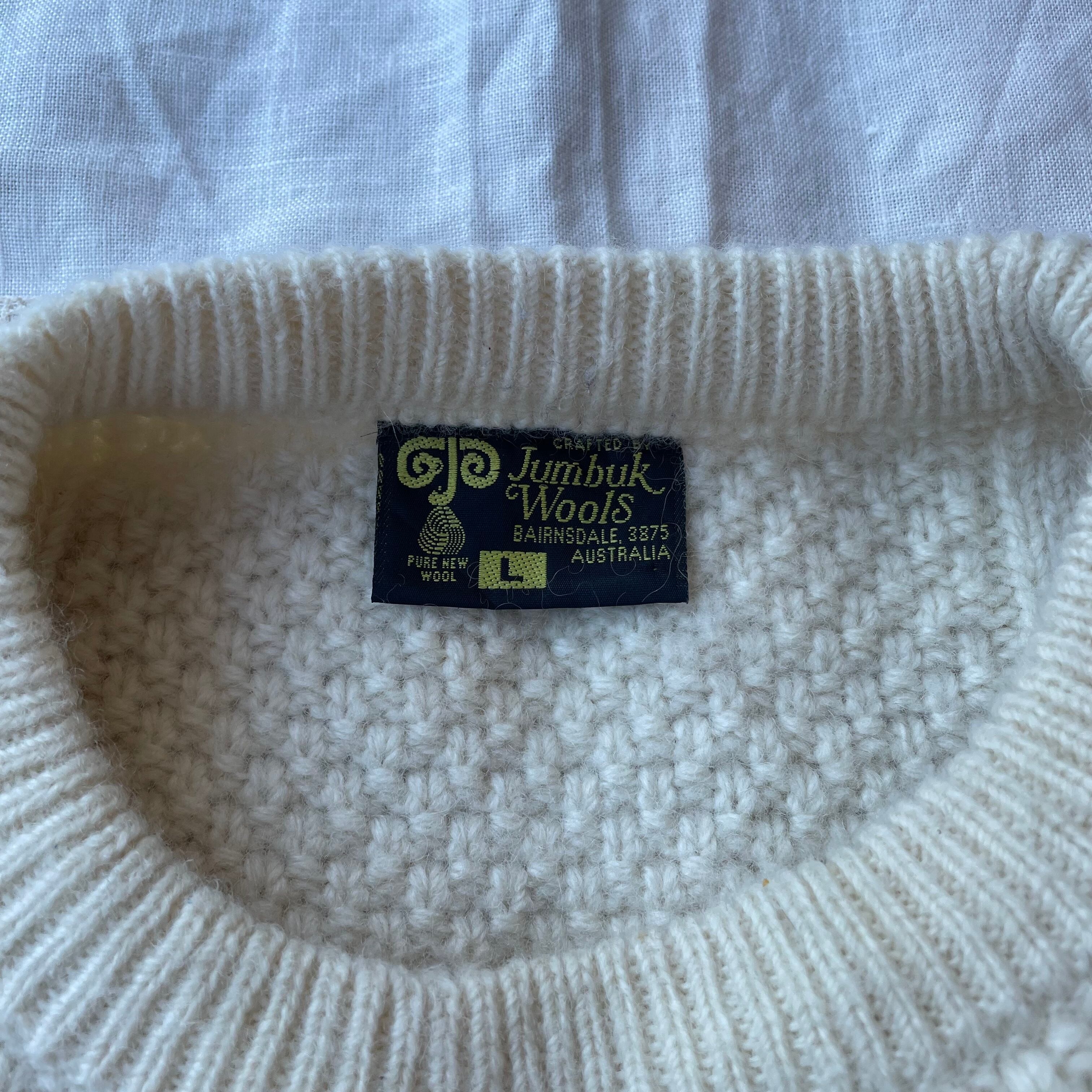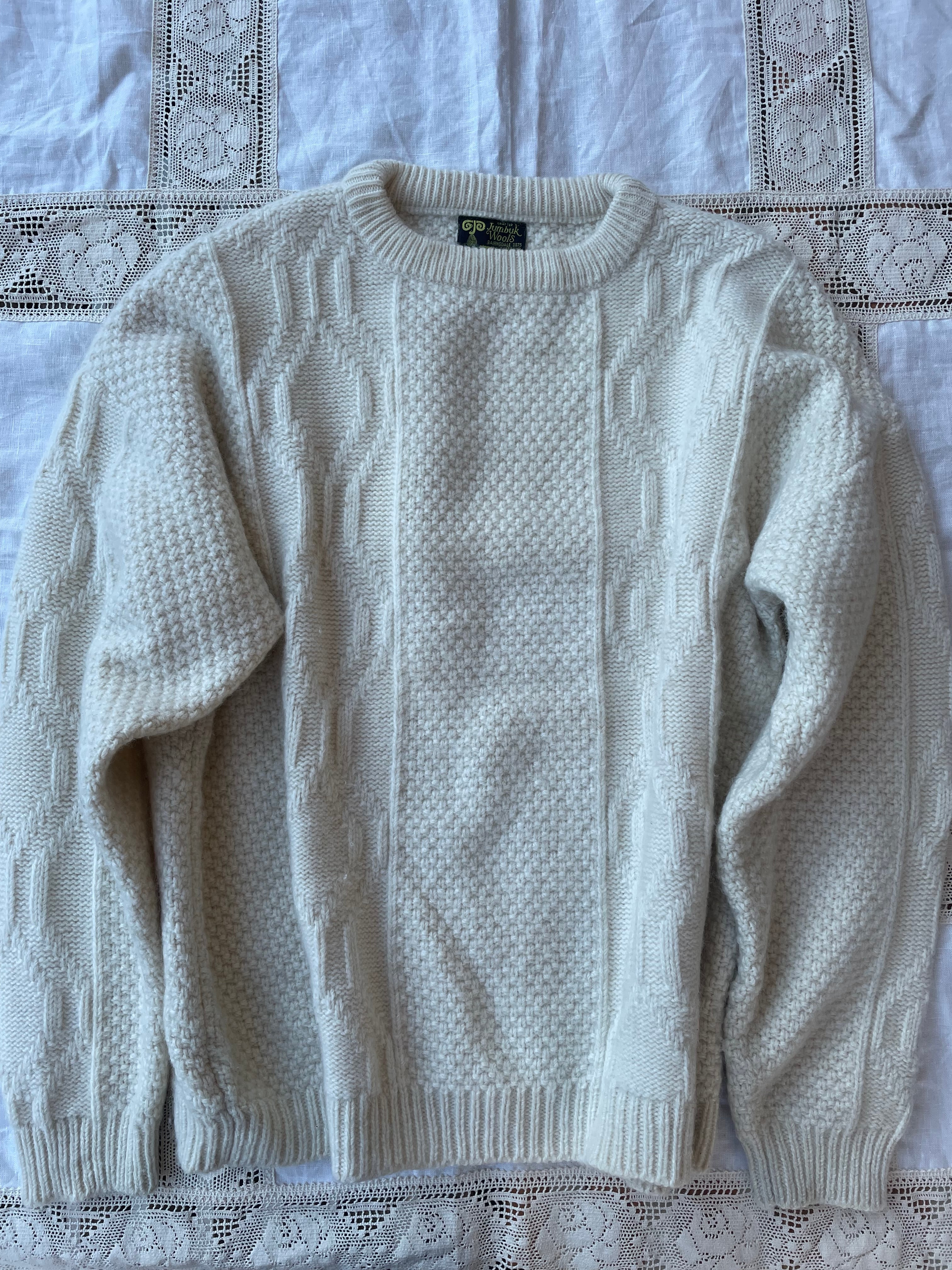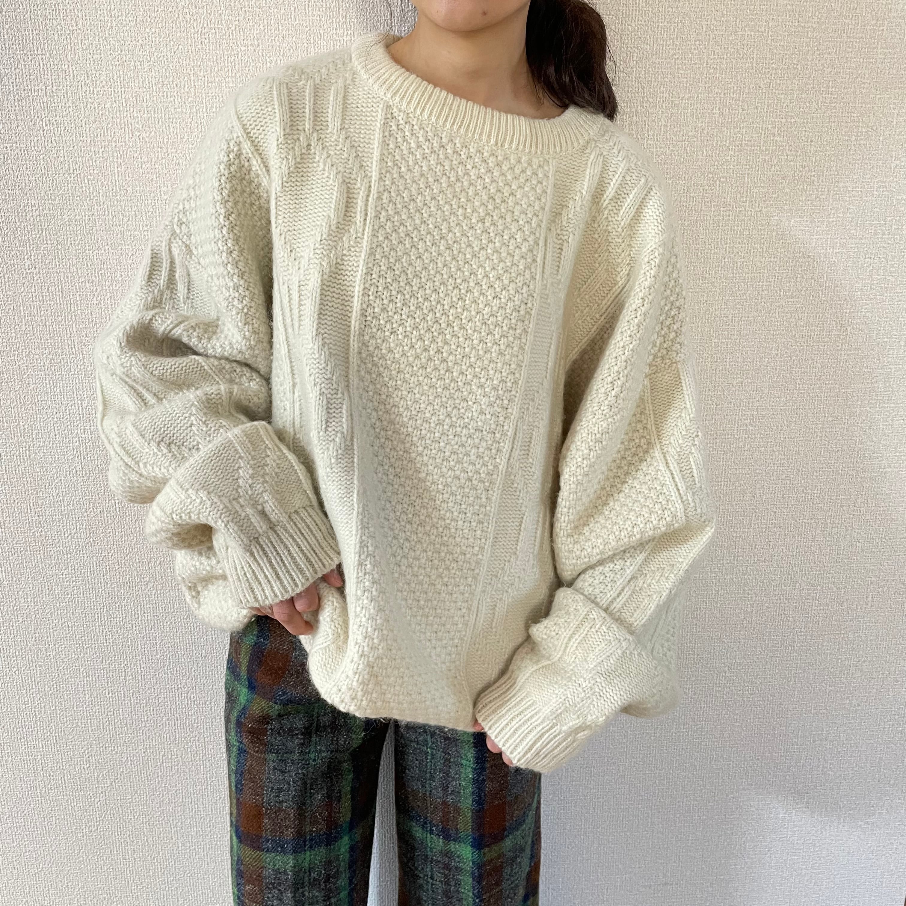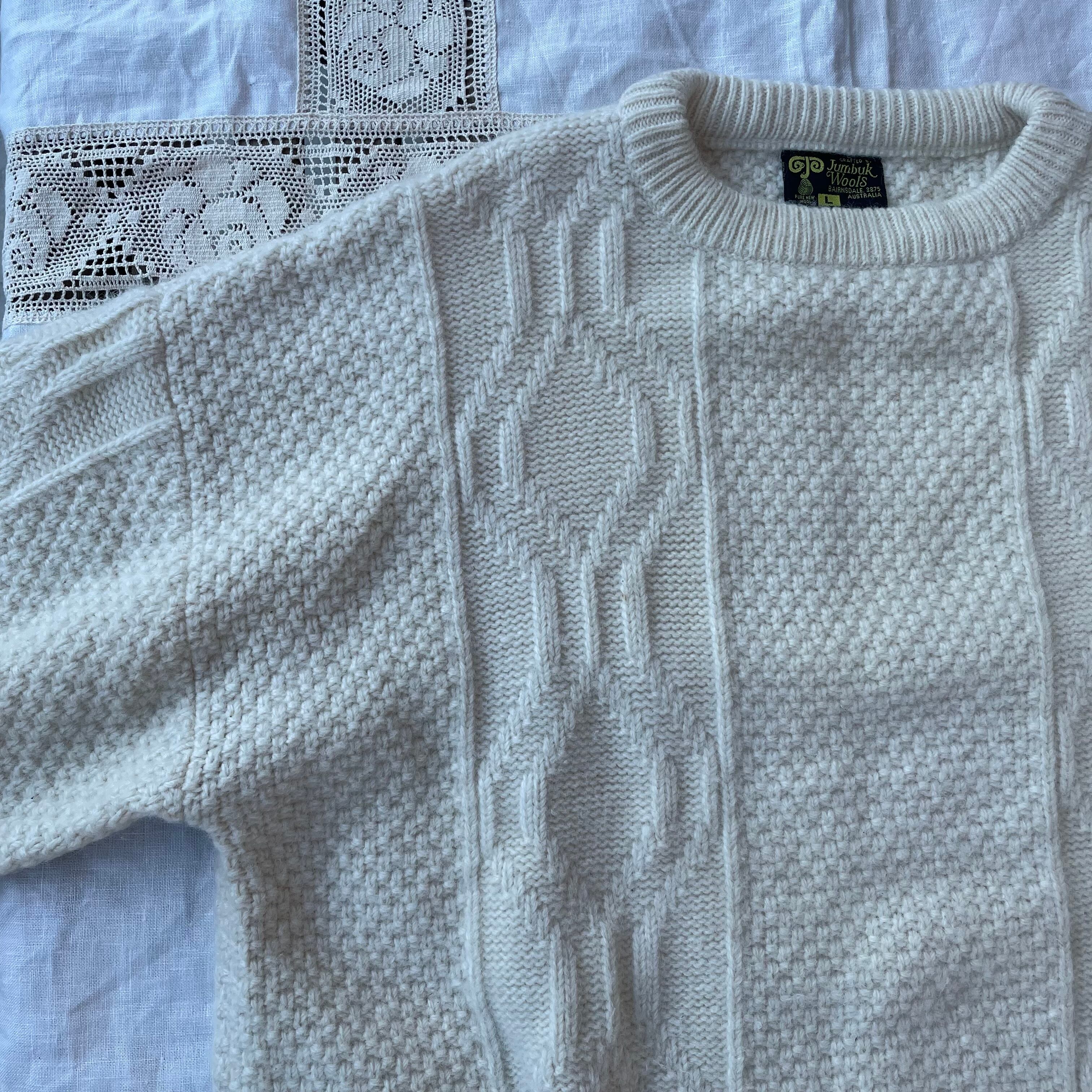 アランニット 古着 ヴィンテージ オーストラリア製 フィッシャーマン ホワイト KP3