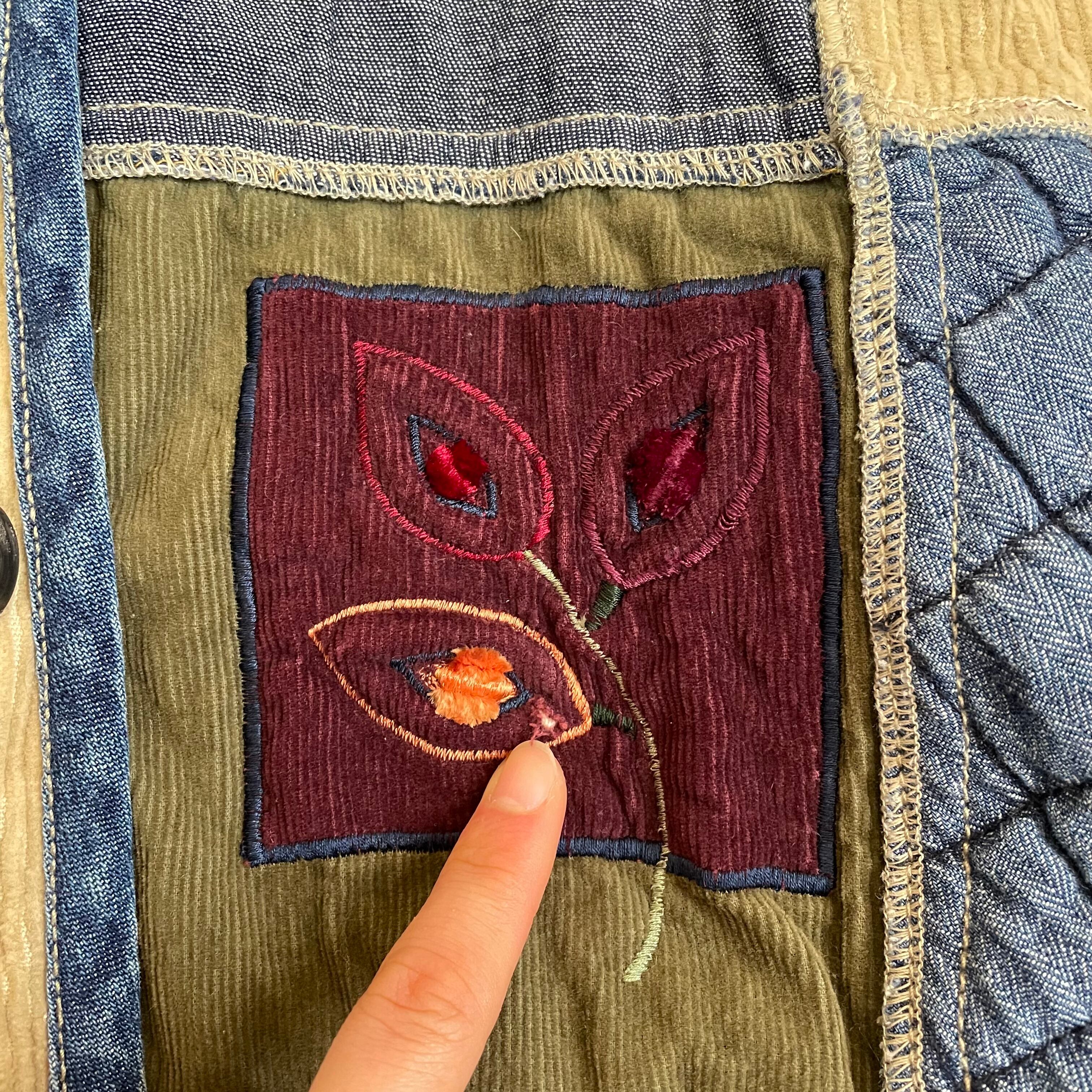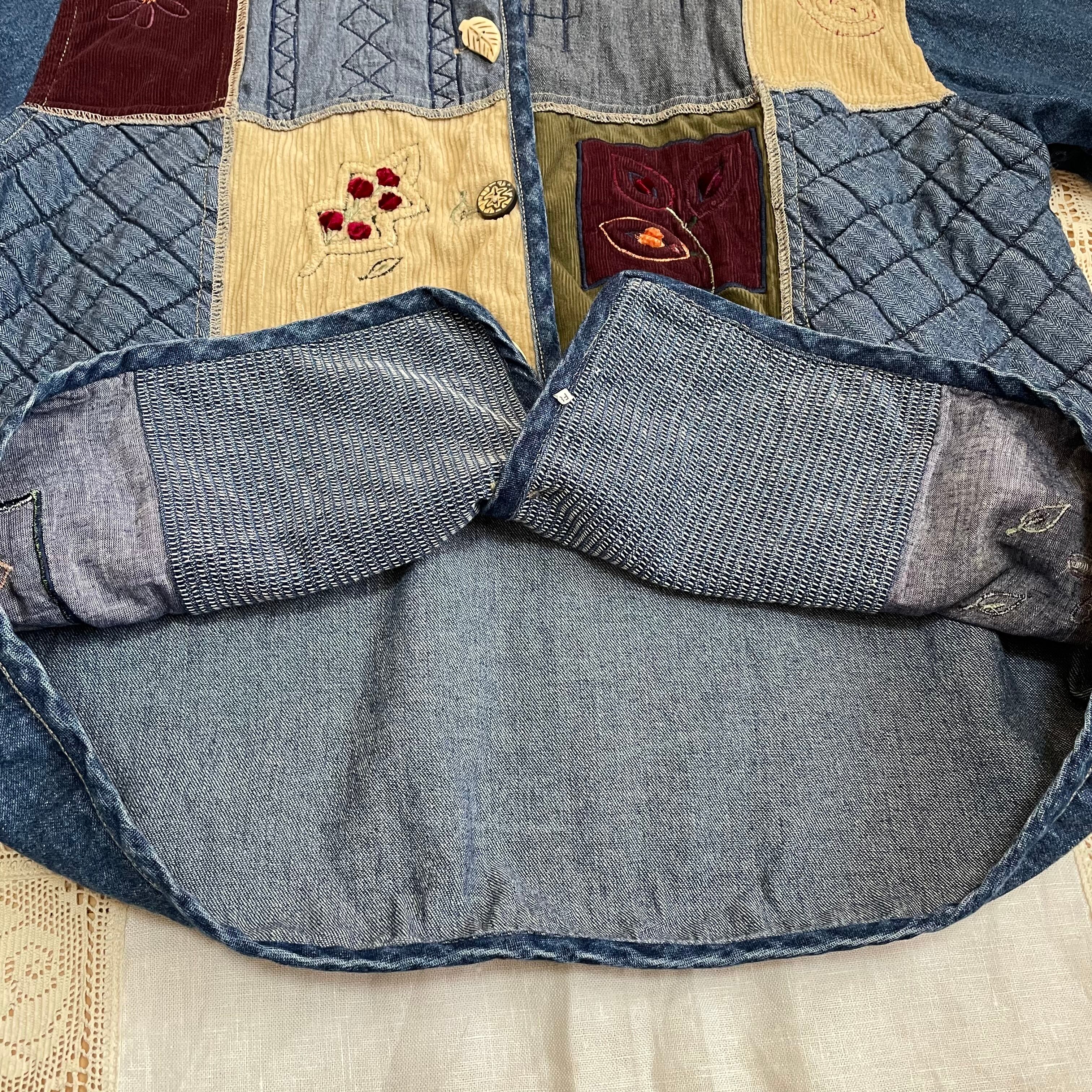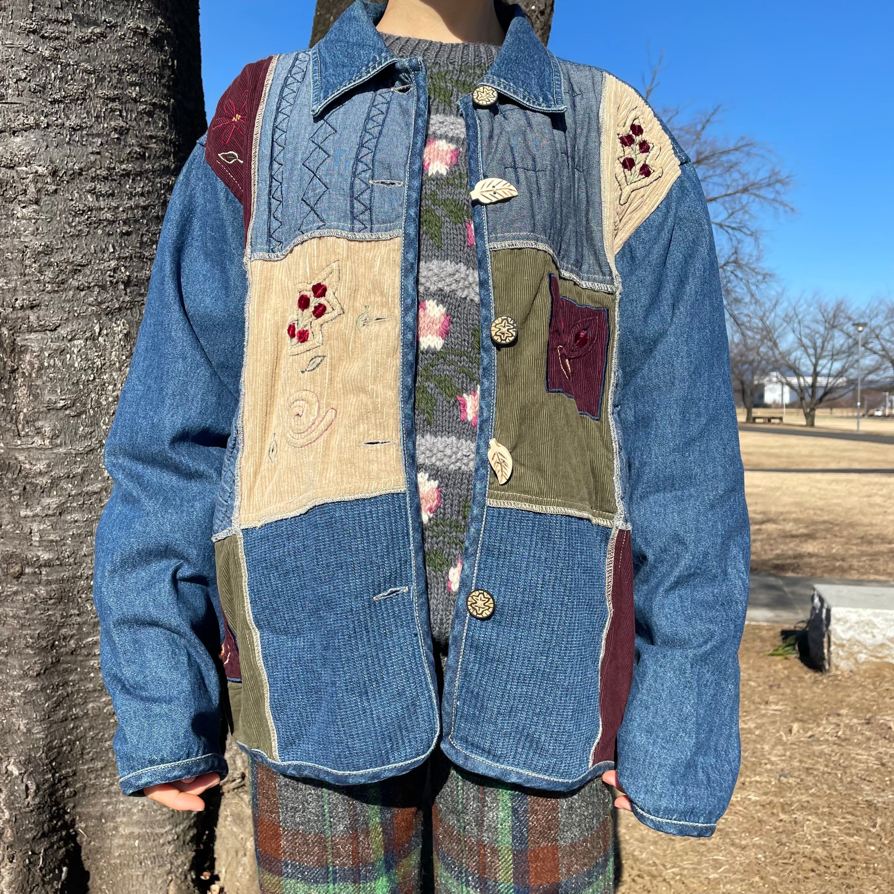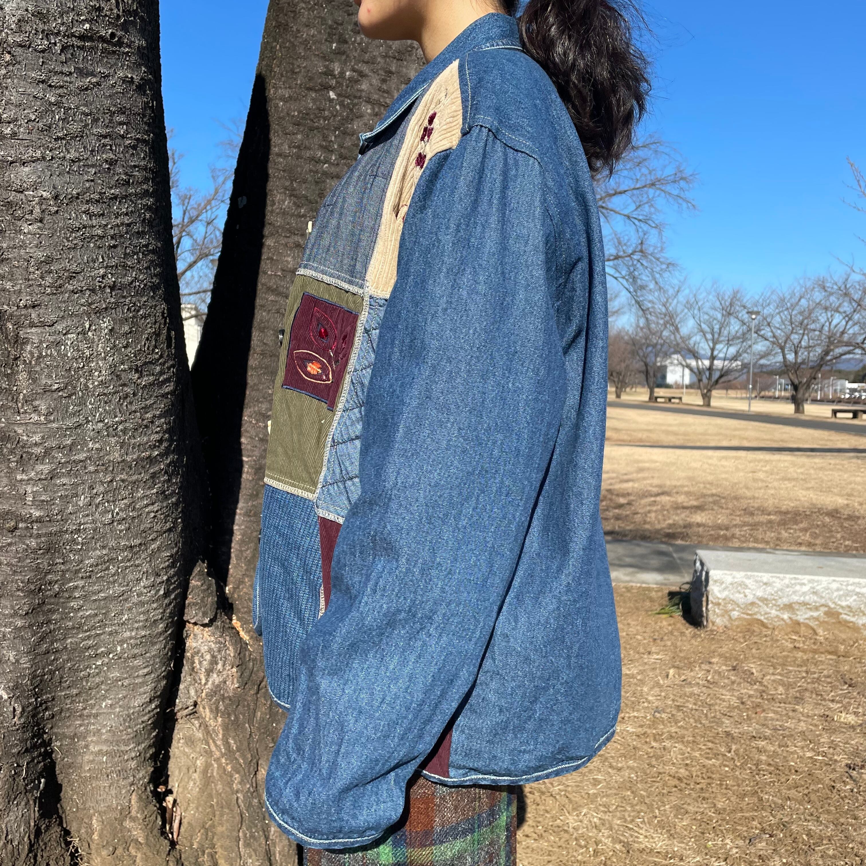 デニムジャケット デニムシャツ 古着 ヴィンテージ インド製 キルティング コーデュロイ 刺繍 KP7