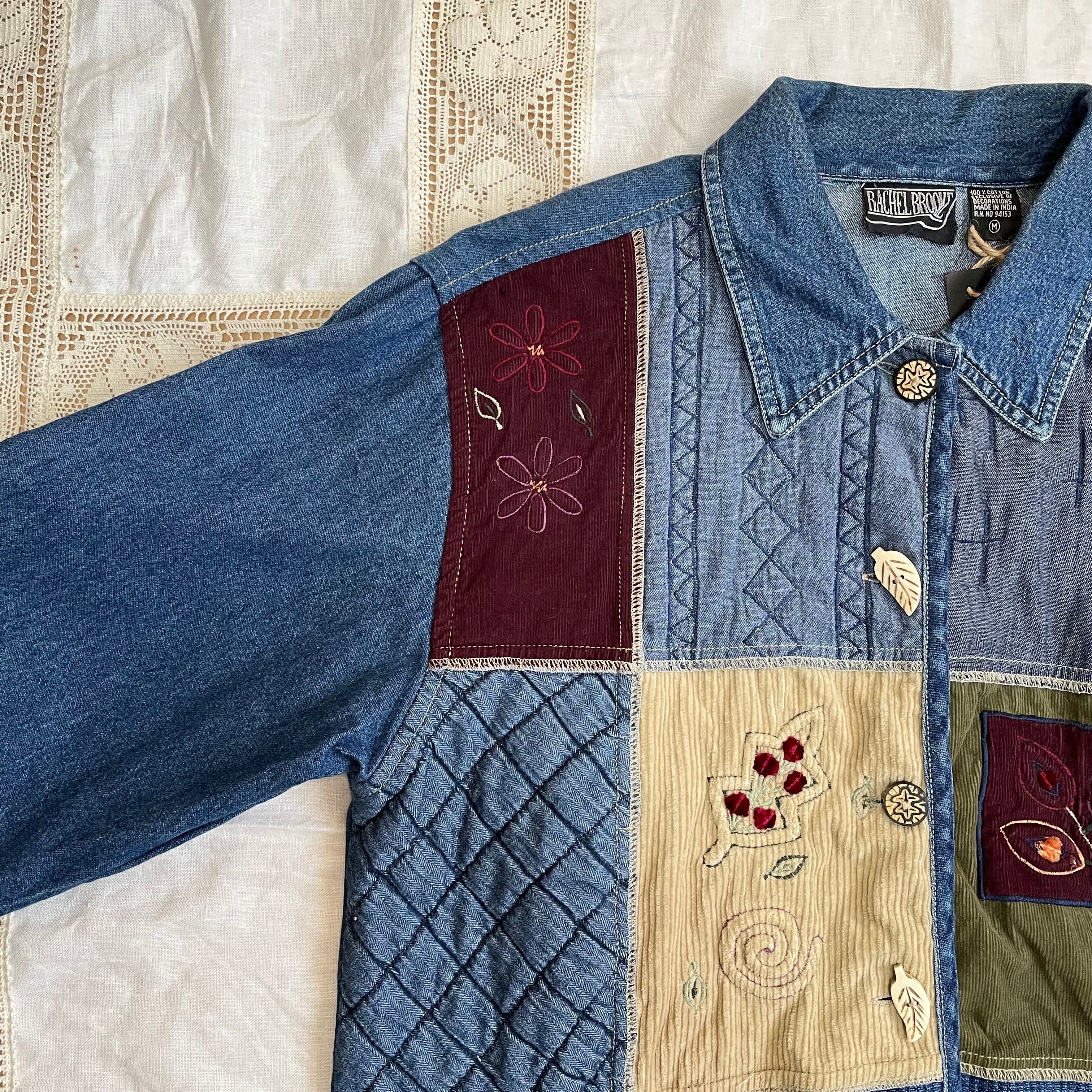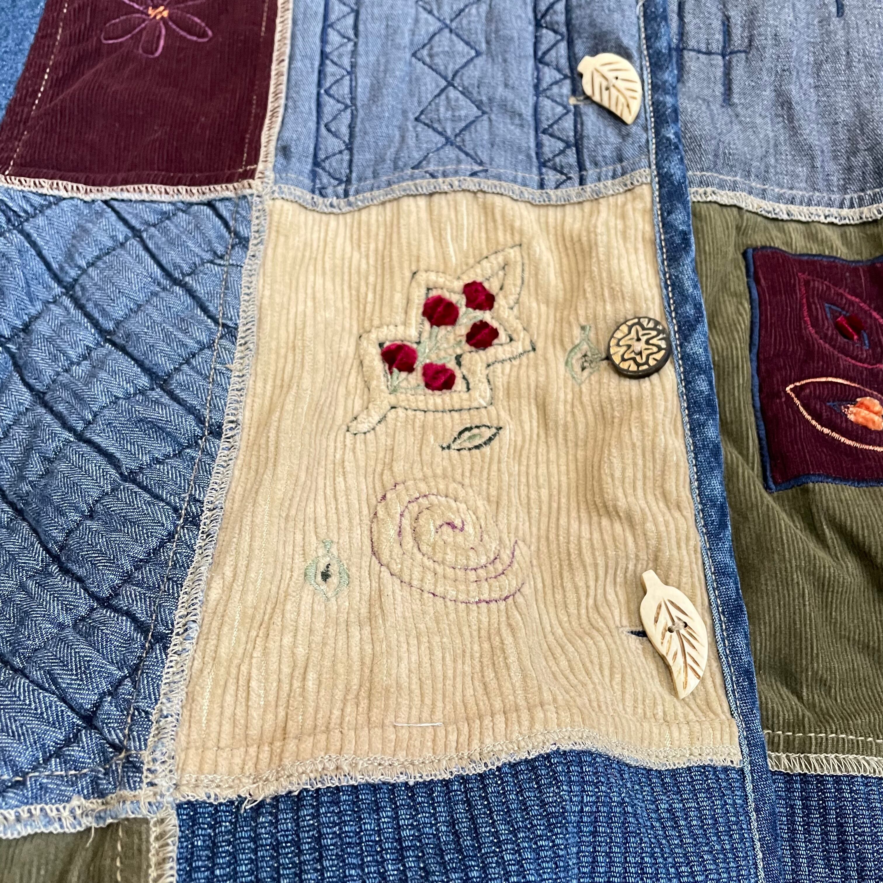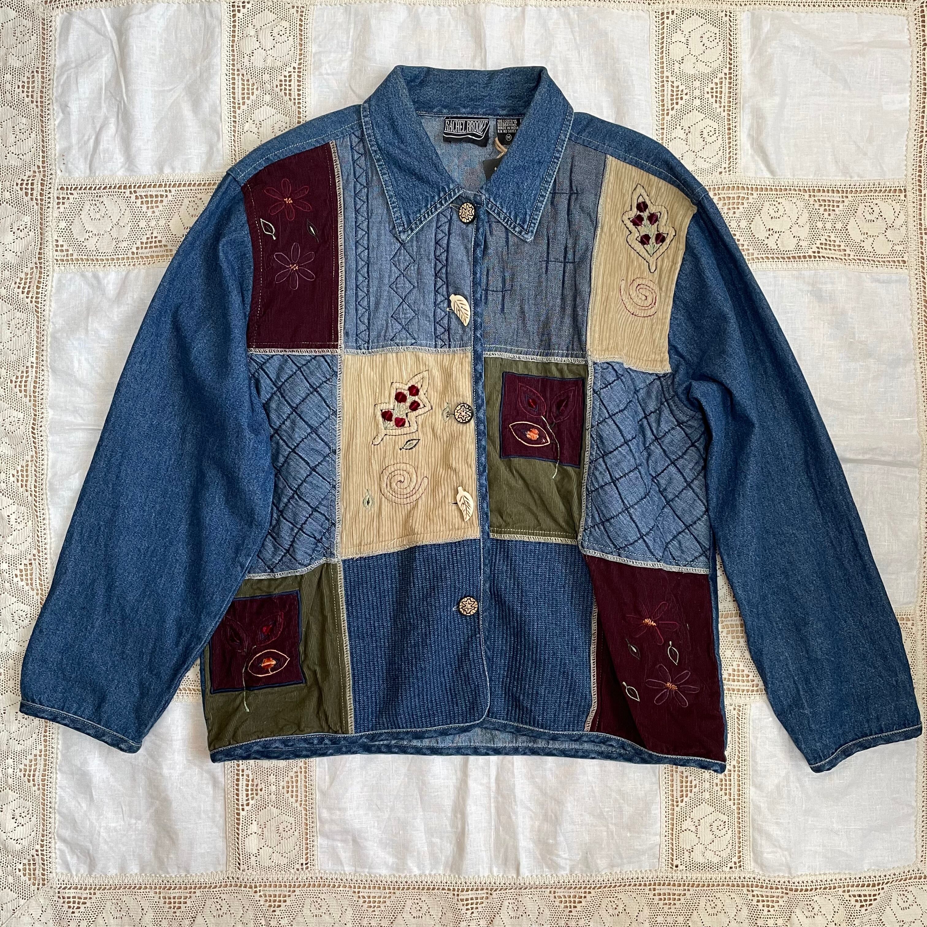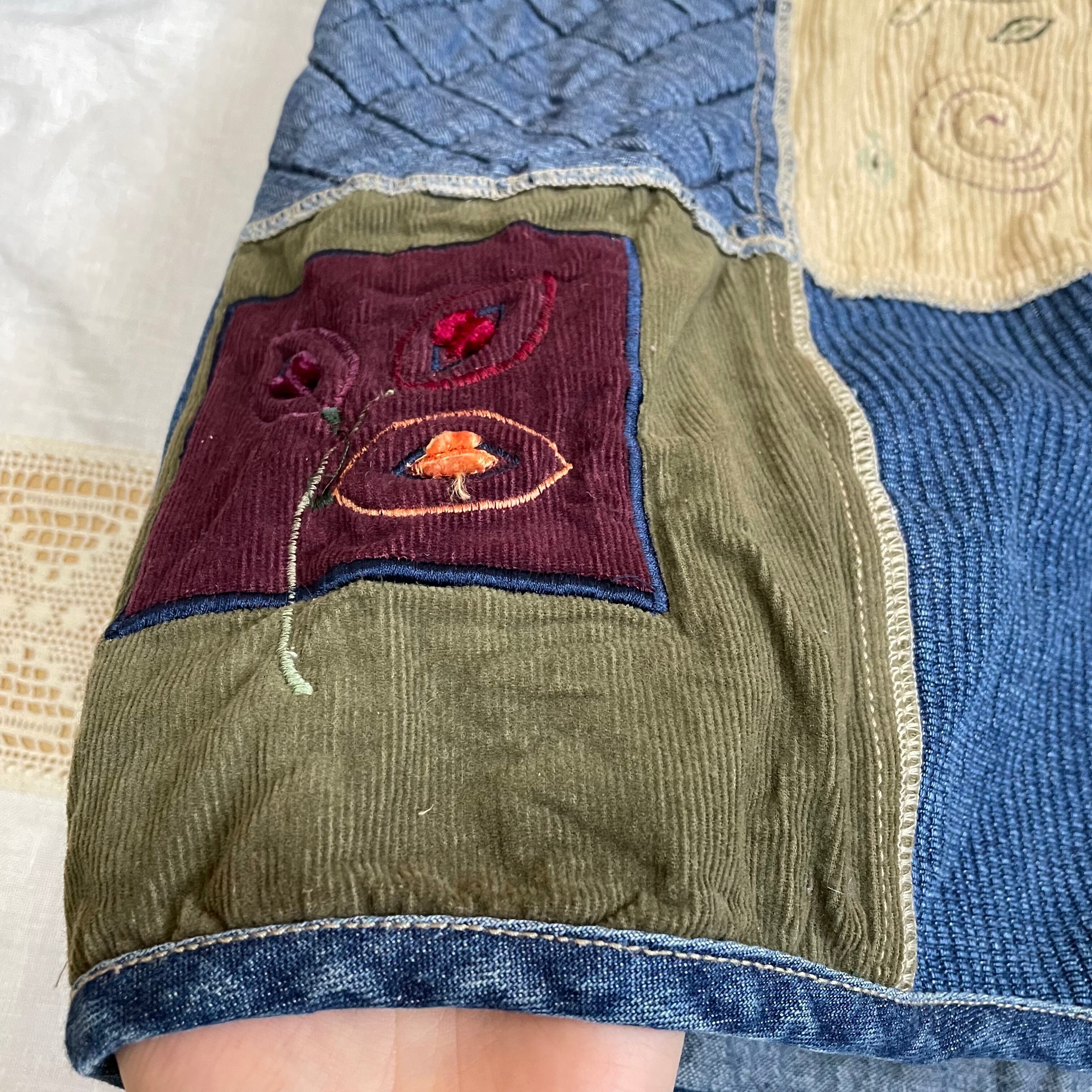 デニムジャケット デニムシャツ 古着 ヴィンテージ インド製 キルティング コーデュロイ 刺繍 KP7