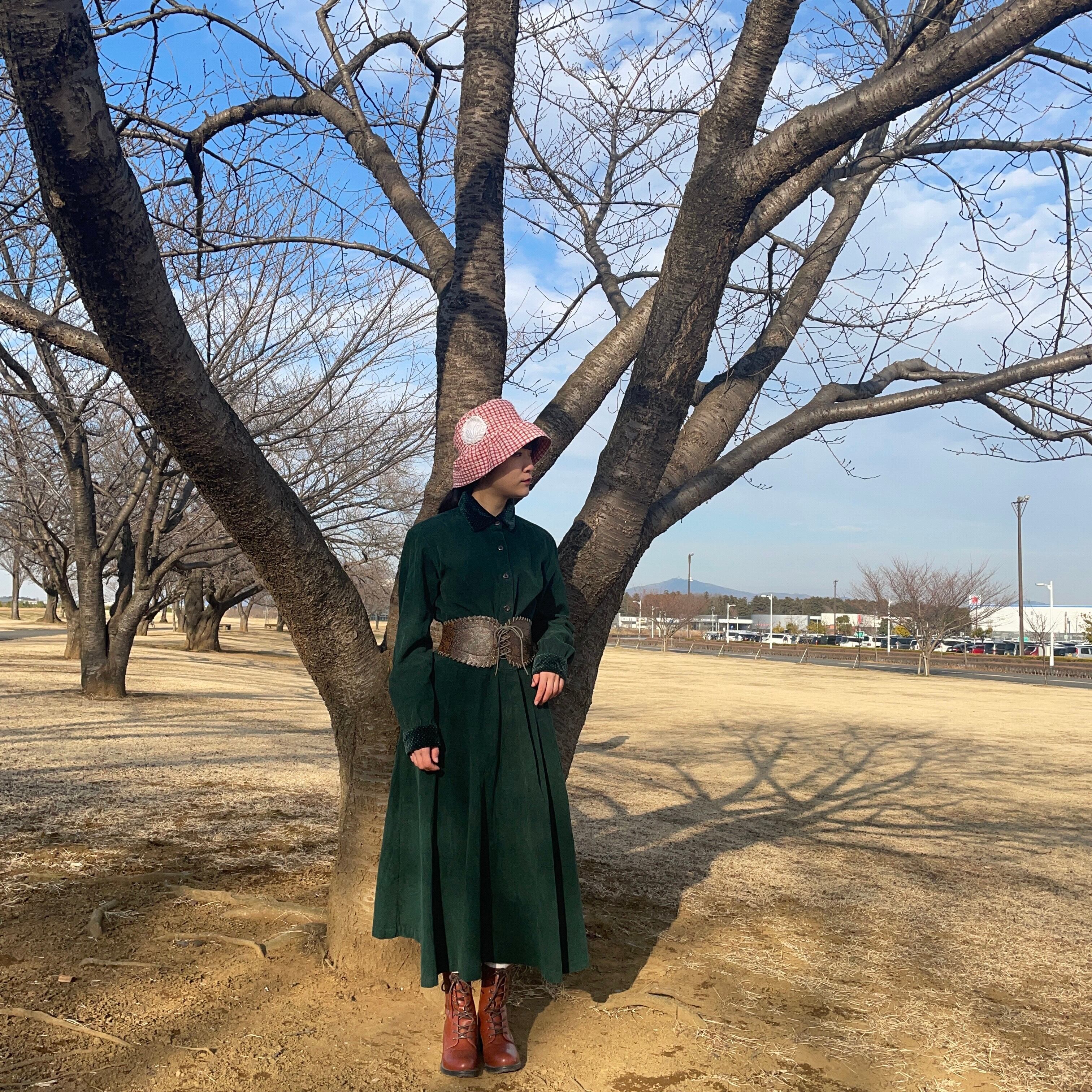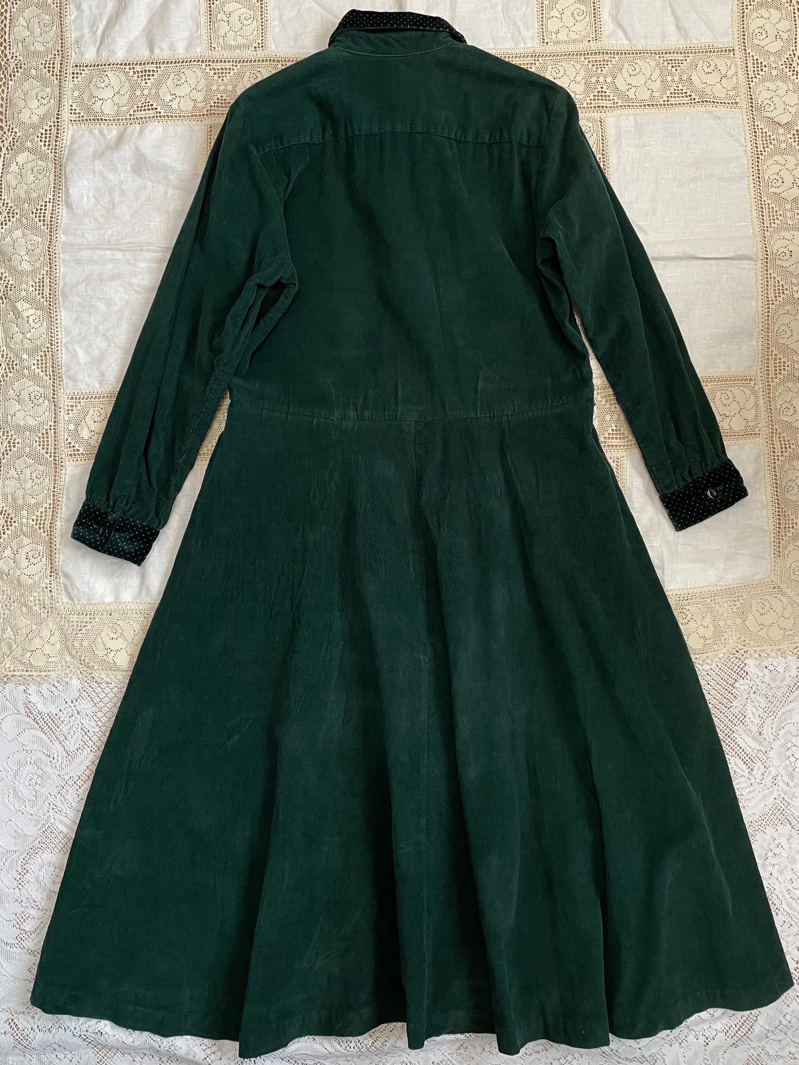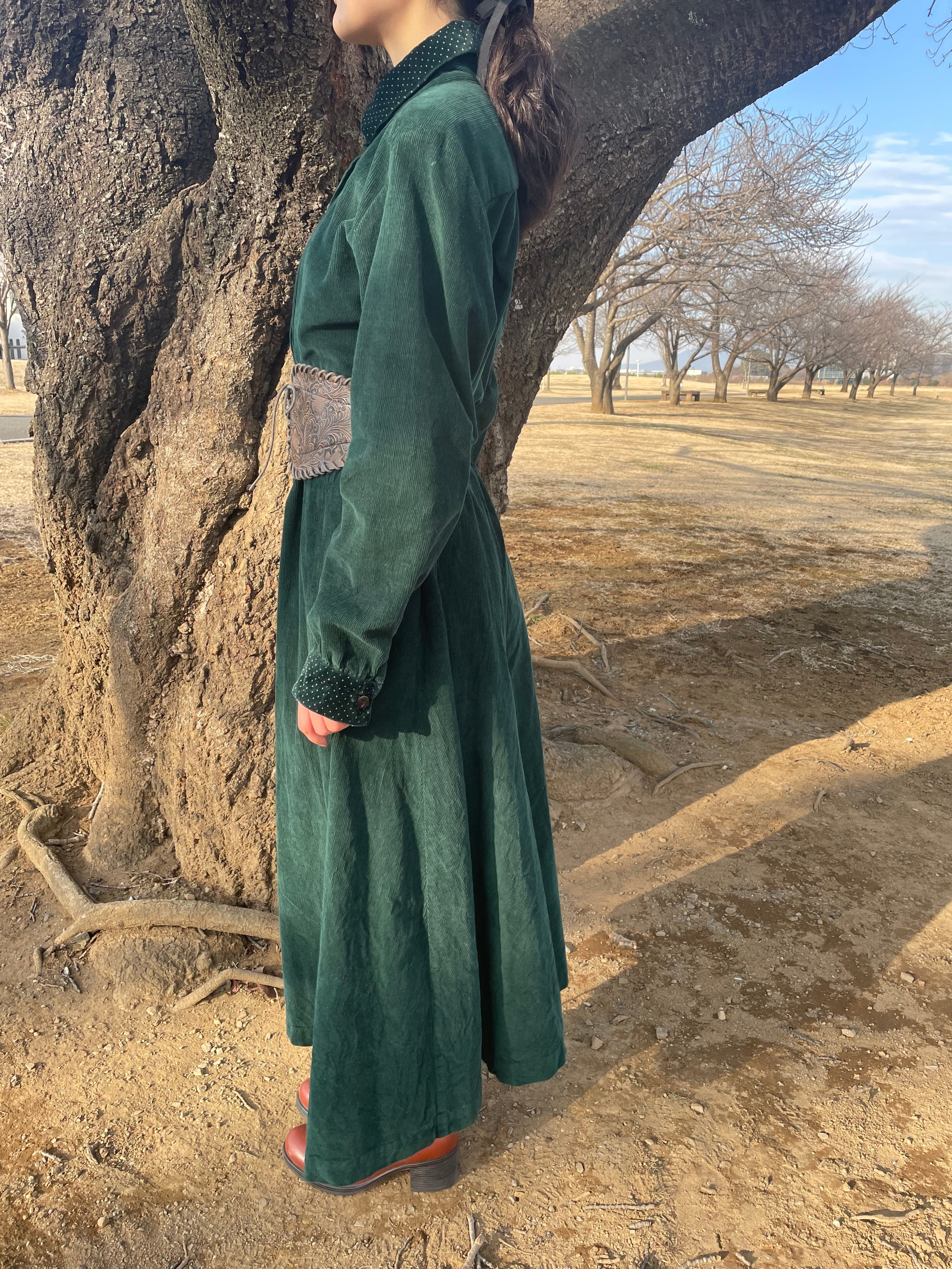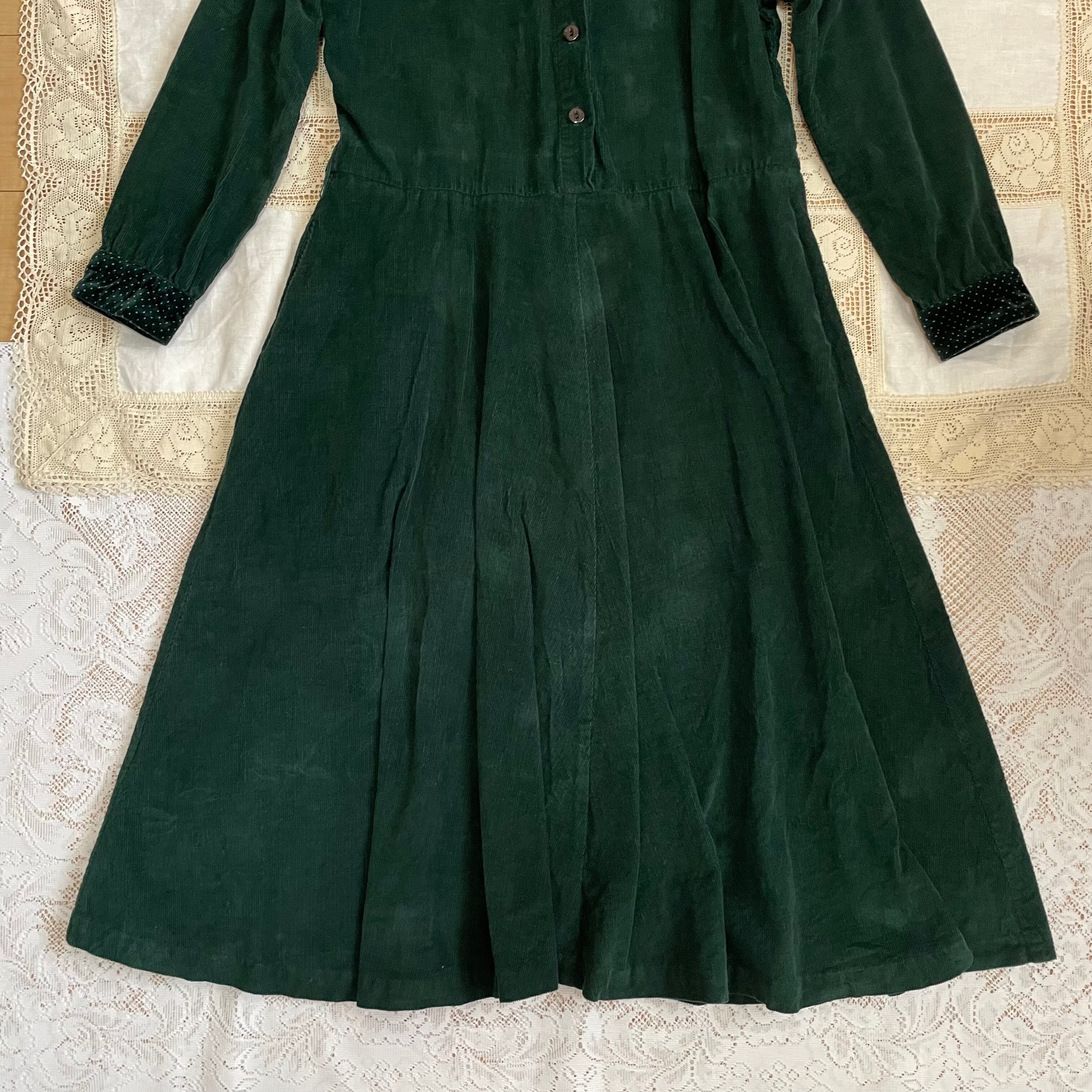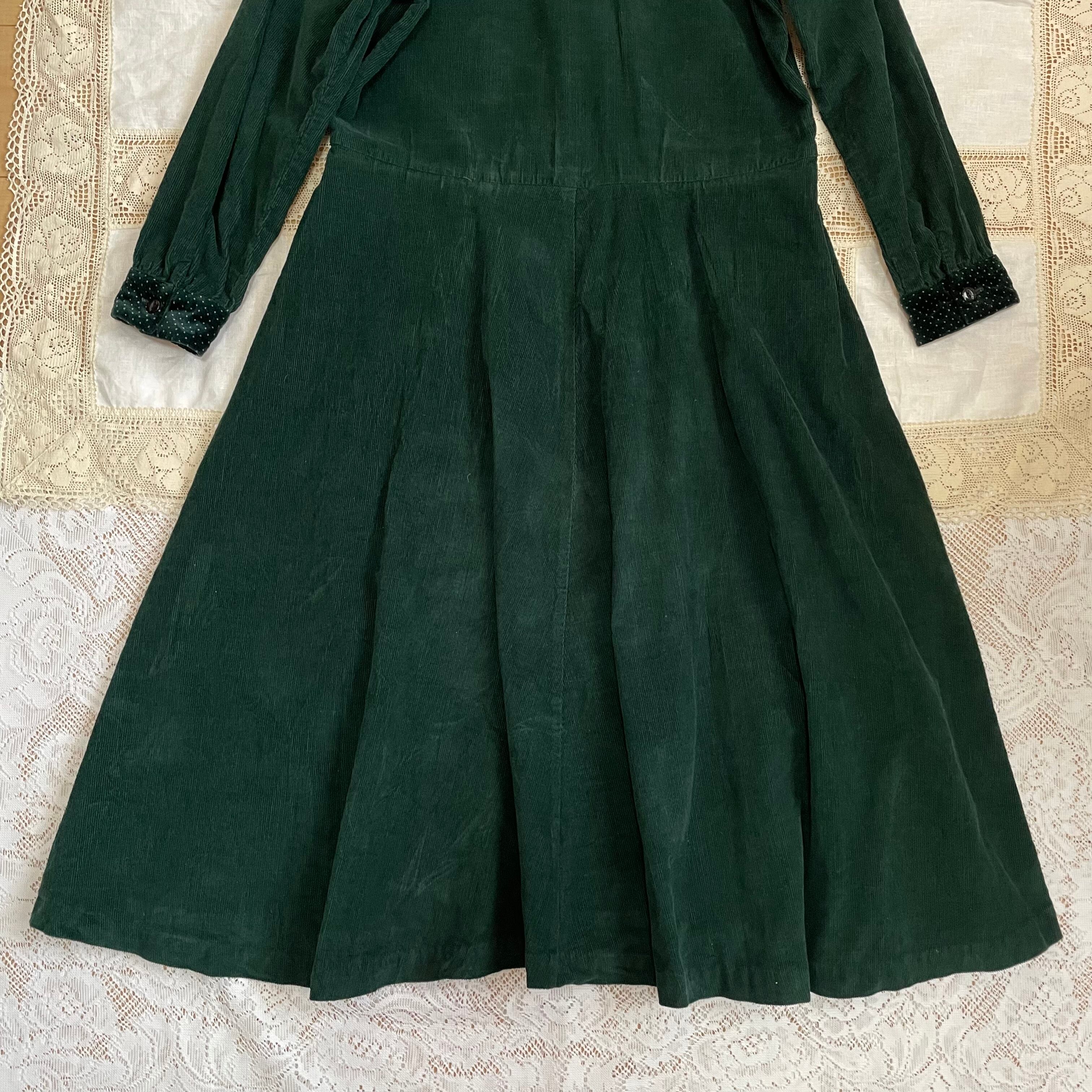 ワンピース 古着 ヴィンテージ ORVIS 90s コーデュロイ ベロア ドット グリーン KP10