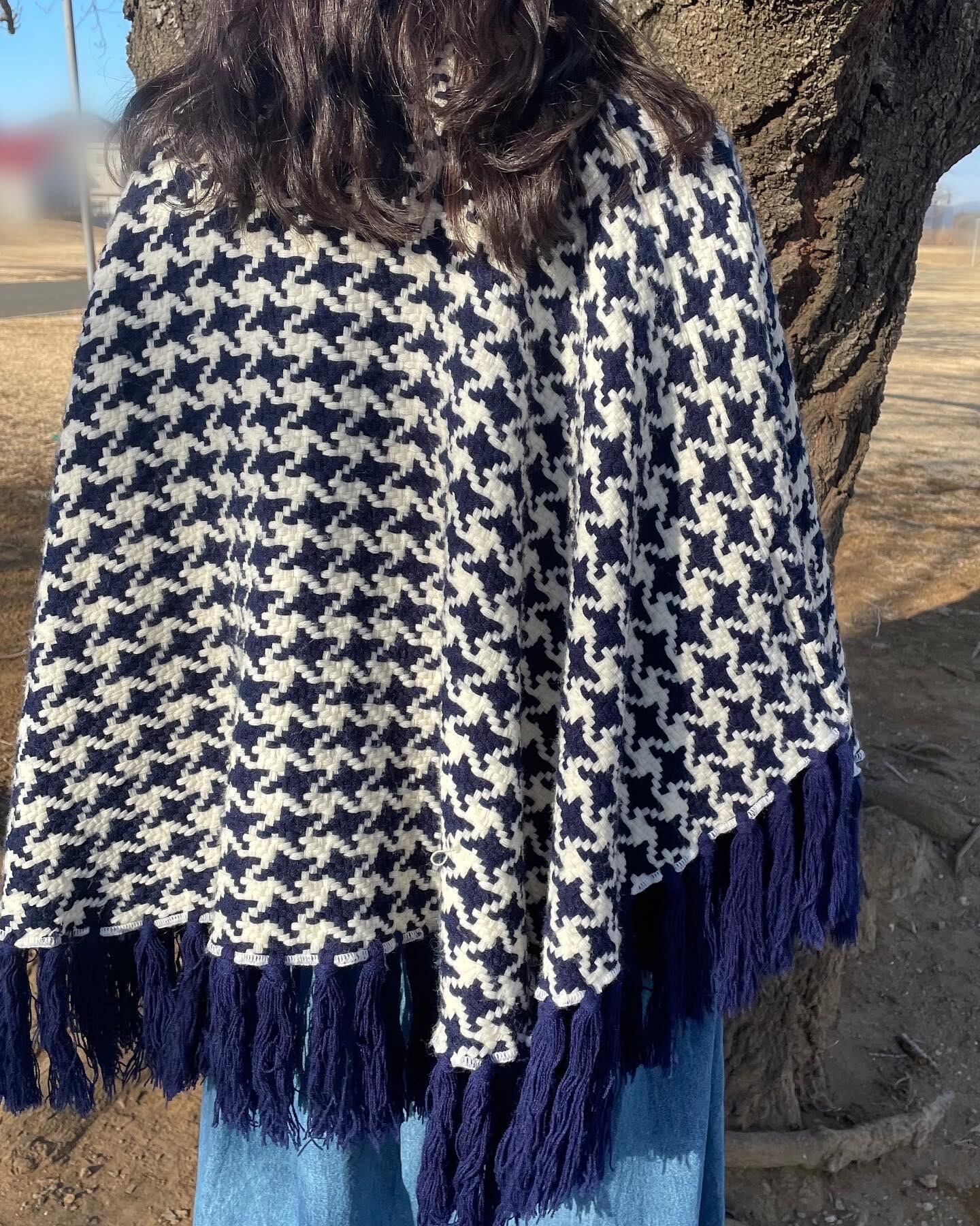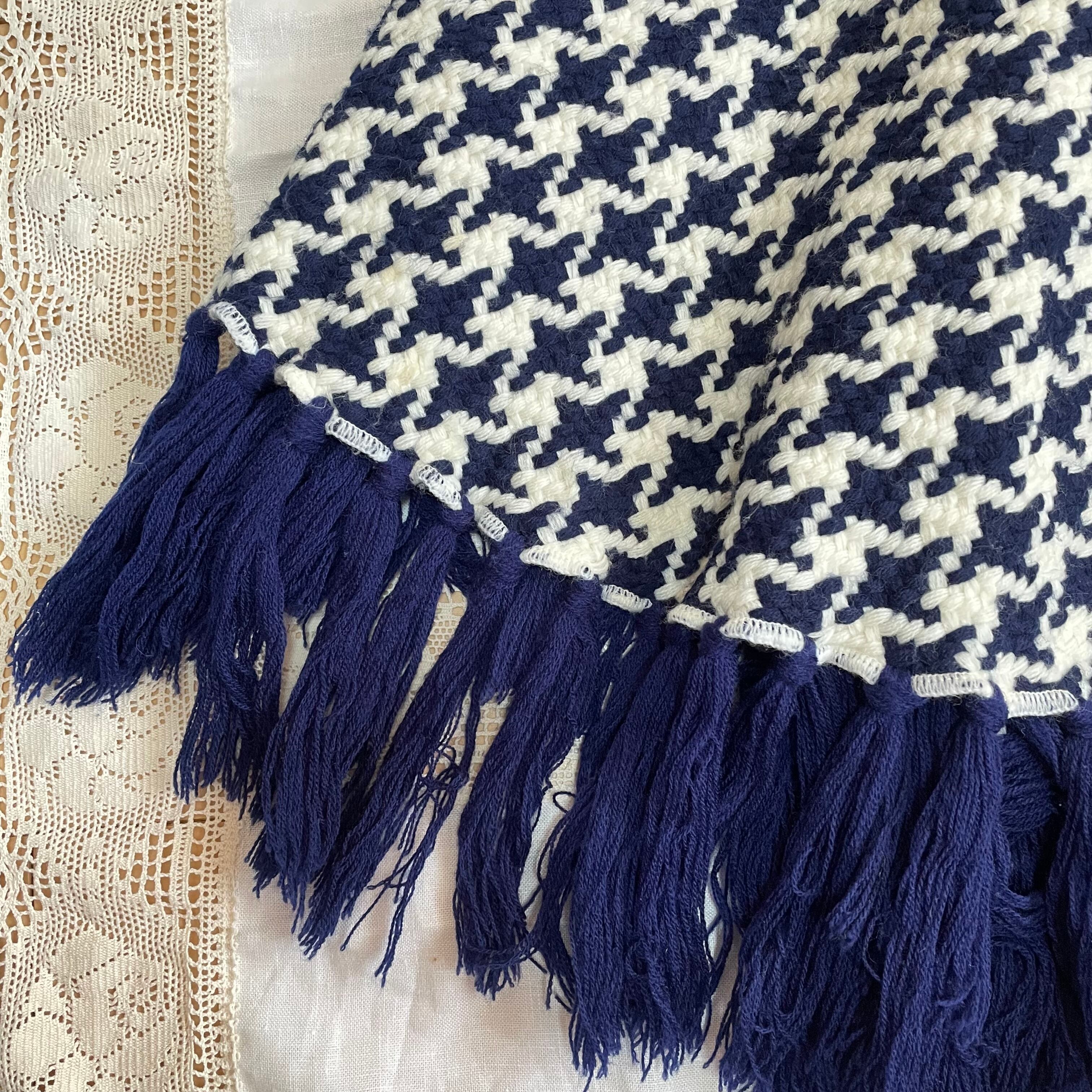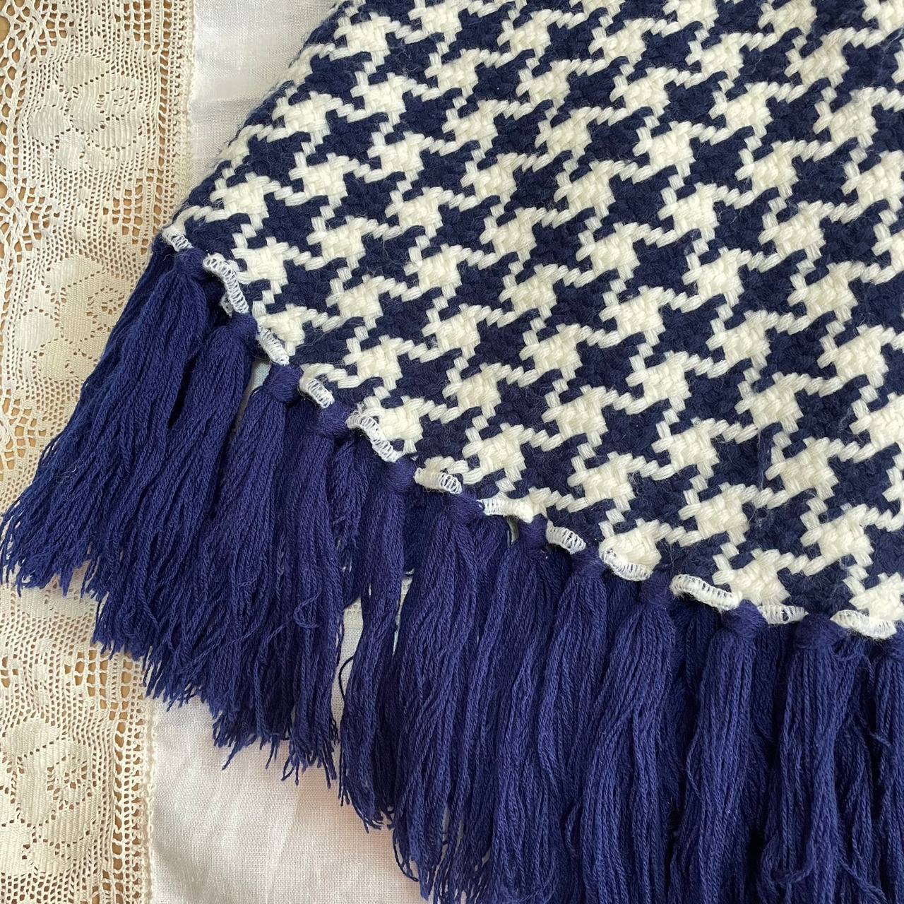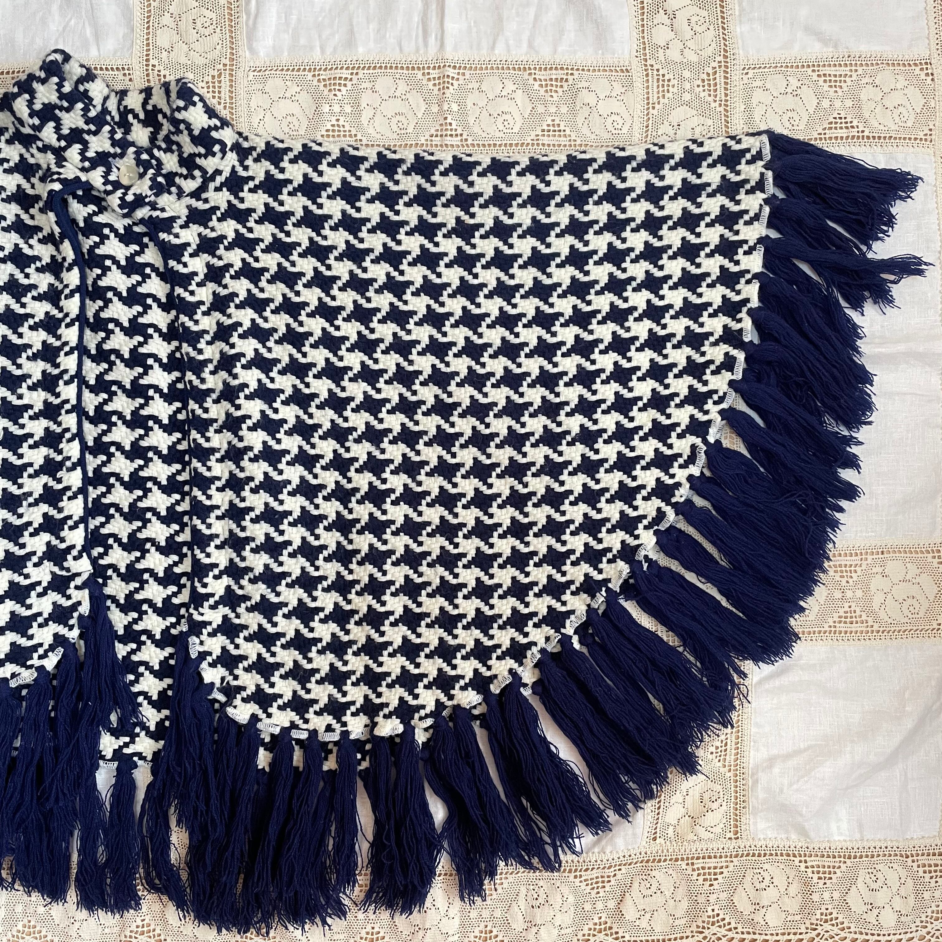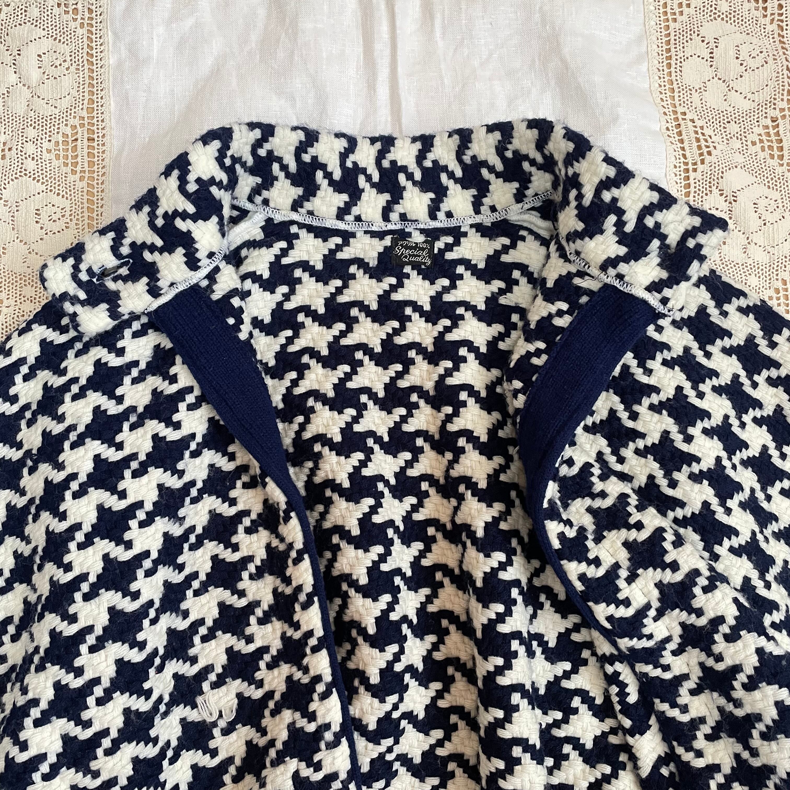 ケープ ポンチョ 古着 レトロ ニットアウター 千鳥柄 ブルー ホワイト KP12