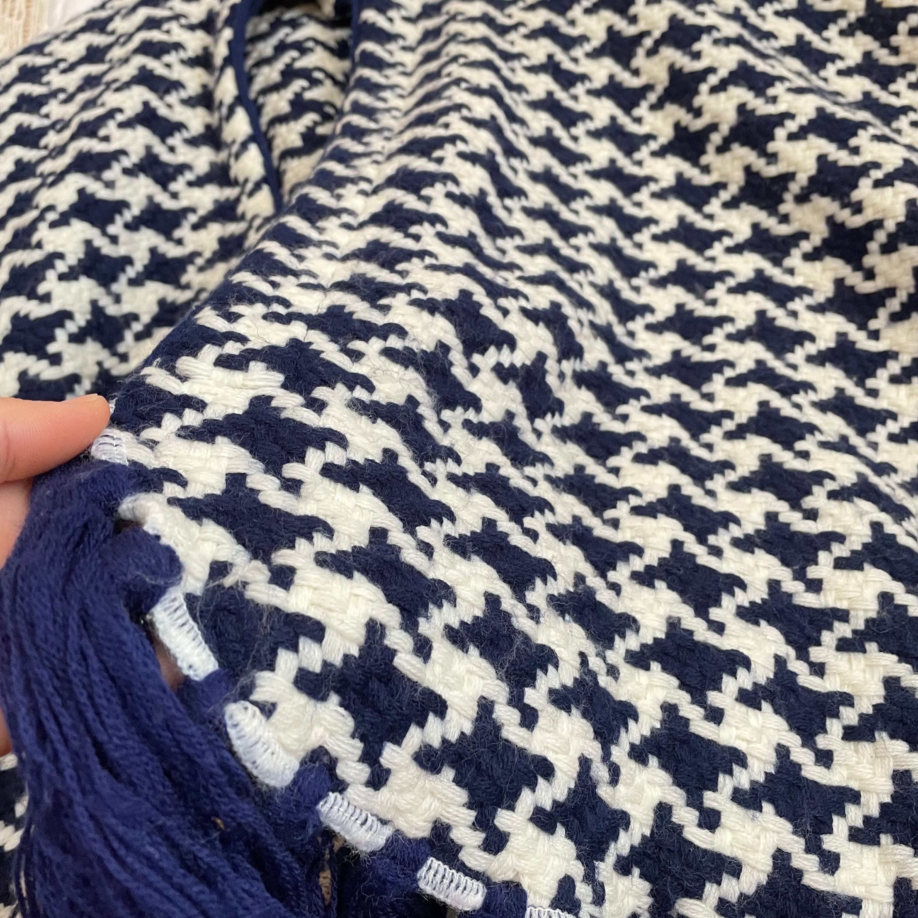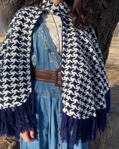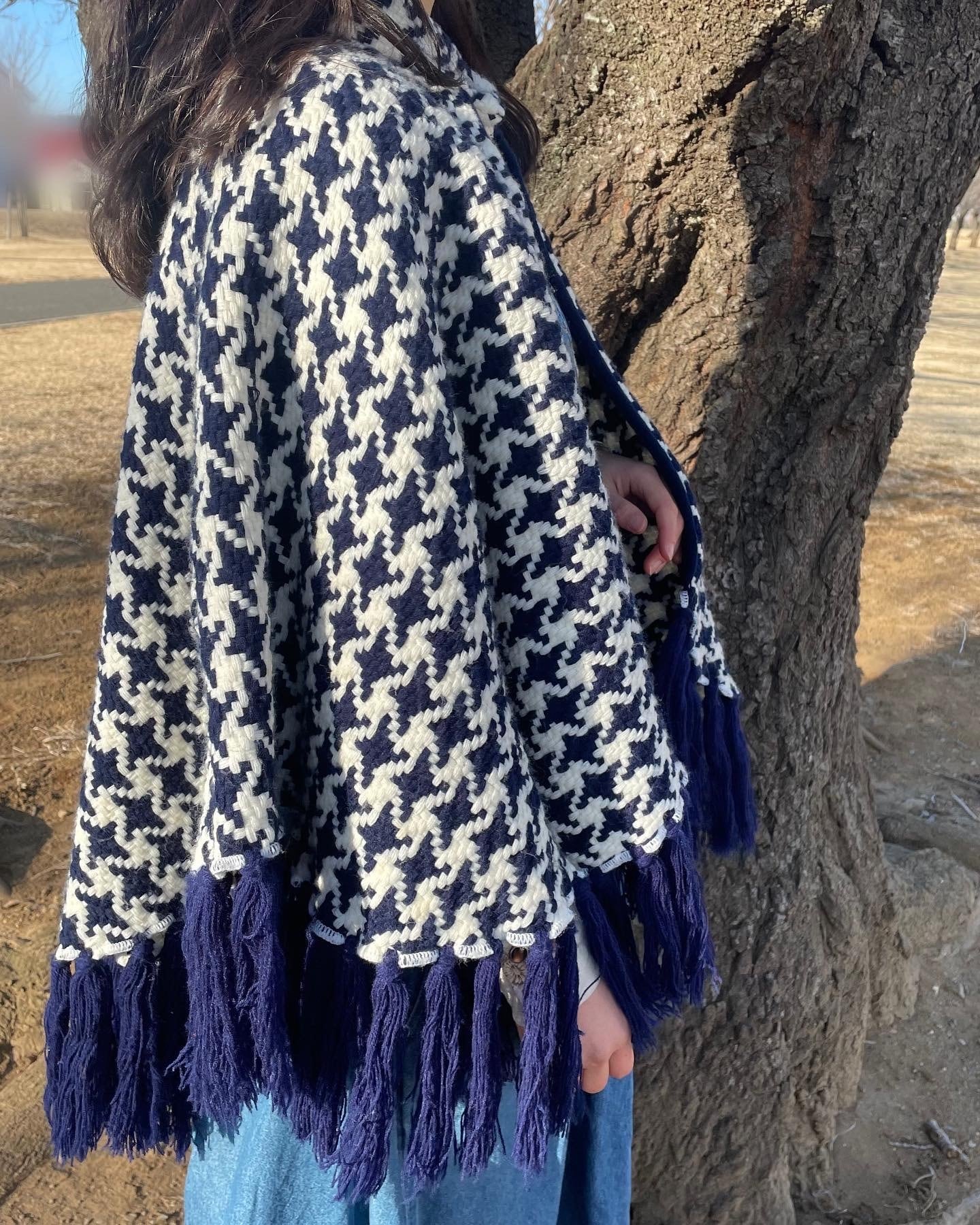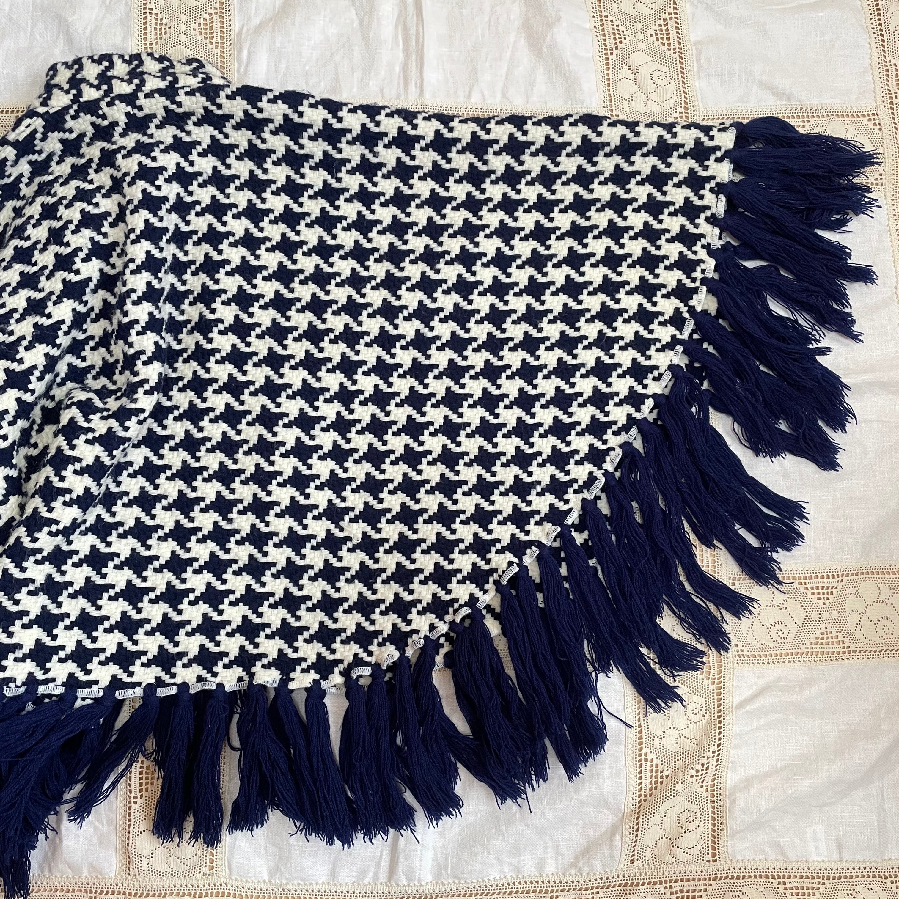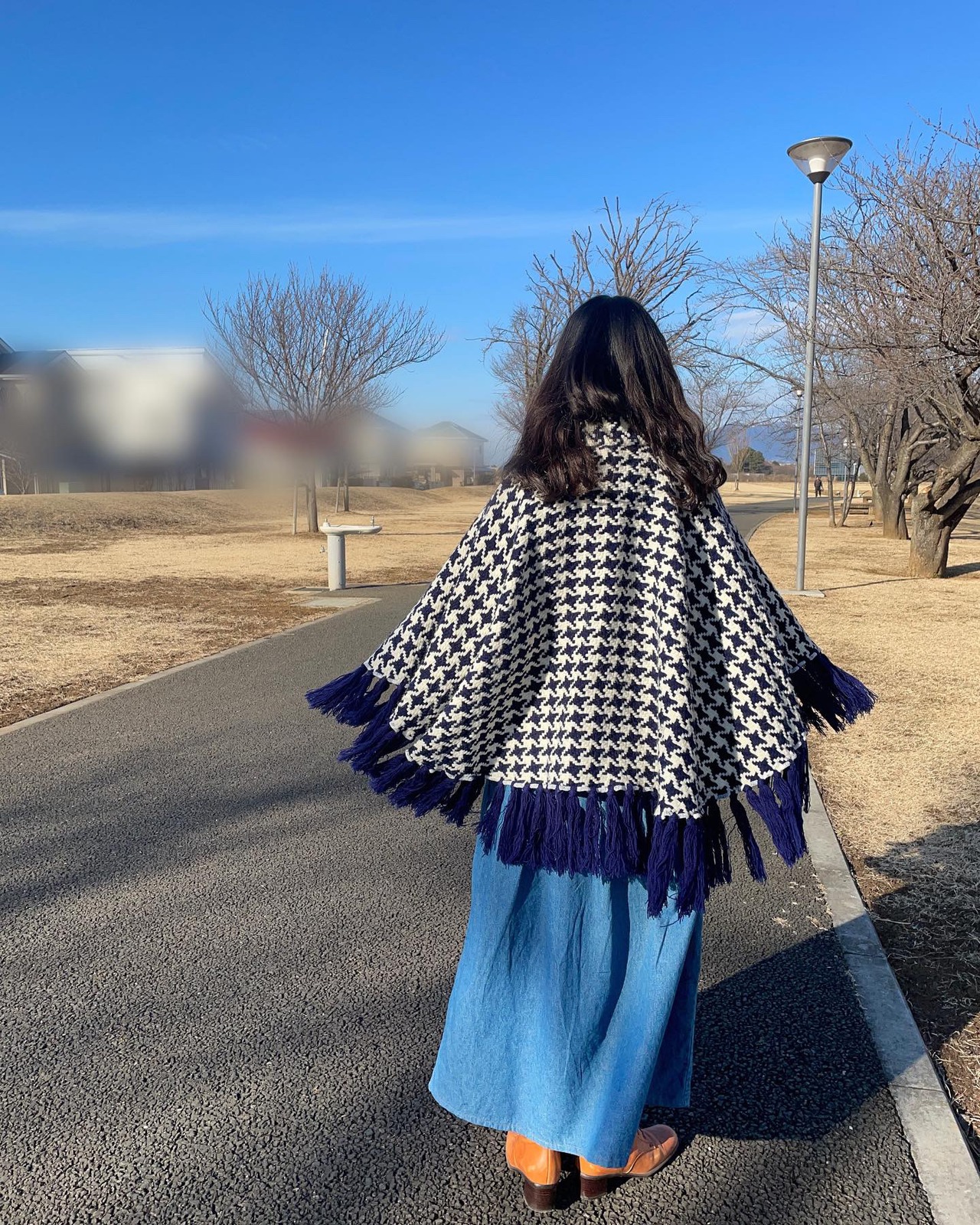 ケープ ポンチョ 古着 レトロ ニットアウター 千鳥柄 ブルー ホワイト KP12