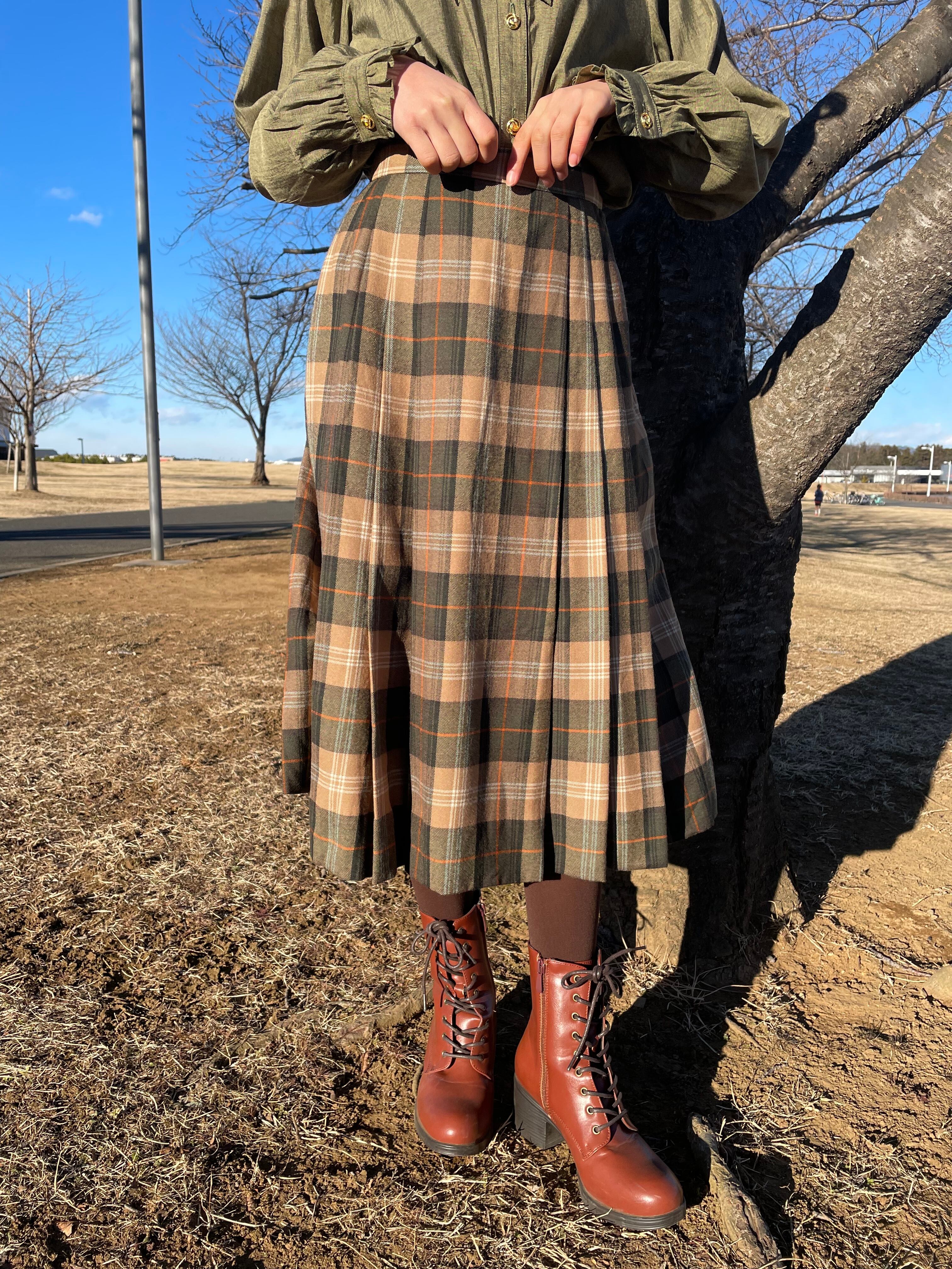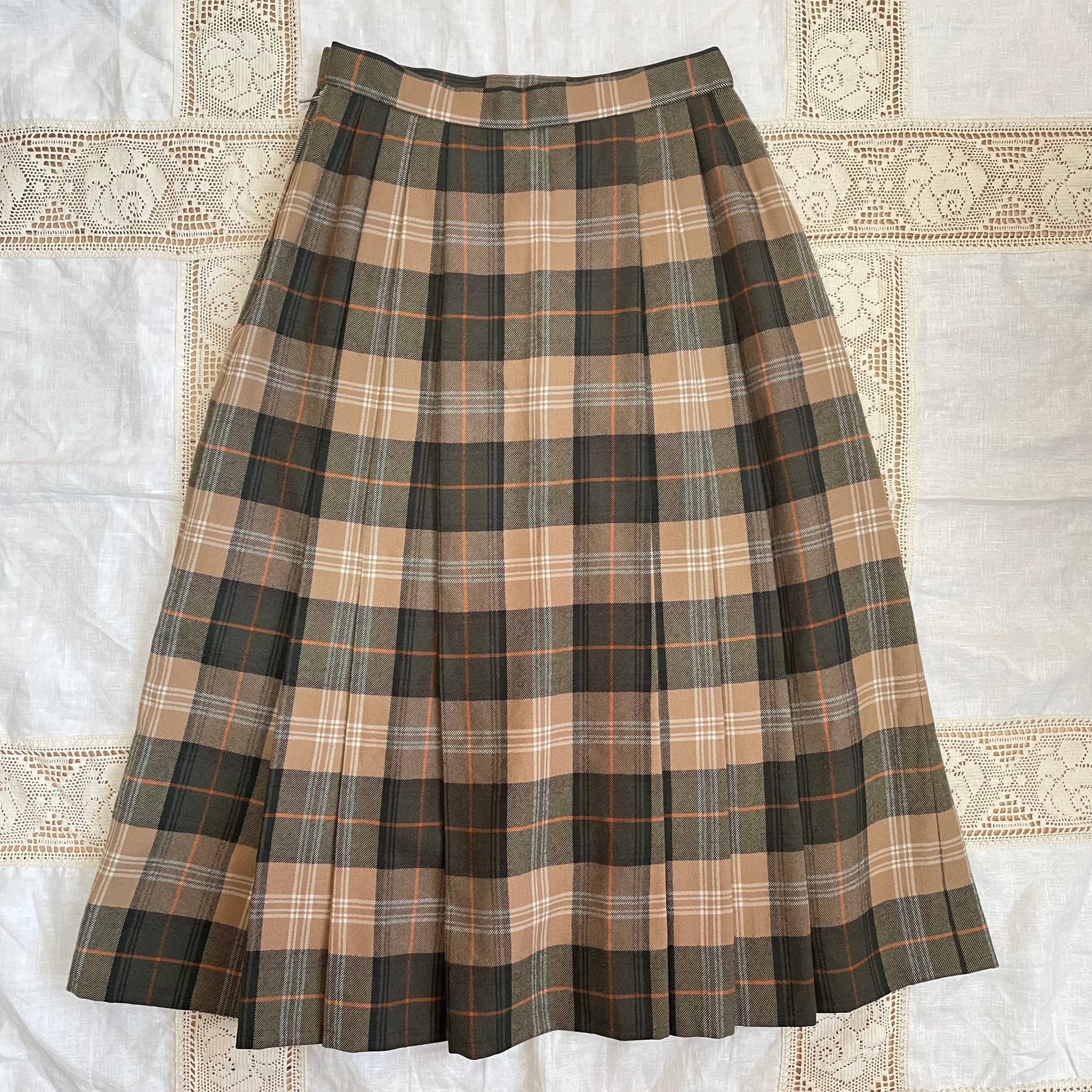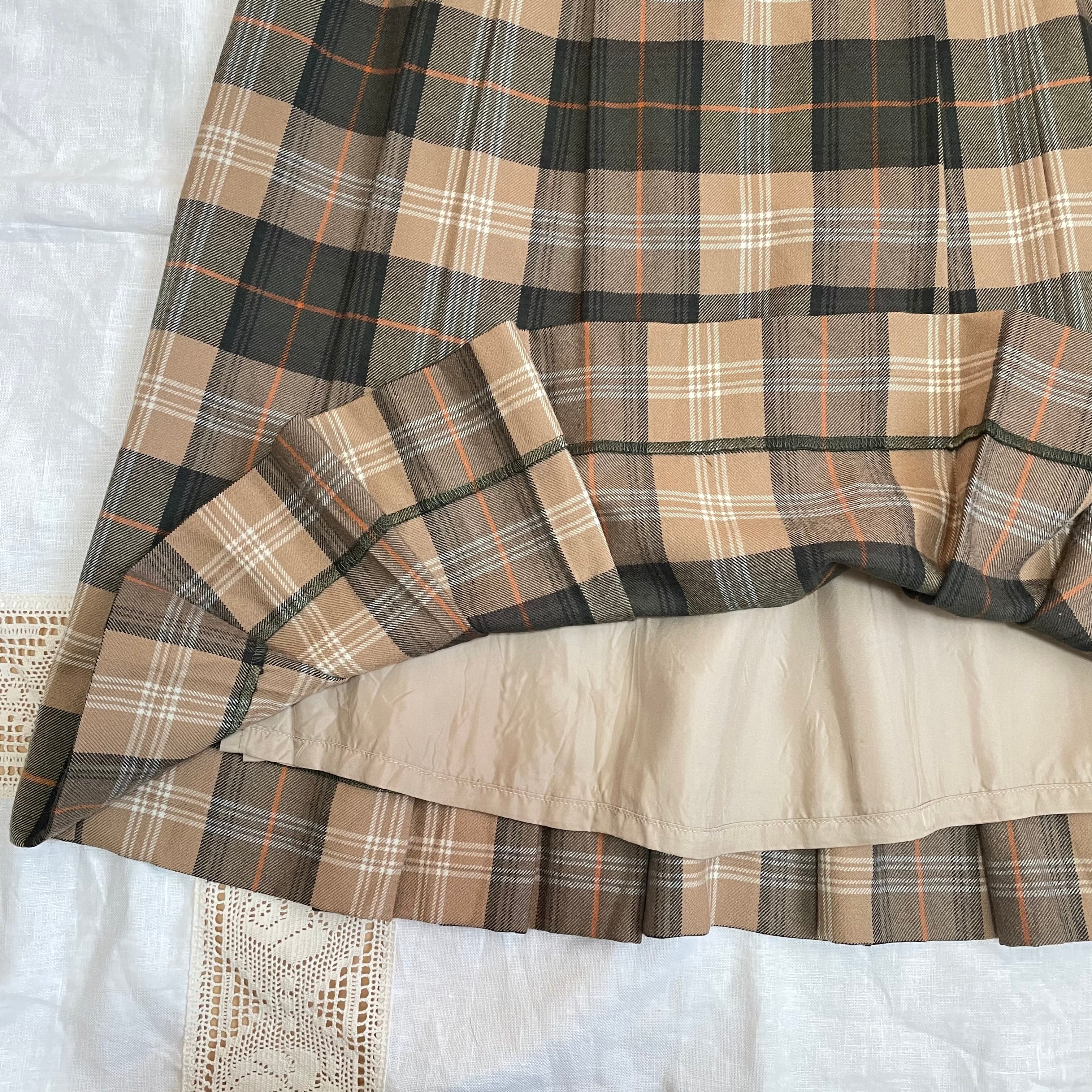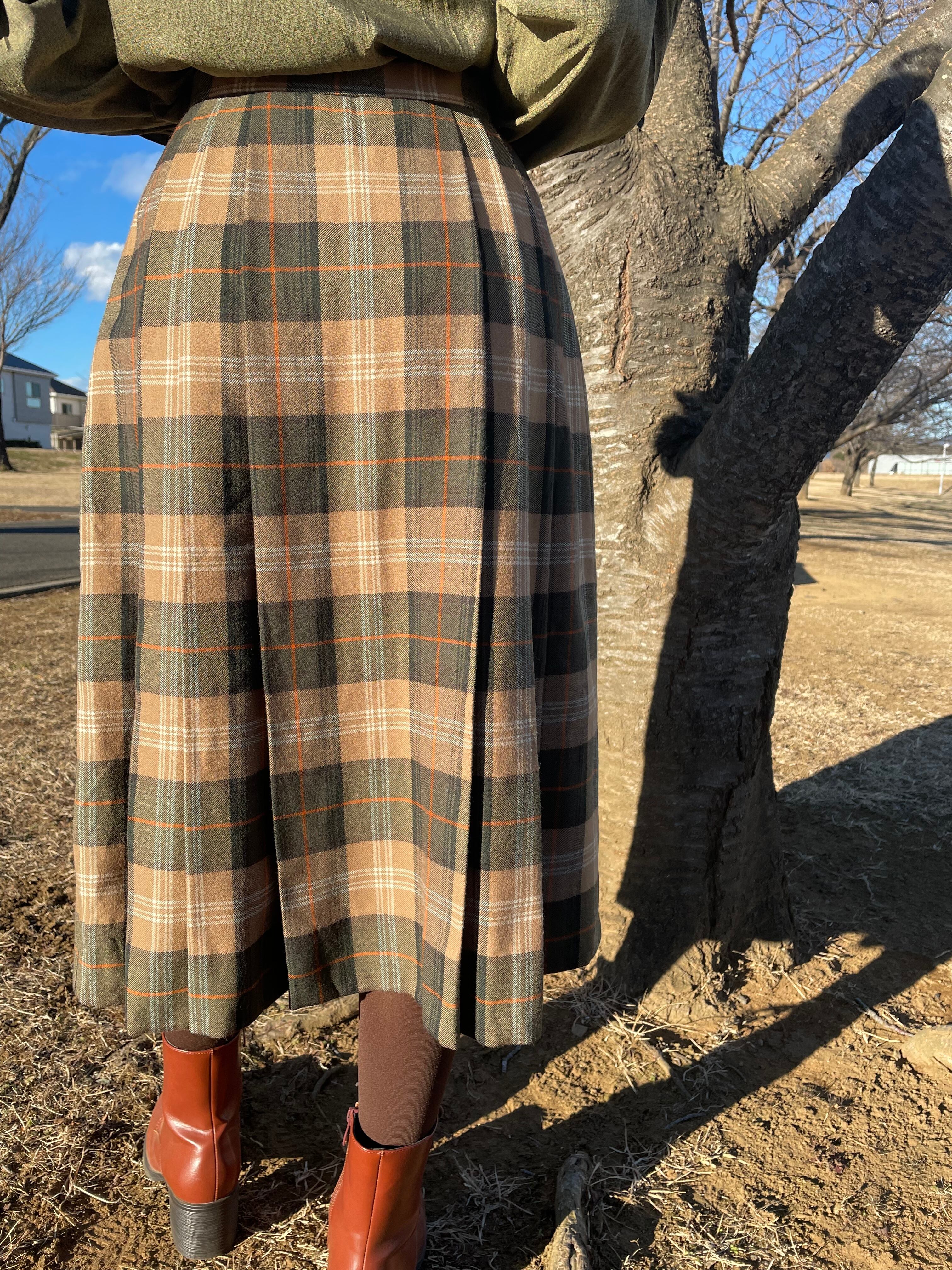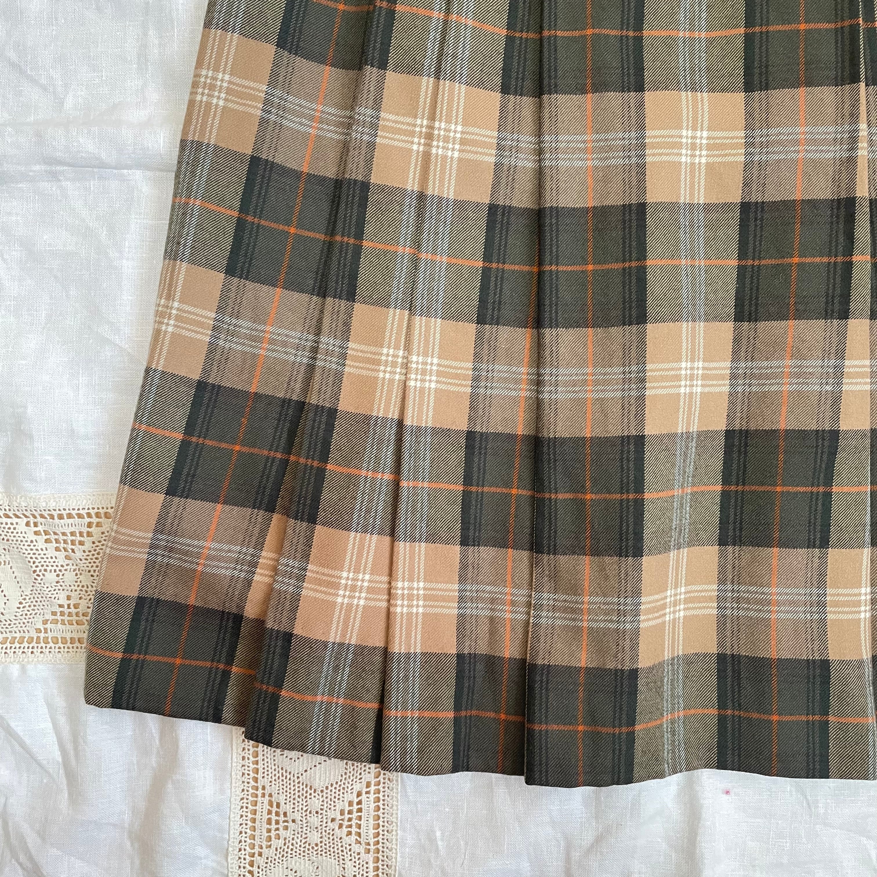 check patterned skirt 古着 レトロ チェック スカート THE SCOTCH HOUSE ベージュ グリーン OF86