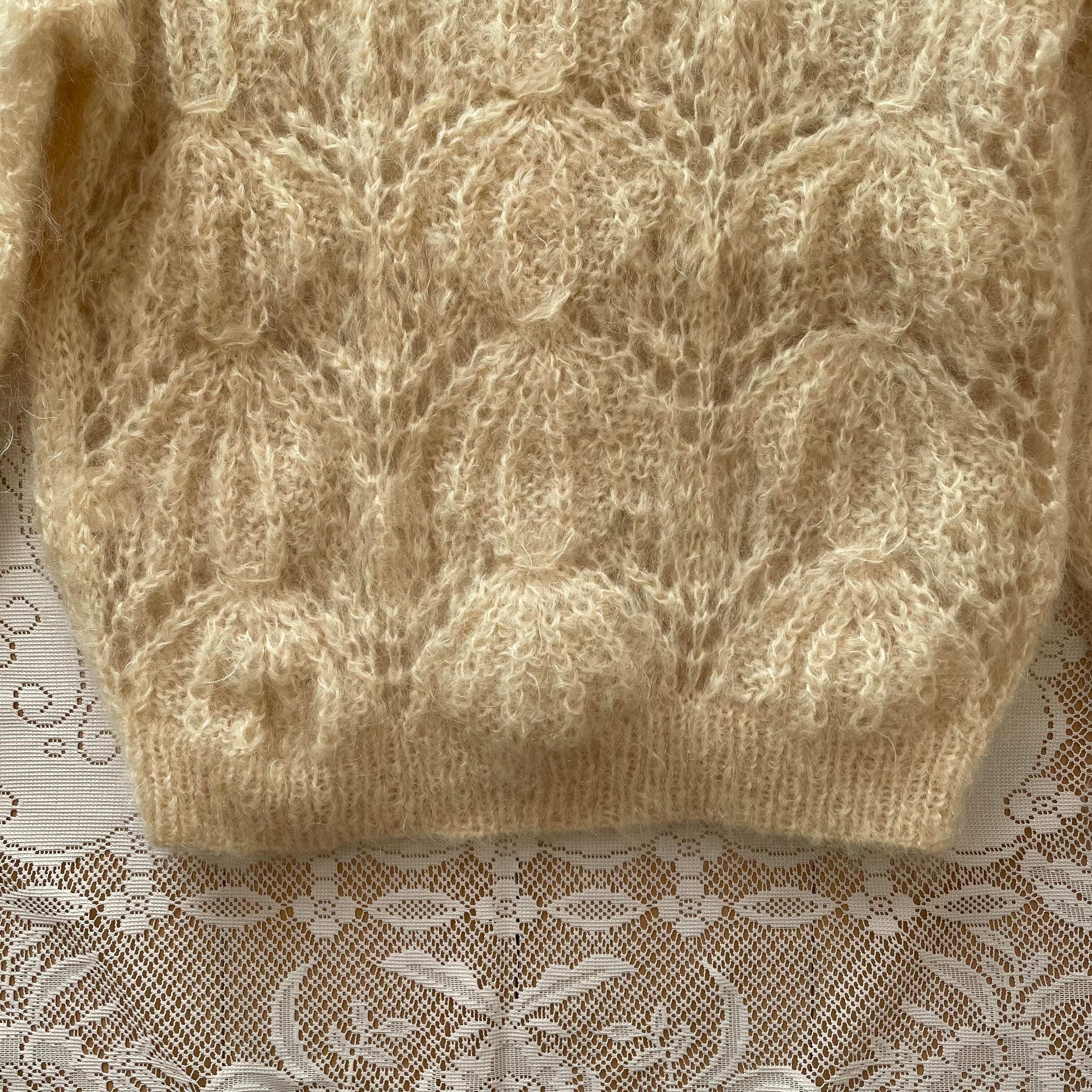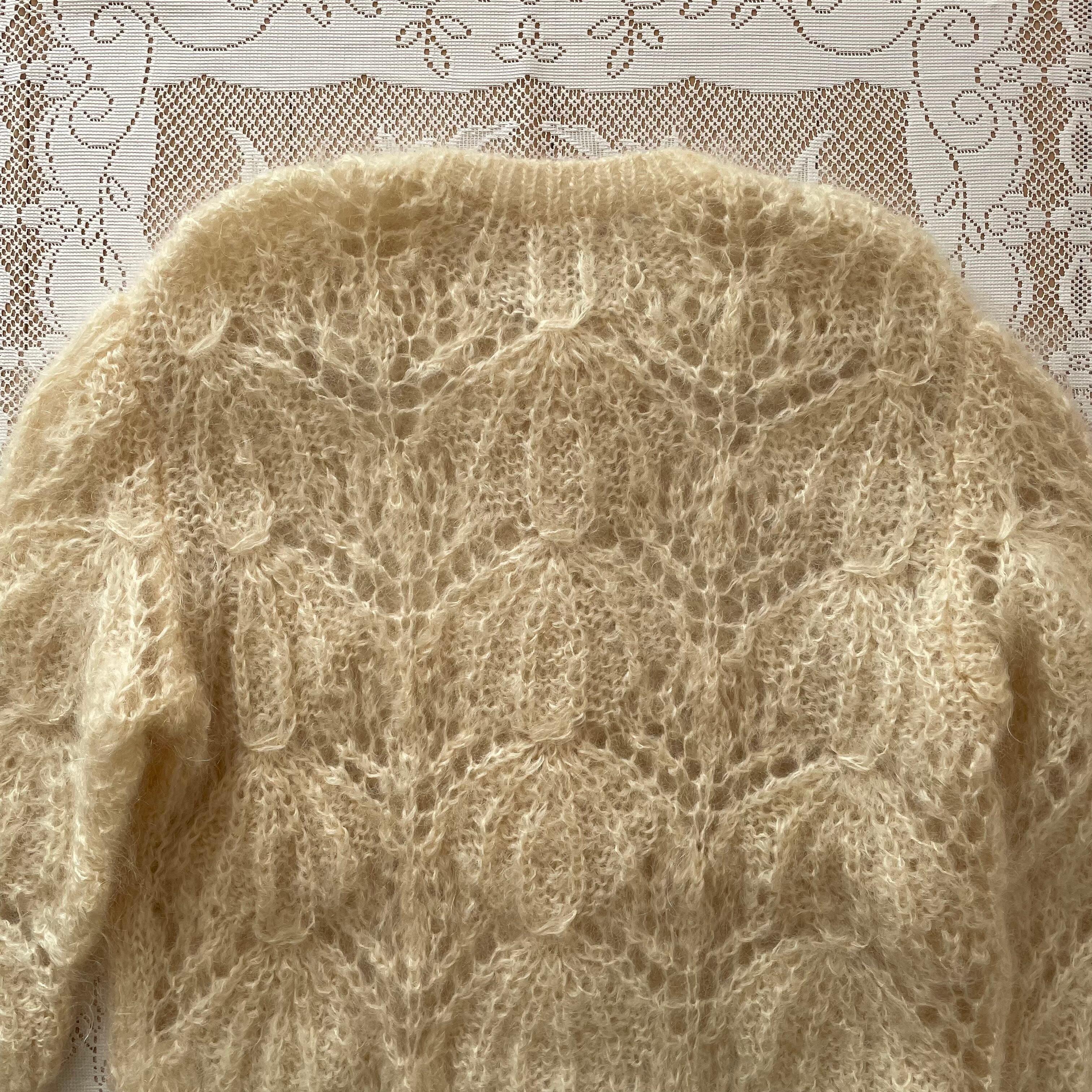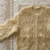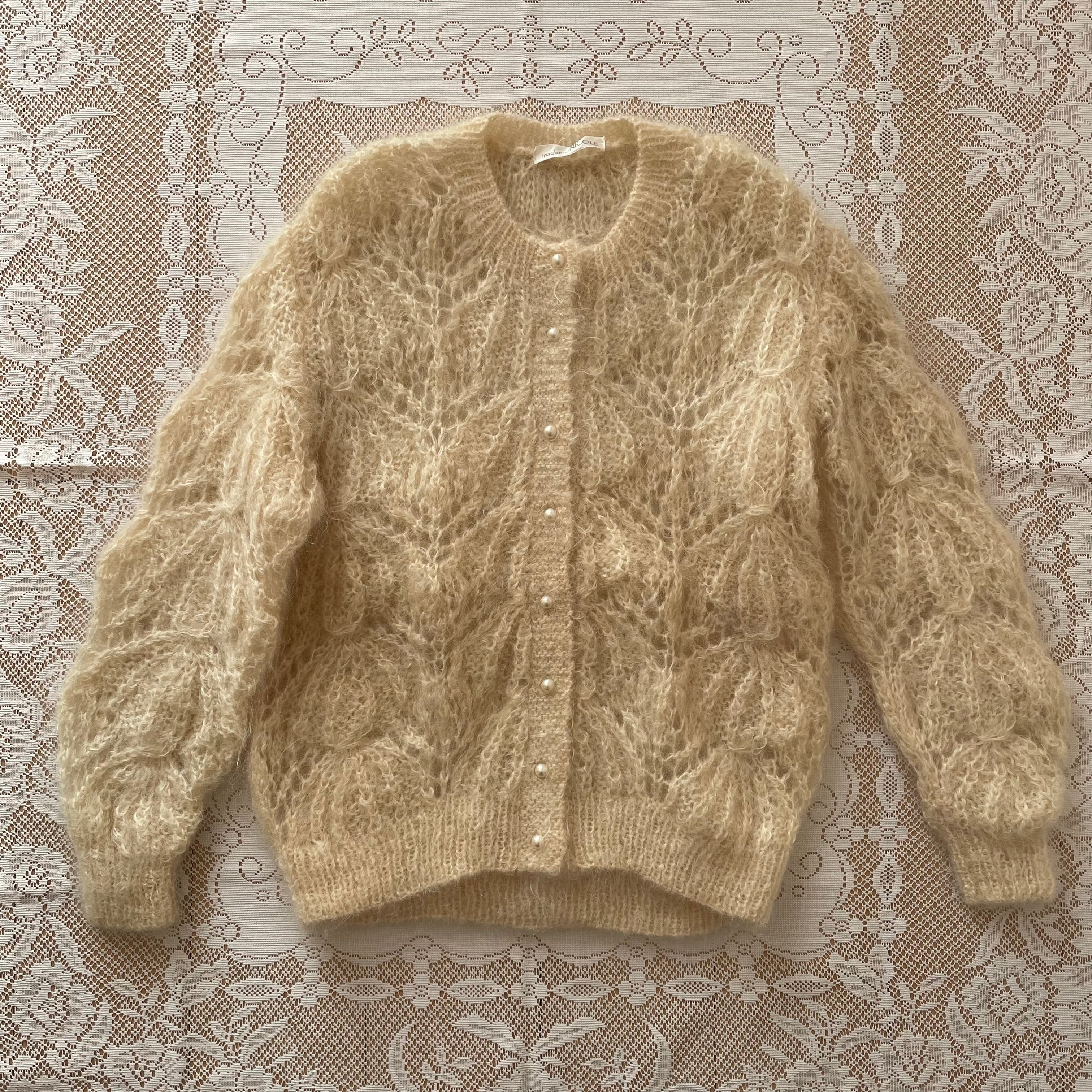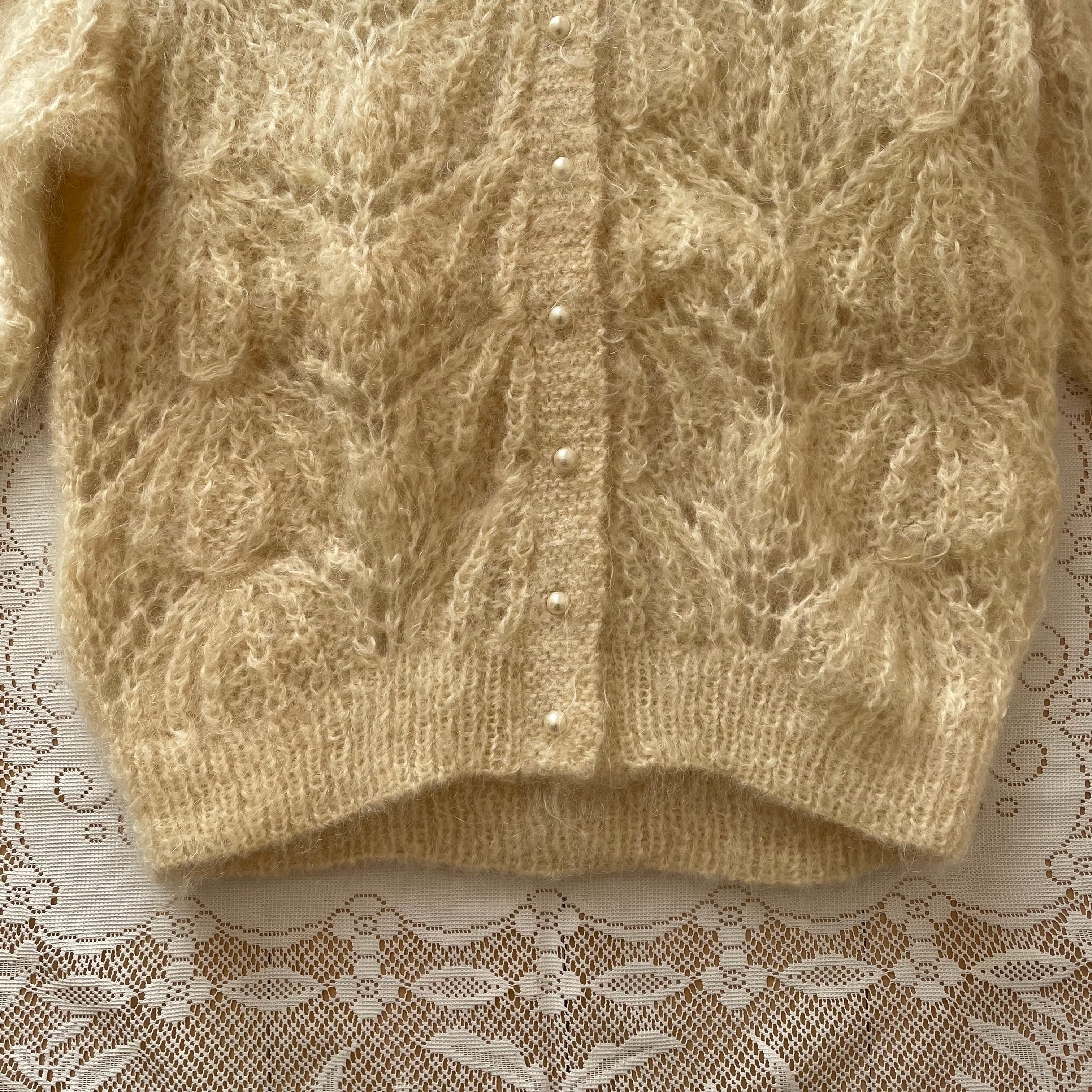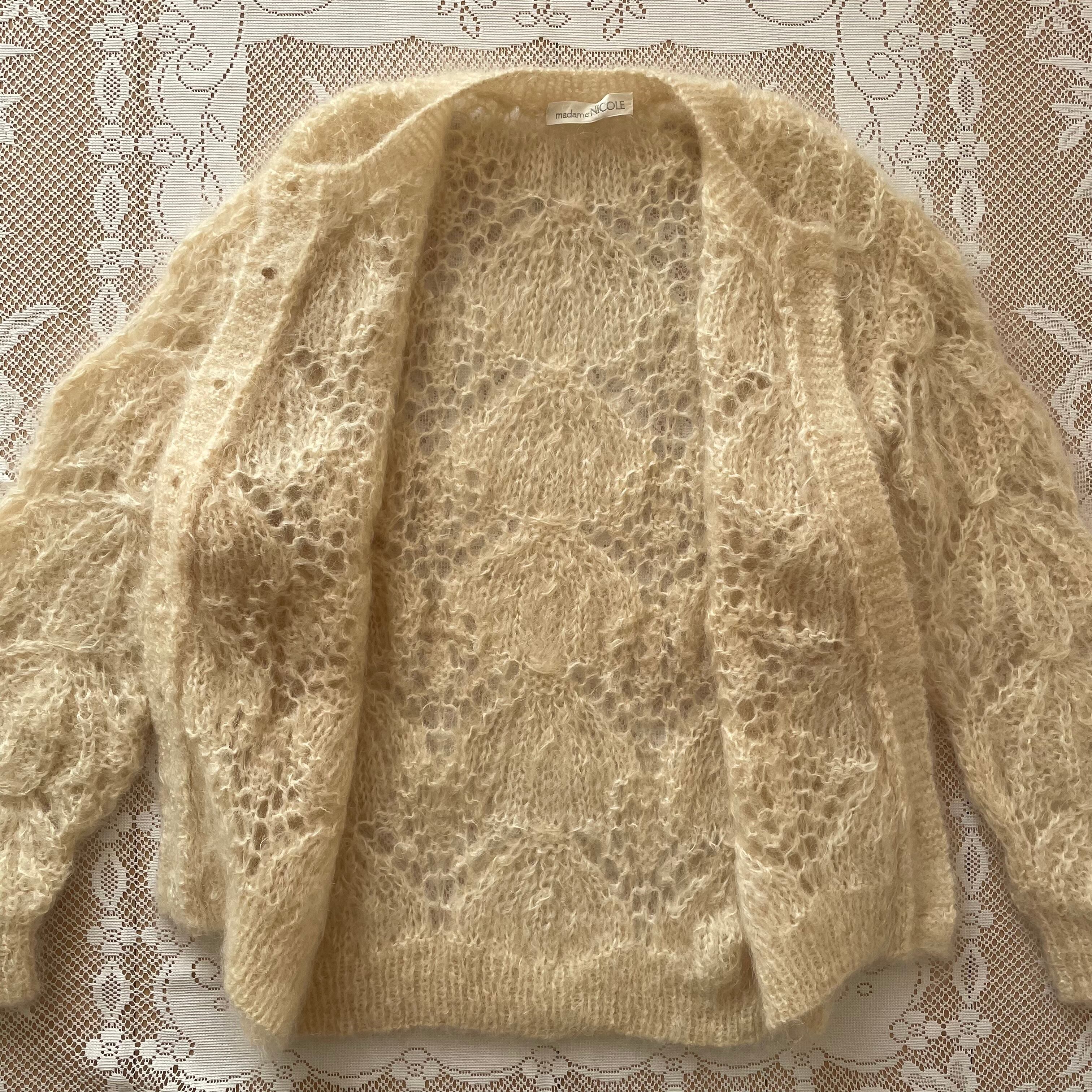 ニット カーディガン 古着 日本製 レトロ ウール ホワイト ベージュ OF93