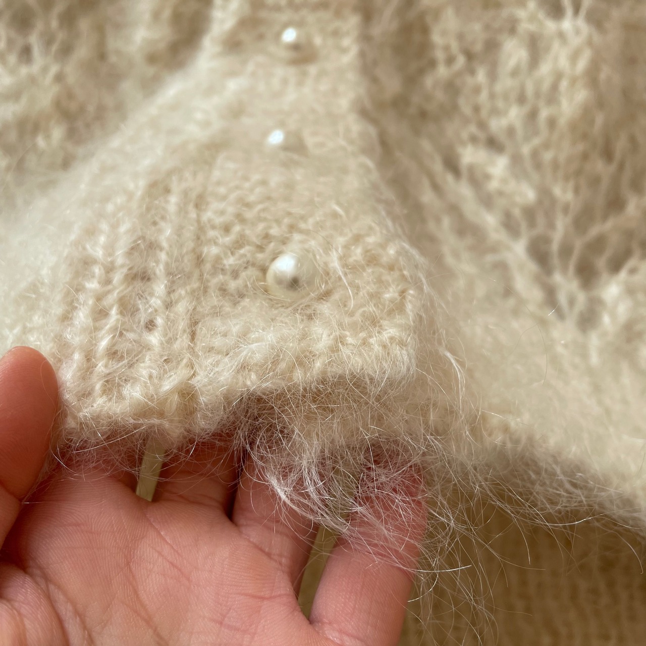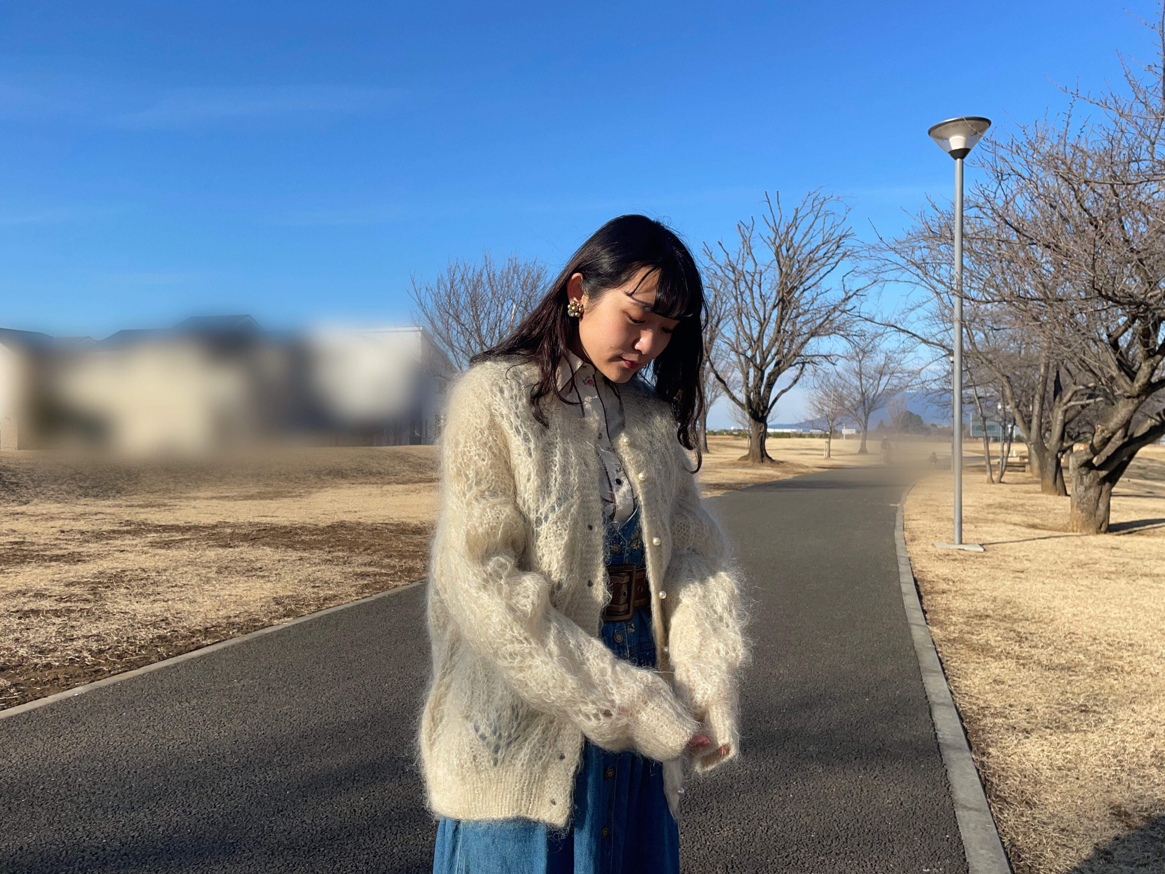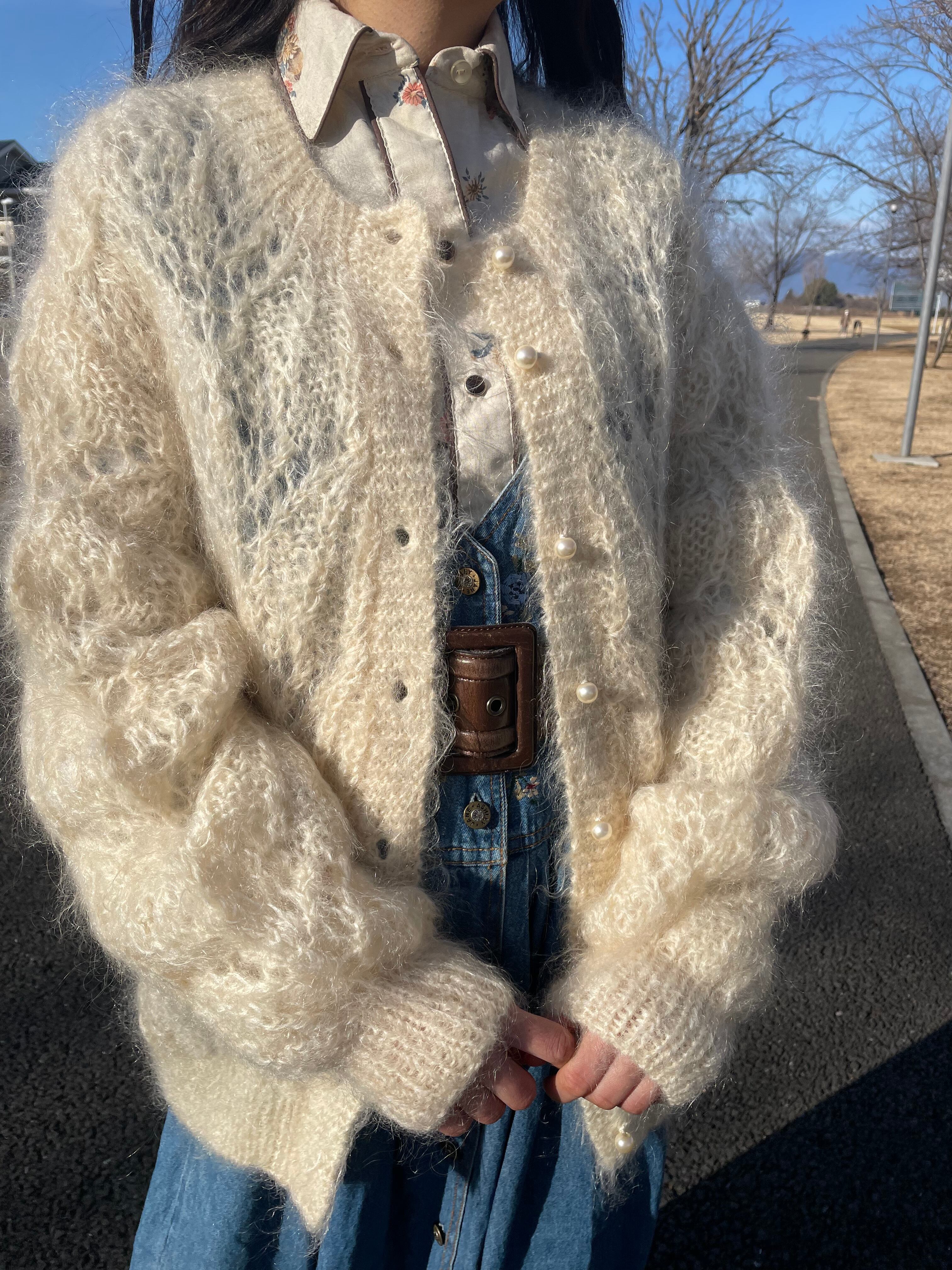 毛の長いフワフワなニットカーディガン