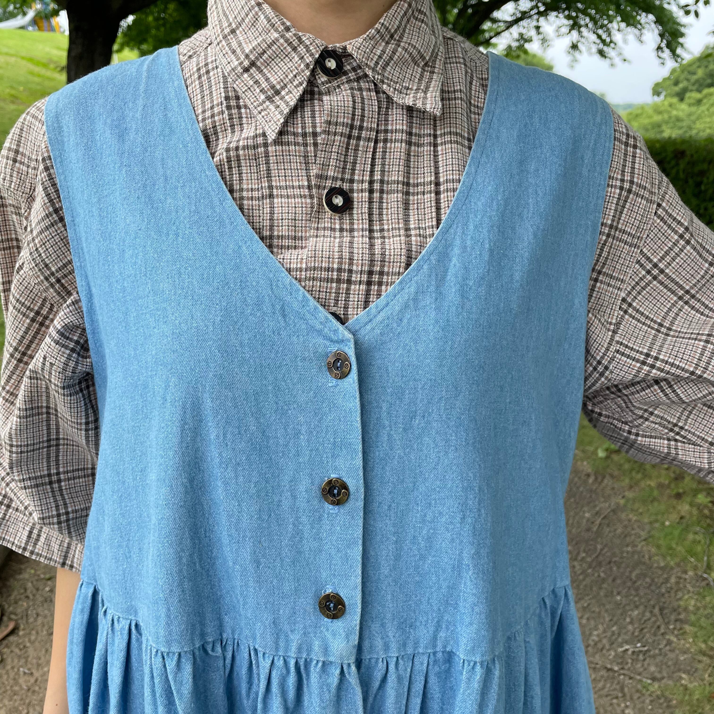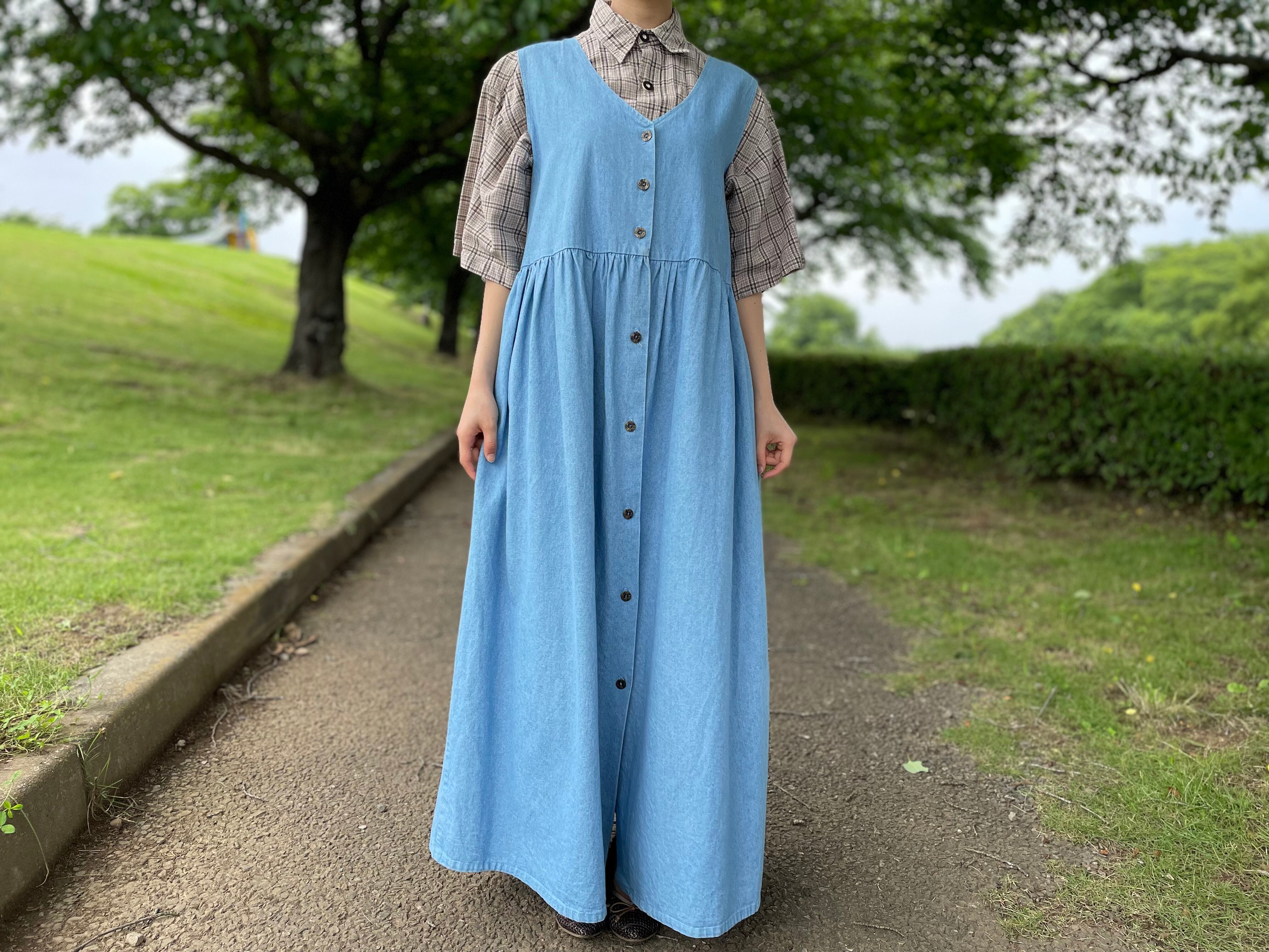 デニムワンピース 古着 ヴィンテージ ワンピース made in USA ノースリーブ KP13