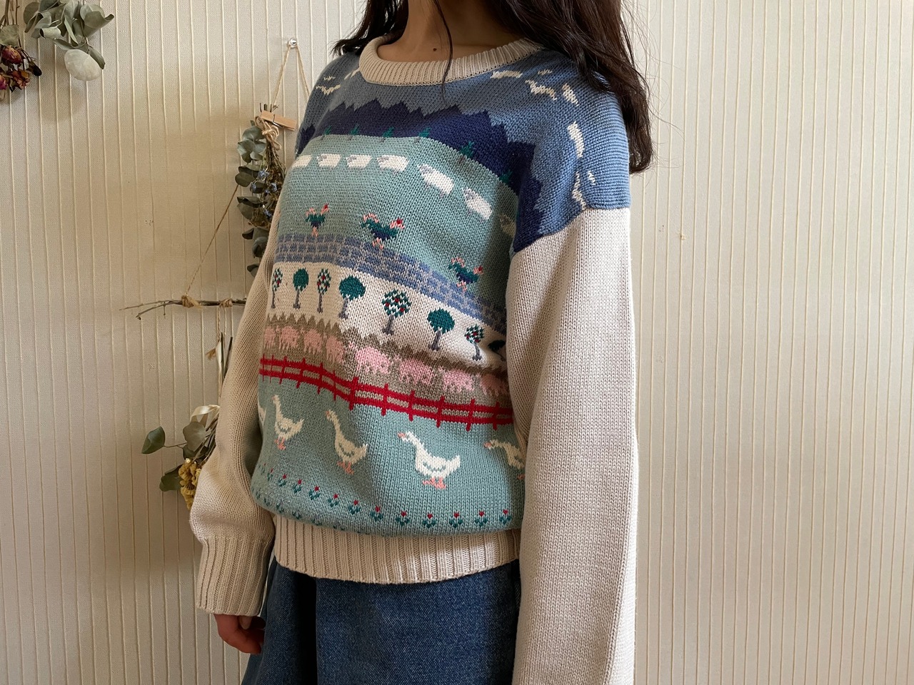 ニットセーター 古着 ヴィンテージ Eddie Bauer 80s-90s made in Thailand コットン デザイン ニット KP21