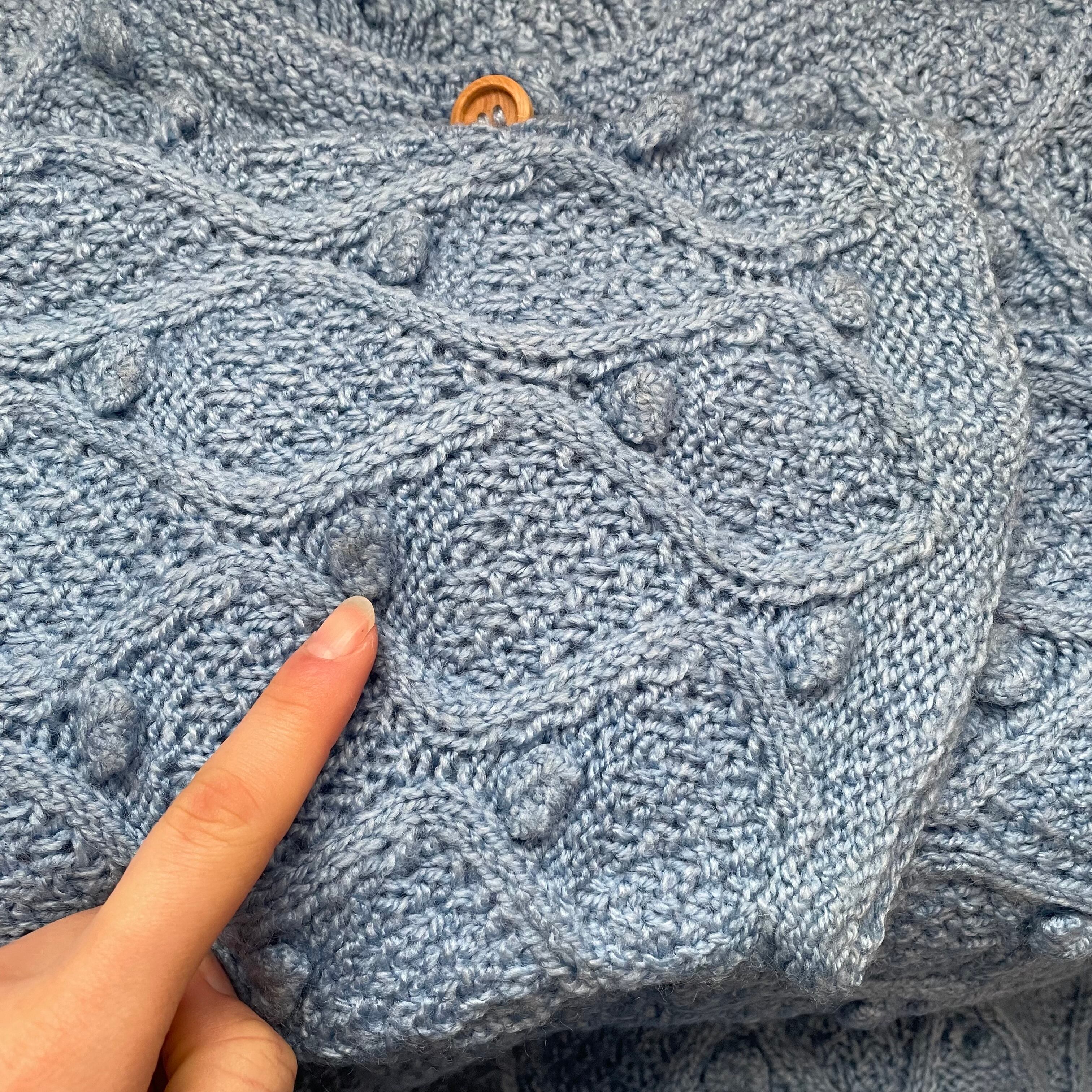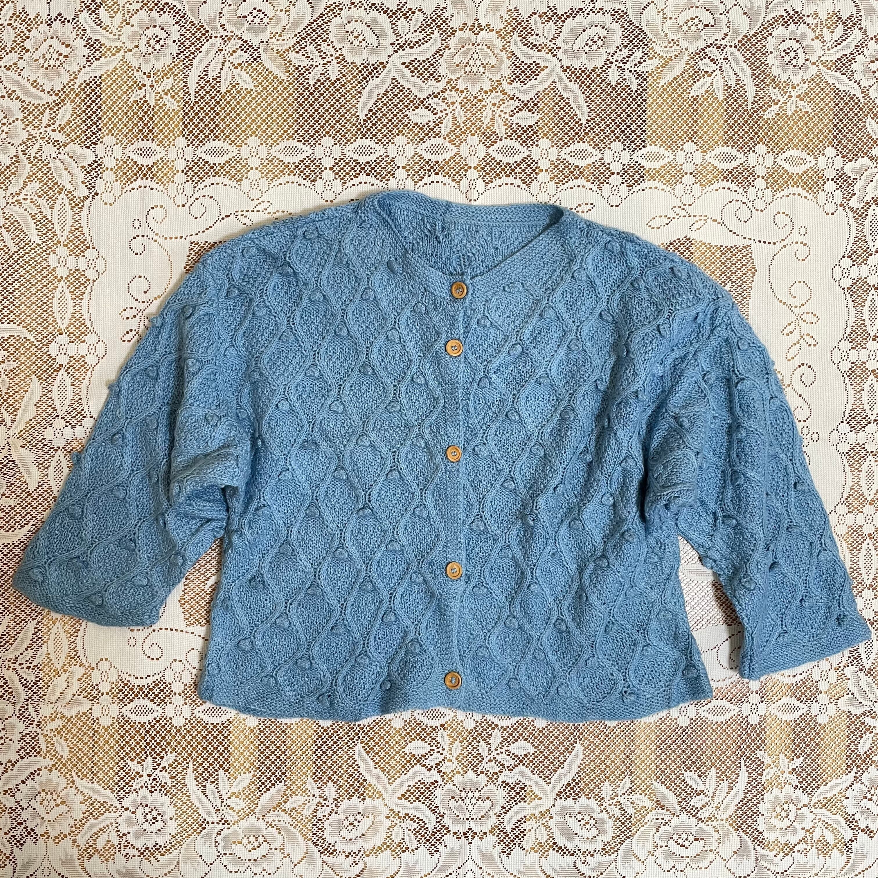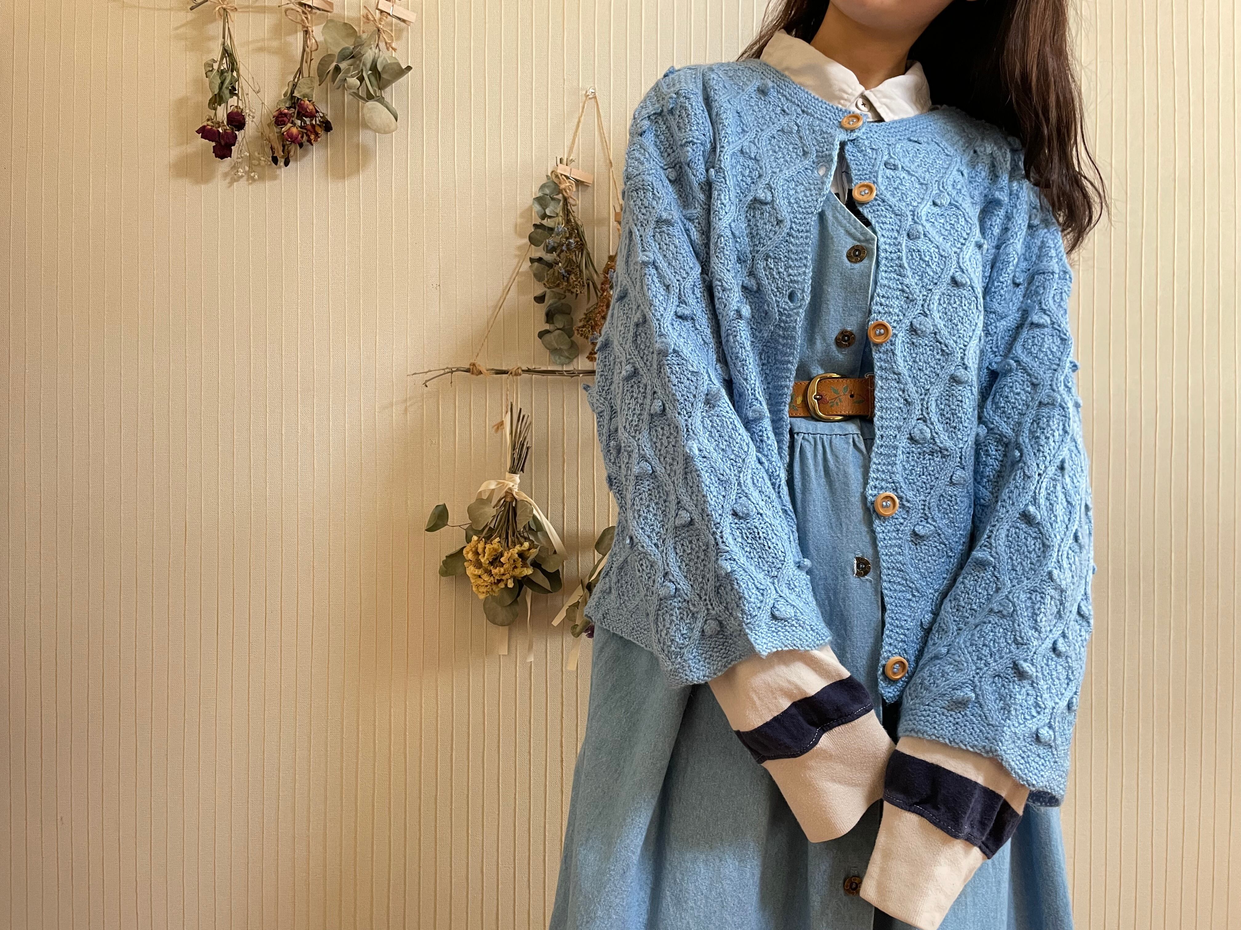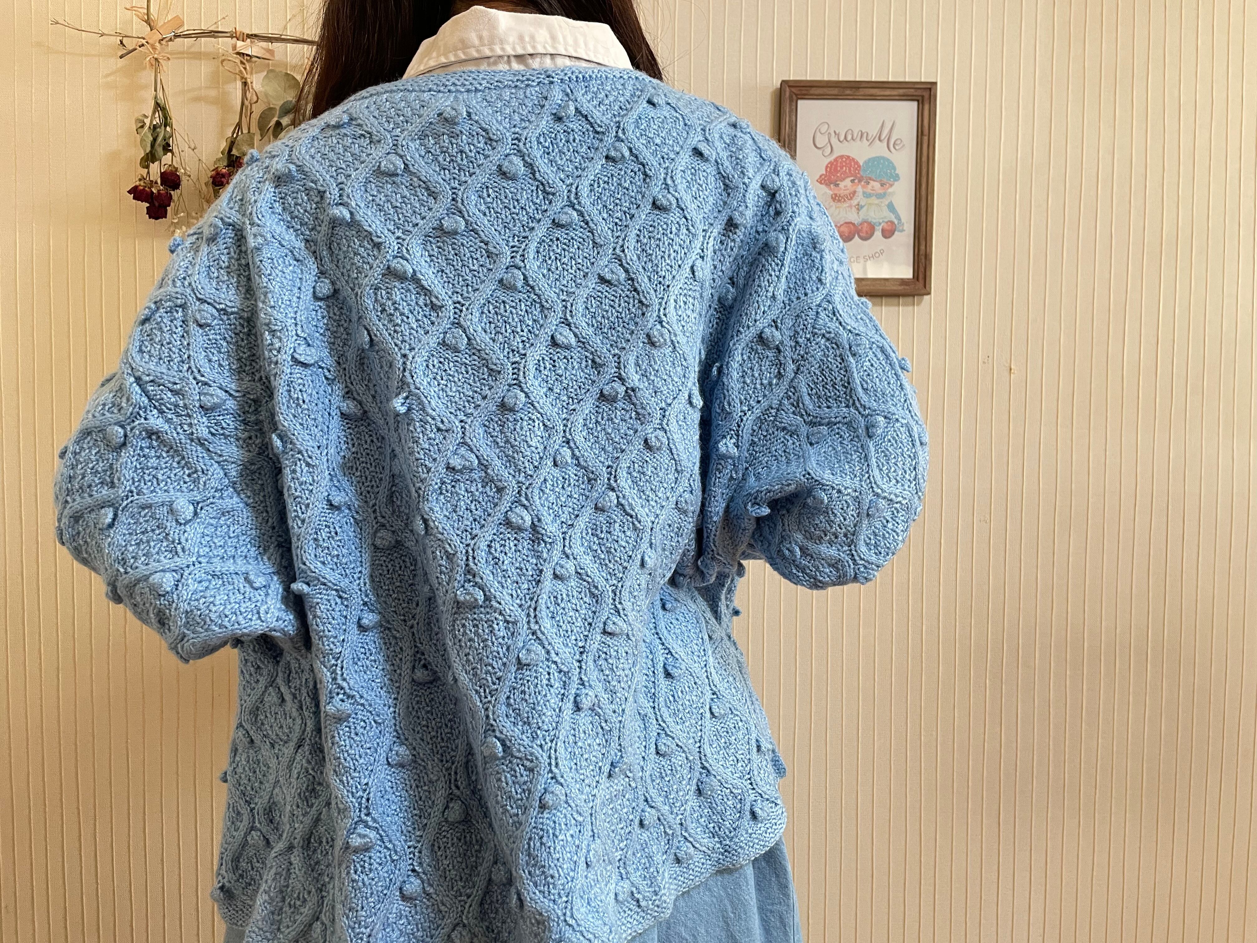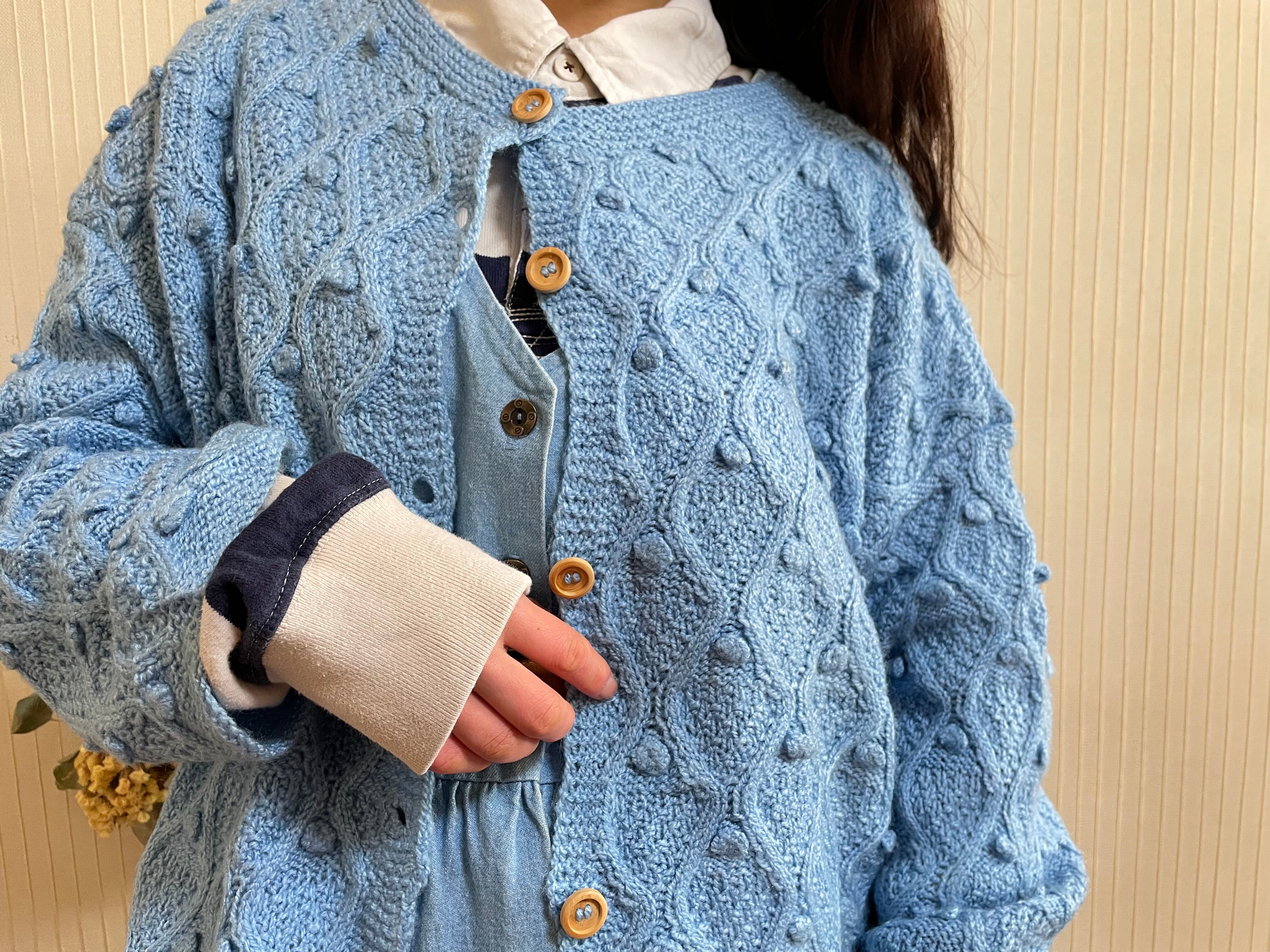 ニットカーディガン 古着 USED ハンドニット デザインニット ブルー KP19