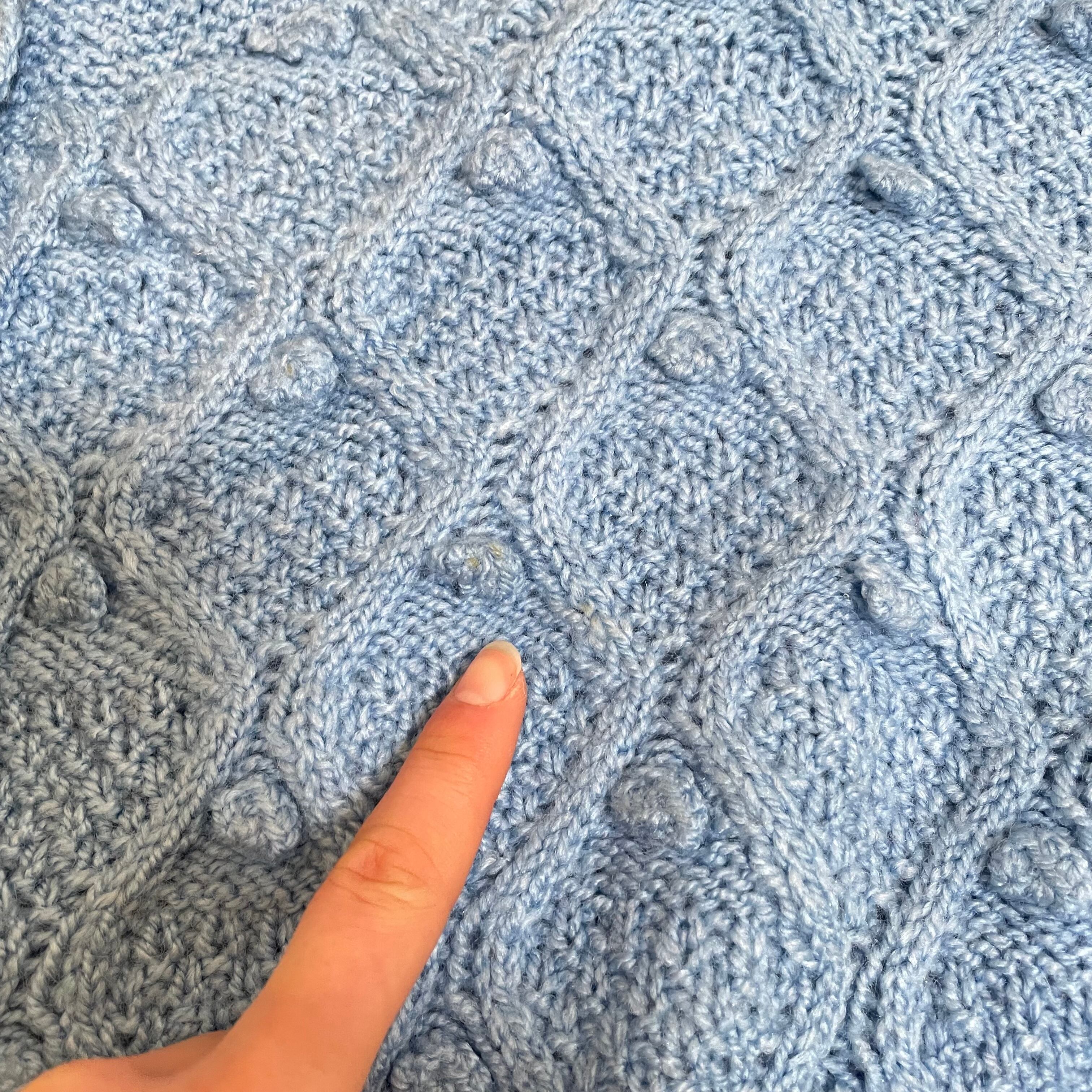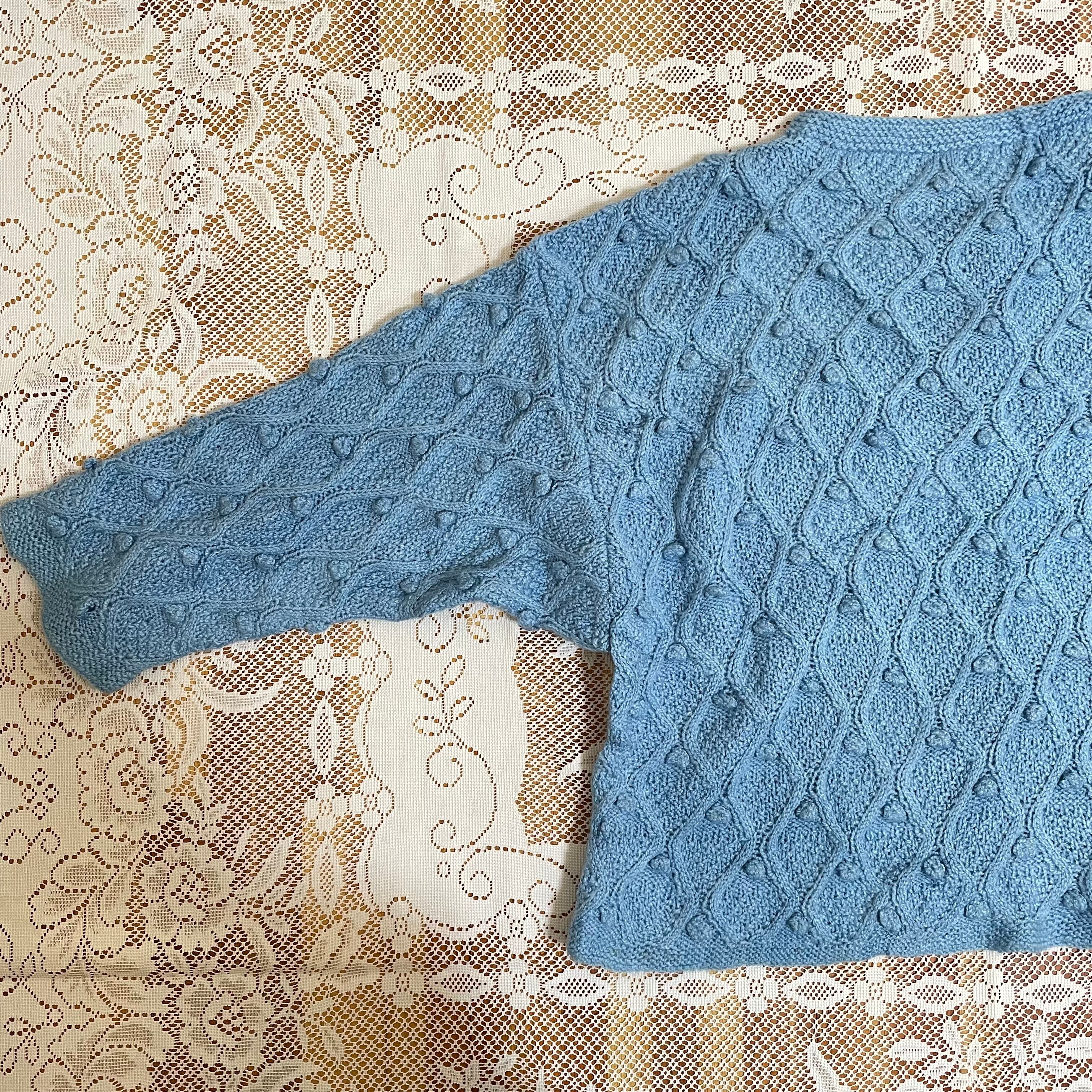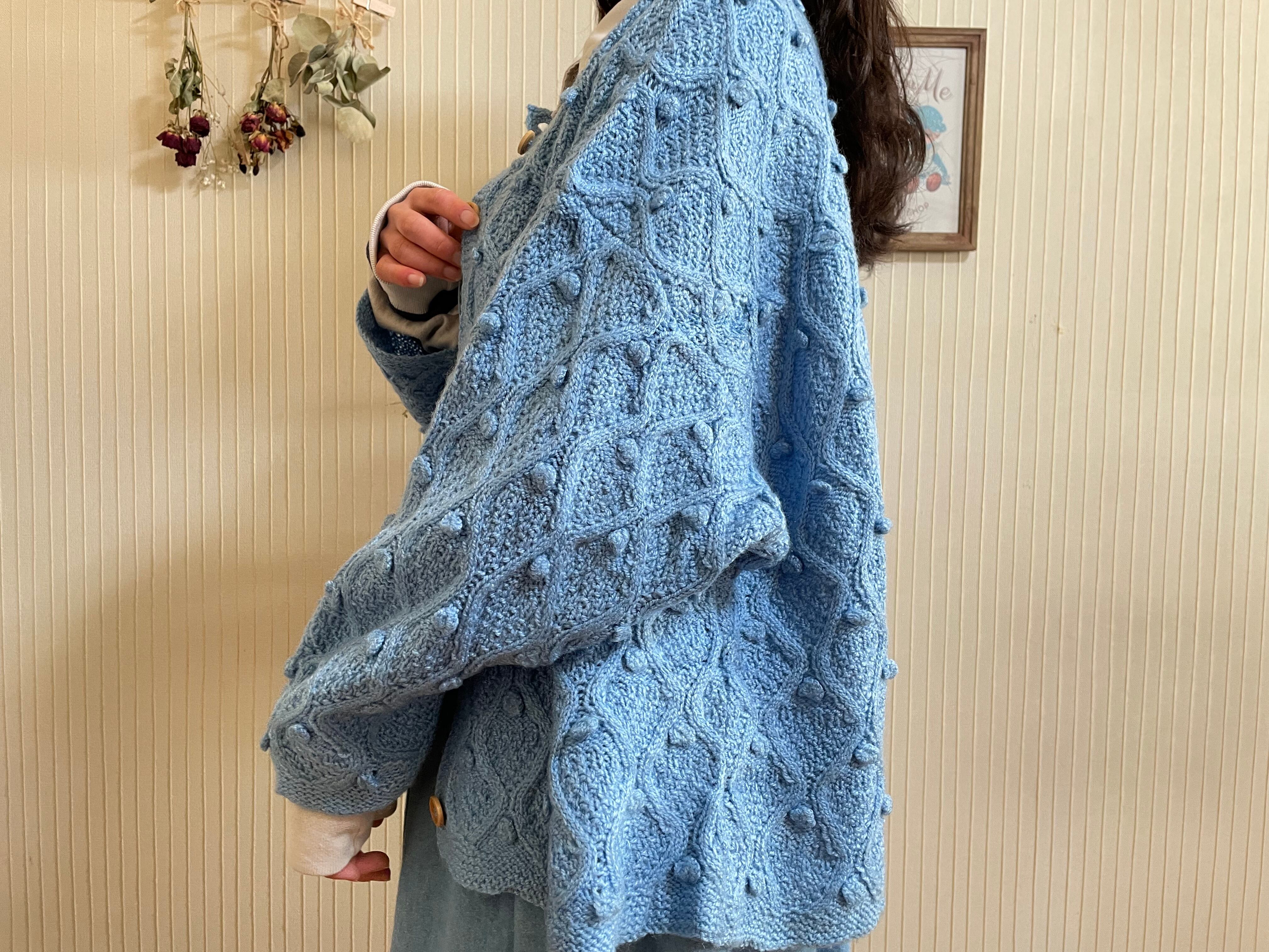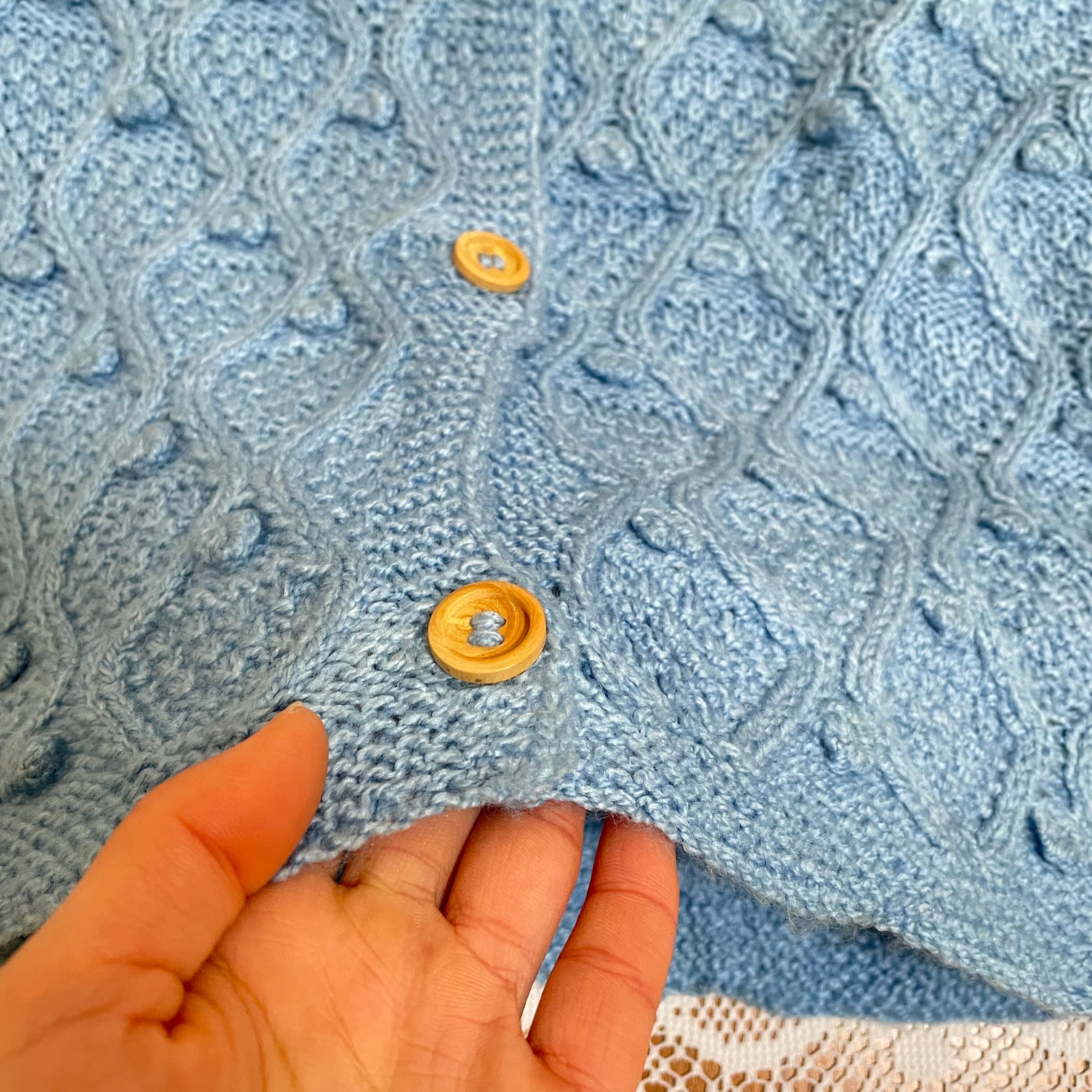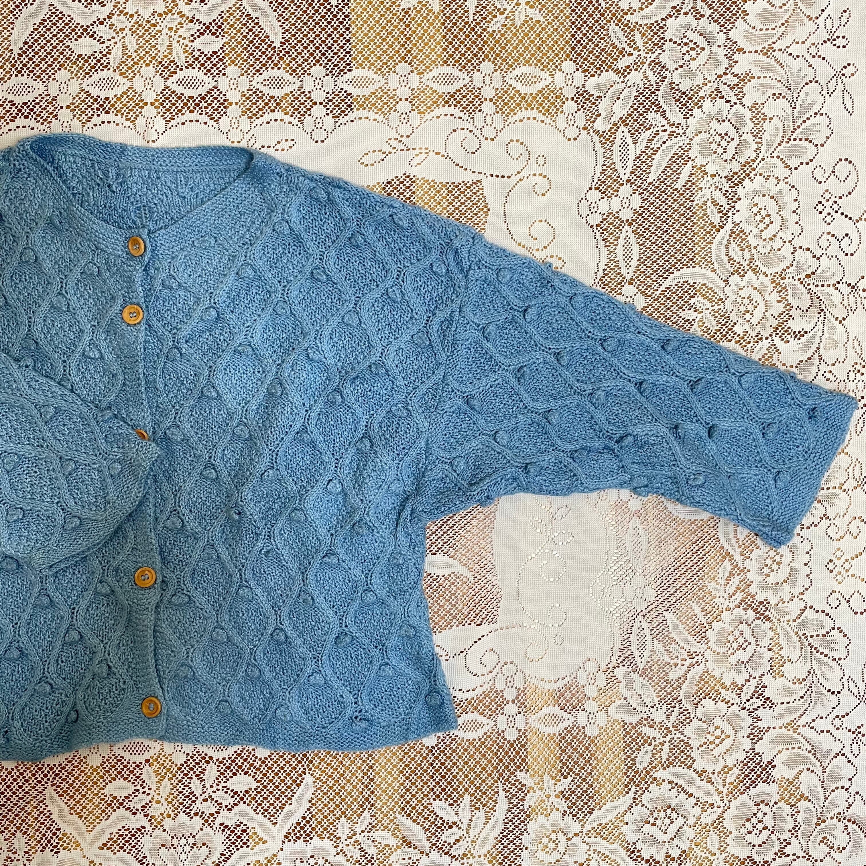 ニットカーディガン 古着 USED ハンドニット デザインニット ブルー KP19