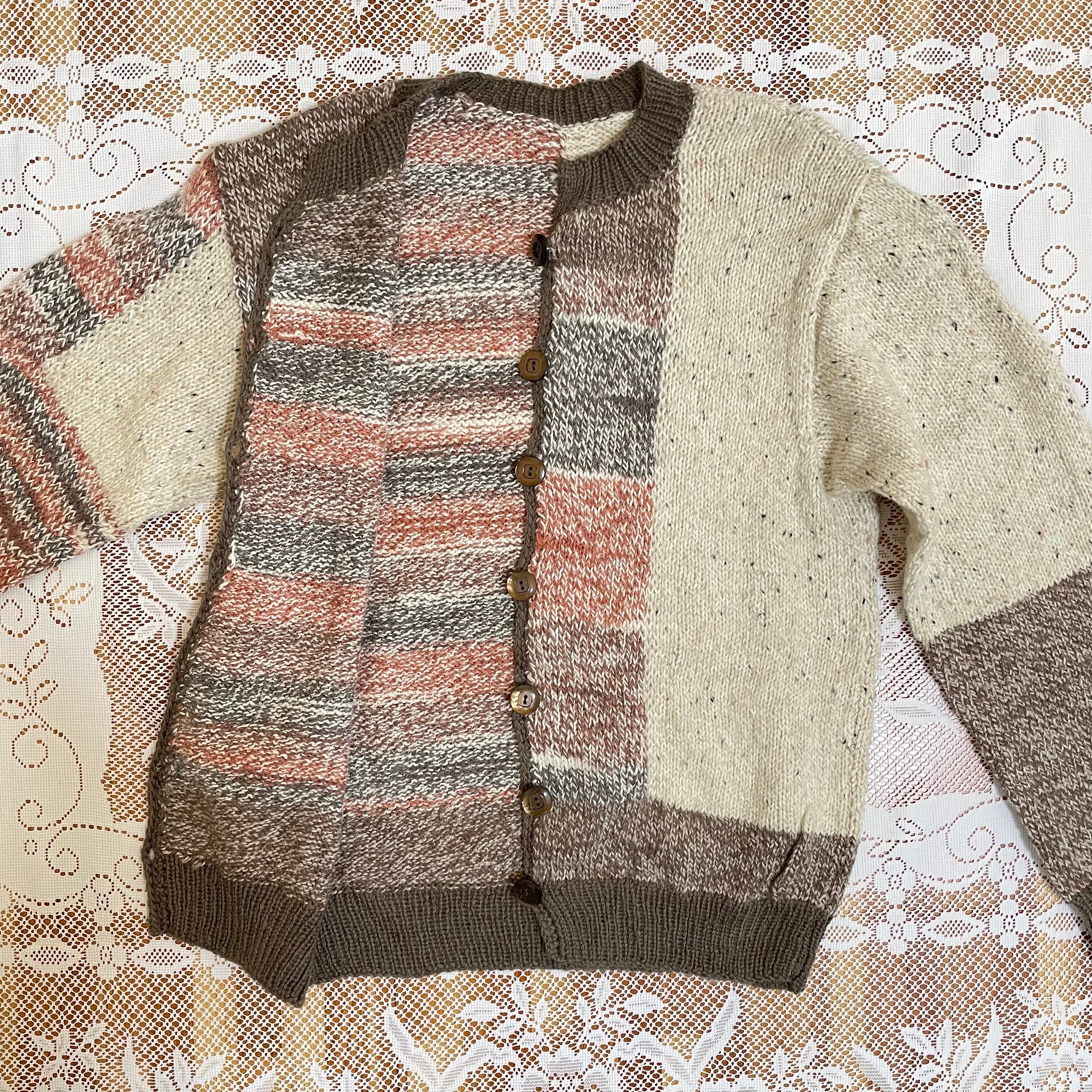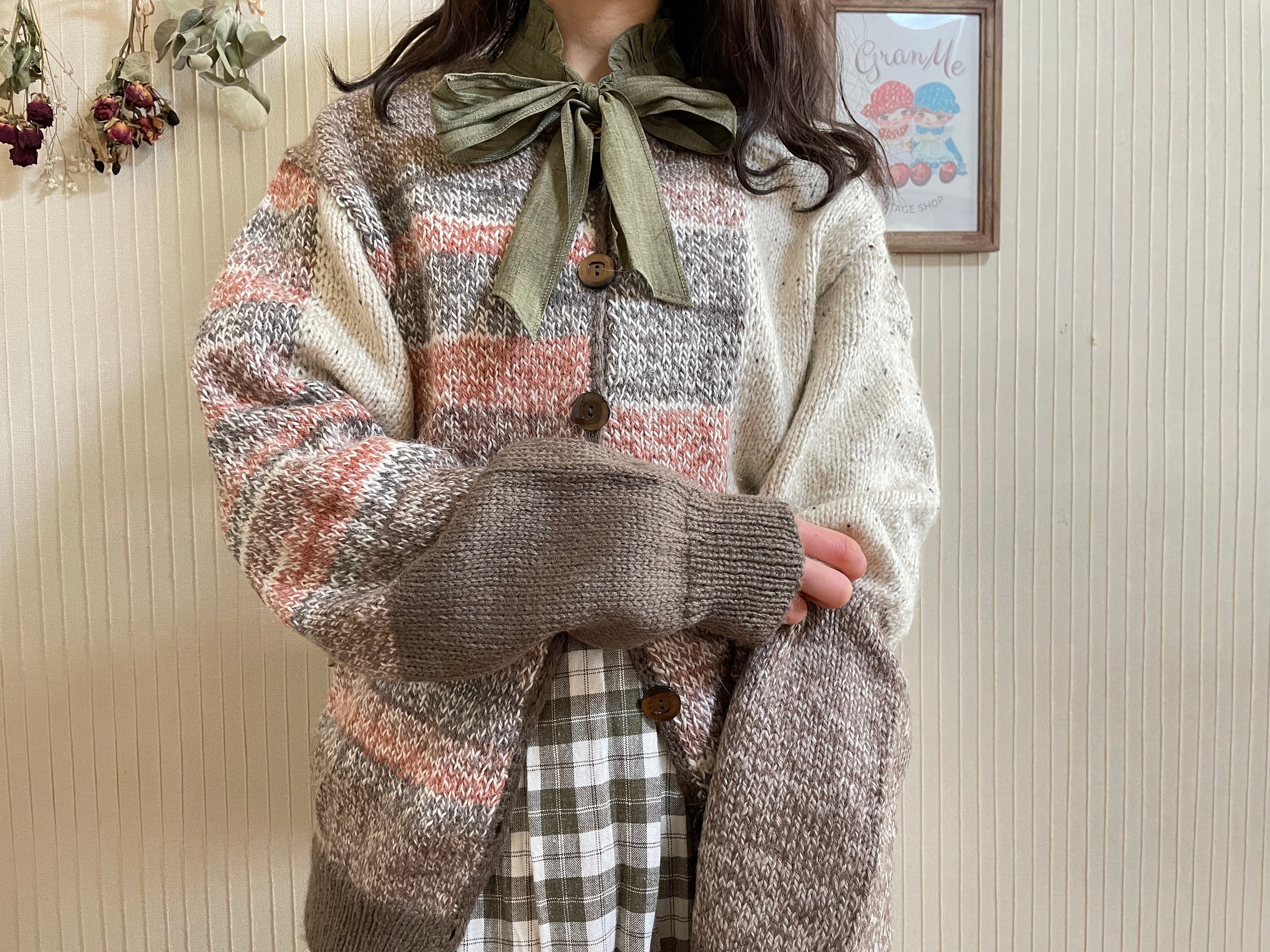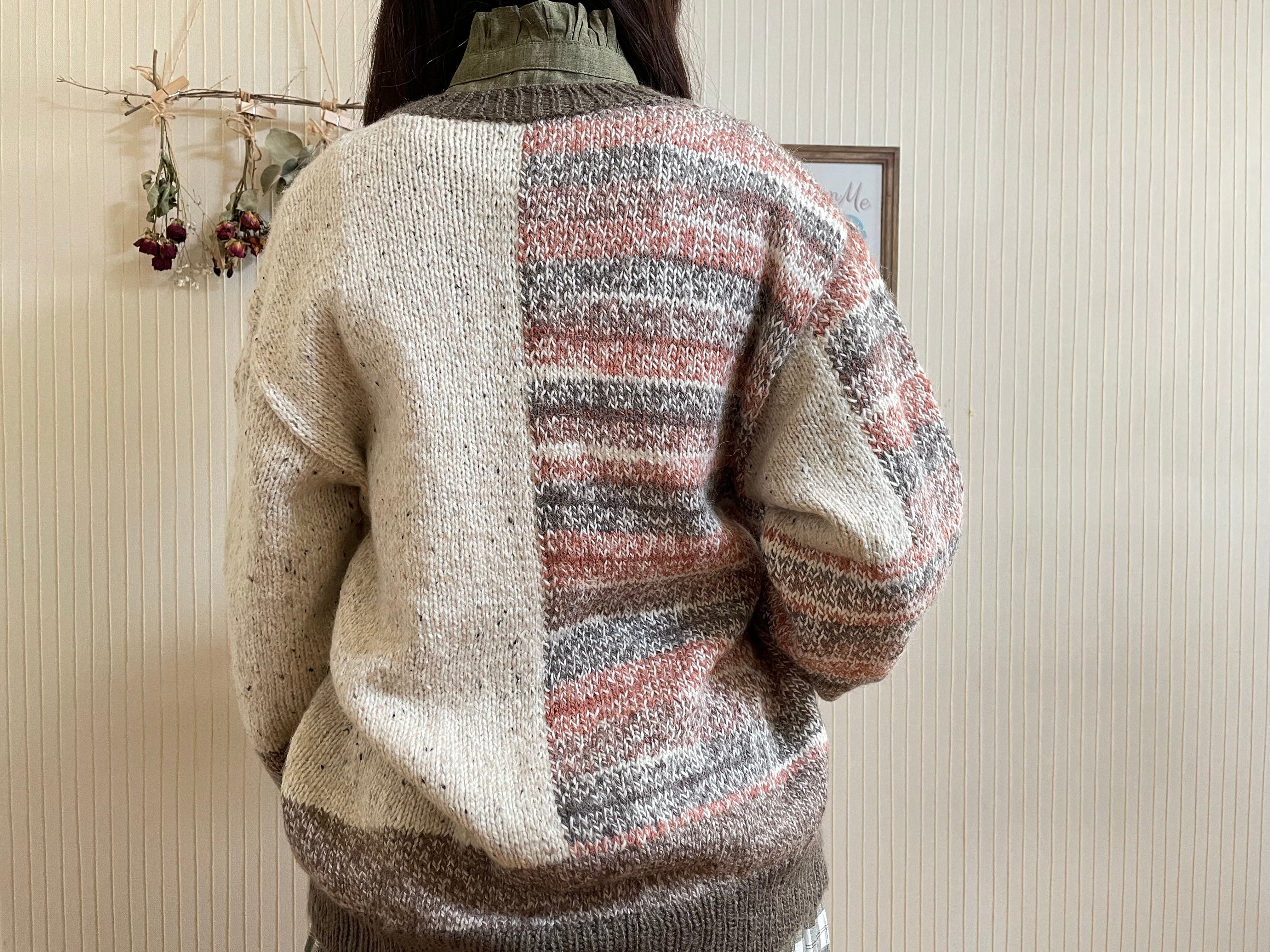 ニットカーディガン 古着 USED ハンドニット ベージュ KP16