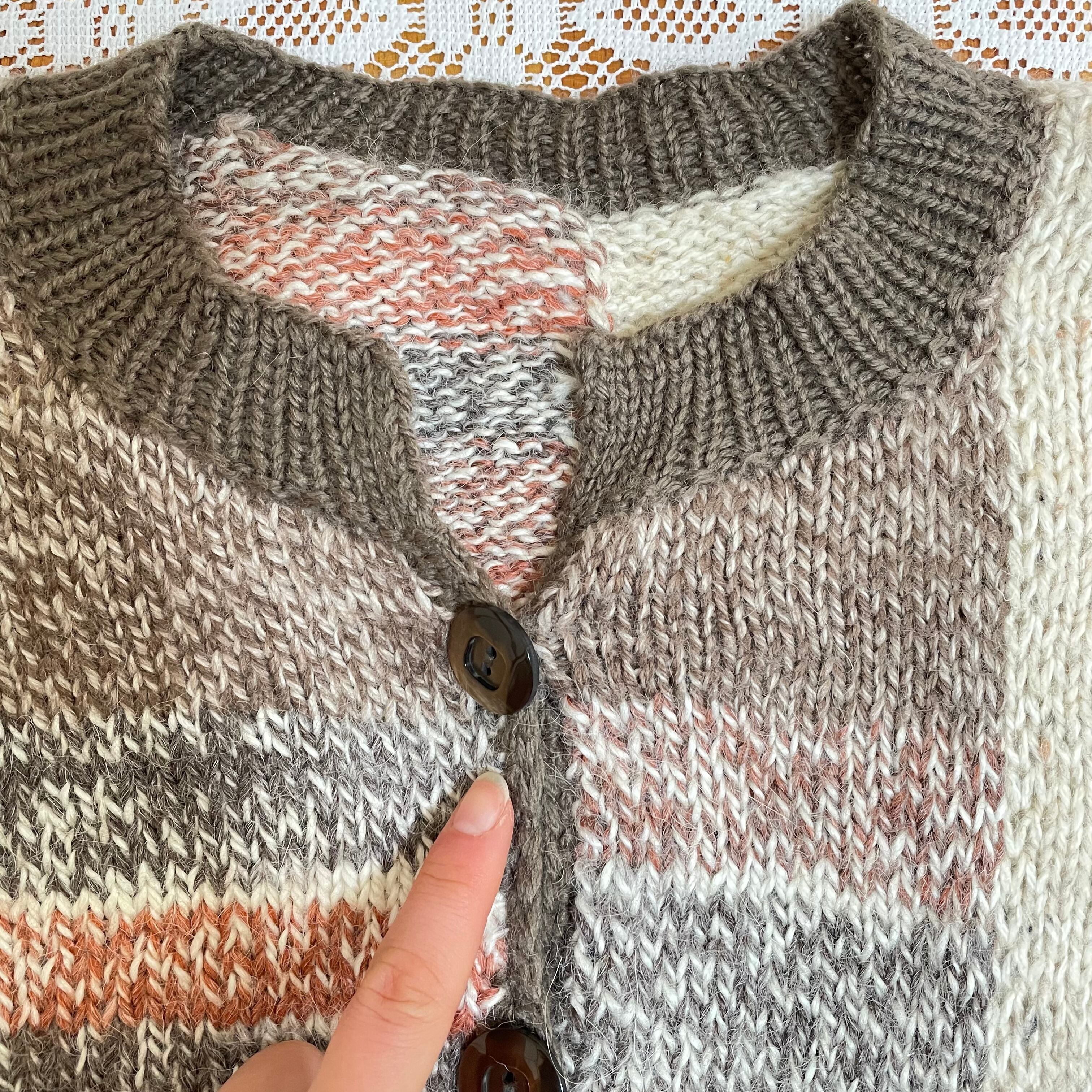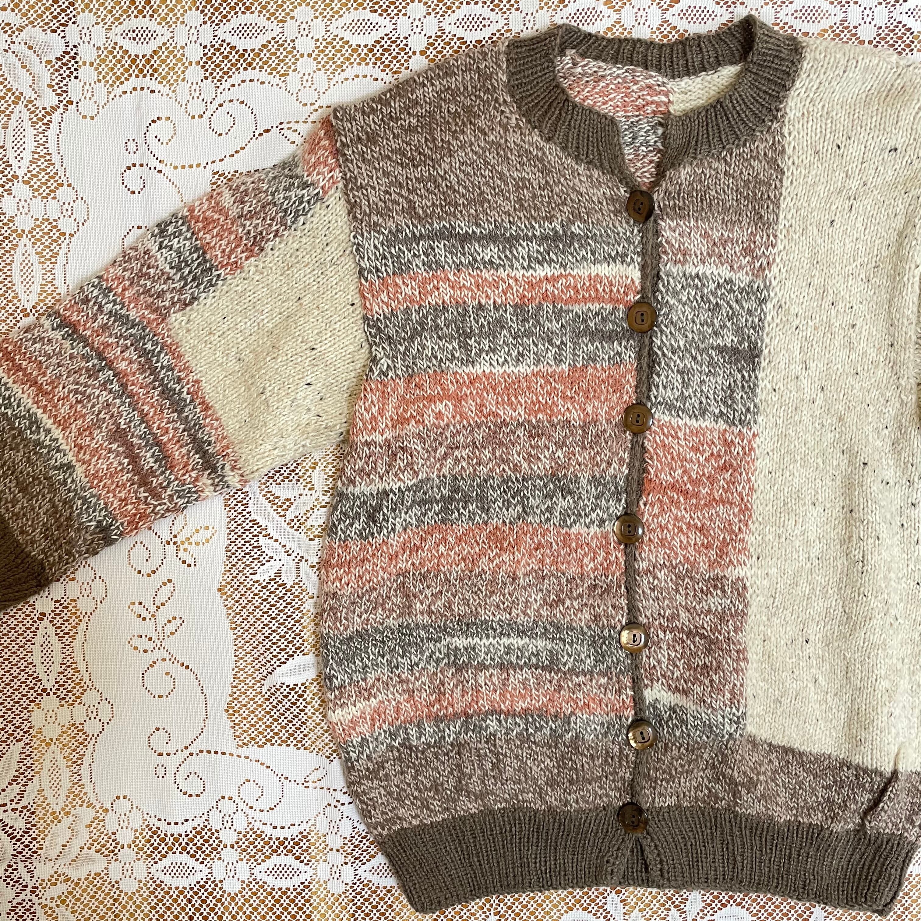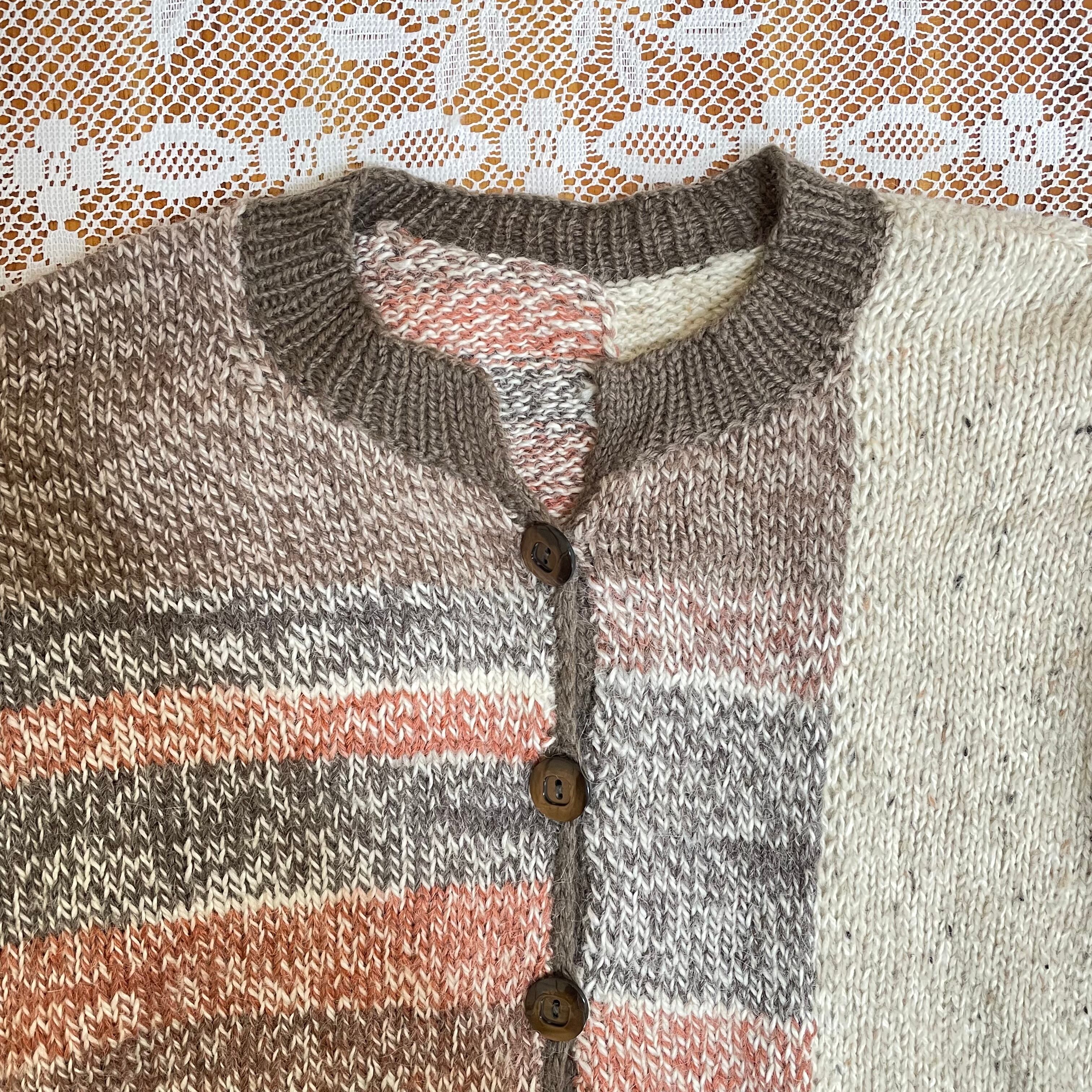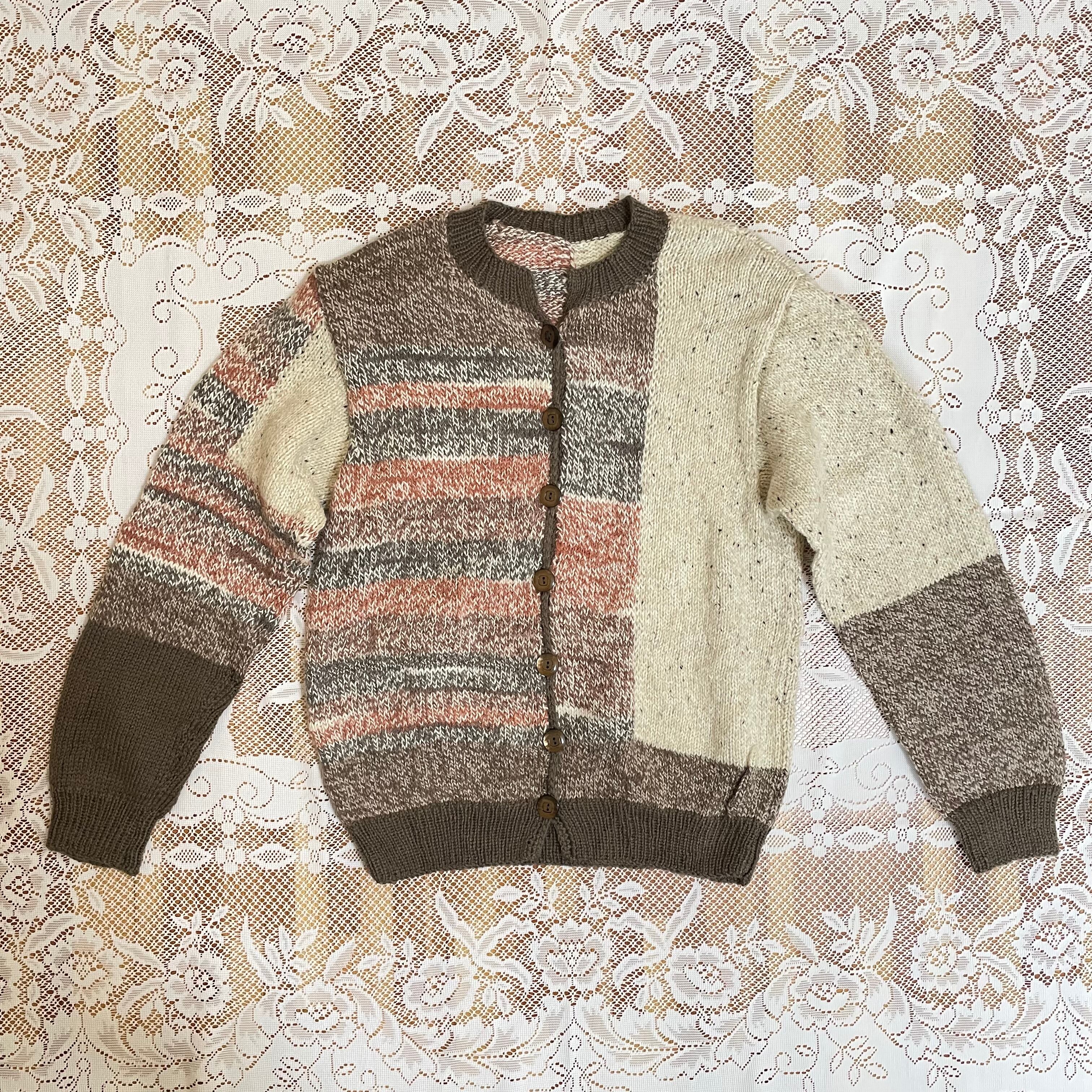 ニットカーディガン 古着 USED ハンドニット ベージュ KP16