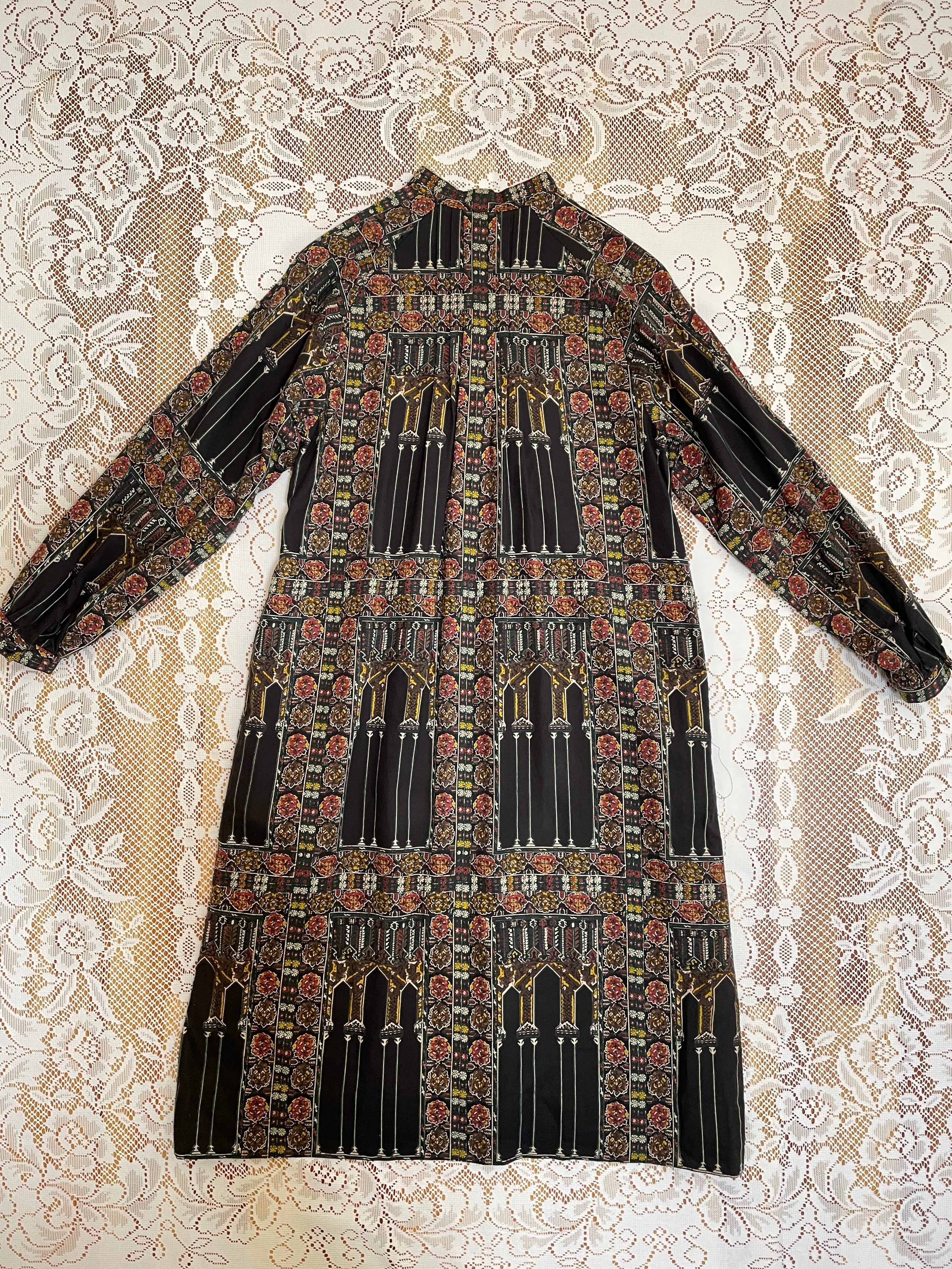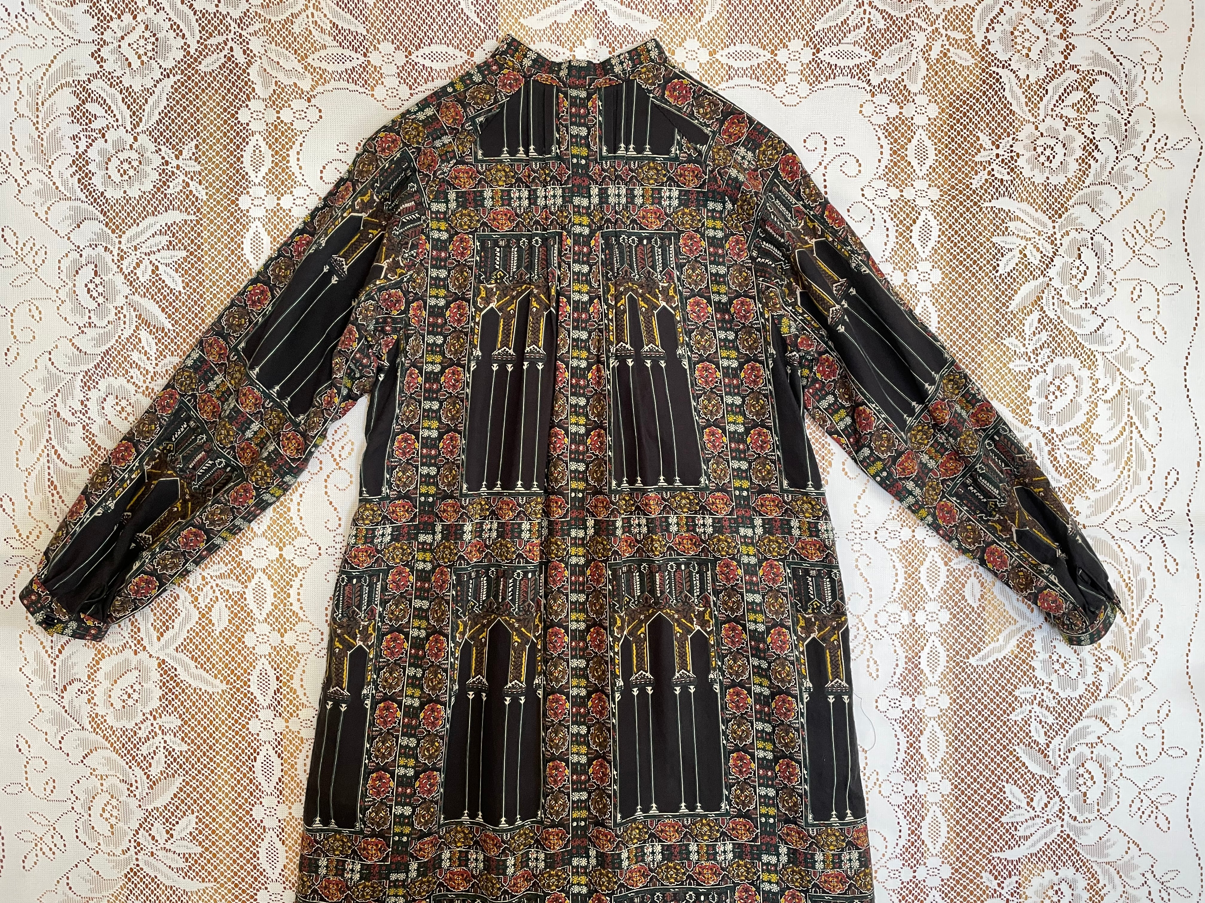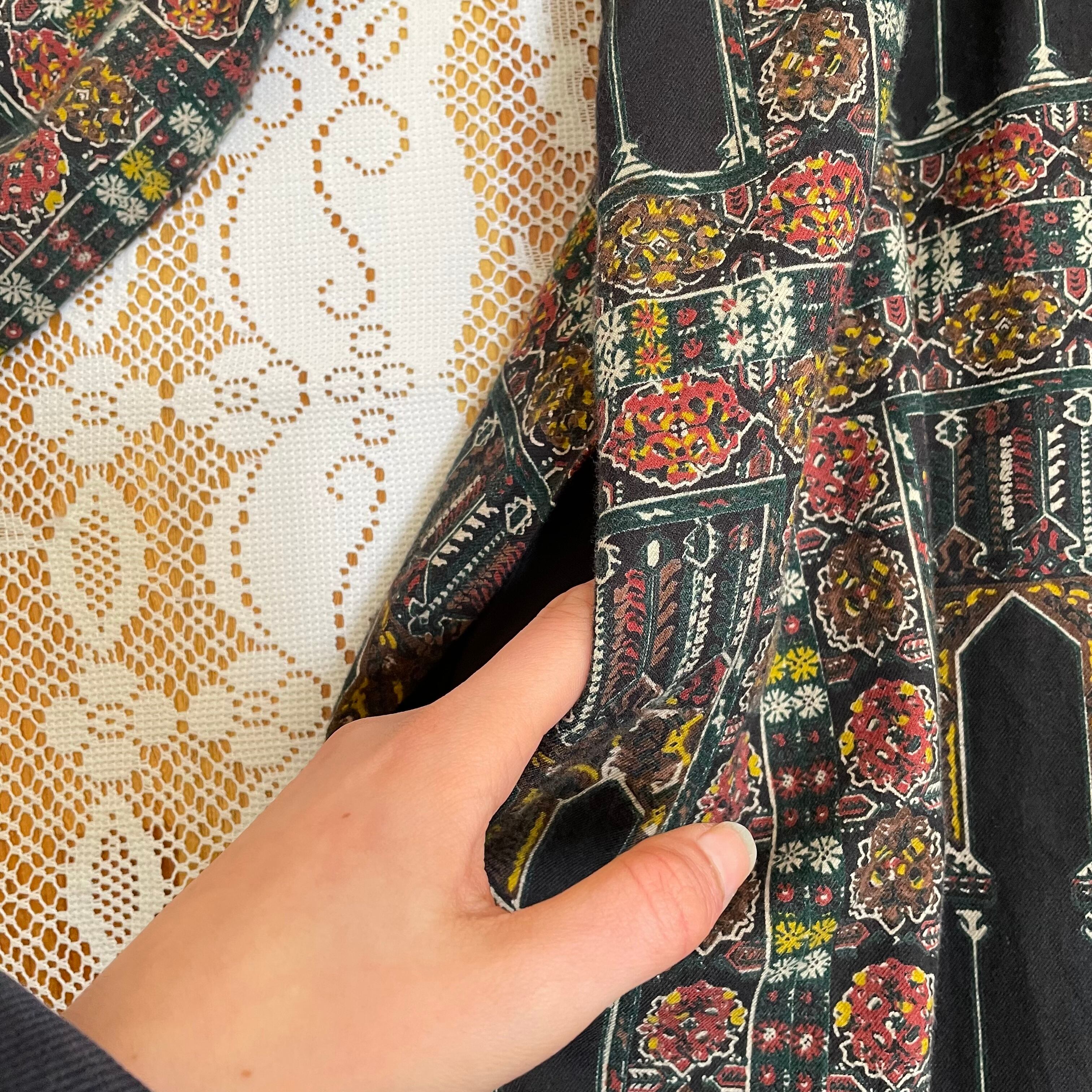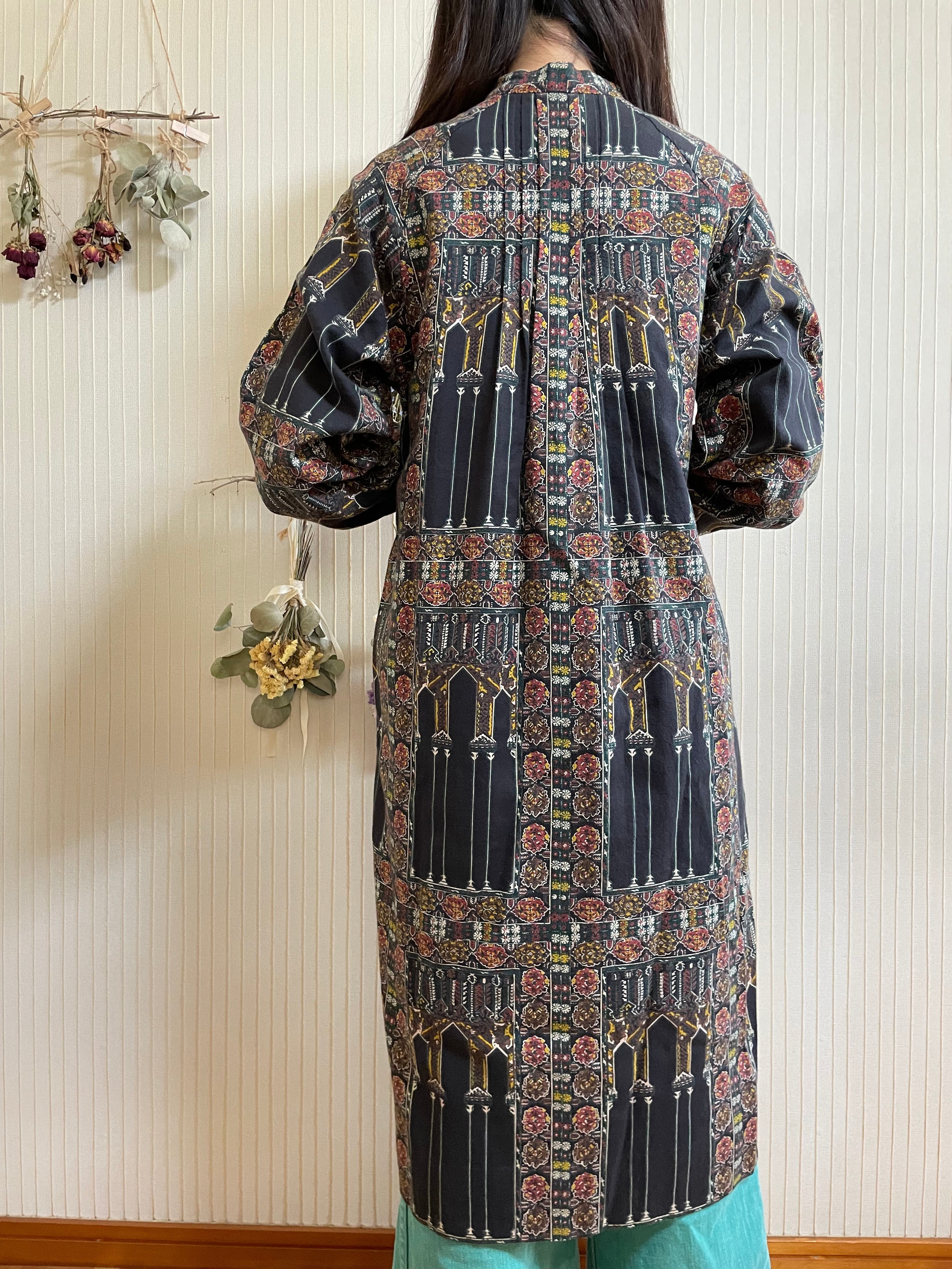 ワンピース 古着 USED レトロ 総柄 花柄 ブラック グリーン サックワンピース GM179
