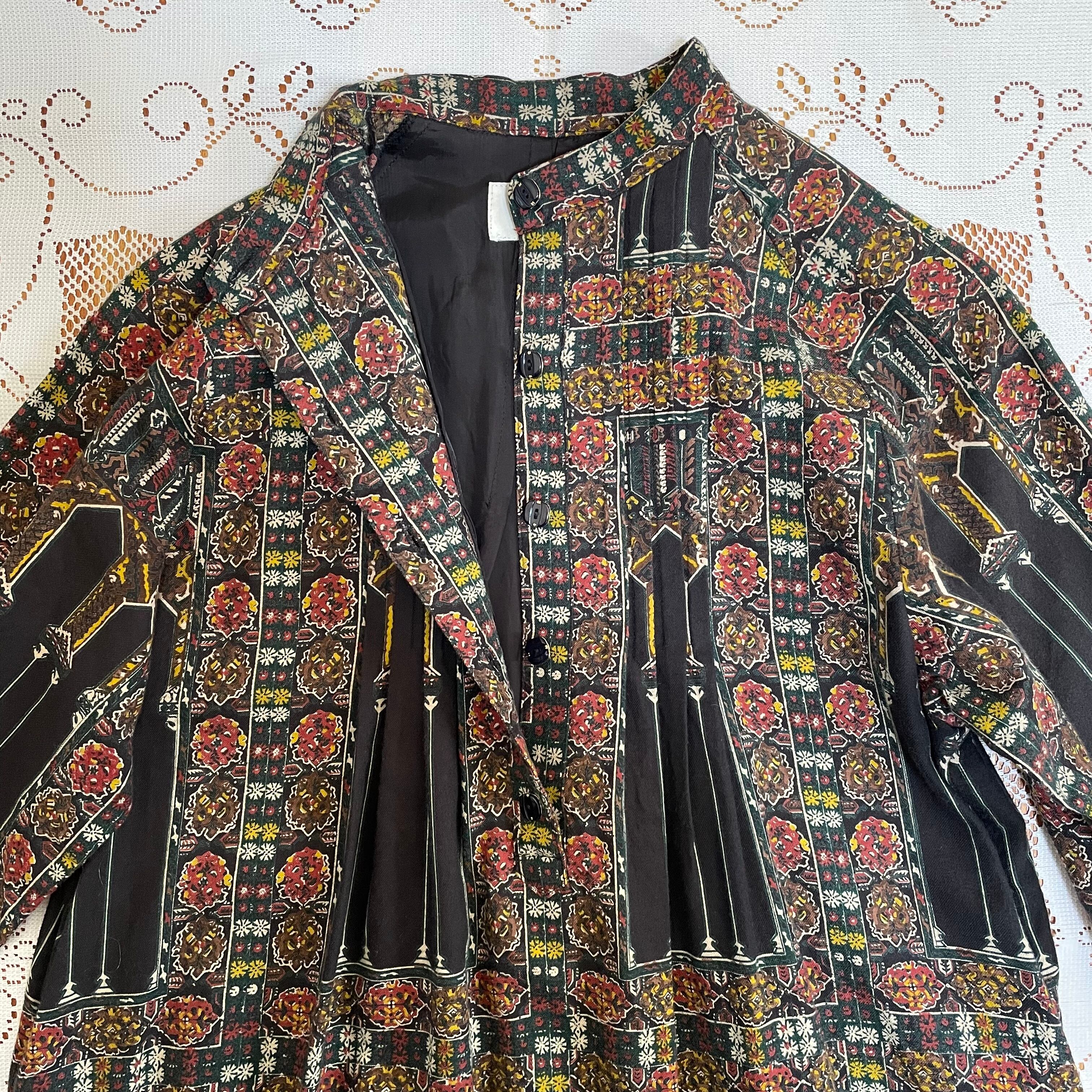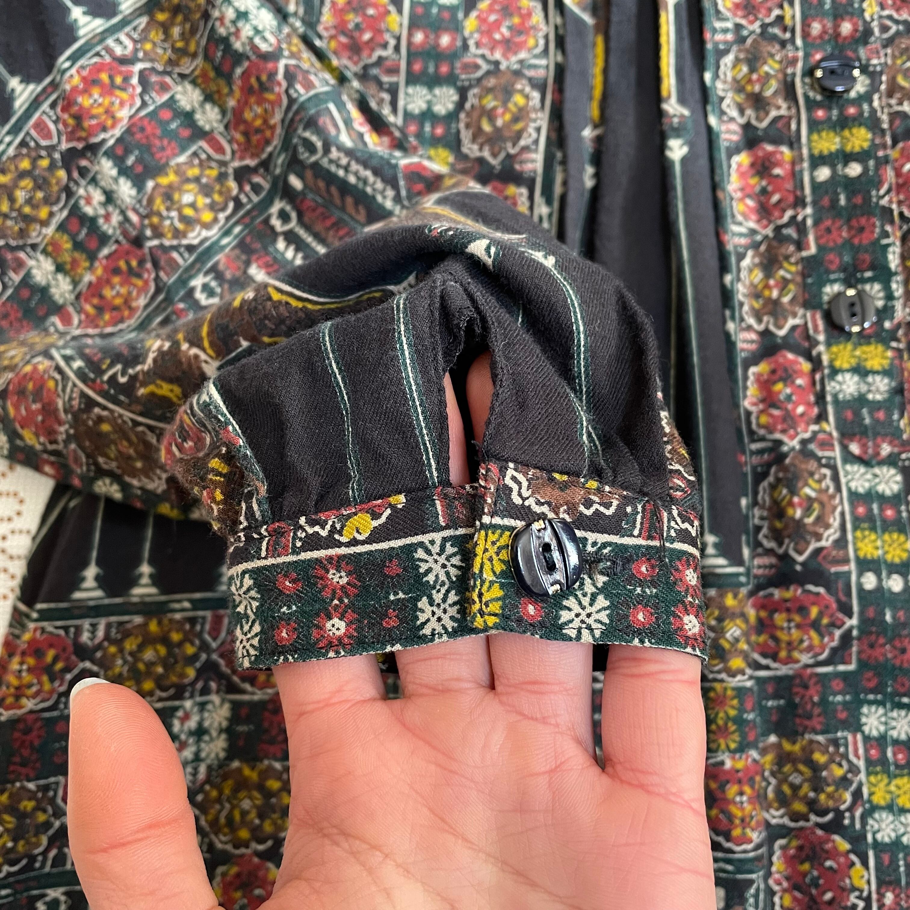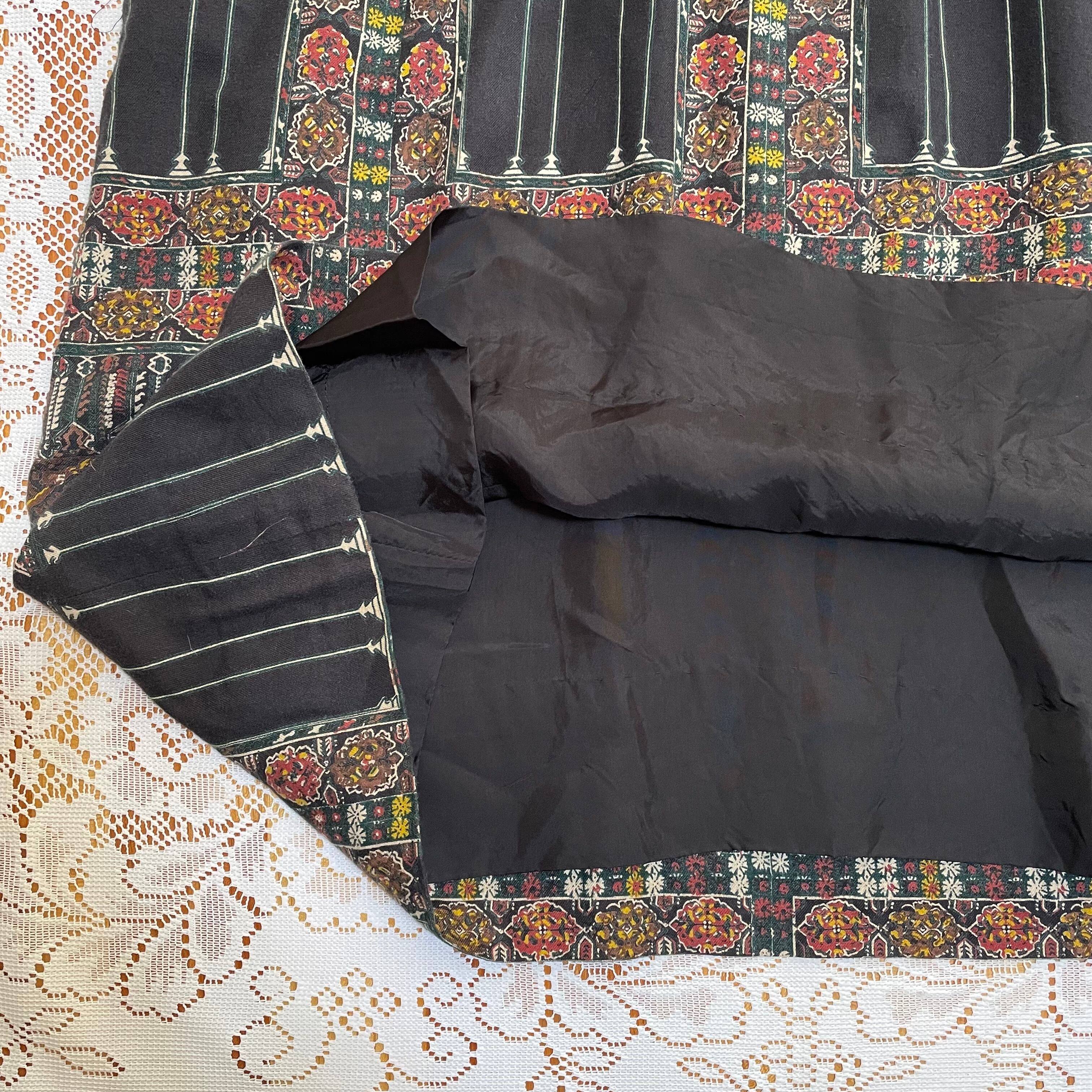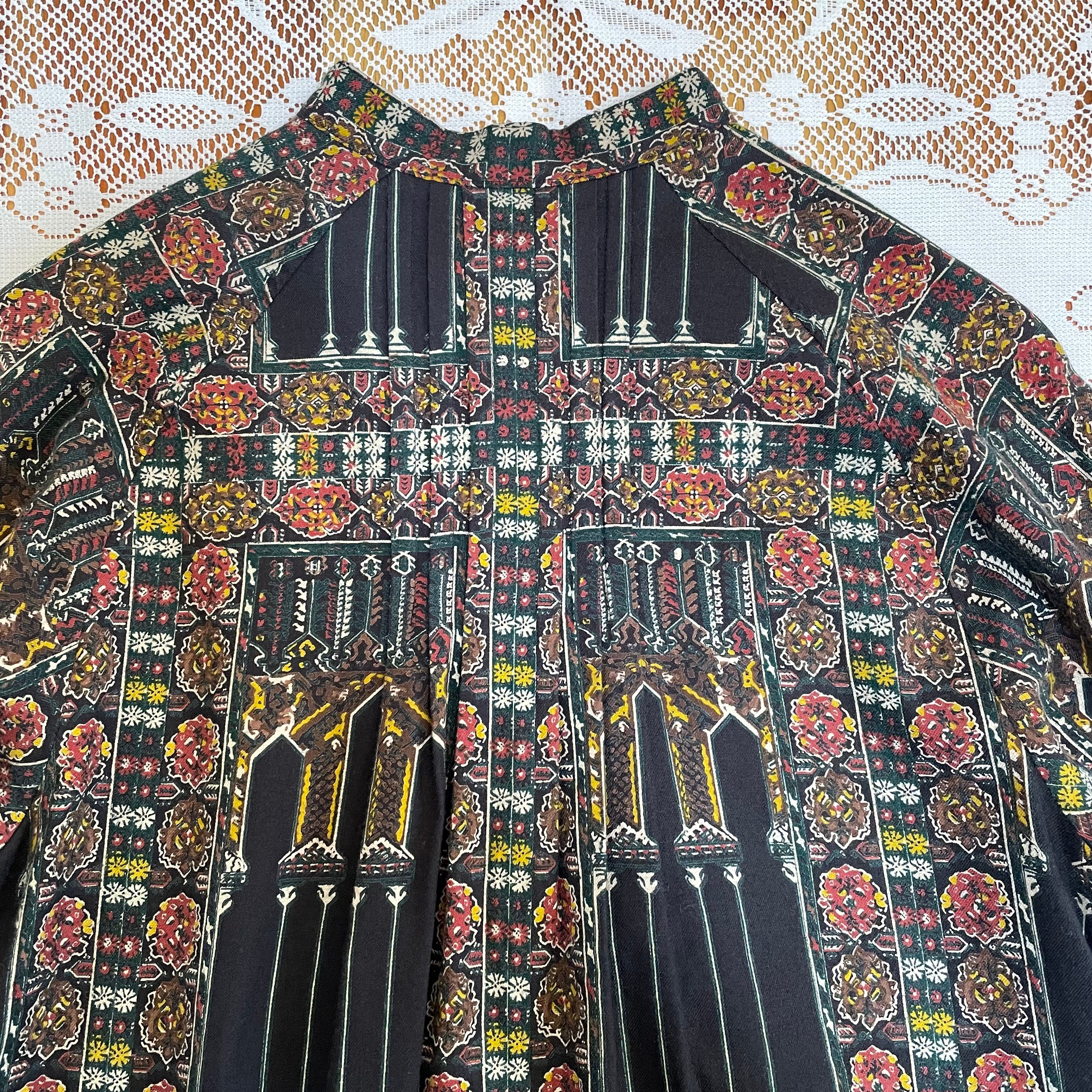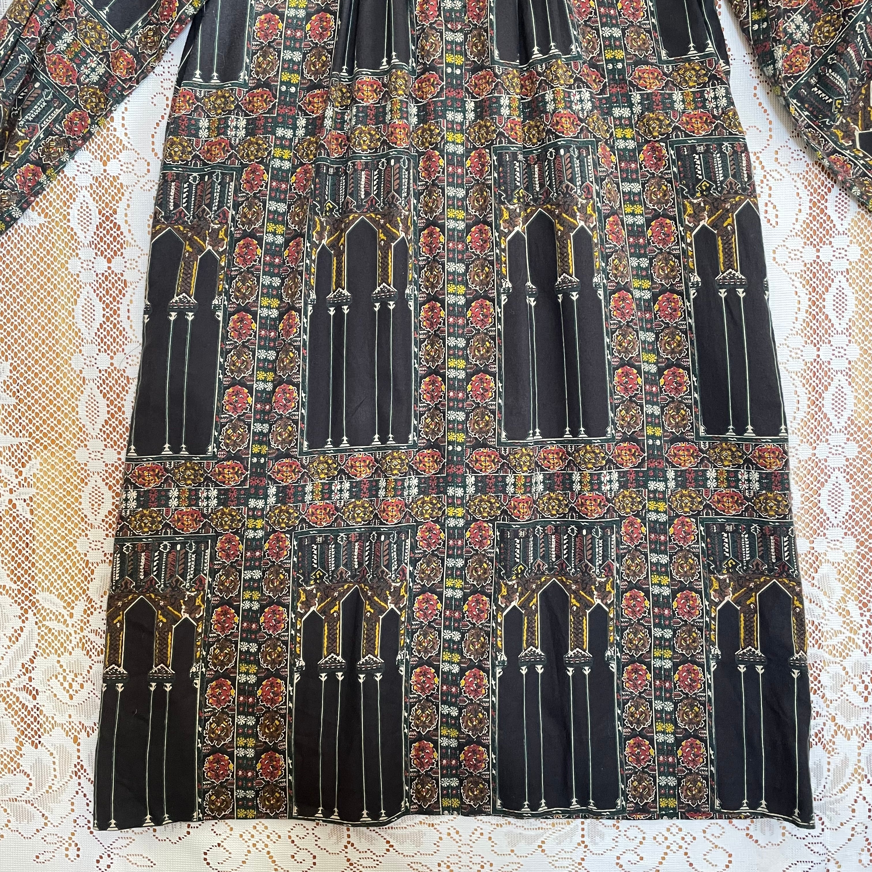ワンピース 古着 USED レトロ 総柄 花柄 ブラック グリーン サックワンピース GM179