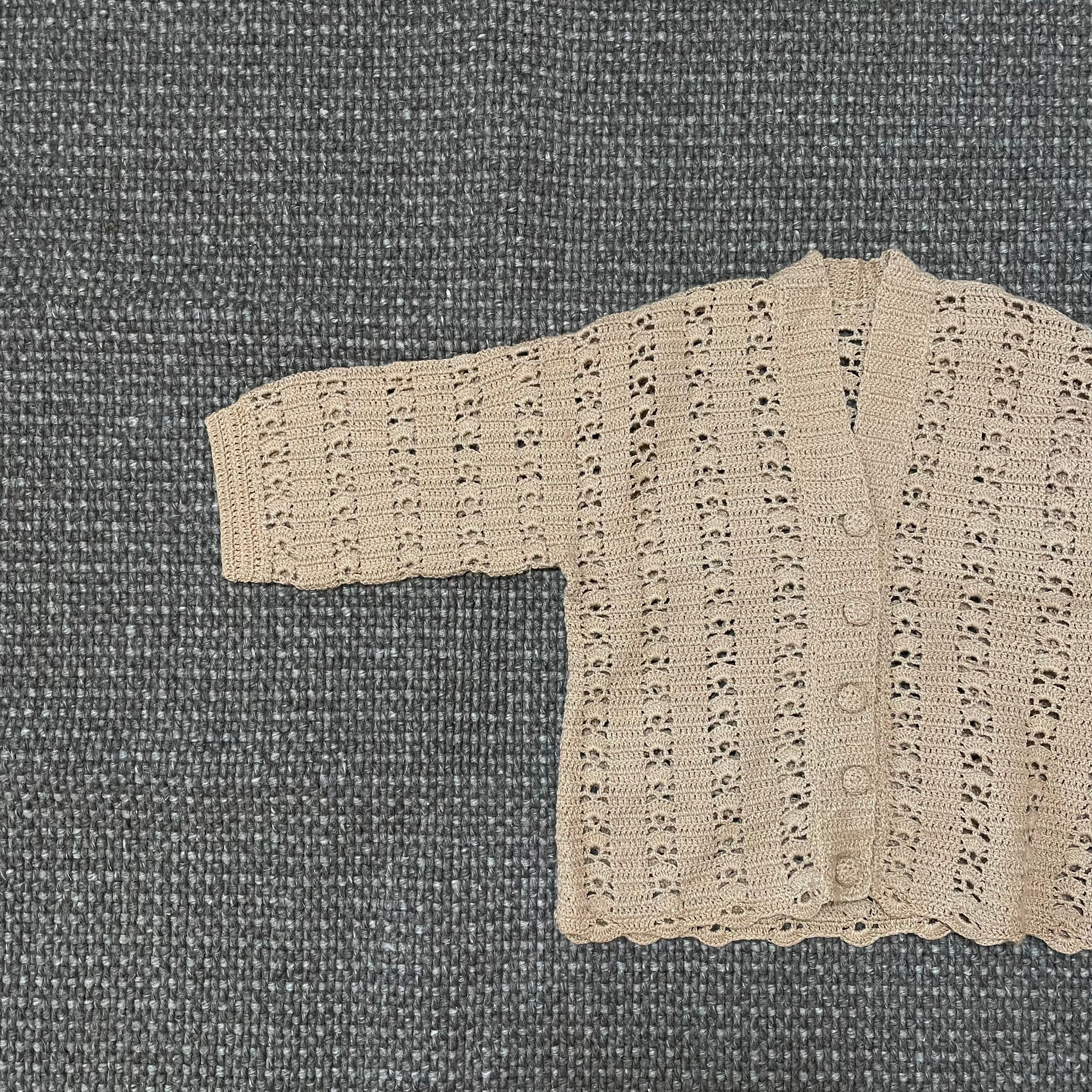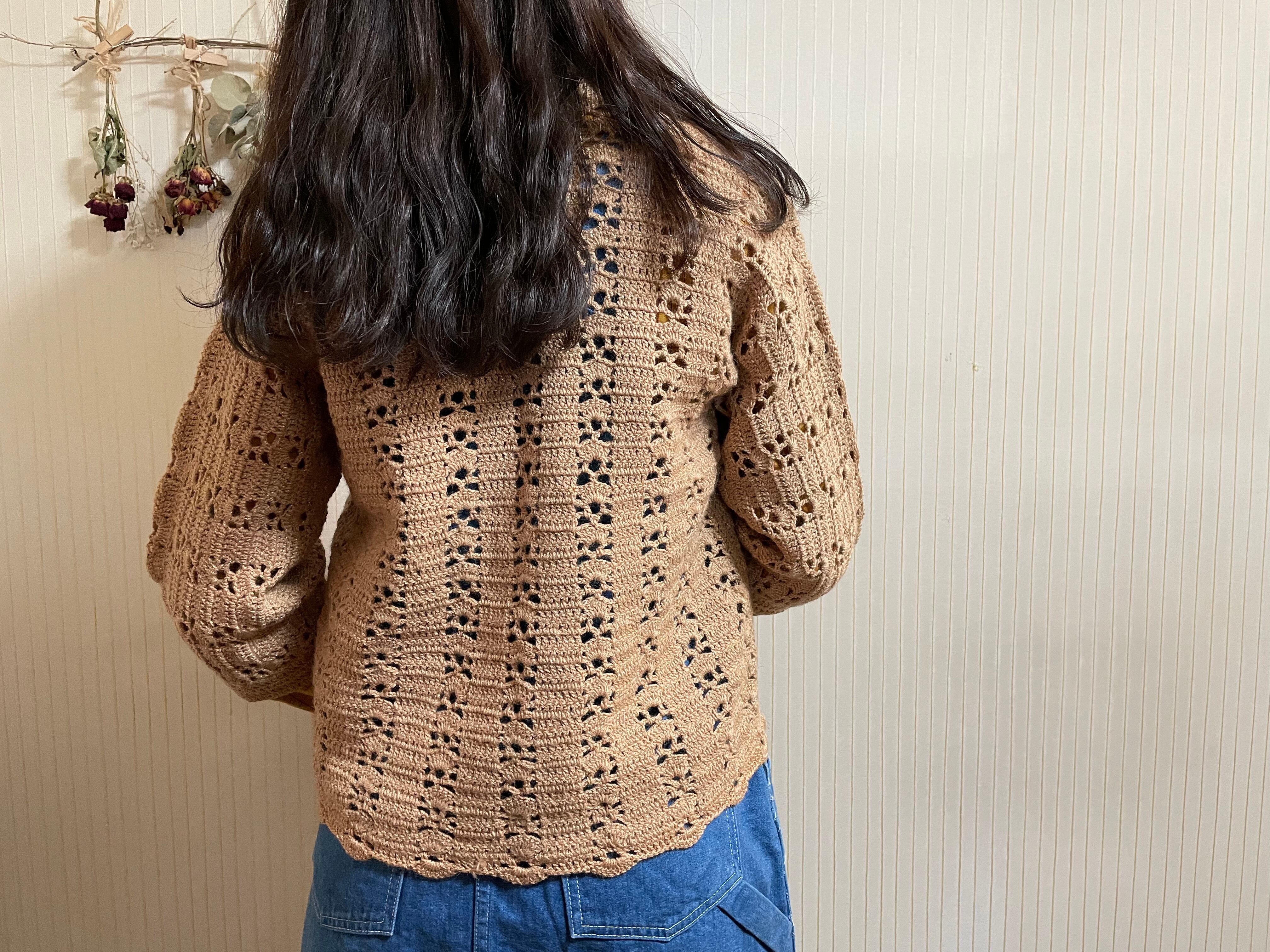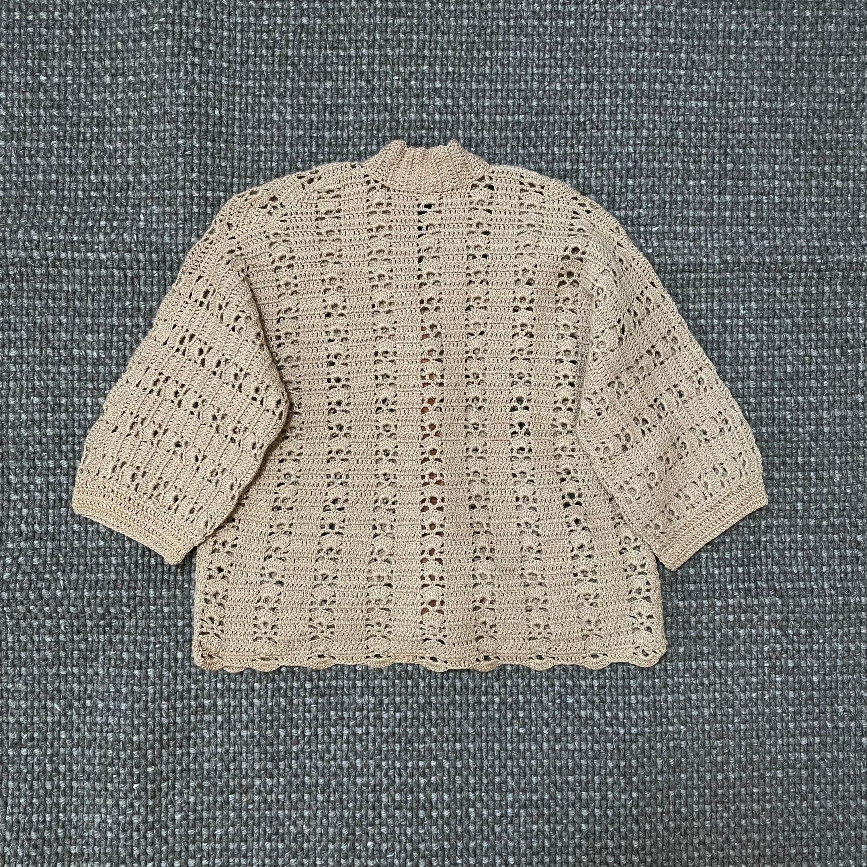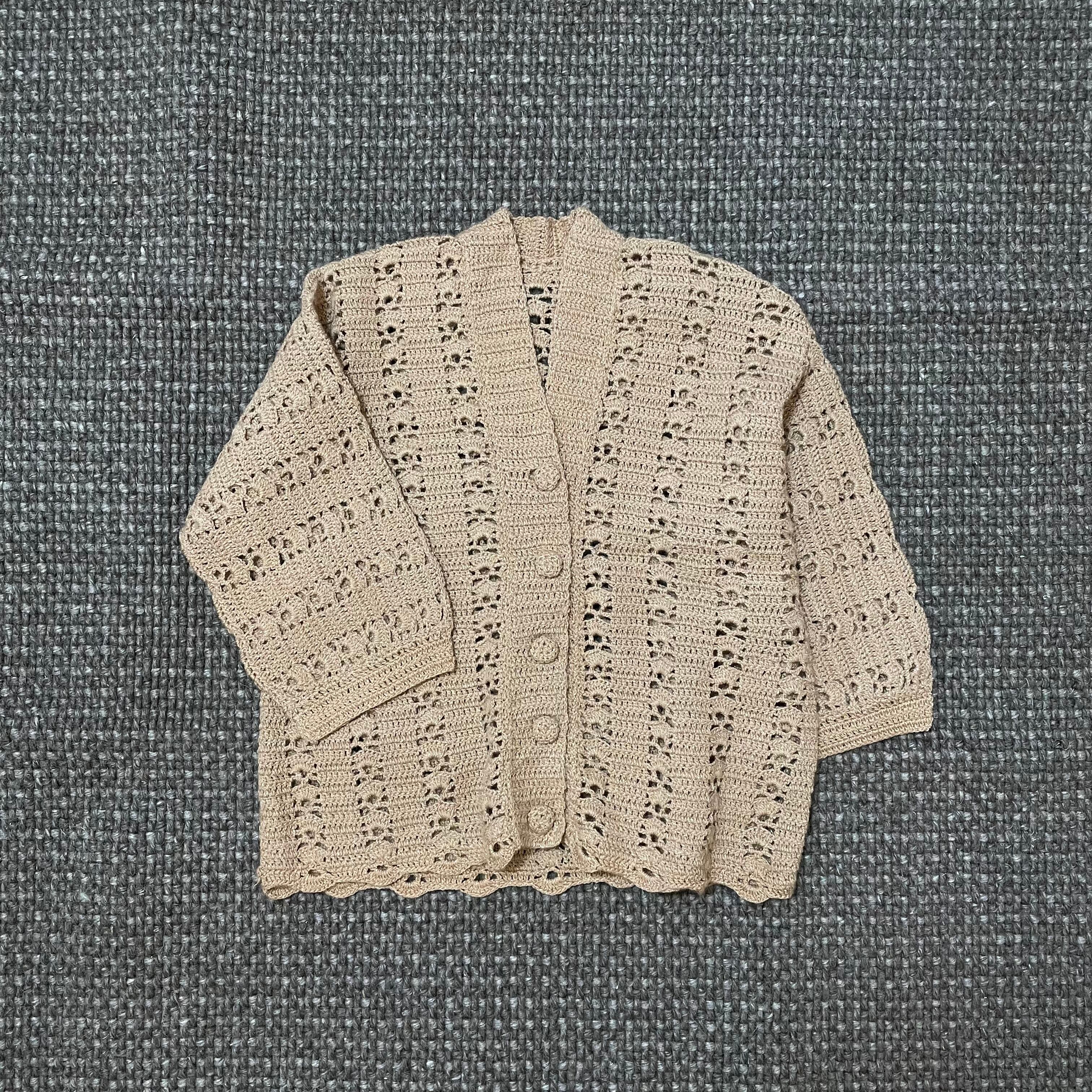 ニットカーディガン 古着 USED クロシェ編み ブラウン ベージュ KP26