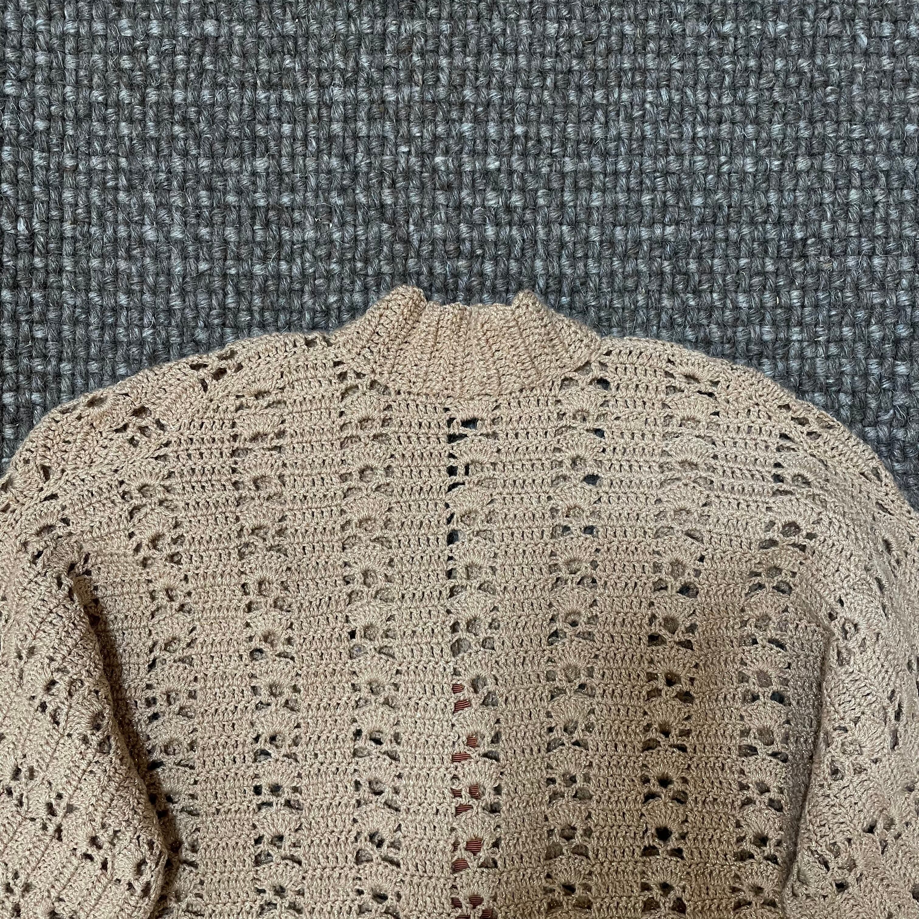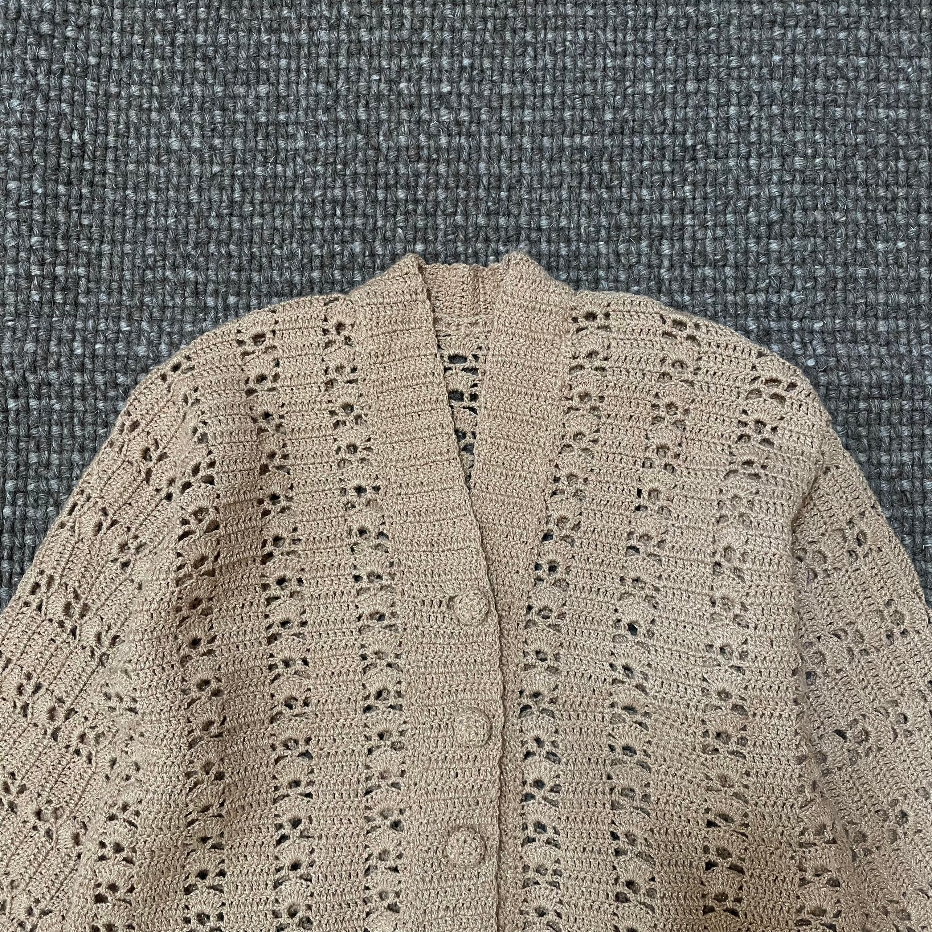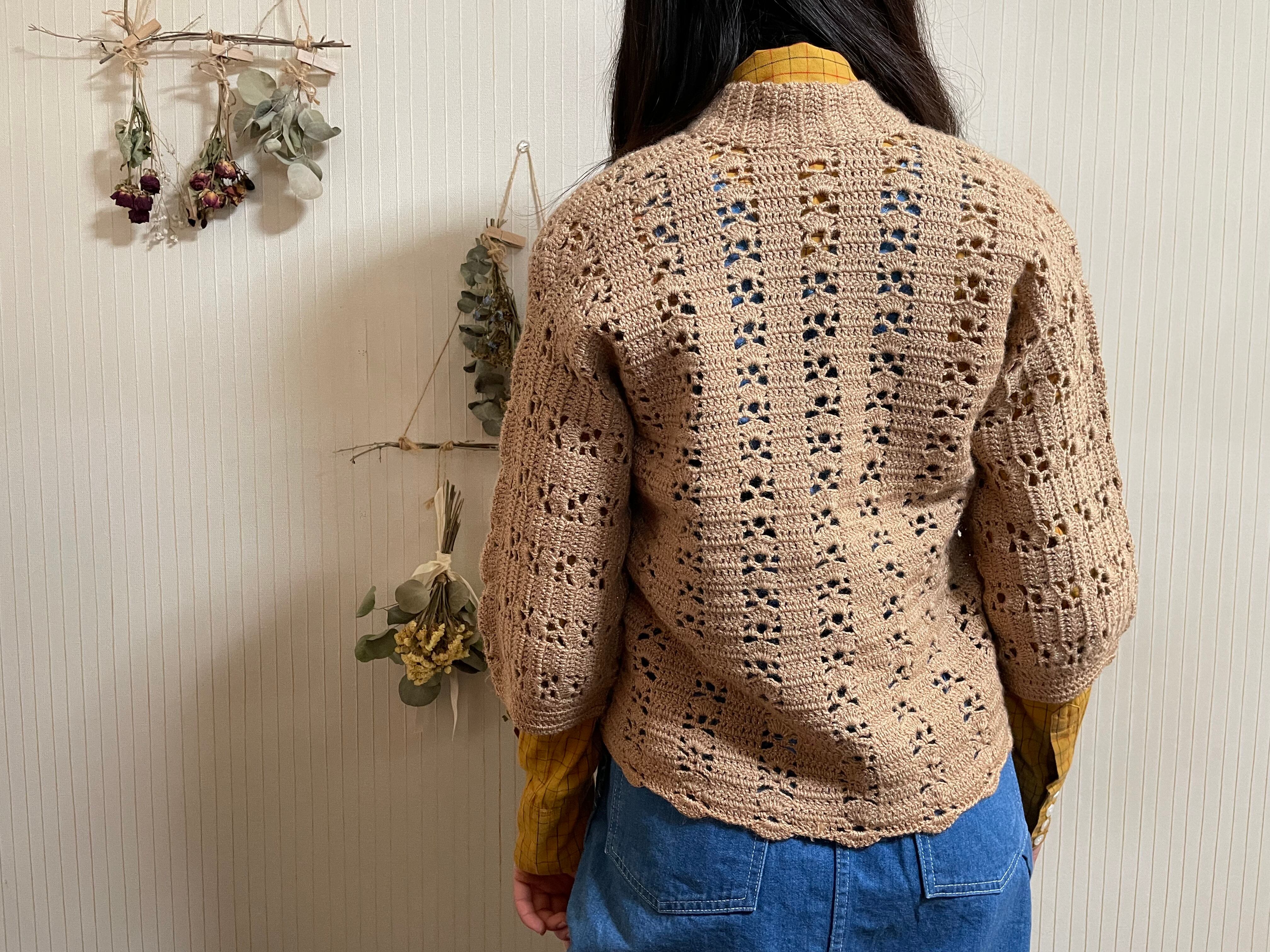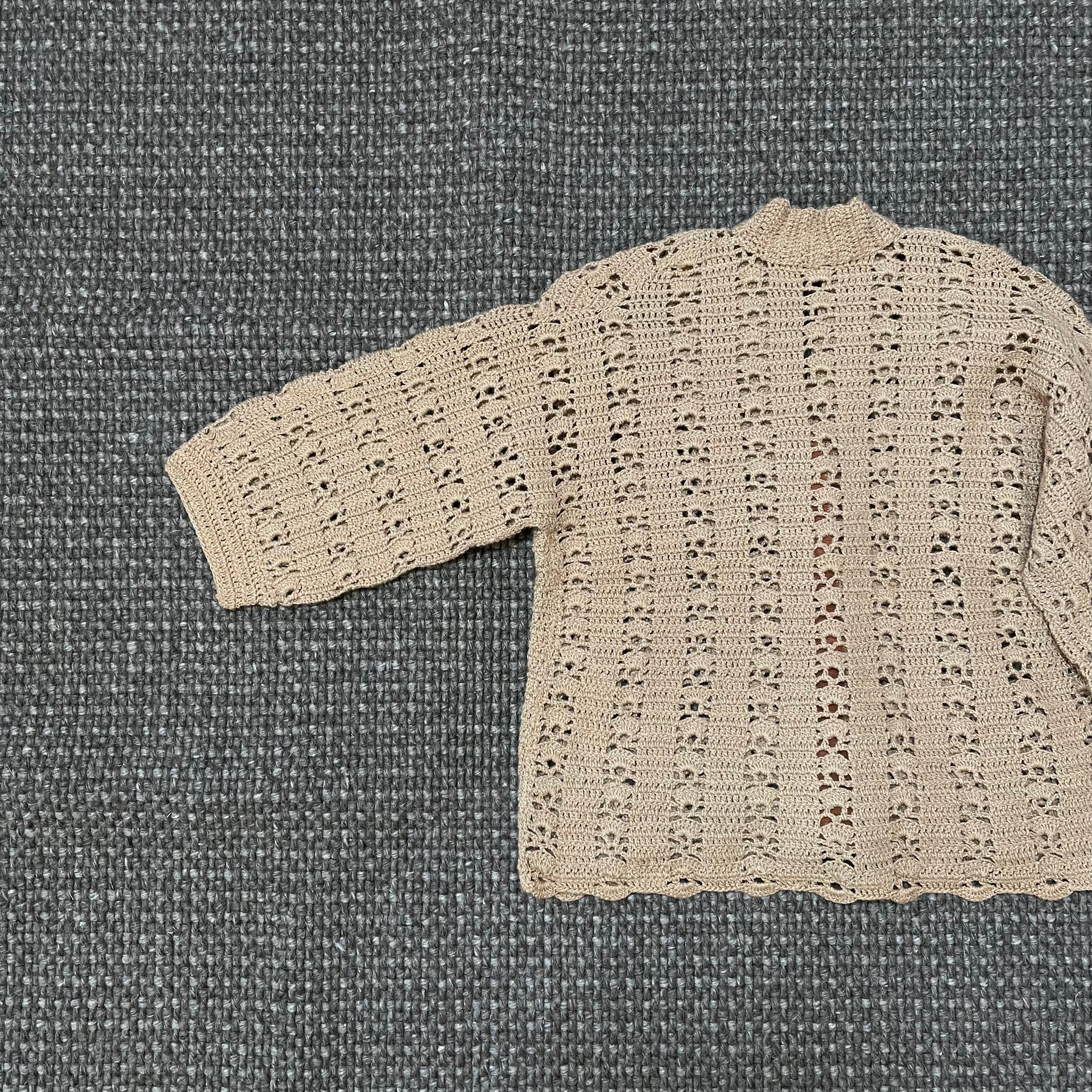 ニットカーディガン 古着 USED クロシェ編み ブラウン ベージュ KP26