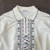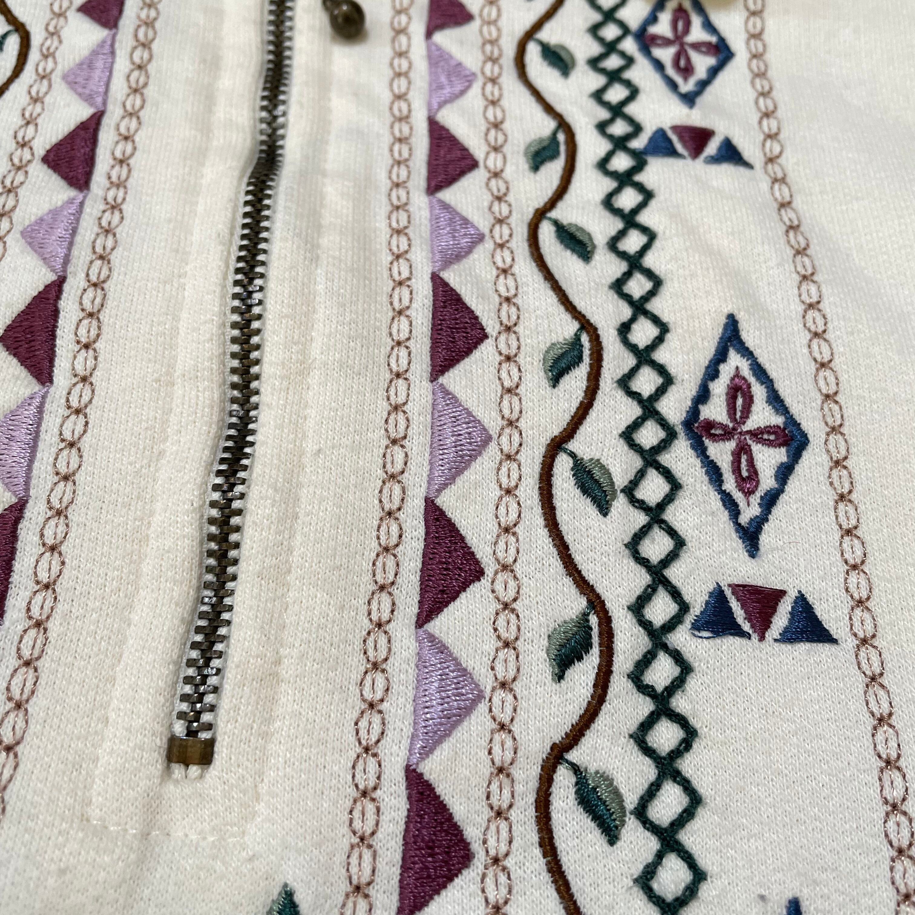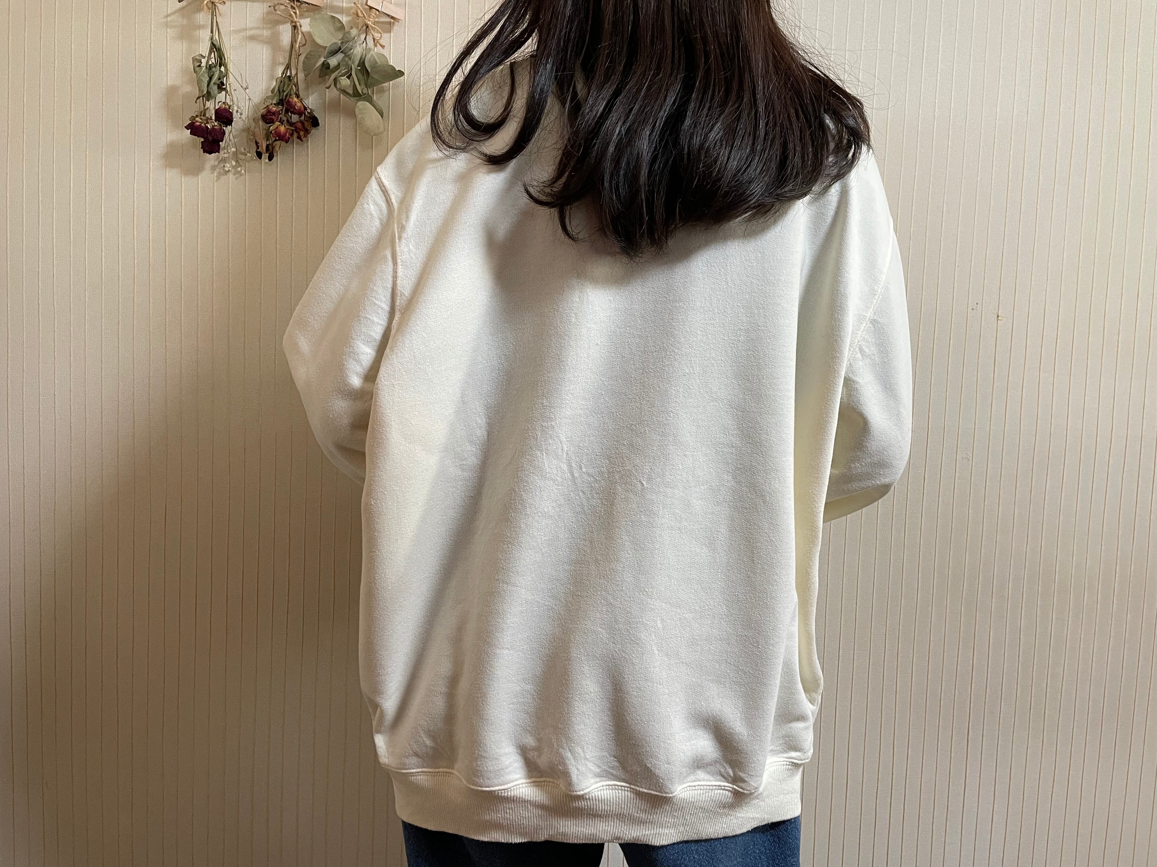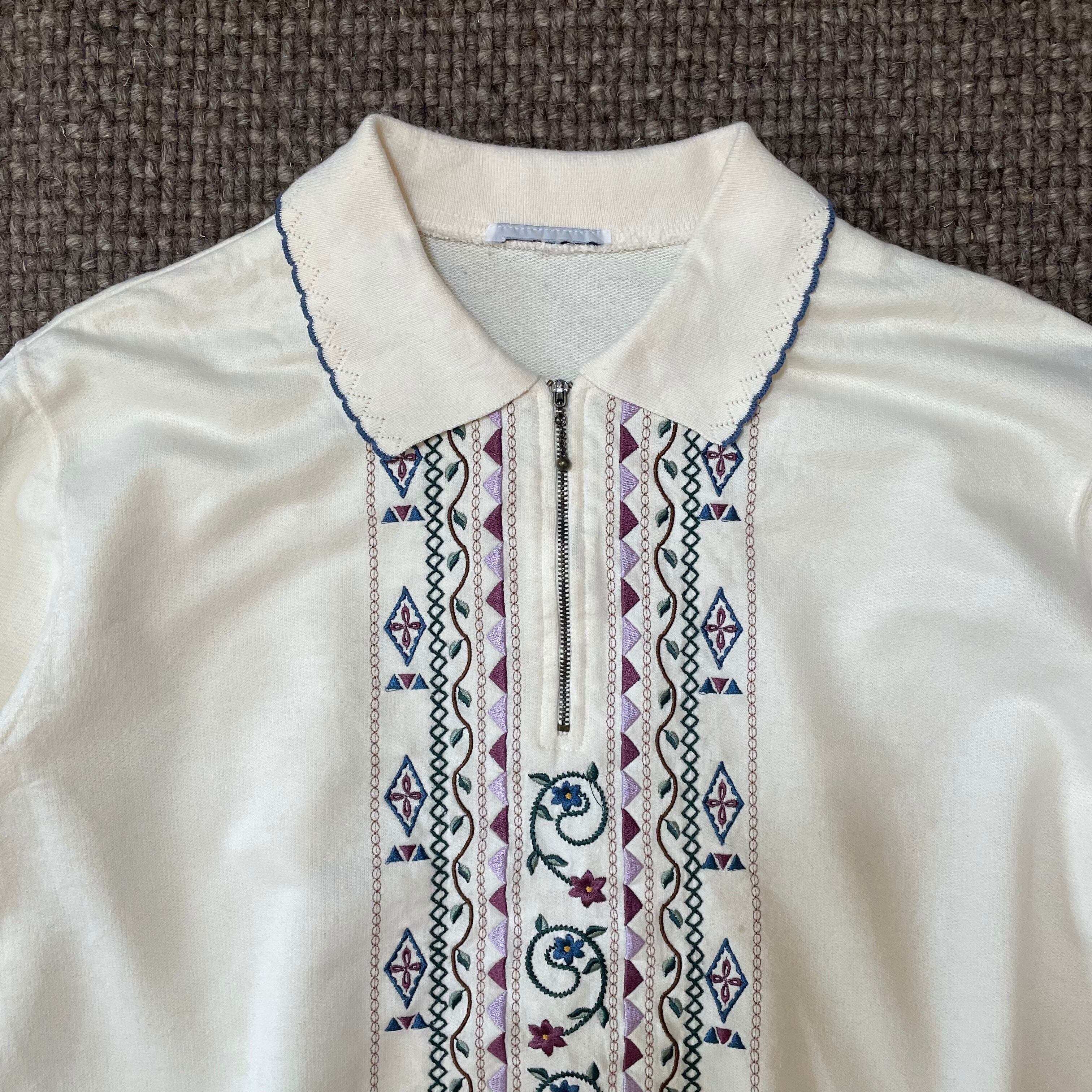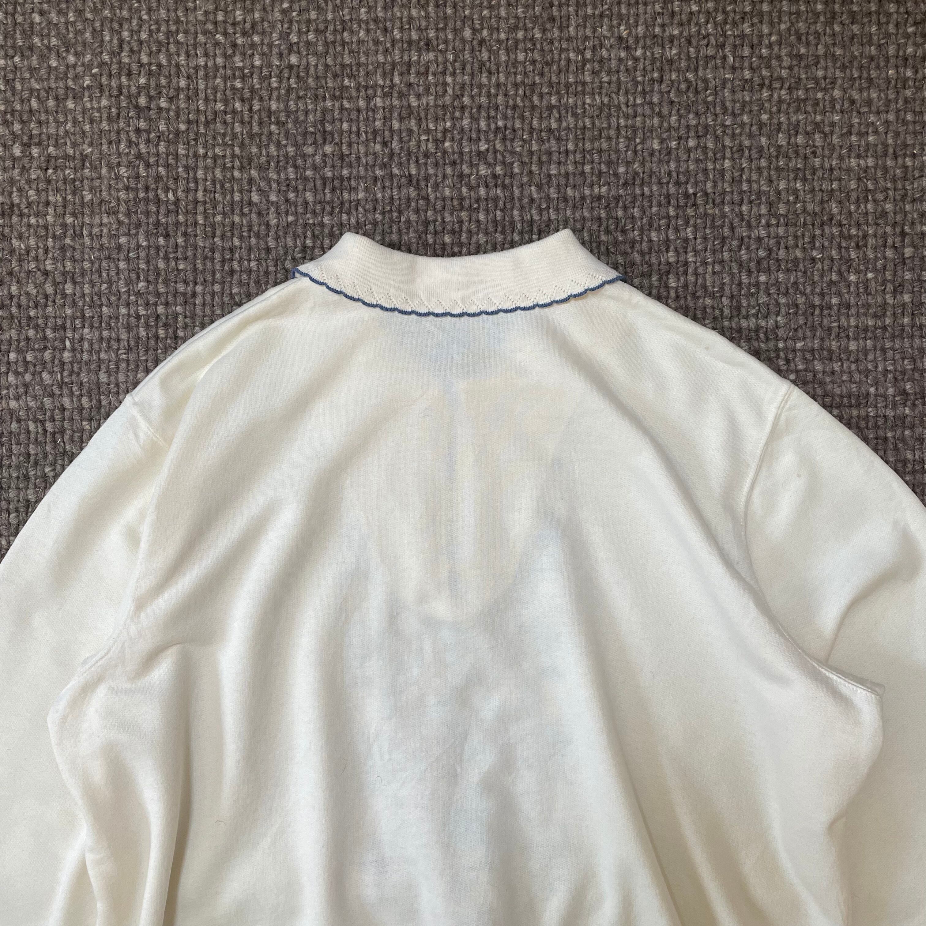 トレーナー 古着 USED 襟付きスウェット ホワイト 刺繍 花柄 KP35