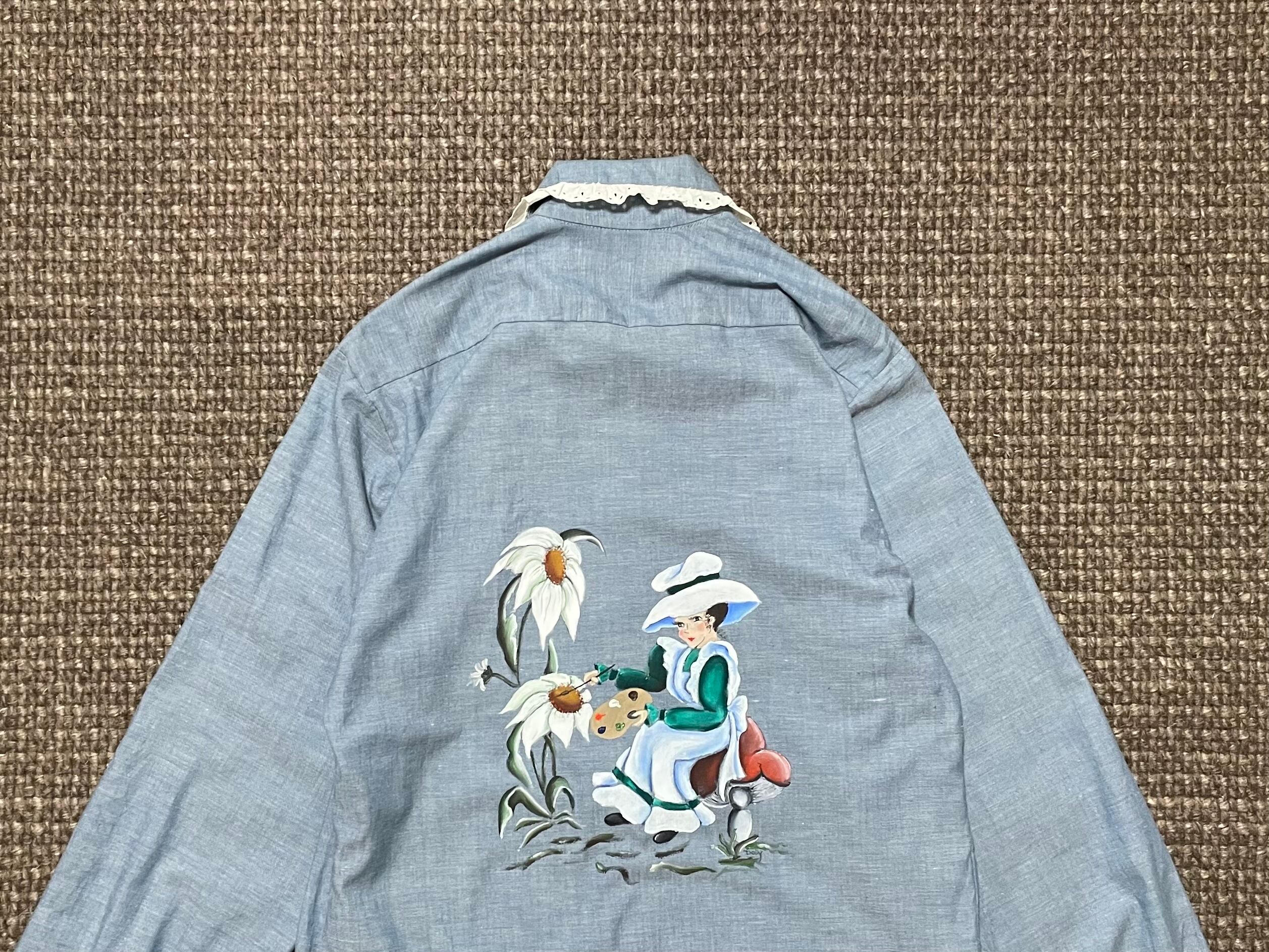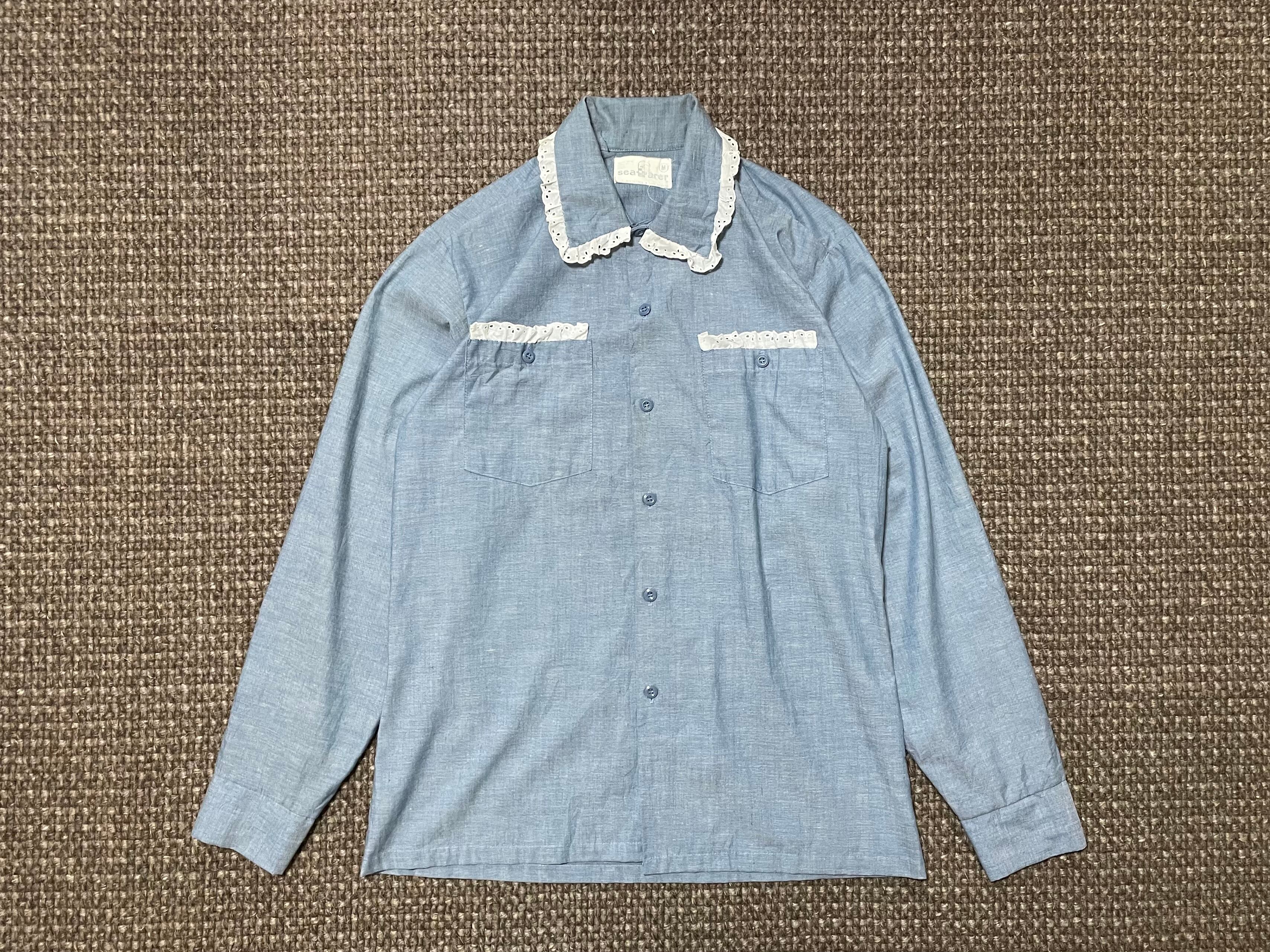 シャツ 古着 USED ヴィンテージ 70s シャンブレー フリル