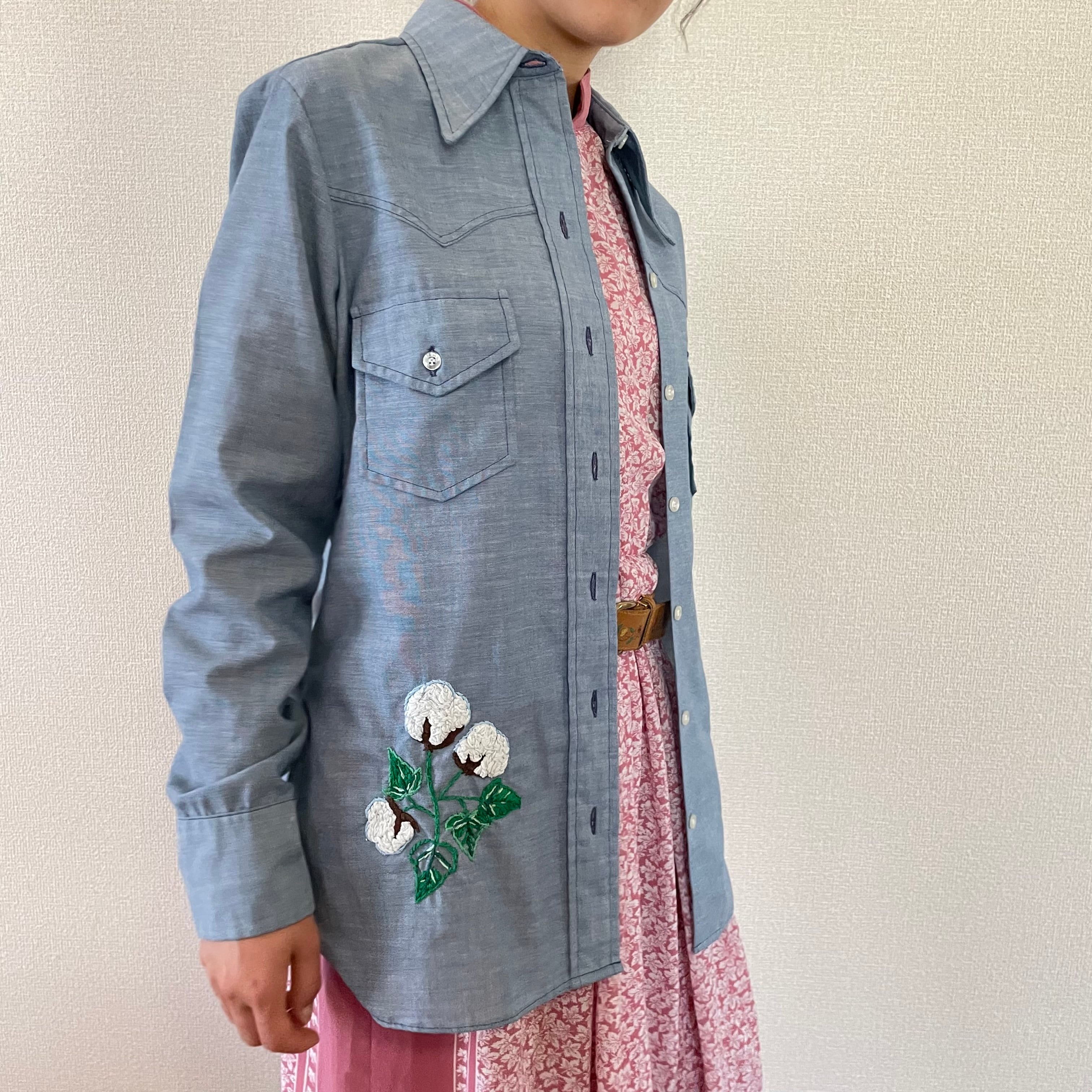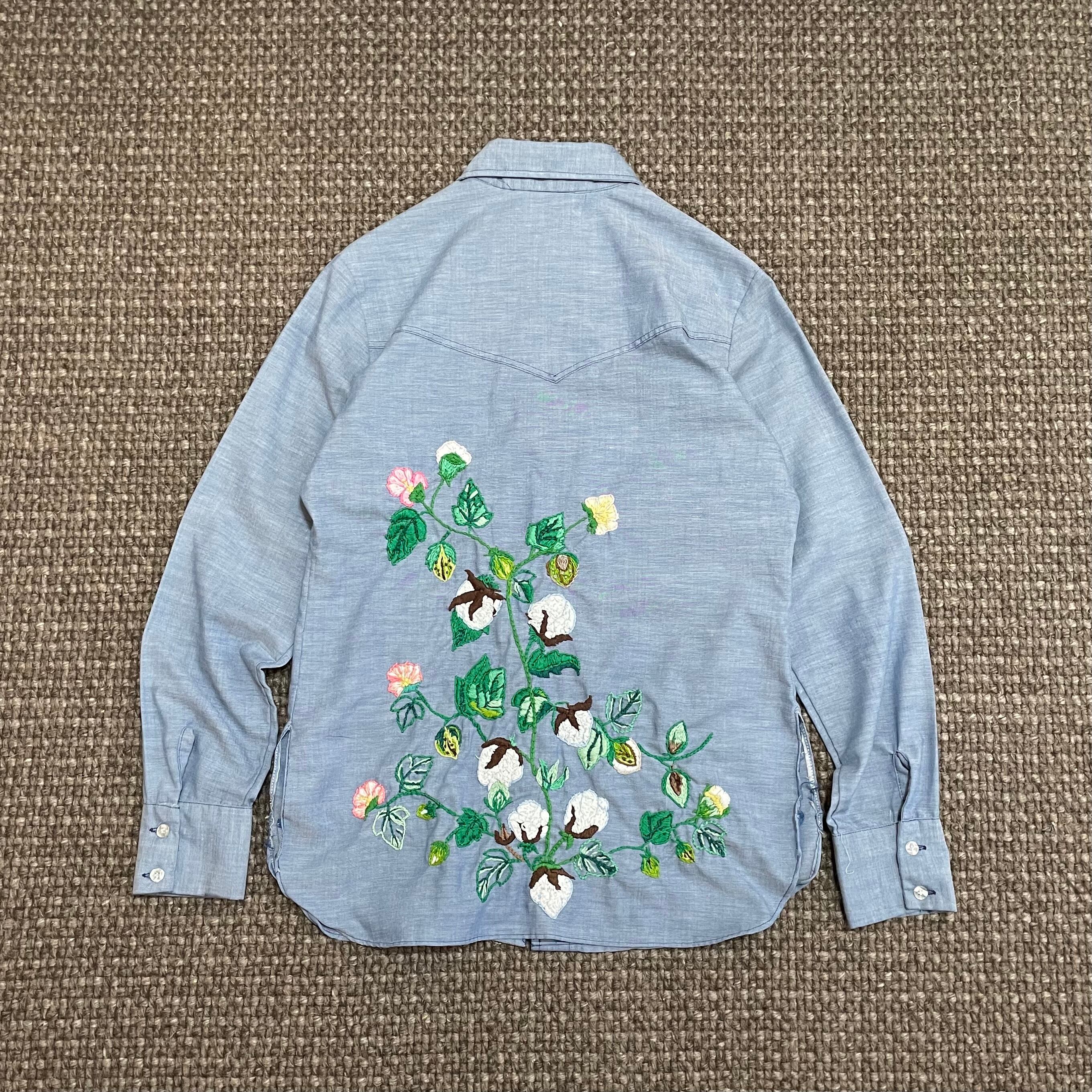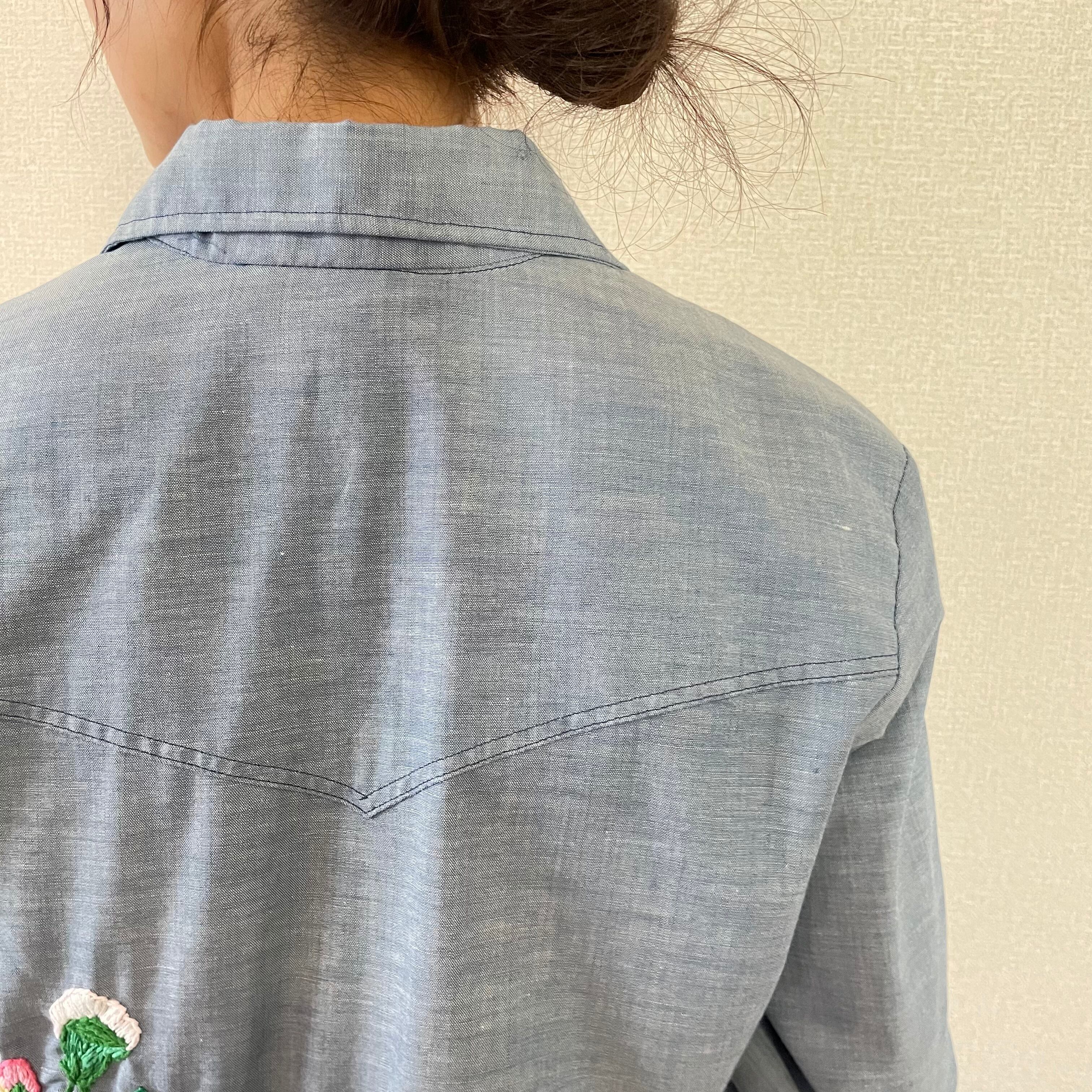 70s chambray shirt シャツ 古着 ヴィンテージ 70s Wrangler USA製 シャンブレー 刺繍 J30