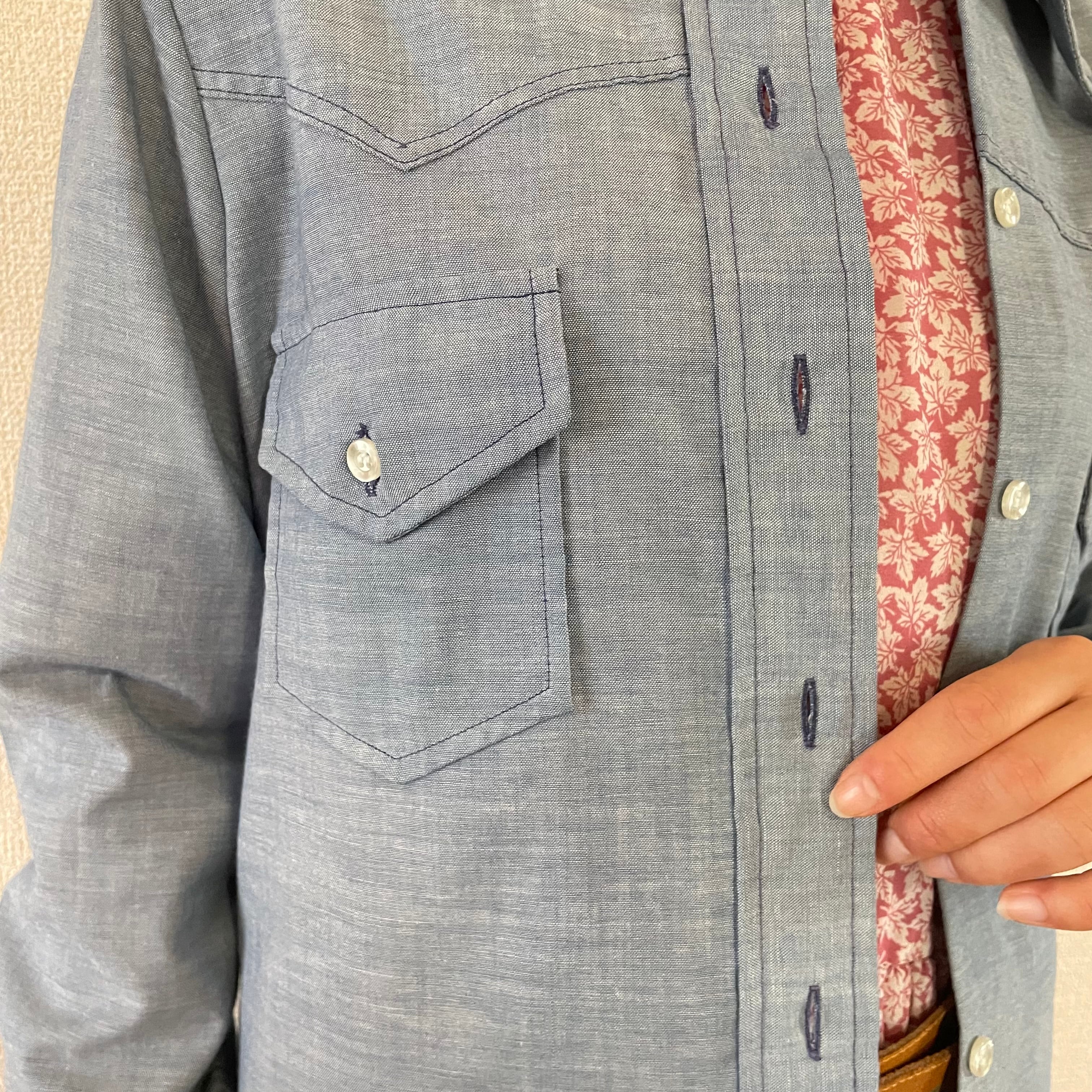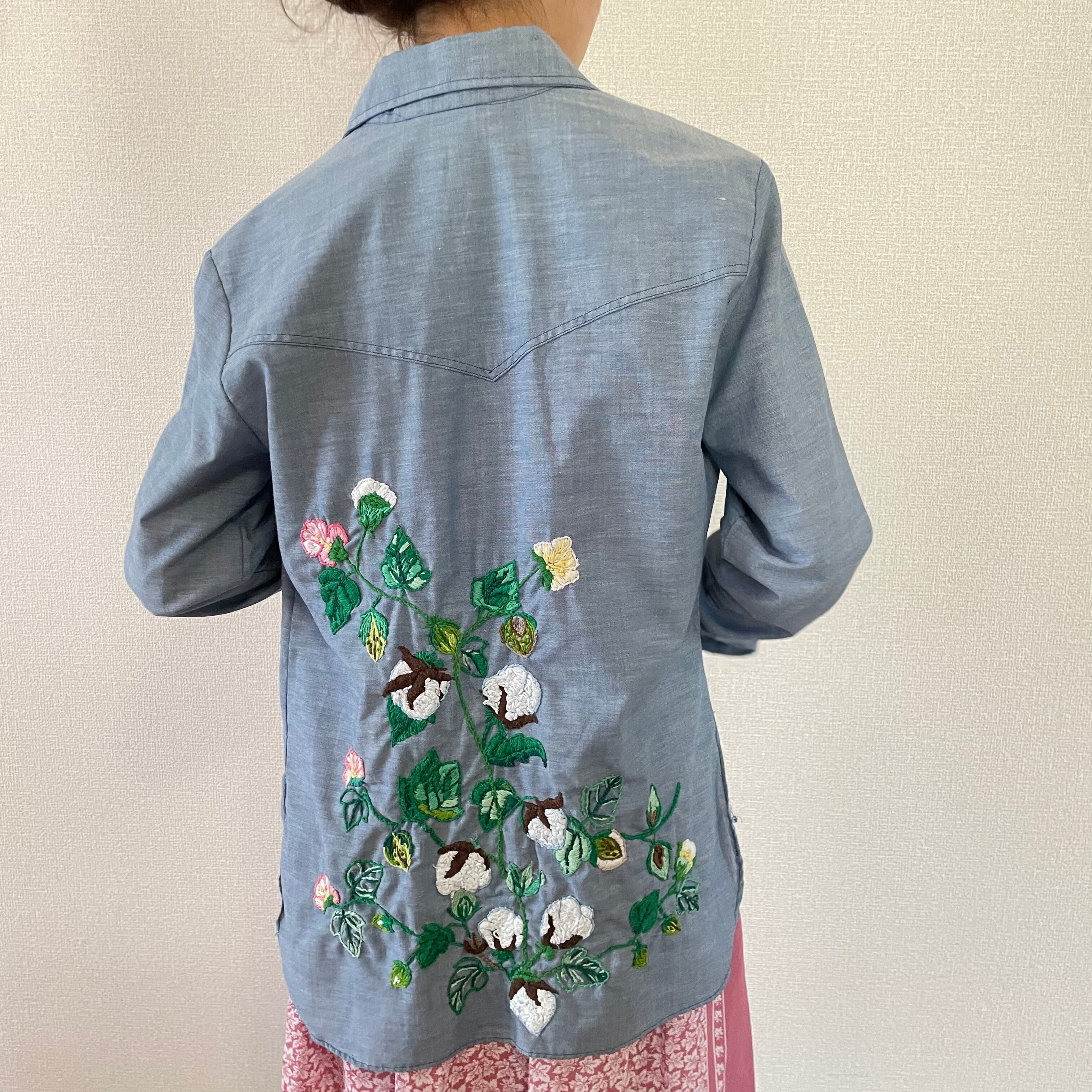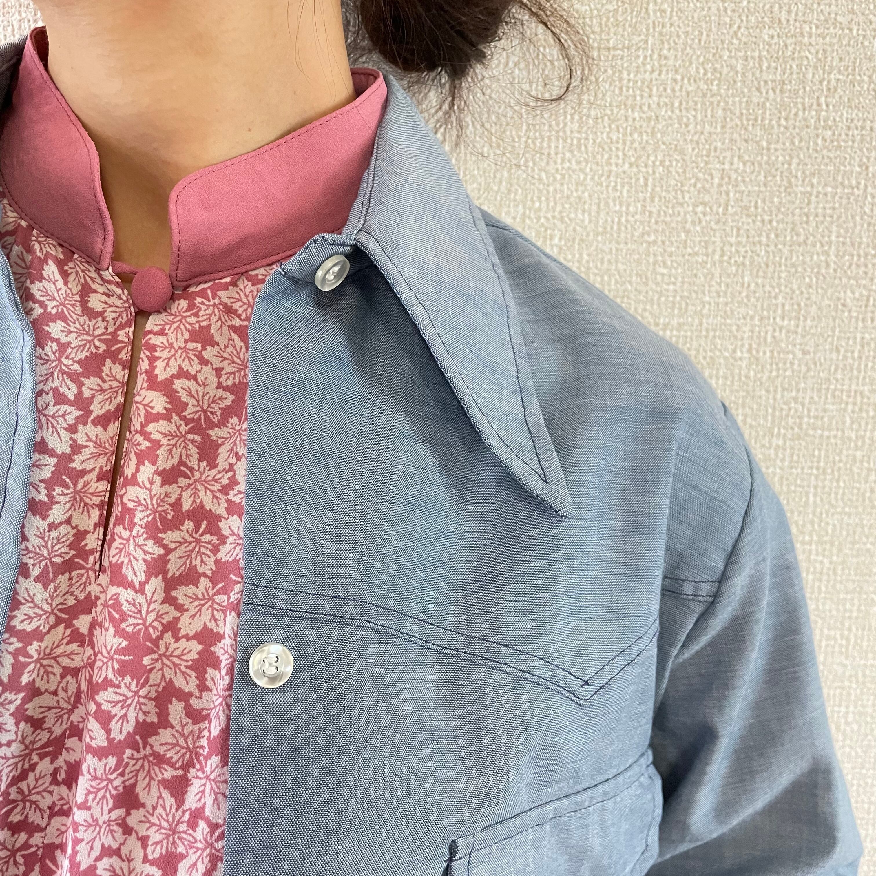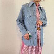 70s chambray shirt シャツ 古着 ヴィンテージ 70s Wrangler USA製 シャンブレー 刺繍 J30
