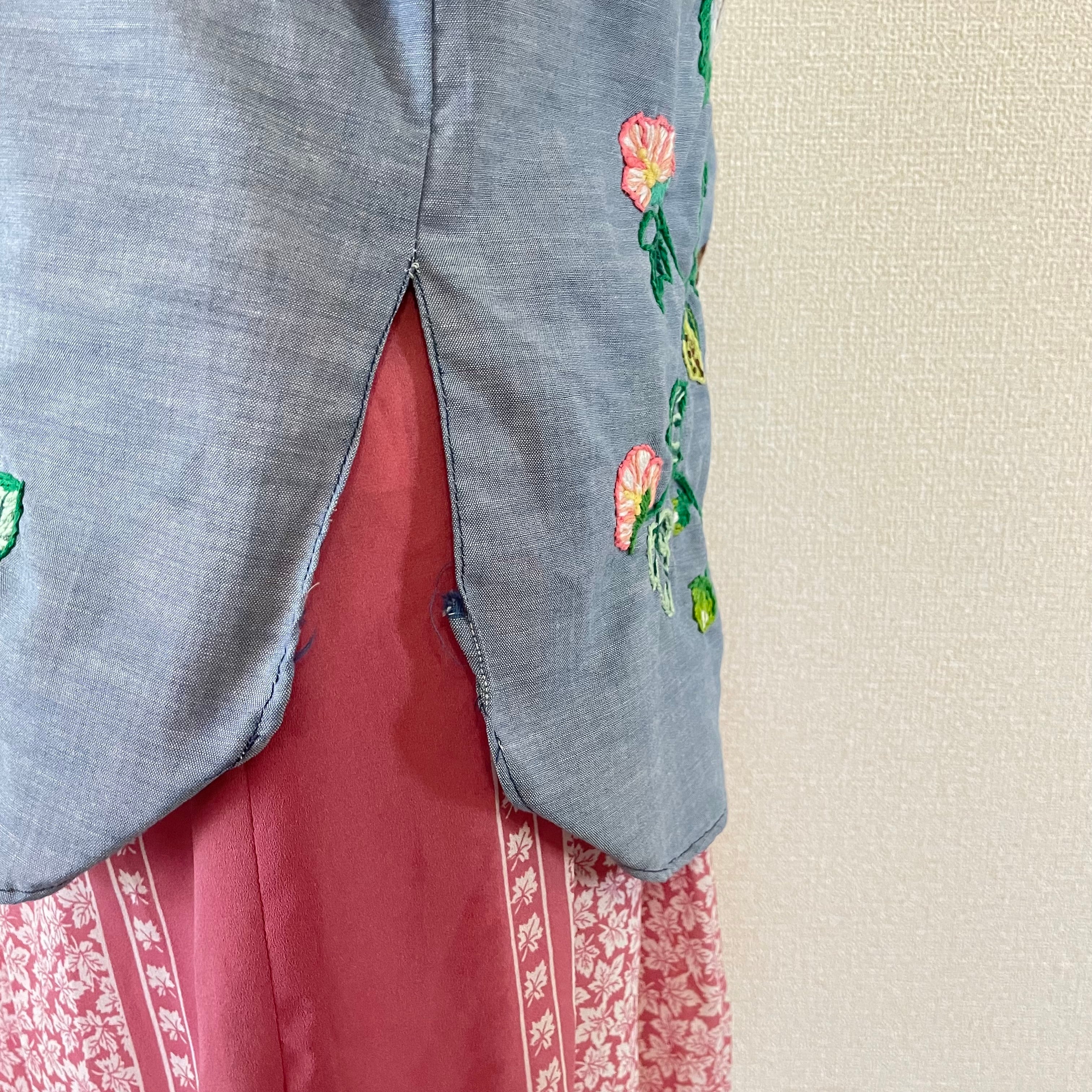 裾あたりに刺繍があるため、ボトムスにインせず羽織りとして着るコーディネートがおすすめです。