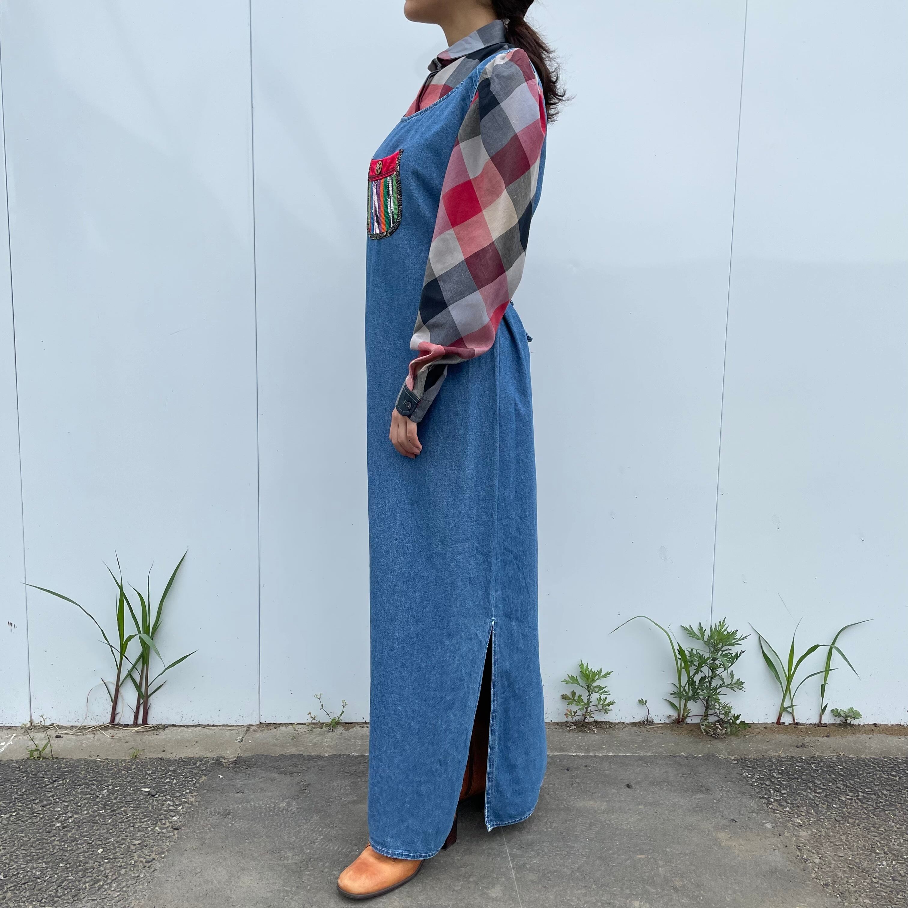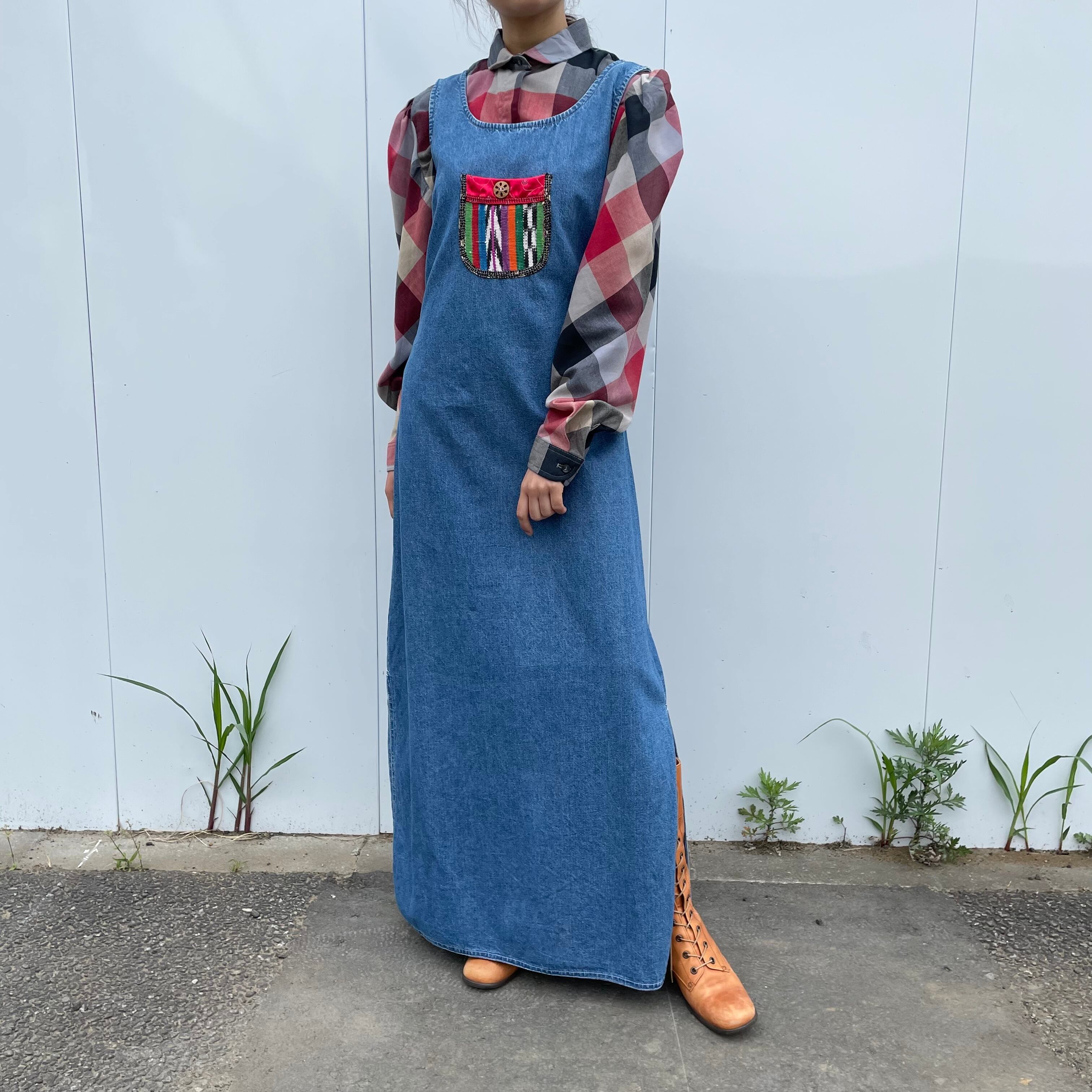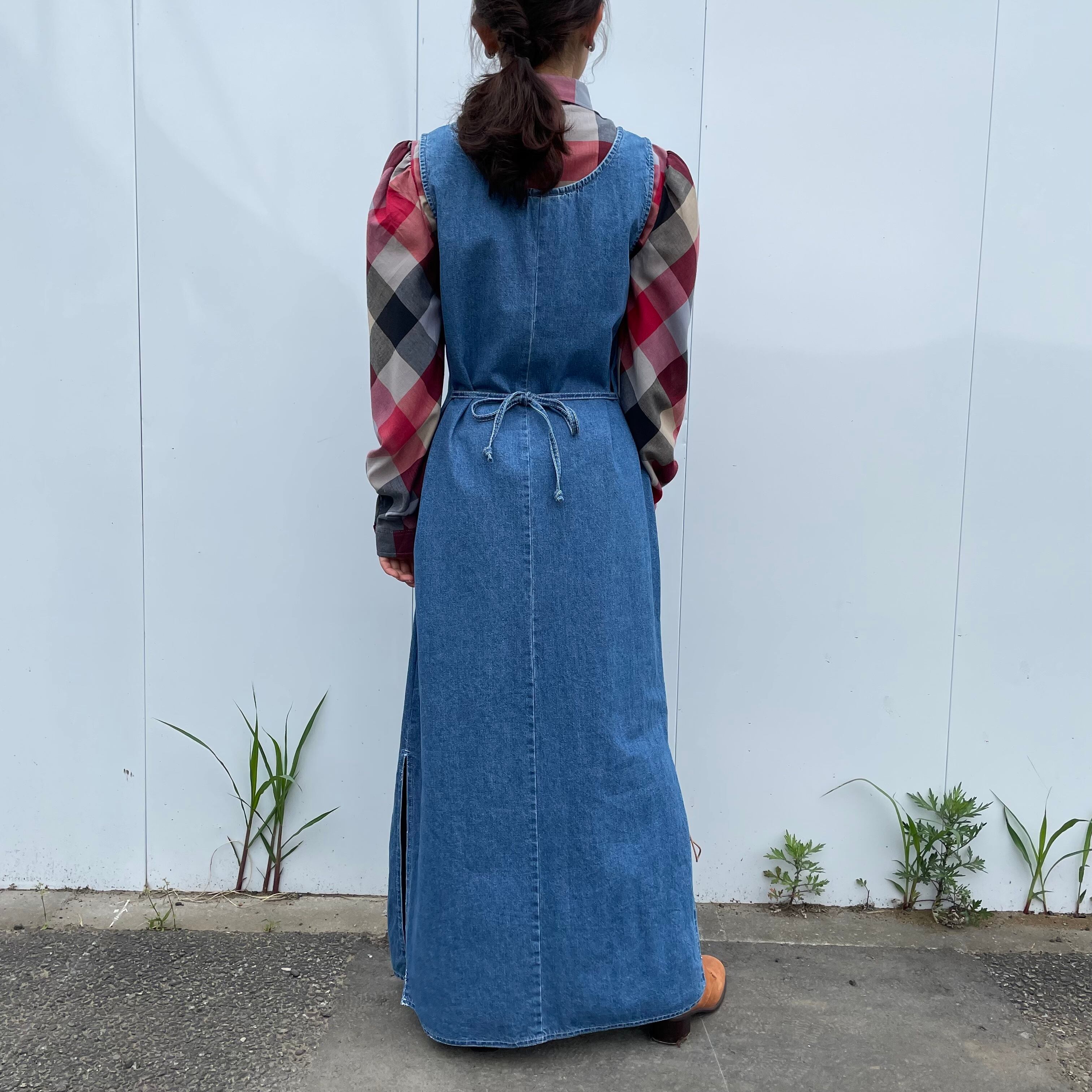 ワンピース 古着 レトロ ヴィンテージ USA製 デニムワンピース ノースリーブ ブルー KP50