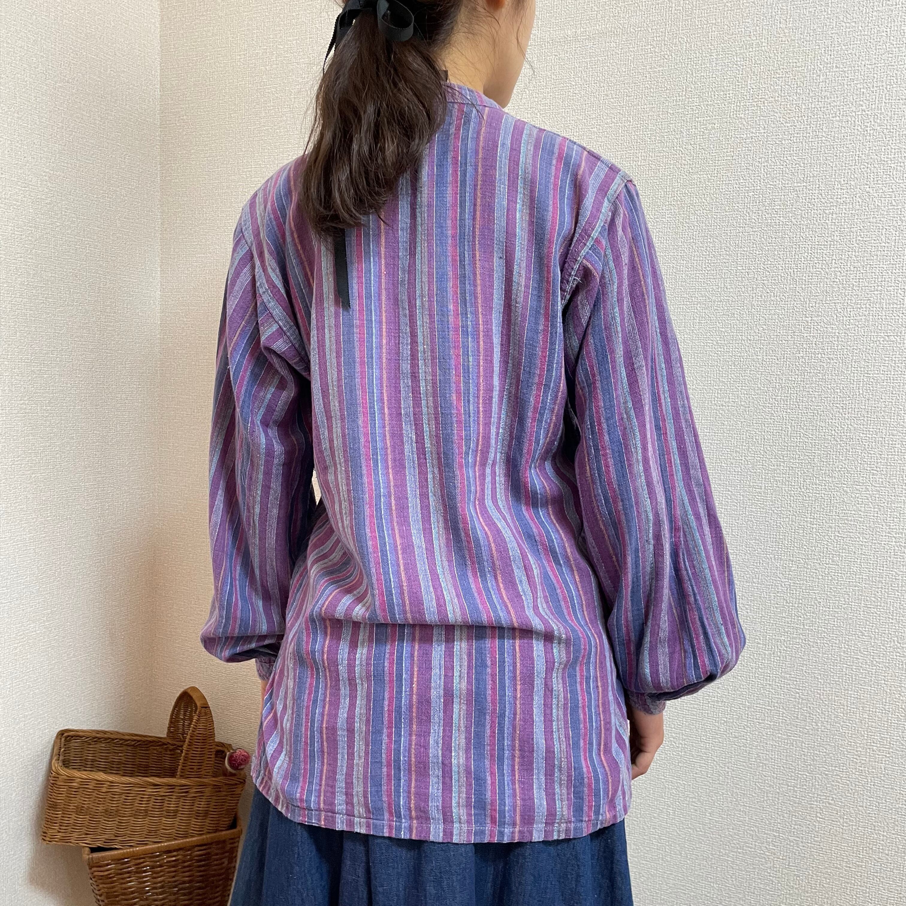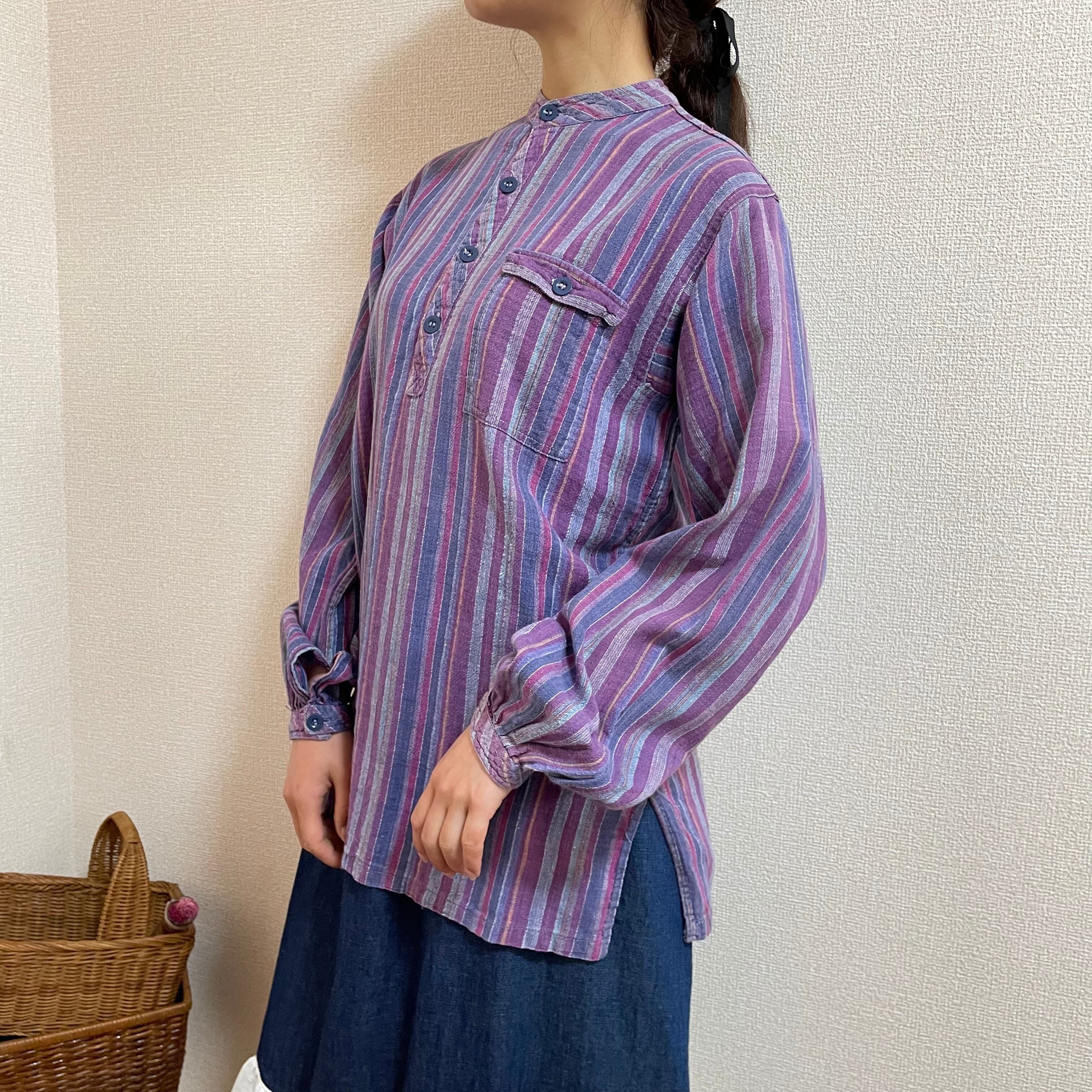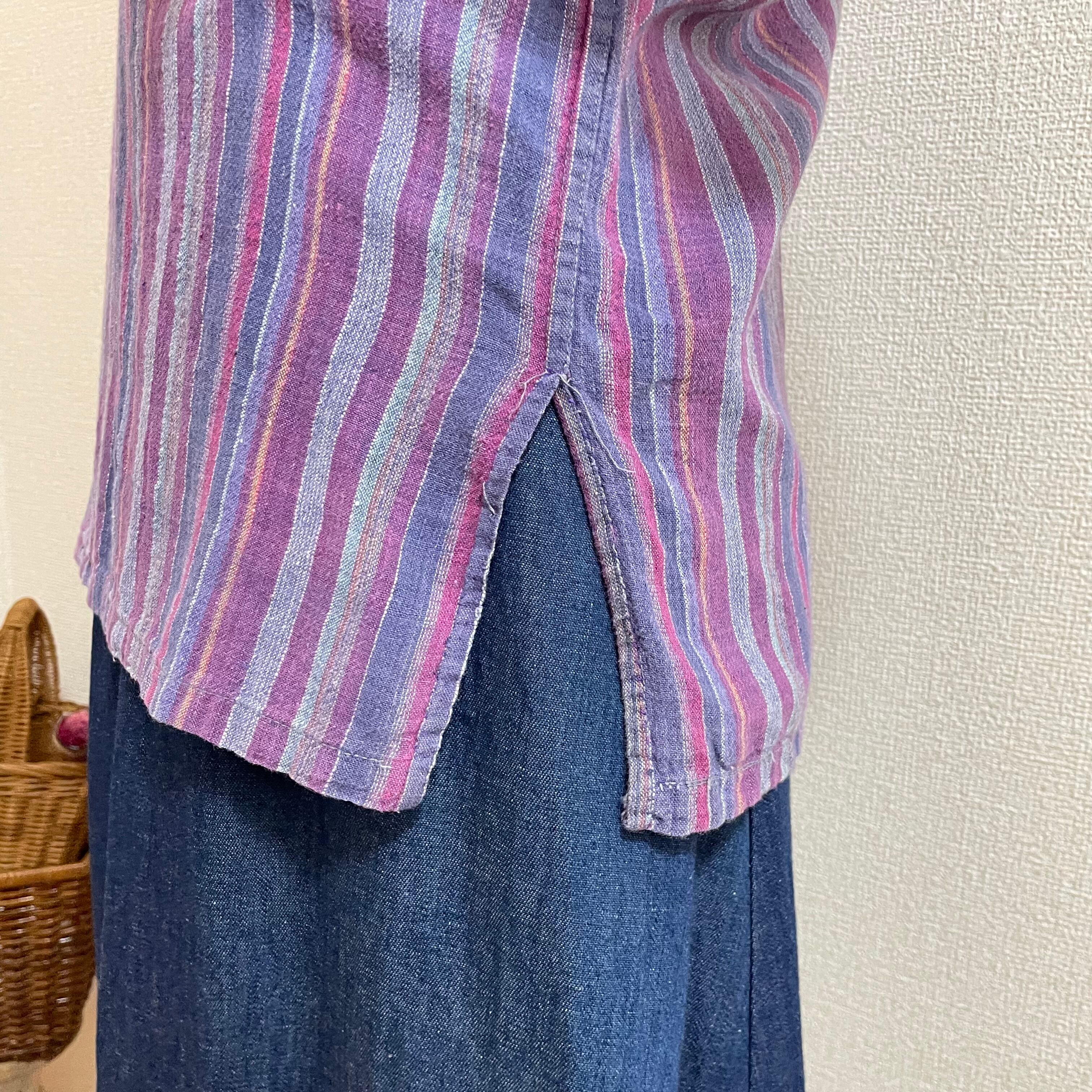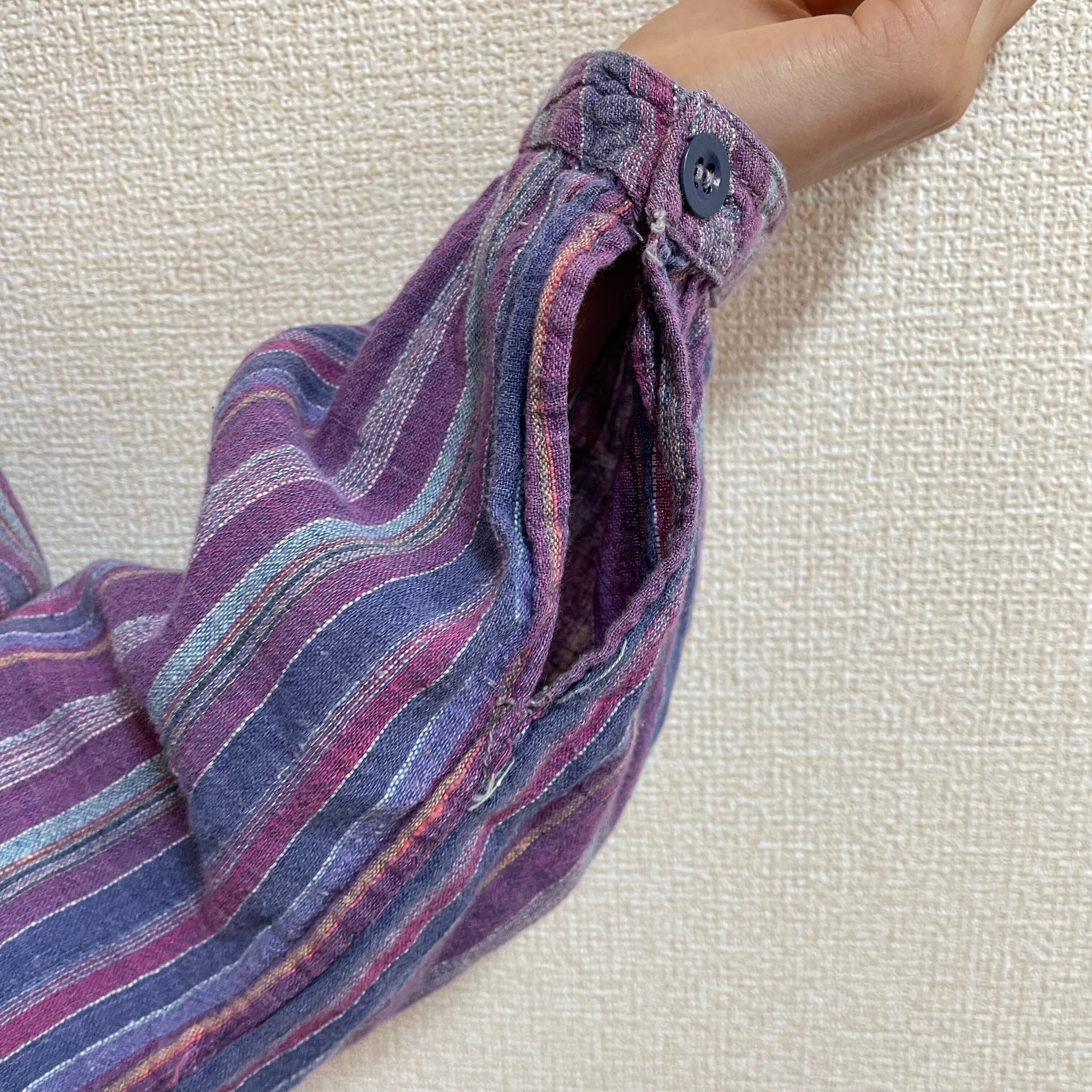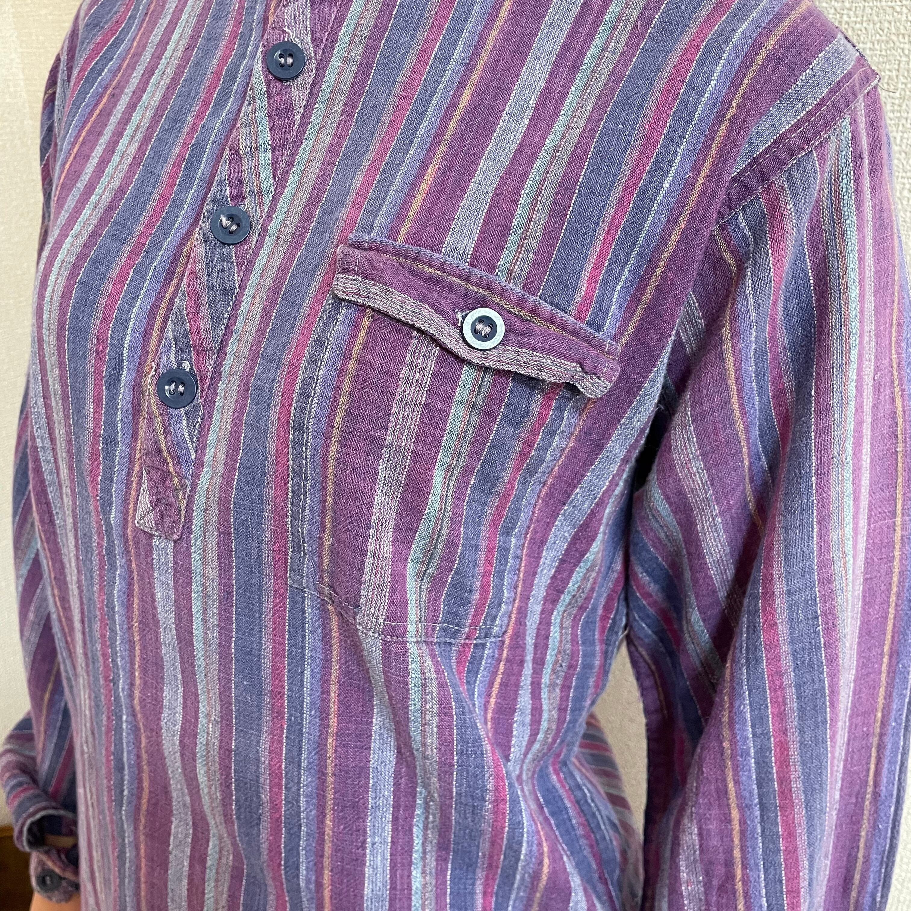 kurta shirt クルタシャツ 古着 プルオーバー エスニック ストライプ グランパシャツ KP66