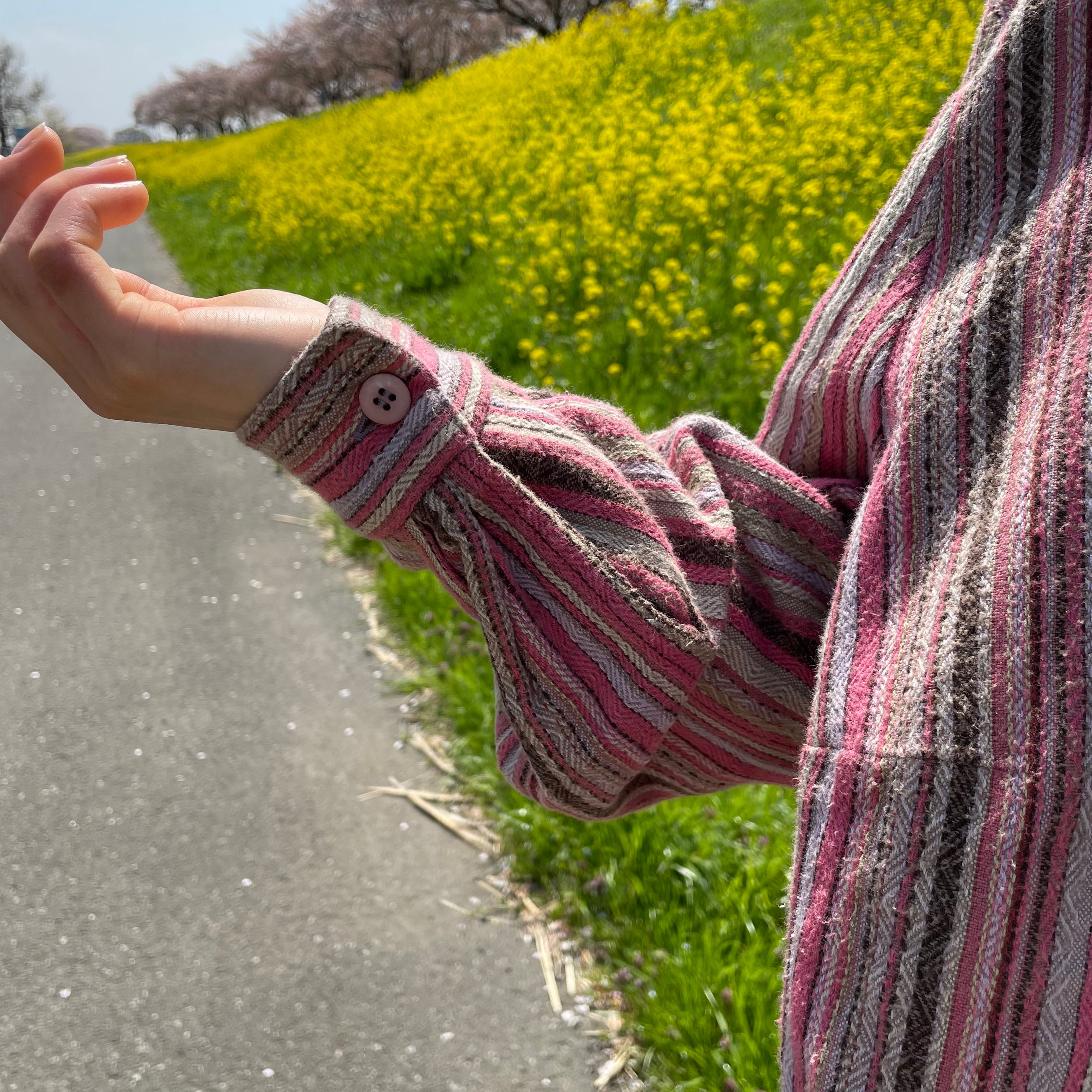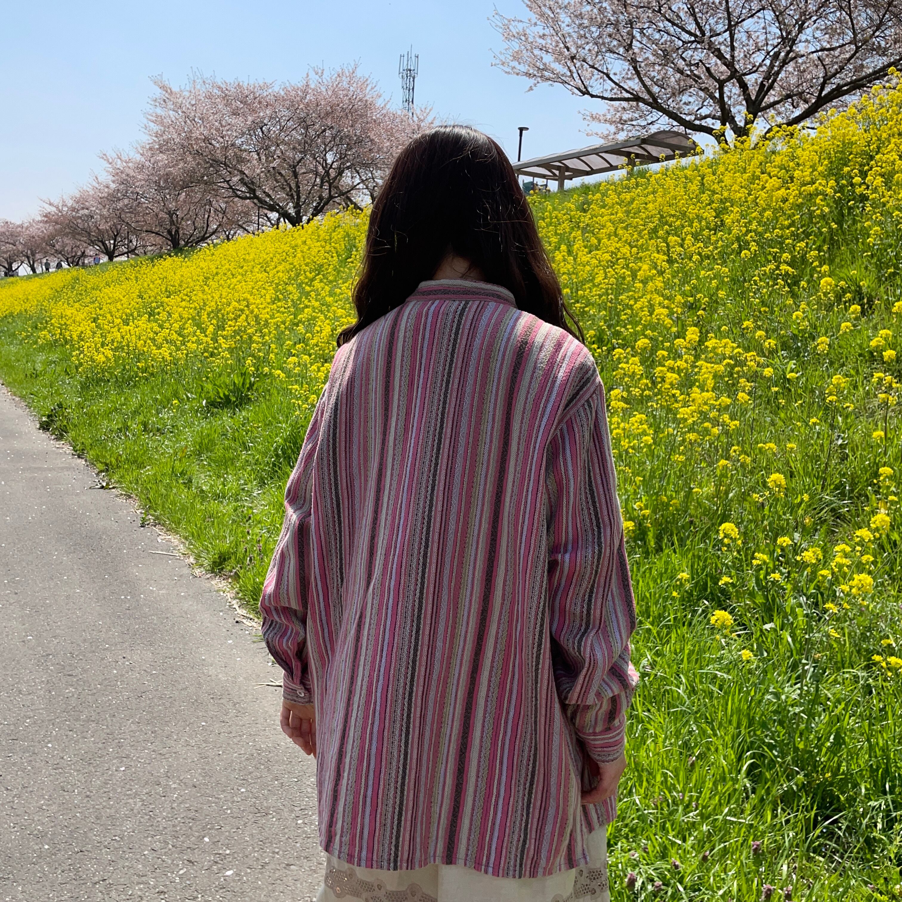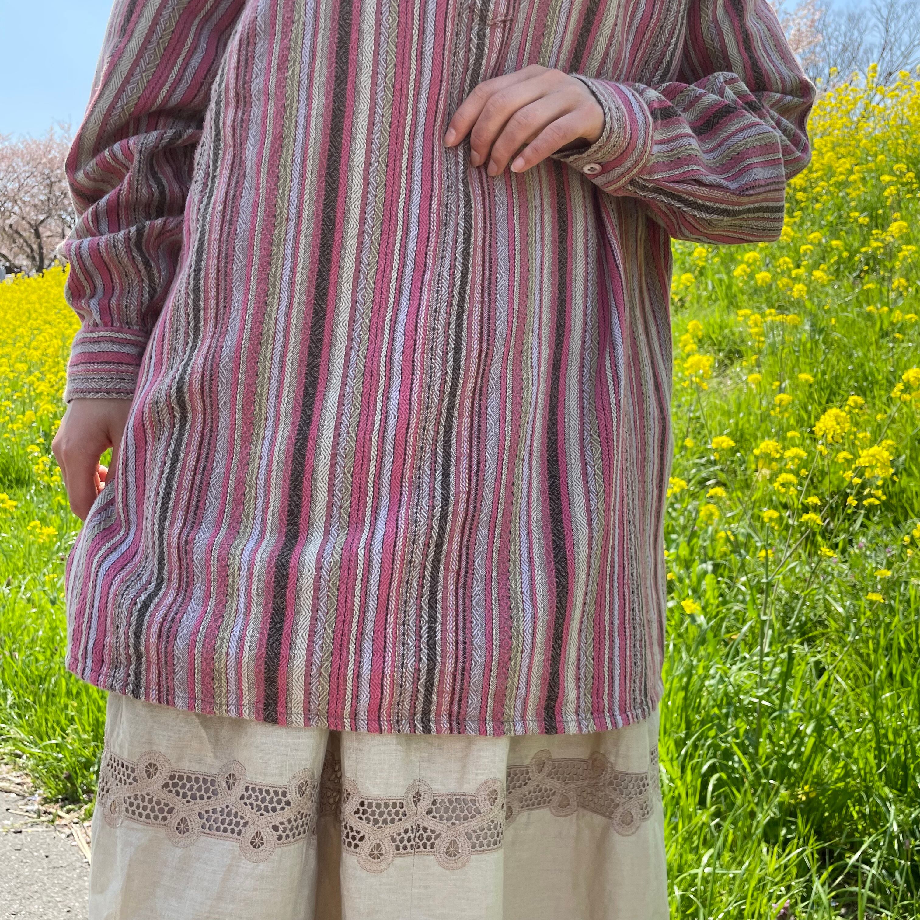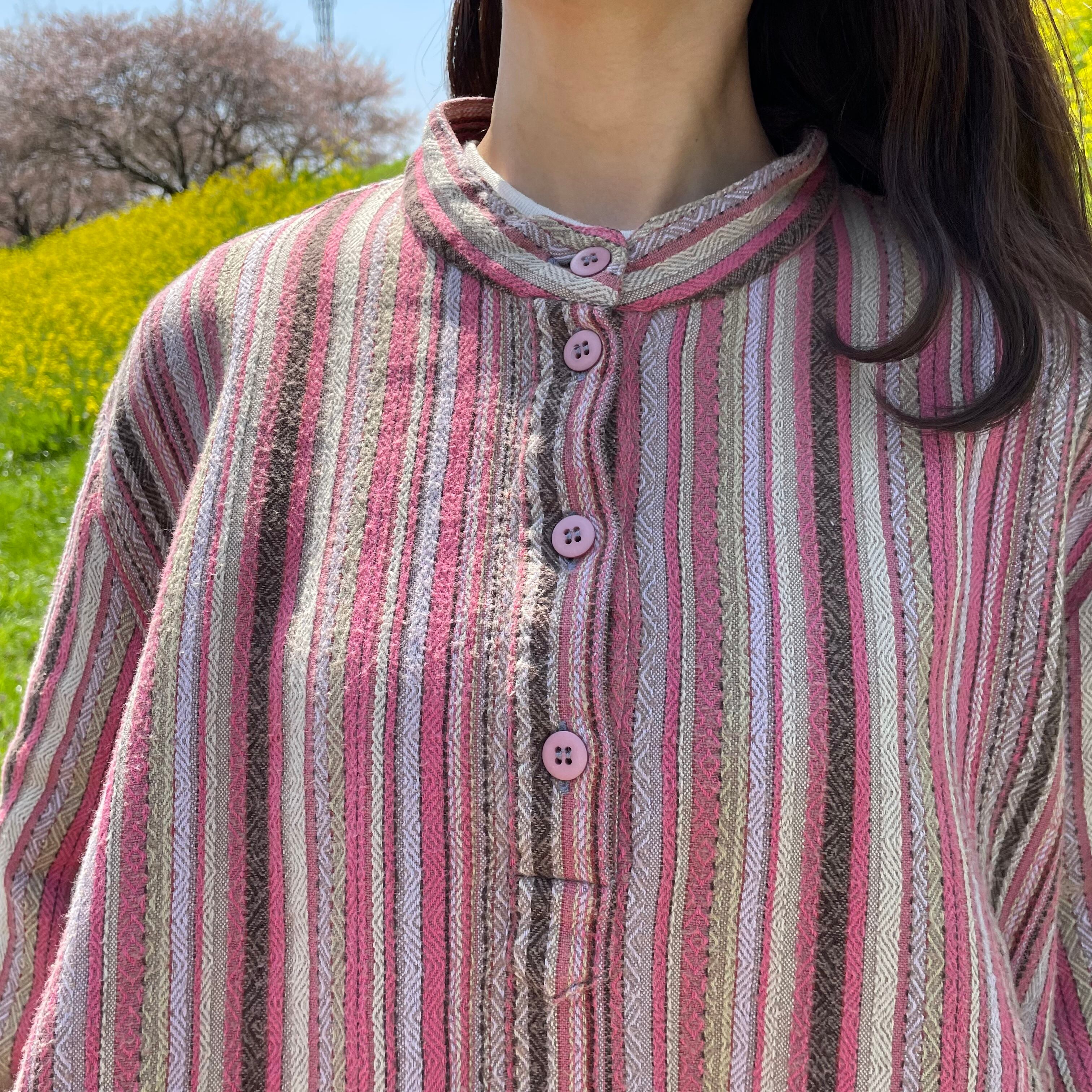 クルタシャツ 古着 USED プルオーバー グランパシャツ エスニック ストライプ KP67