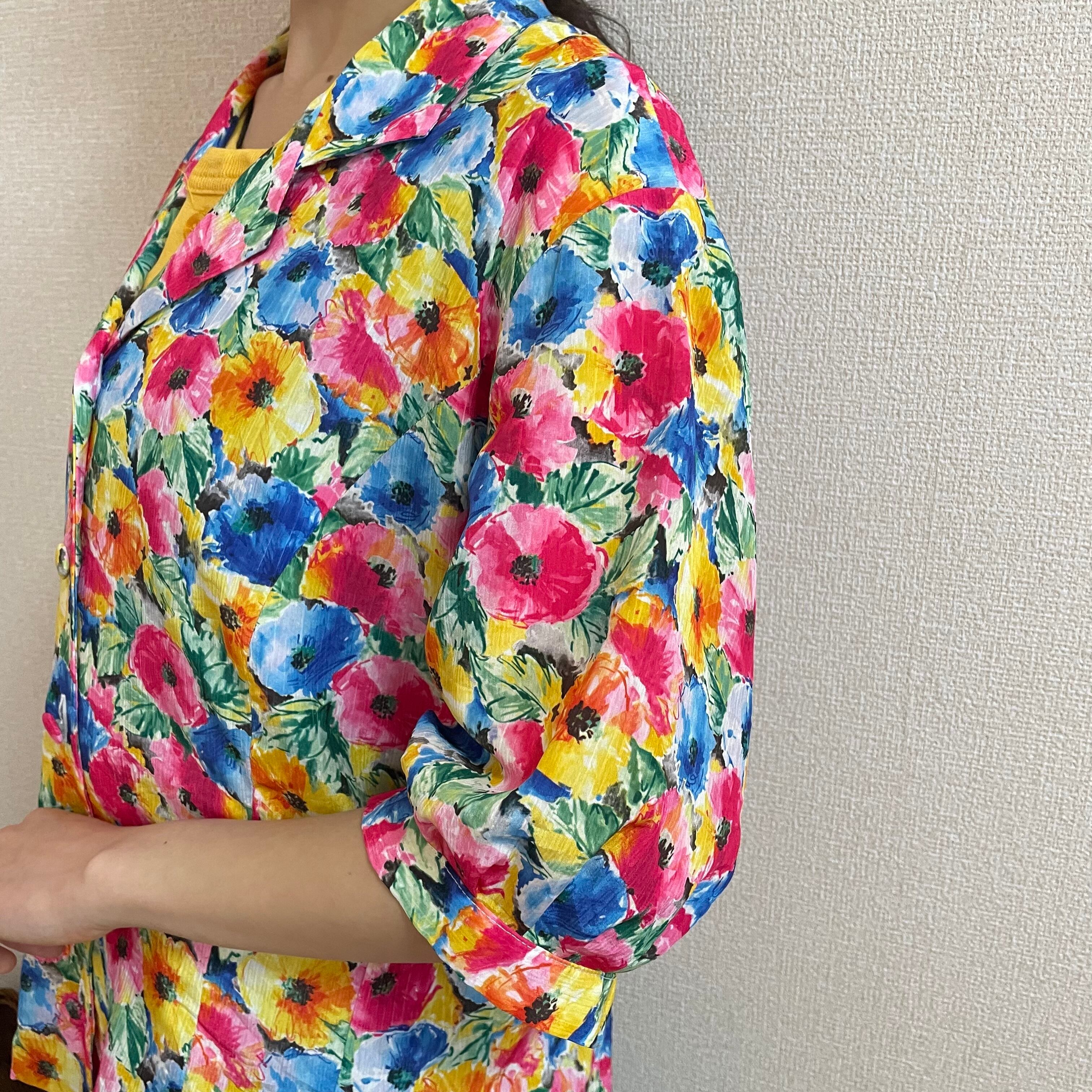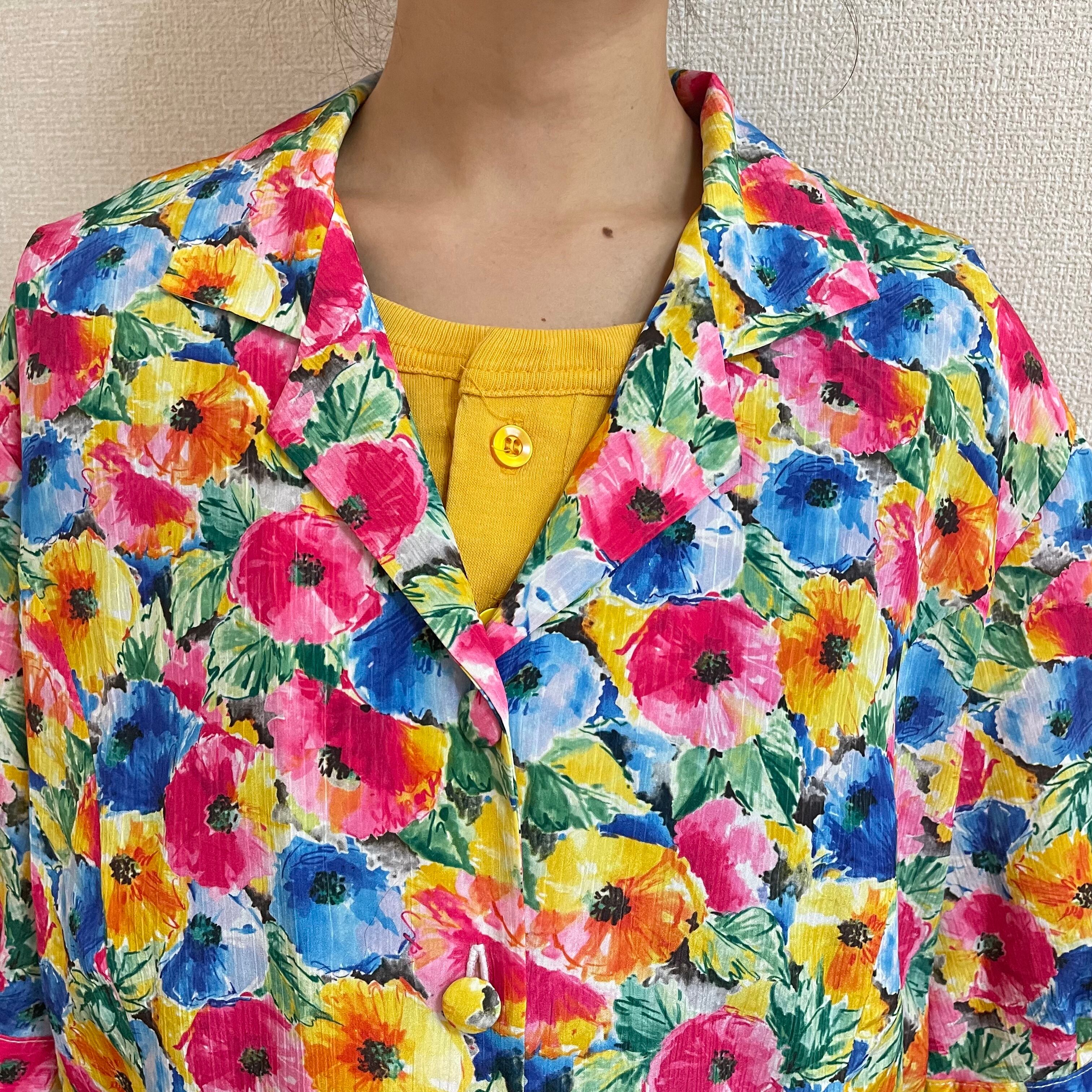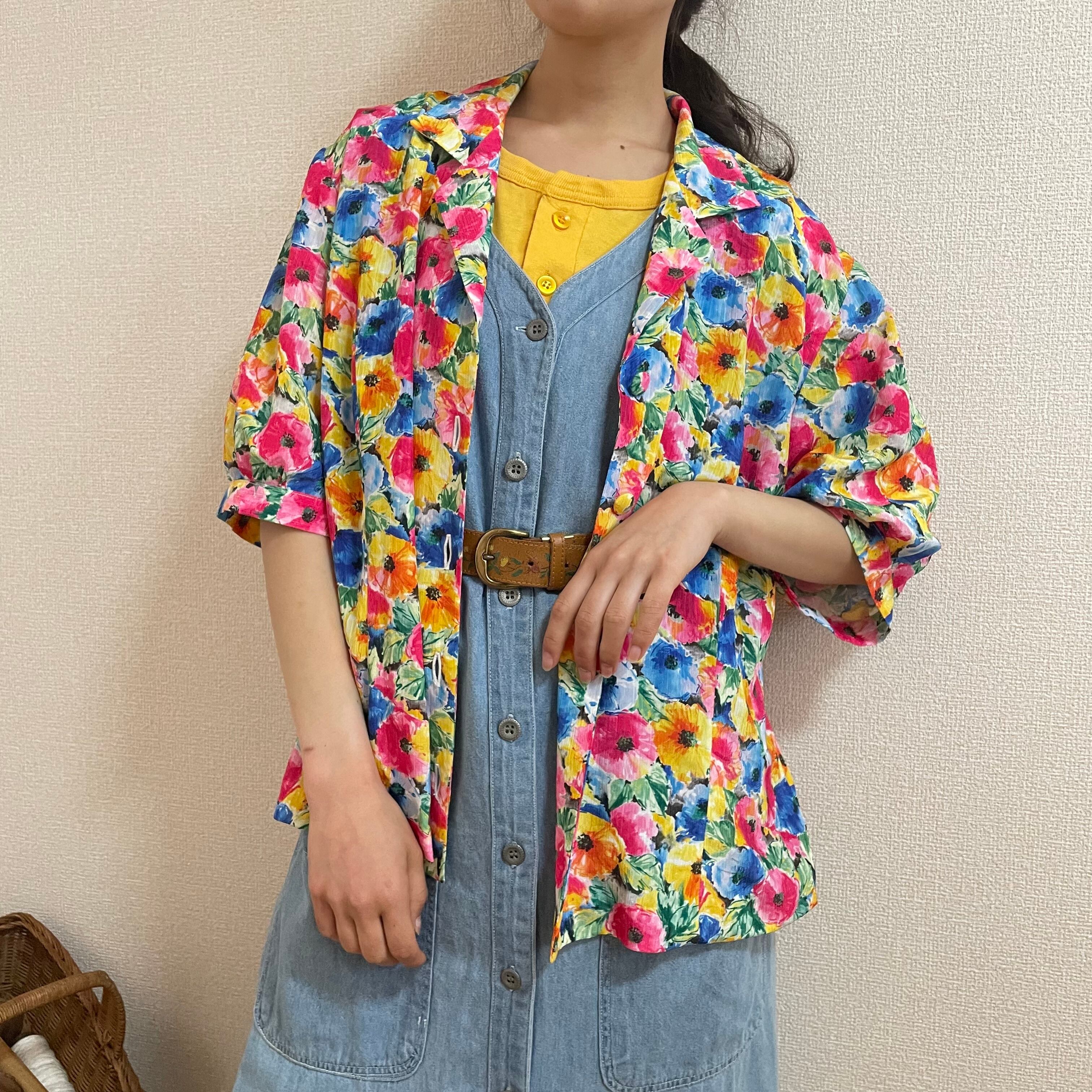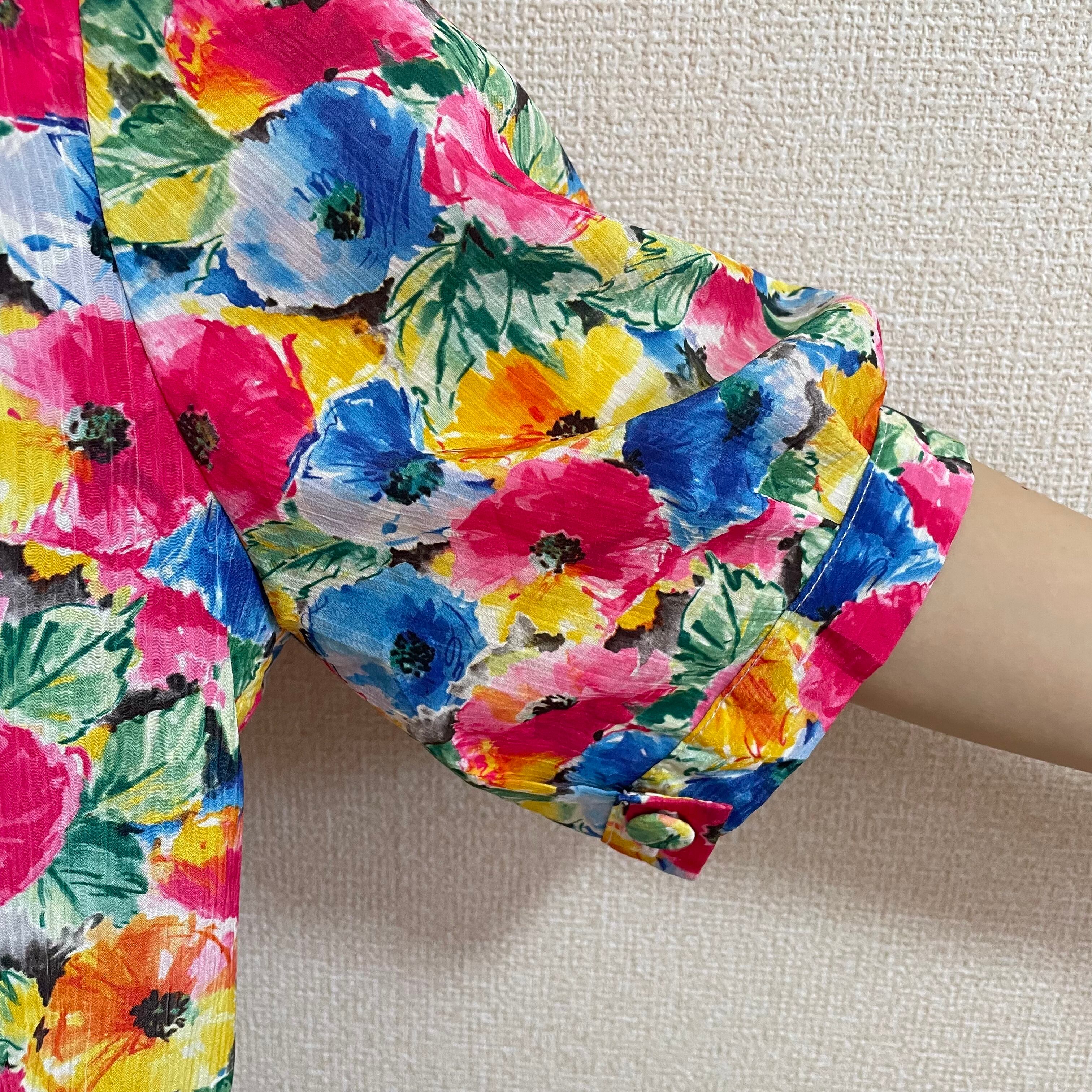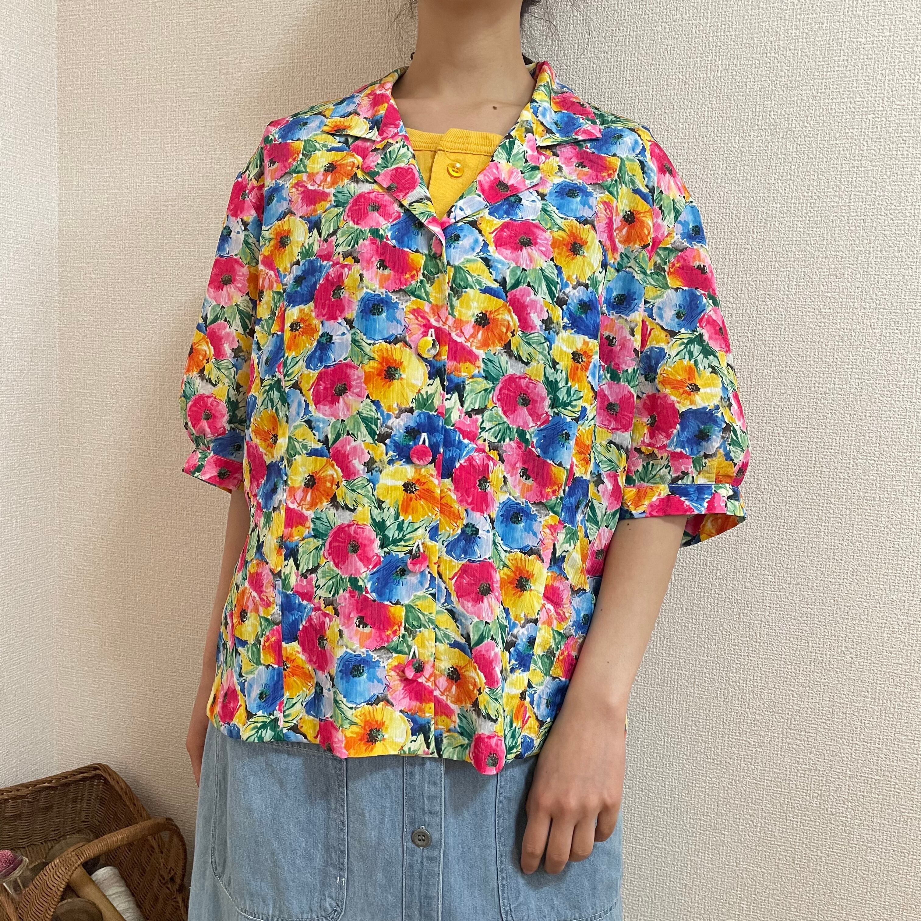 ブラウス 古着 レトロ シャツ 花柄 カラフル KP102
