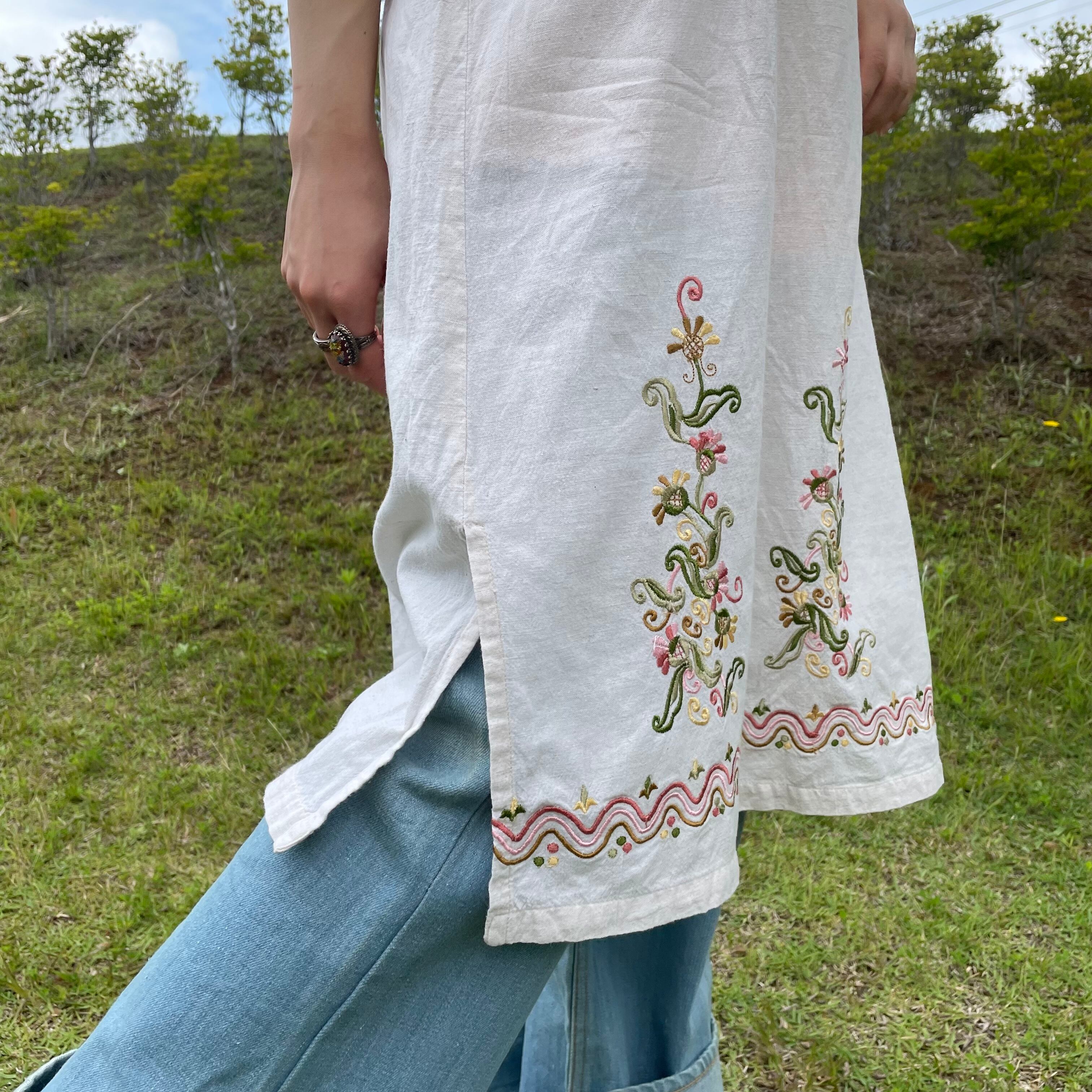 embroidery tunic dress チュニック ワンピース 古着 レトロ ヴィンテージ インド製 コットン 刺繍 KP109