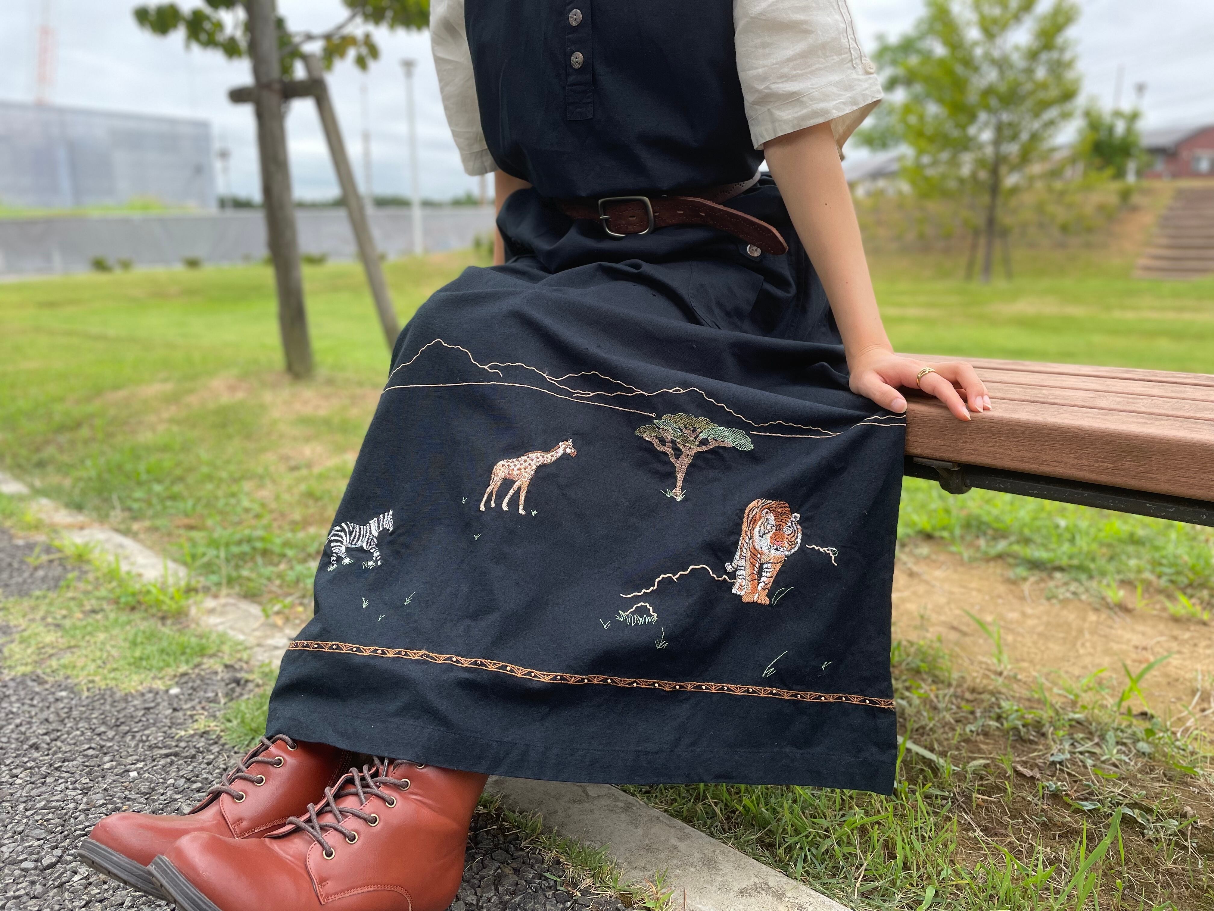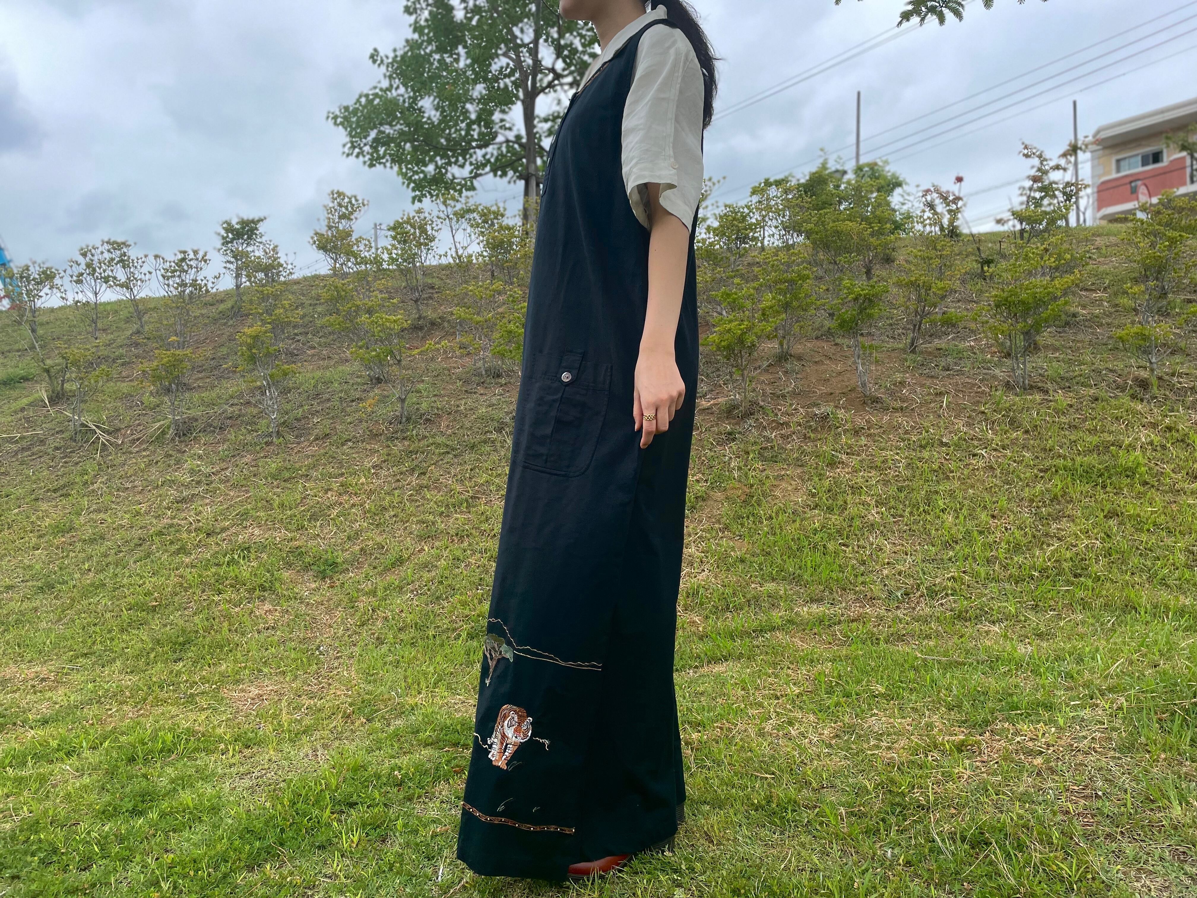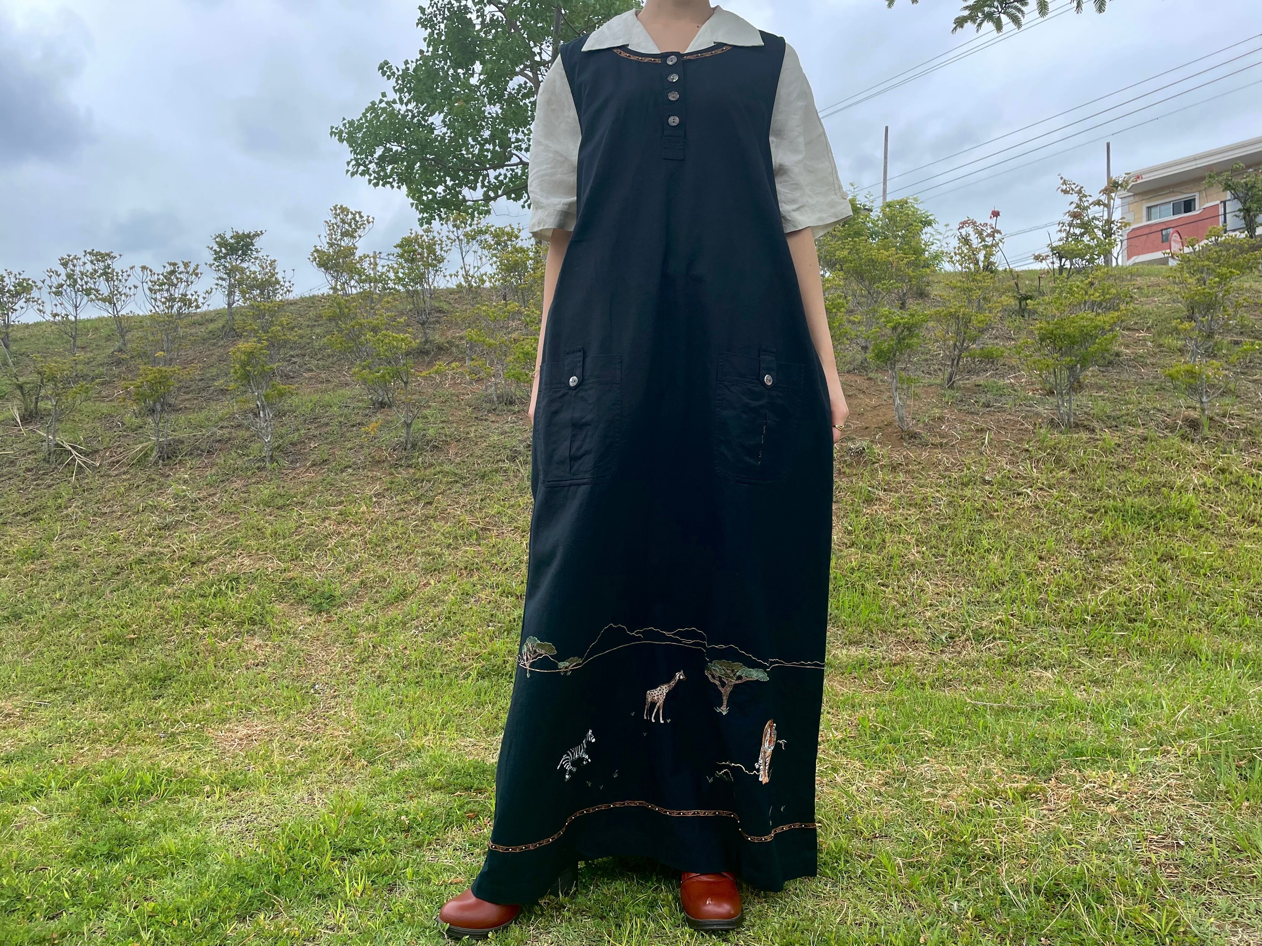 animal stitched sleeveless dress ワンピース 古着 ヴィンテージ アニマル柄 ブラック KP150