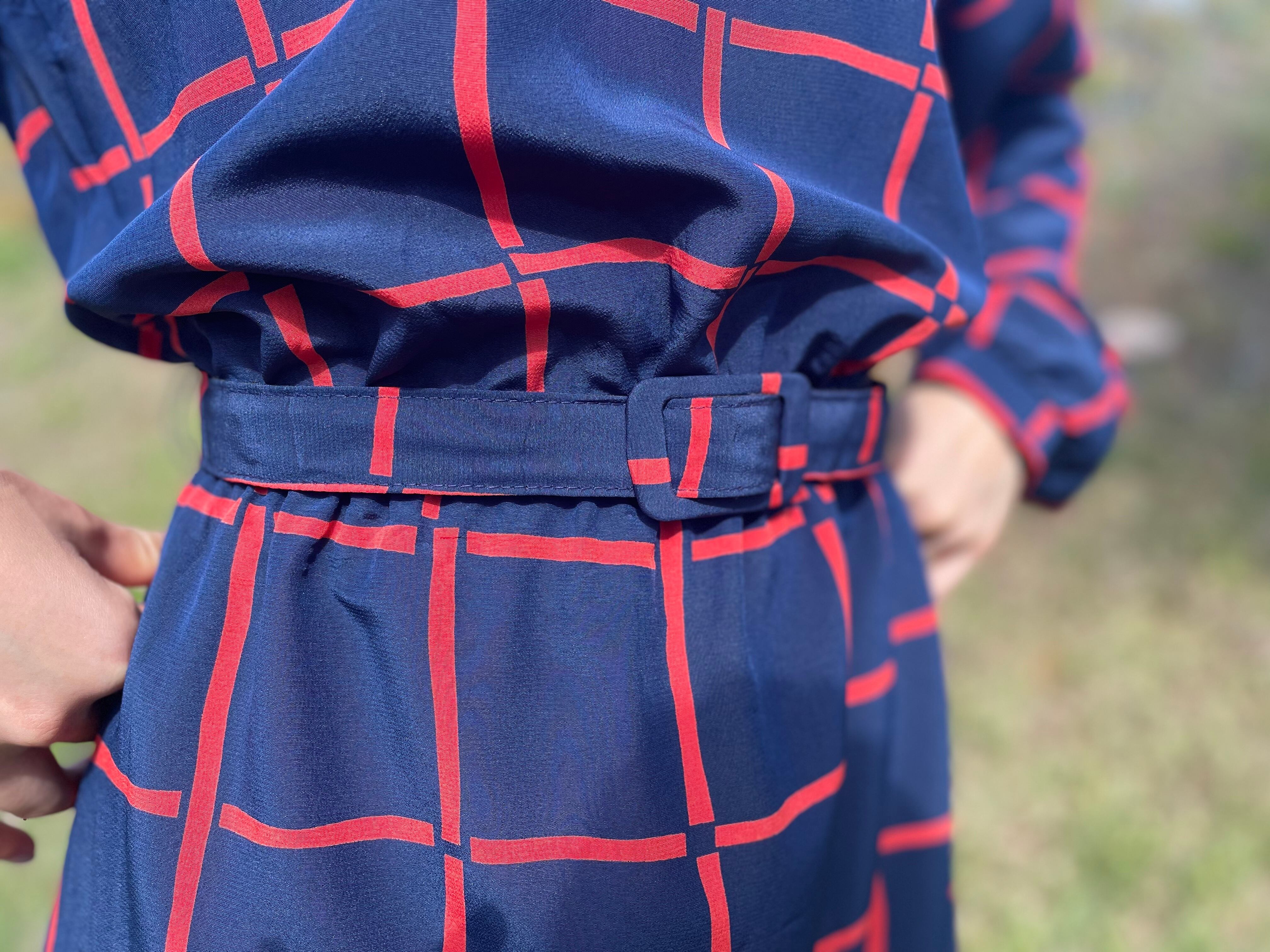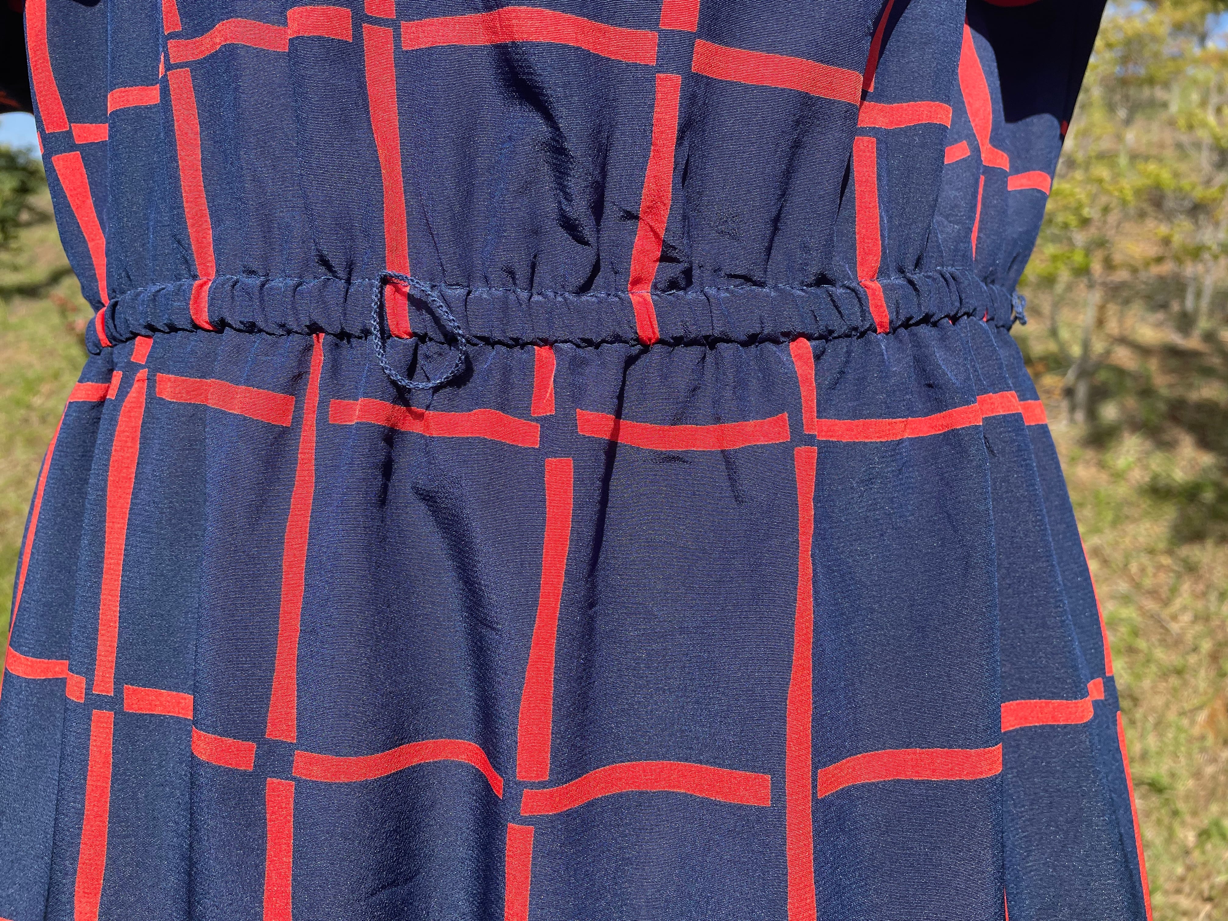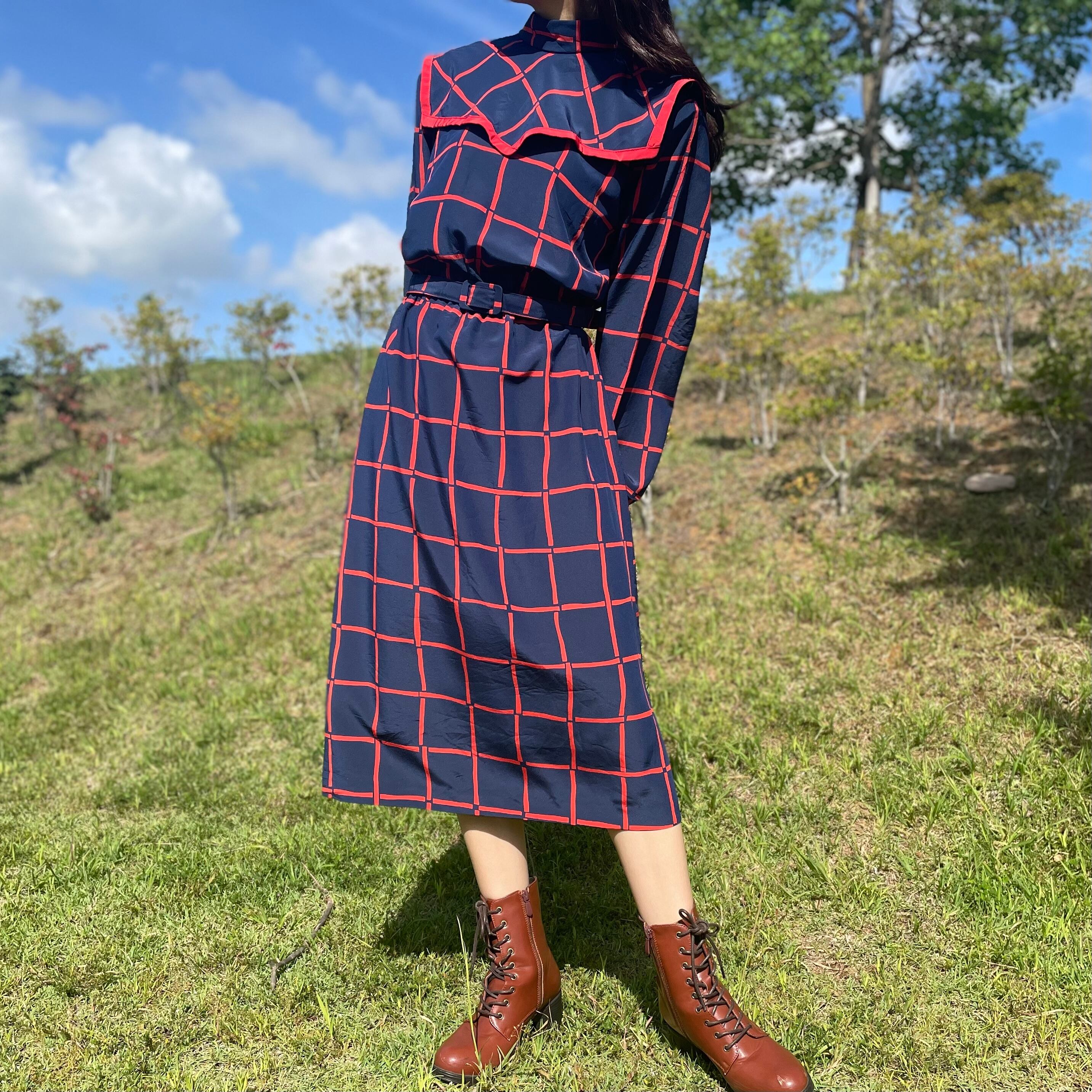 box collar designed dress ワンピース 古着 レトロ ヴィンテージ チェック ネイビー KP171