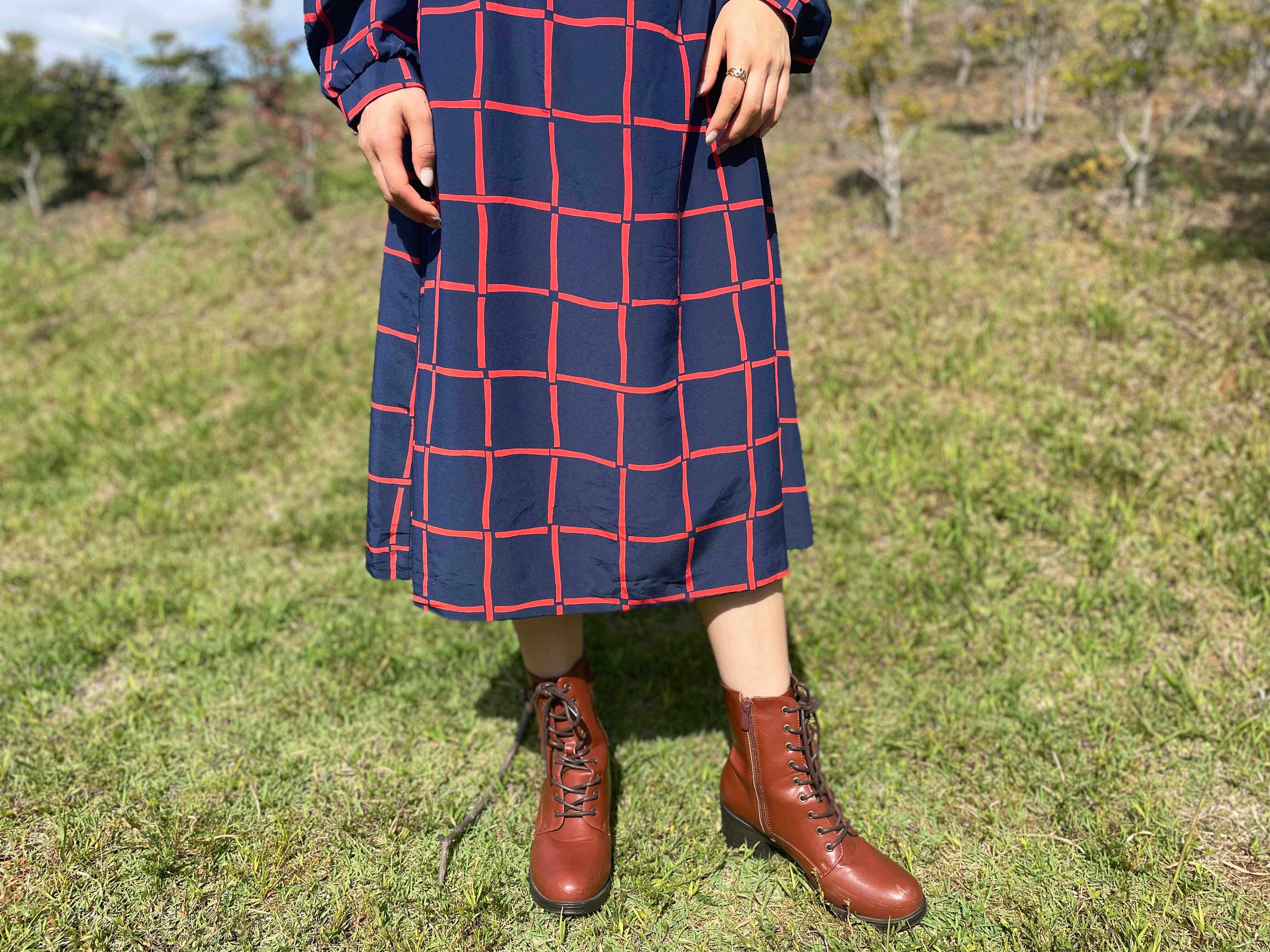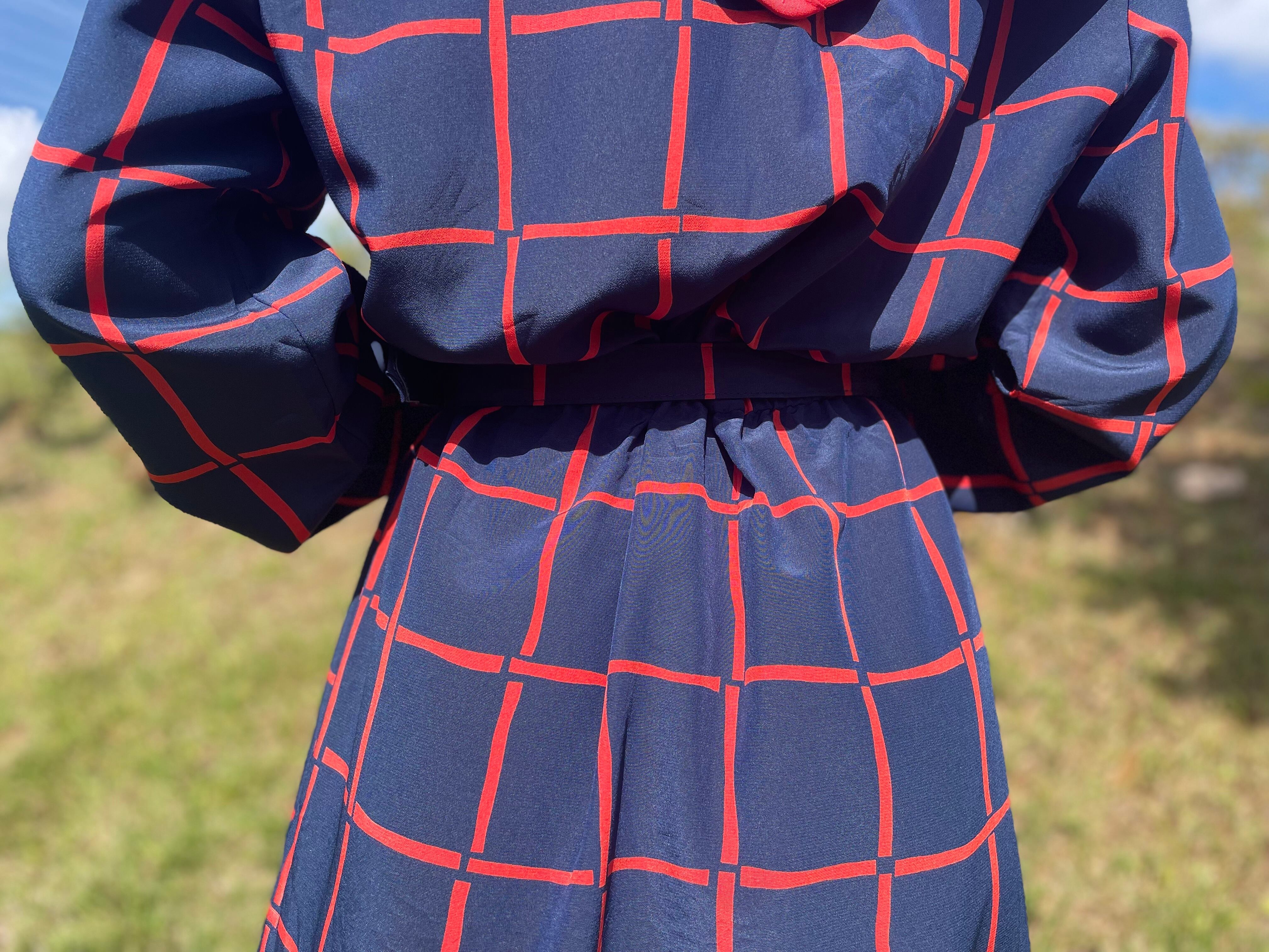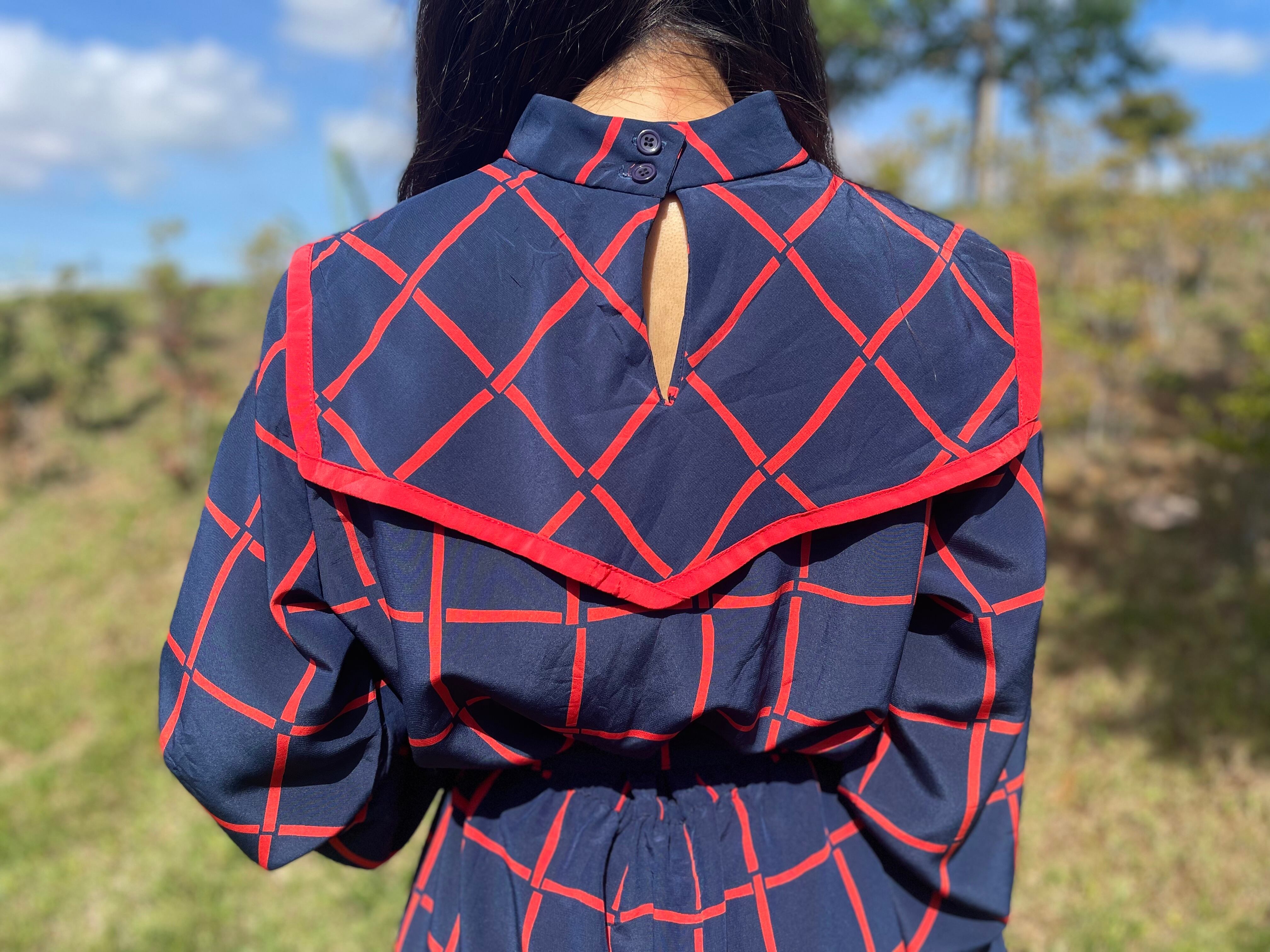 box collar designed dress ワンピース 古着 レトロ ヴィンテージ チェック ネイビー KP171