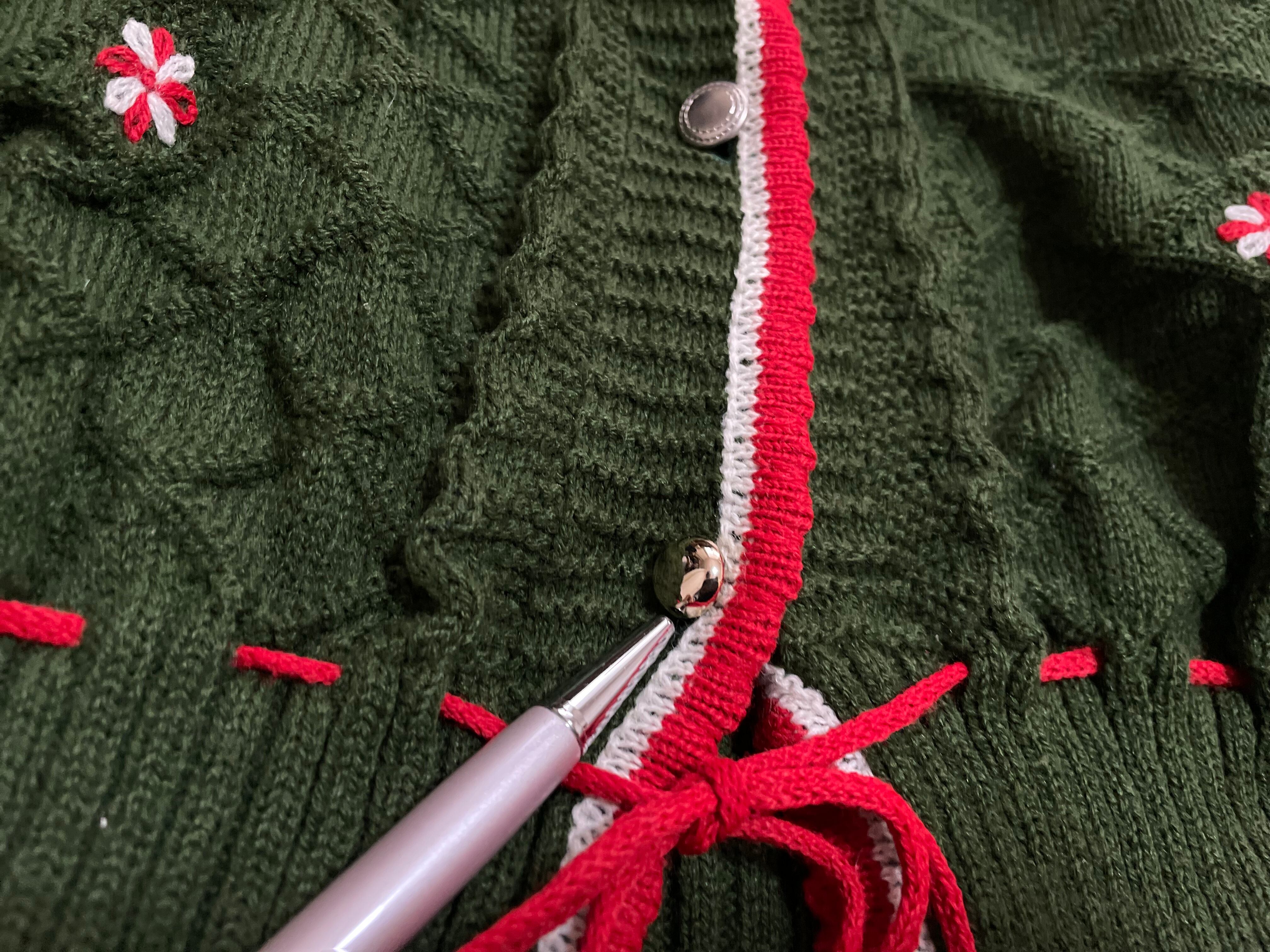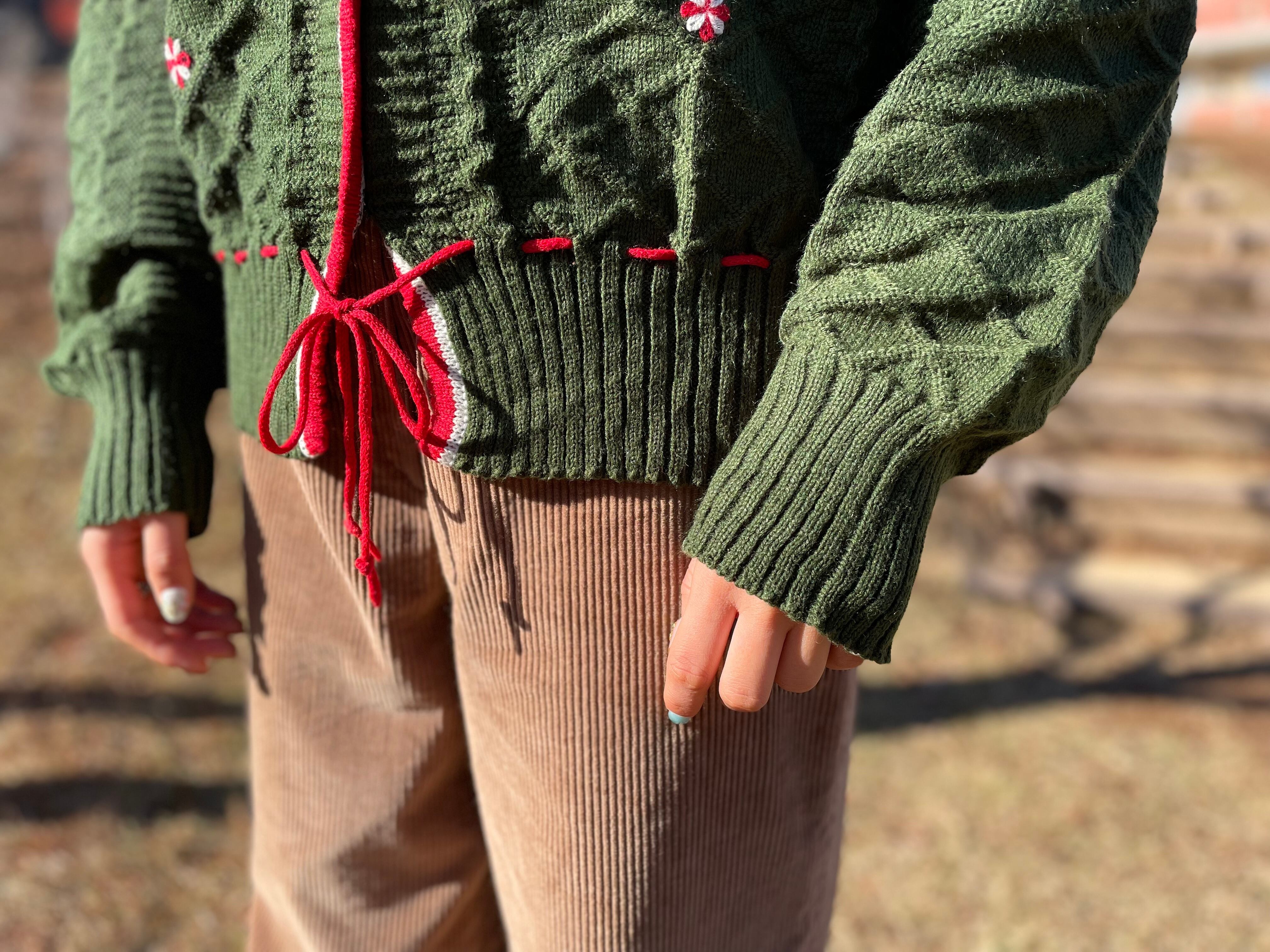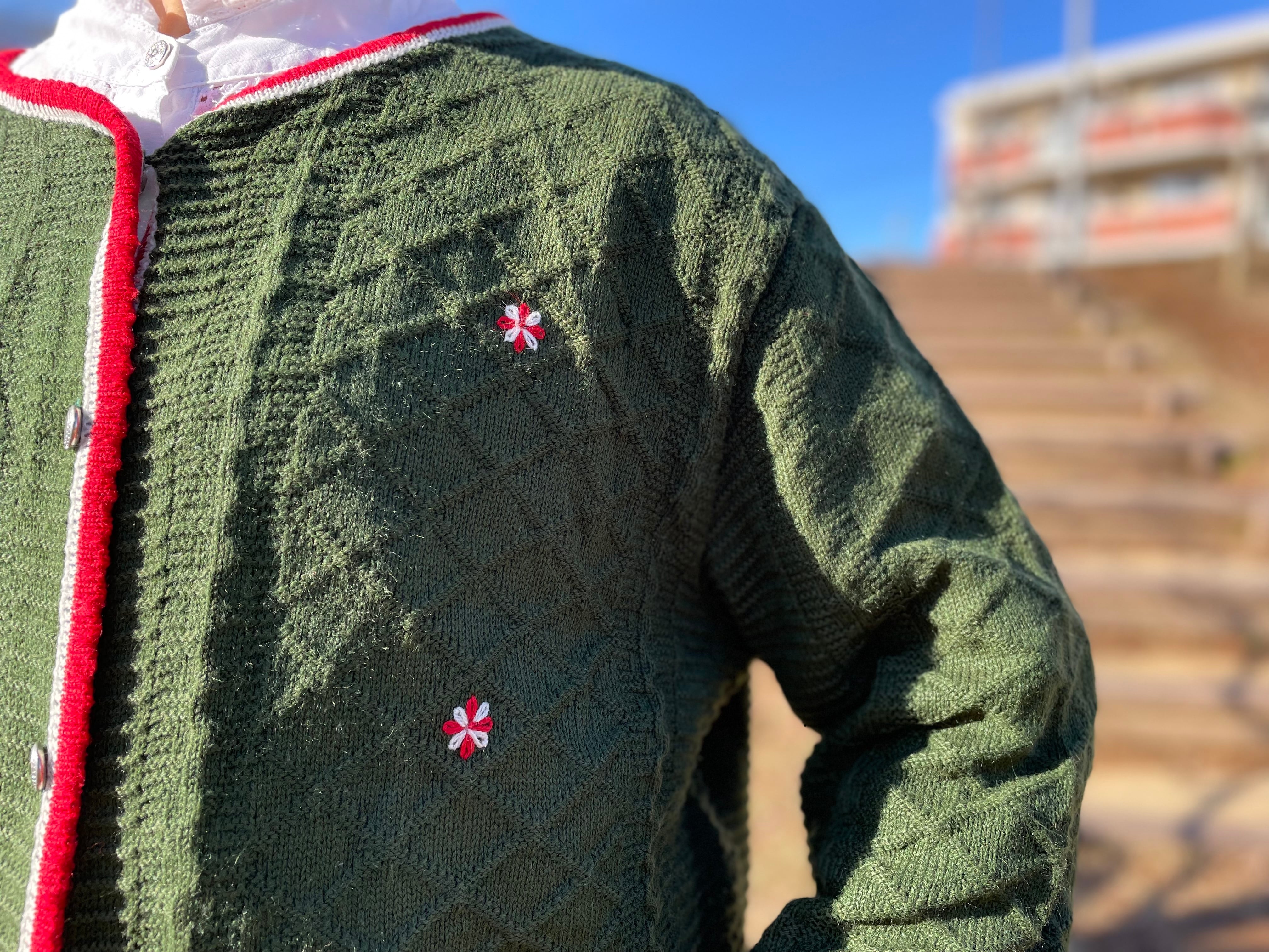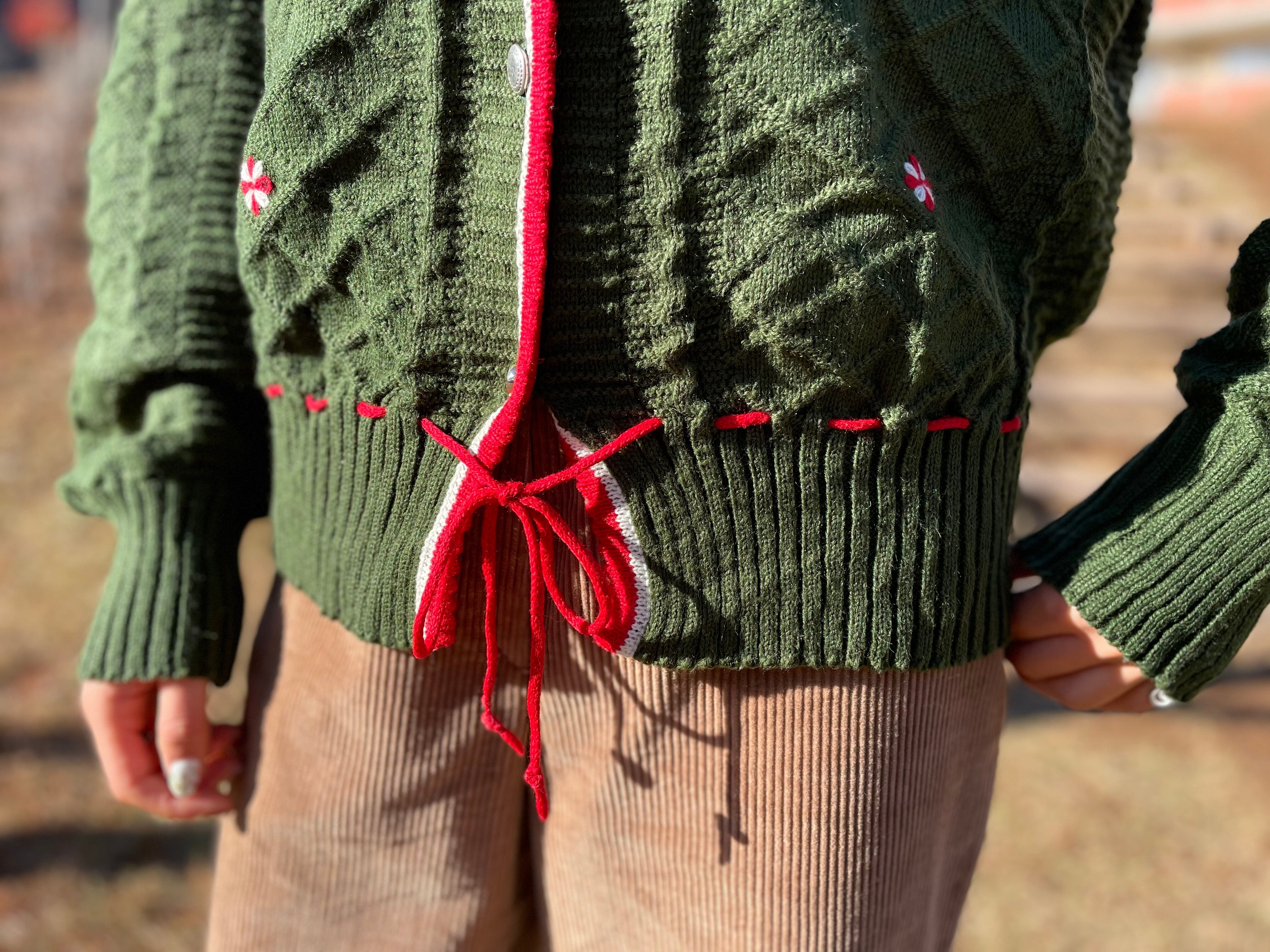 深めなグリーンで大人っぽいチロリアンニットカーディガン
