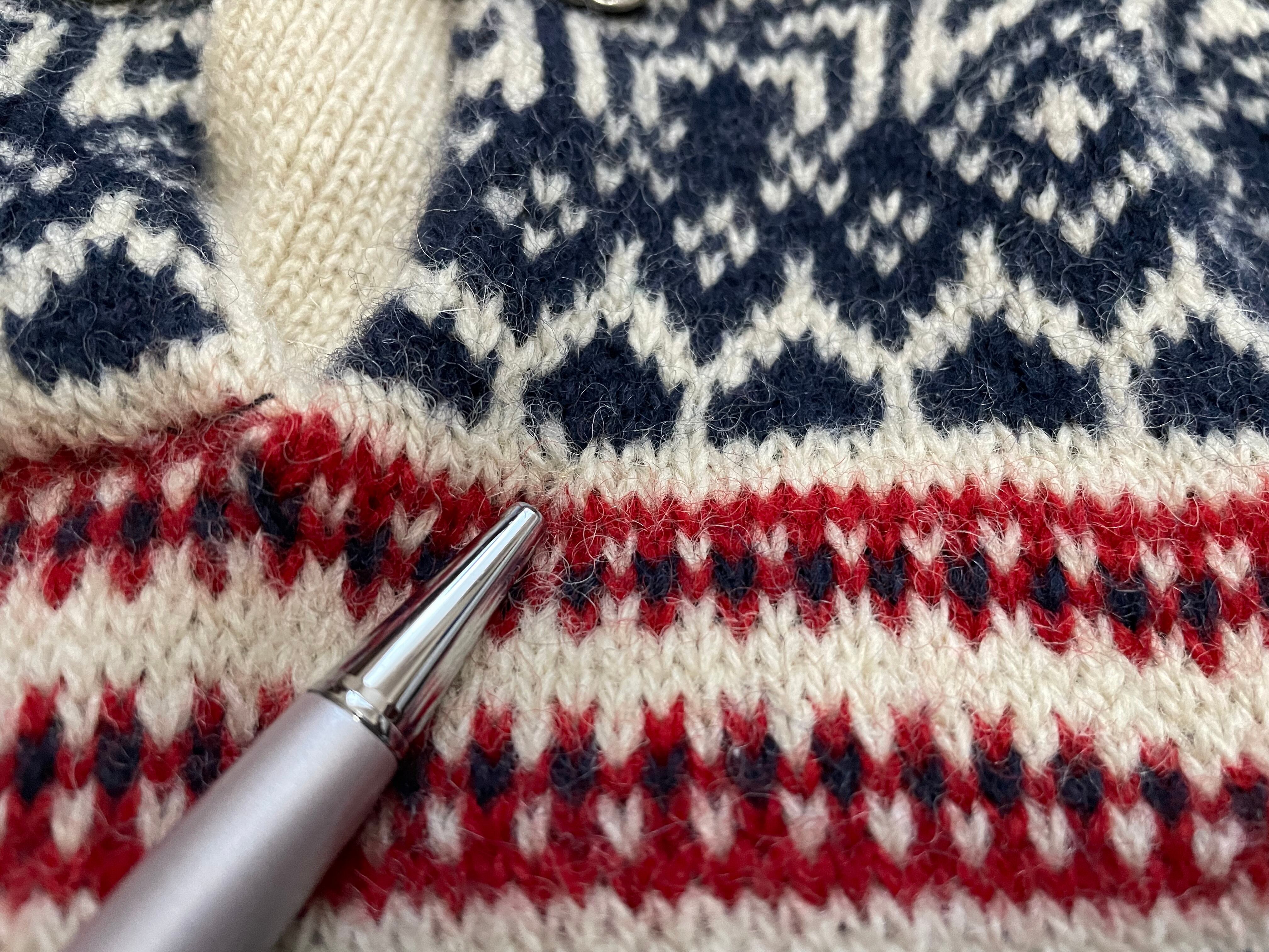 ・胸元、ウエスト付近の毛糸がつまんであり、おそらくリメイクされたものだと思われます