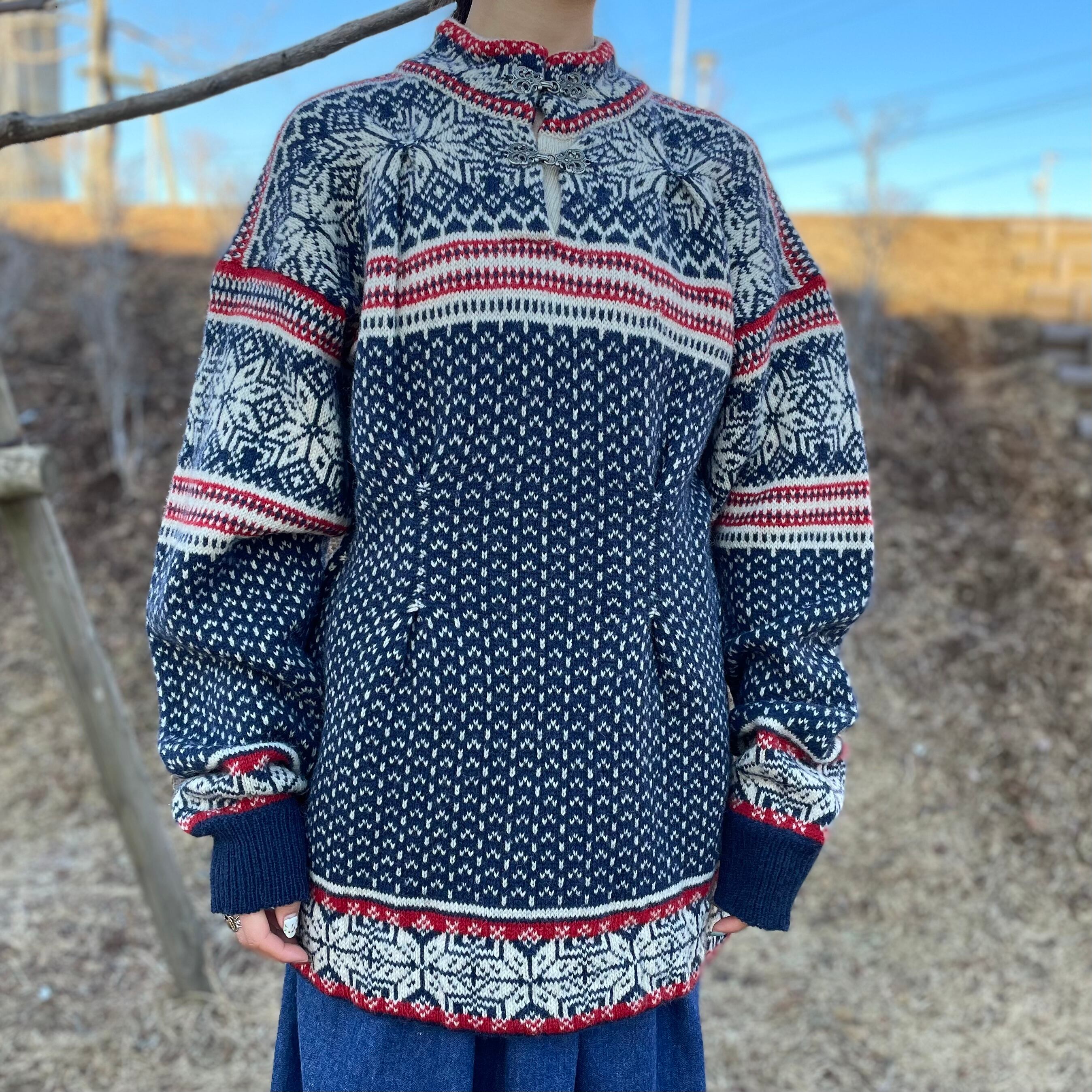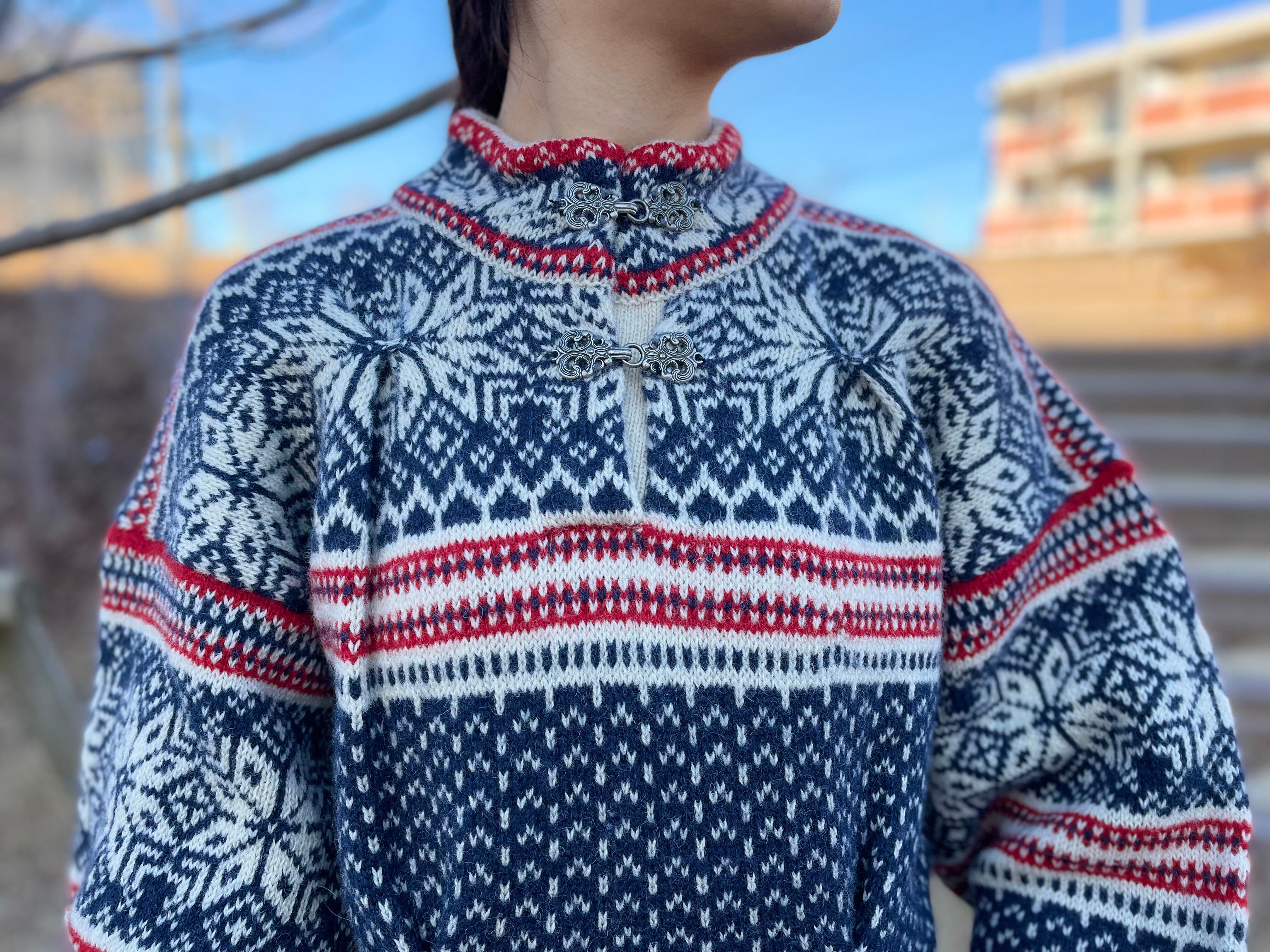 Nordic patterned knit sweater ニットセーター 古着 ノルディック ブルー 346