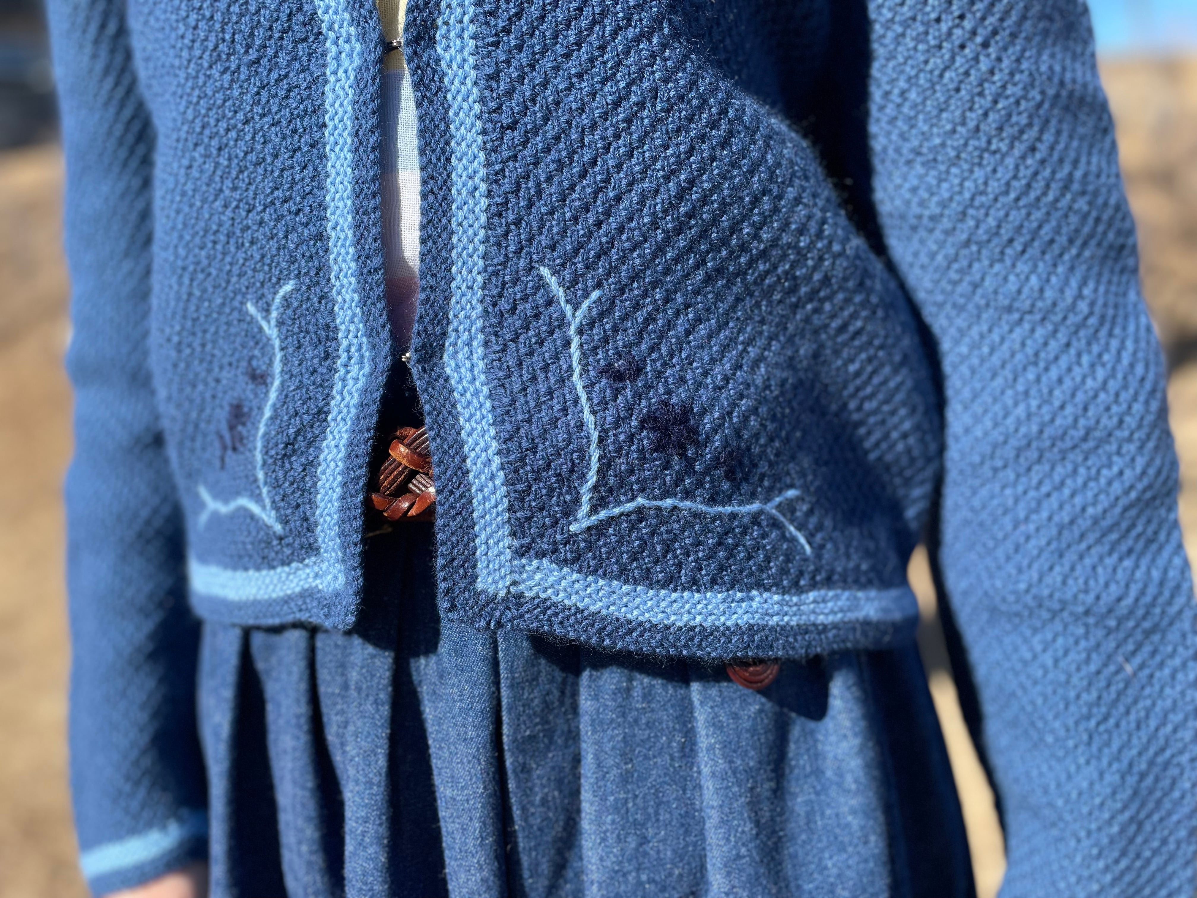 裾の刺繍は、さりげなく上品な印象を醸し出しています。