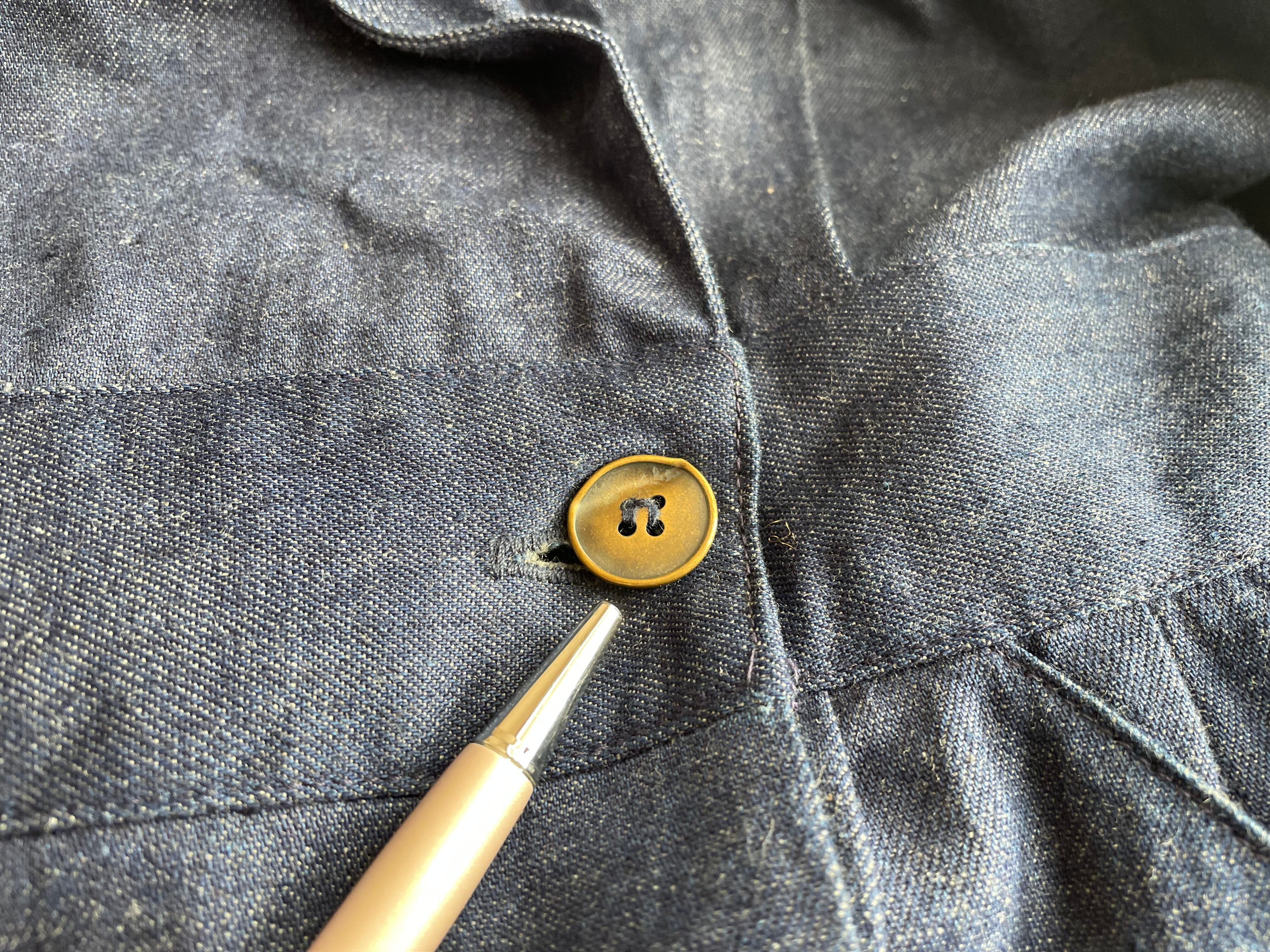 ・ウエストのボタンが曲がっていますが、着用には問題ありません