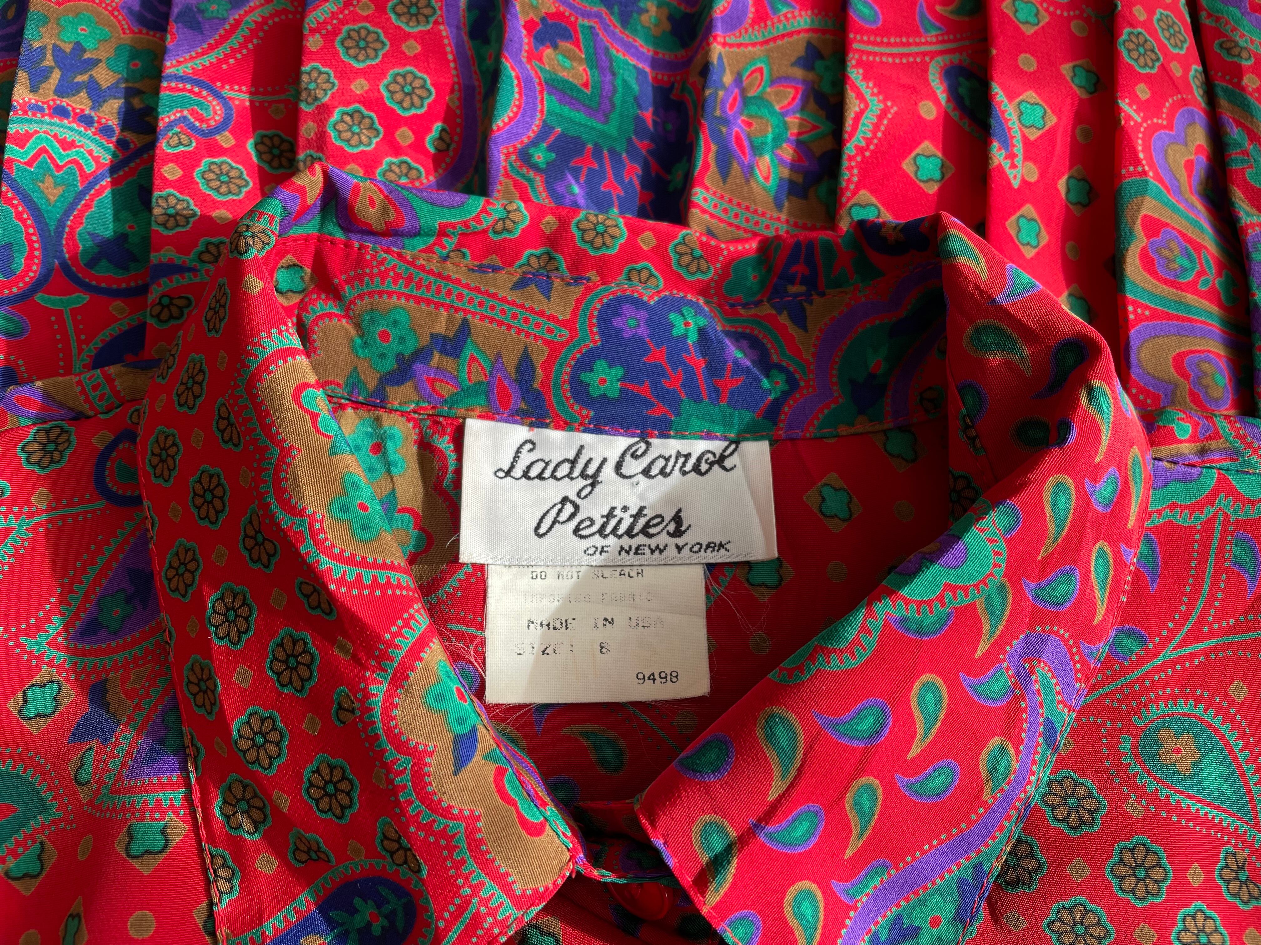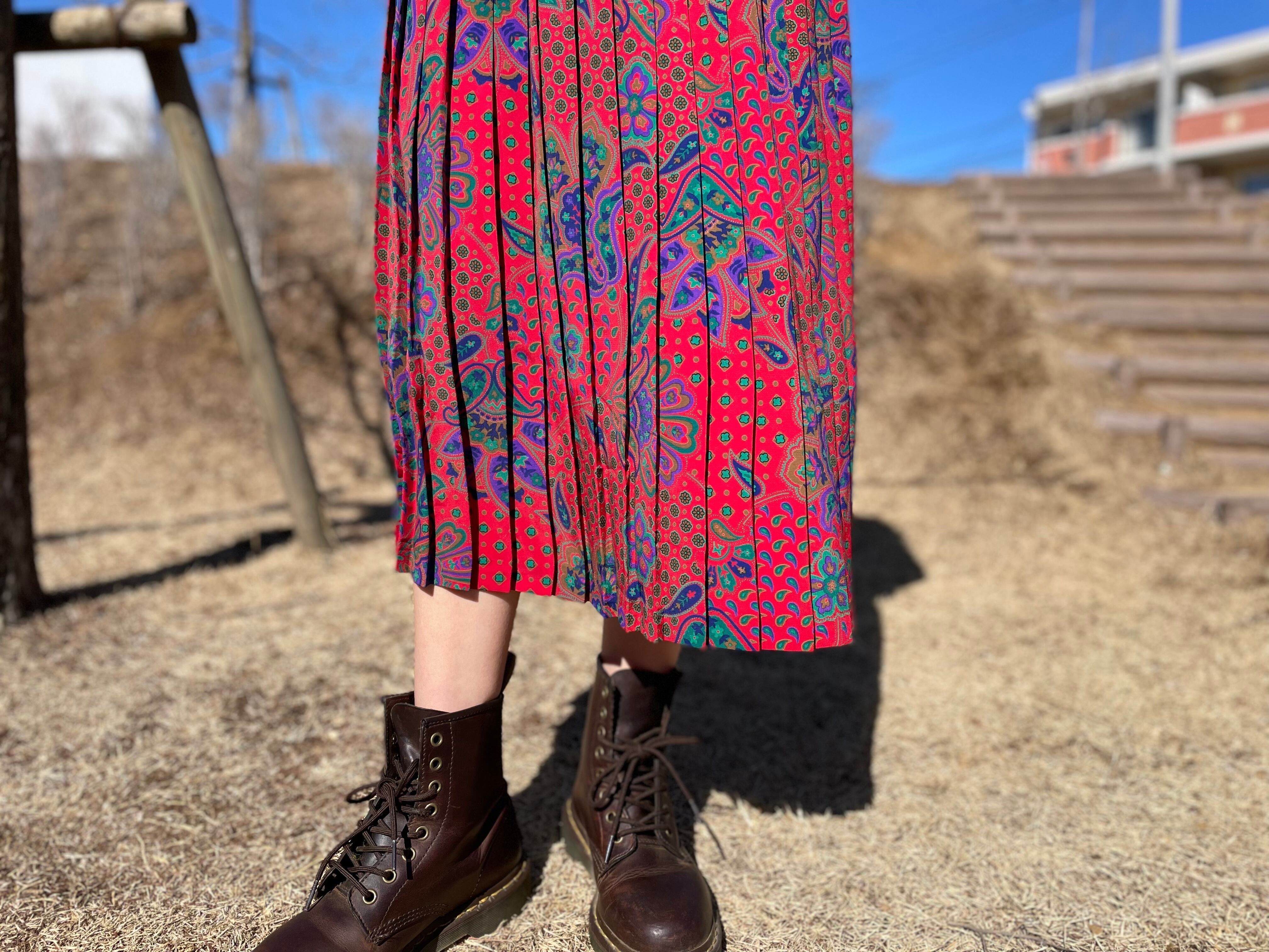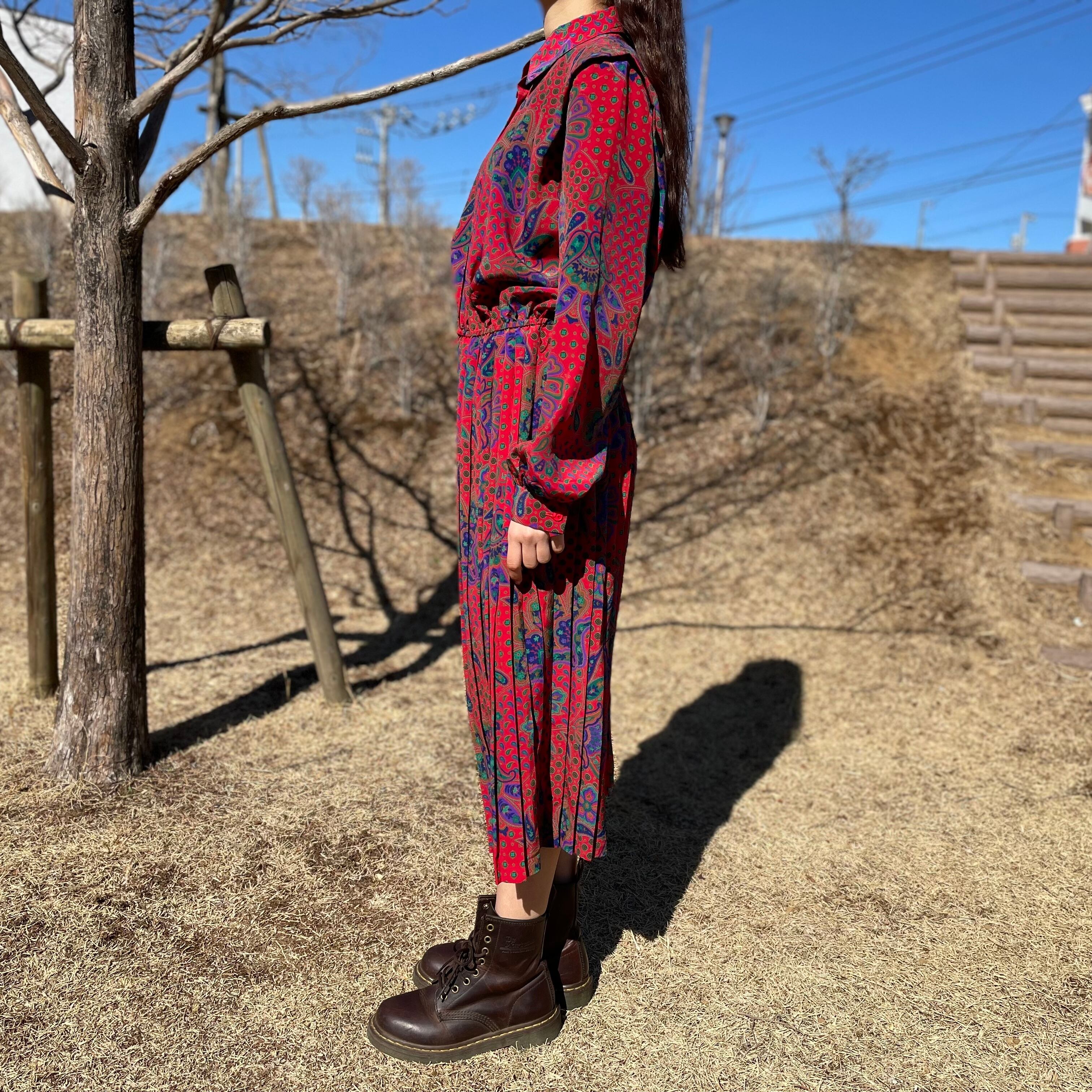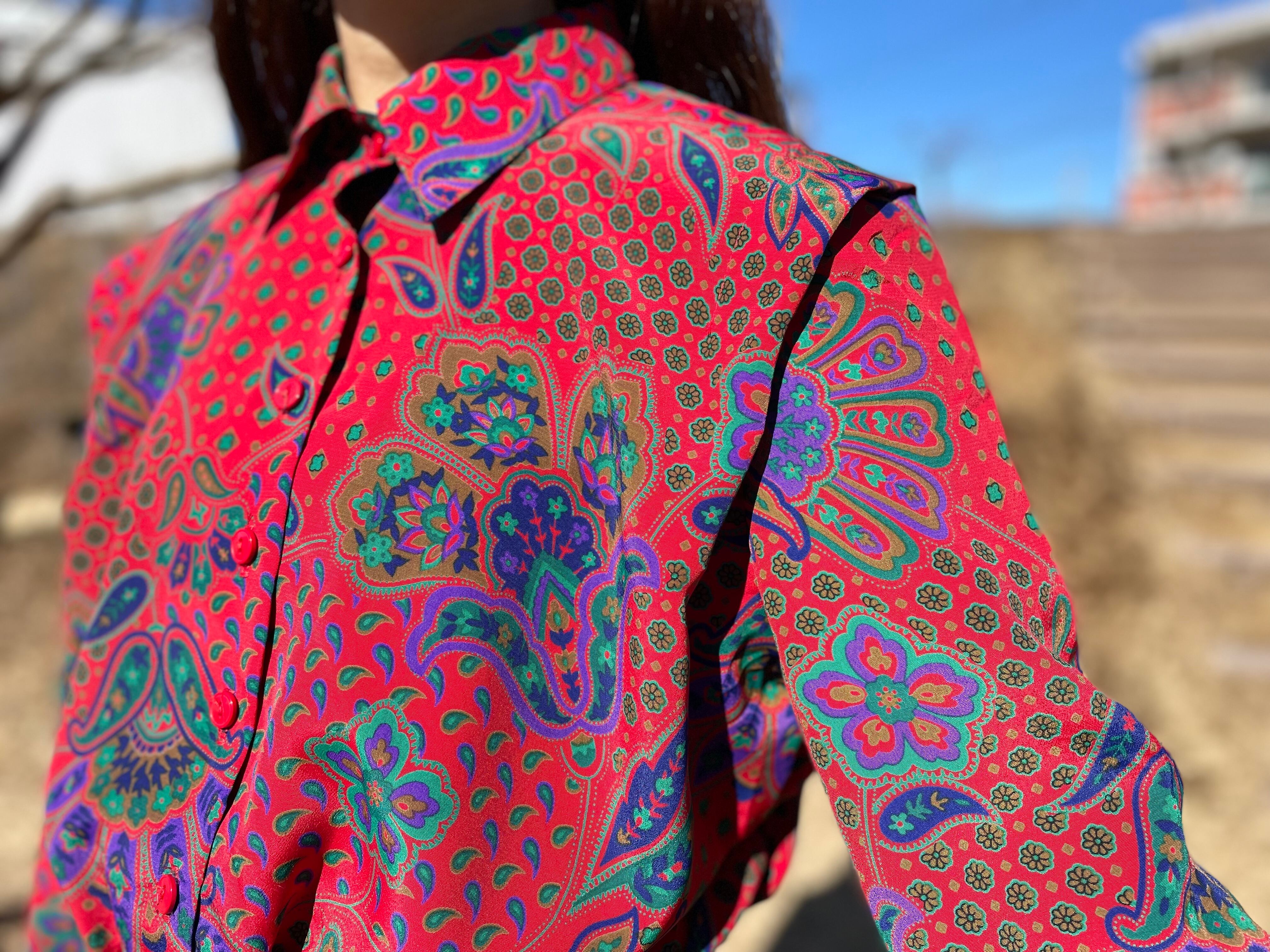 ビビッドなレッドカラーに、レトロなペイズリー柄が目を惹くワンピース