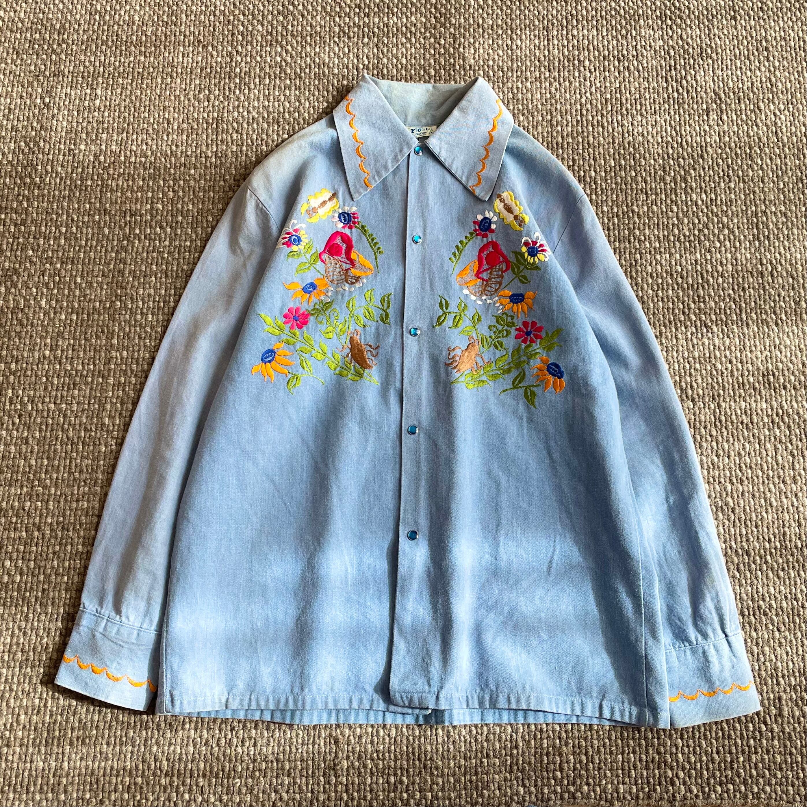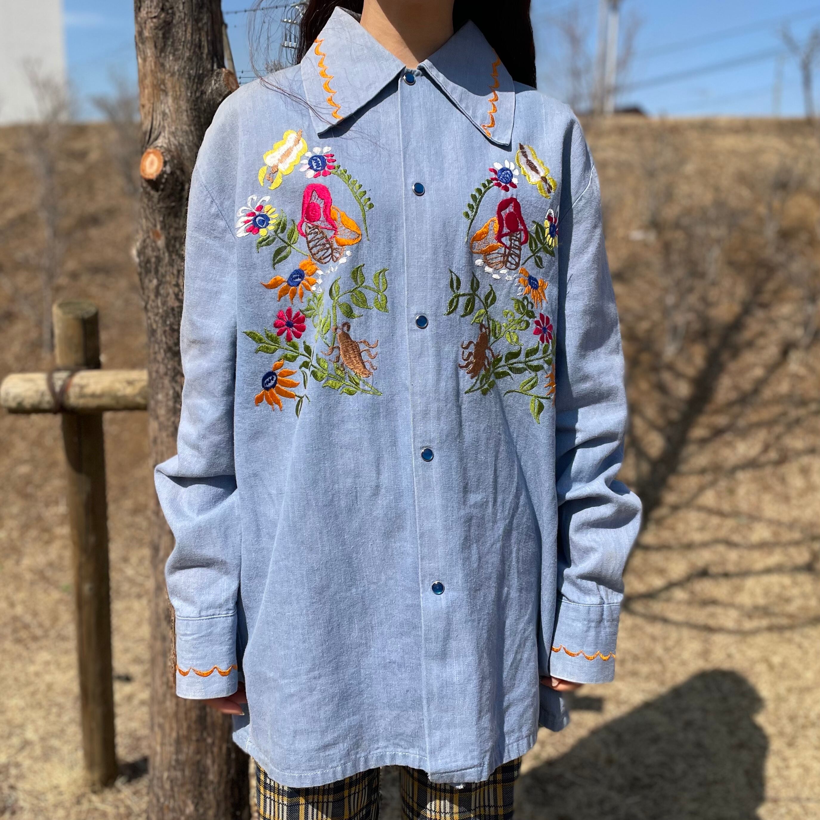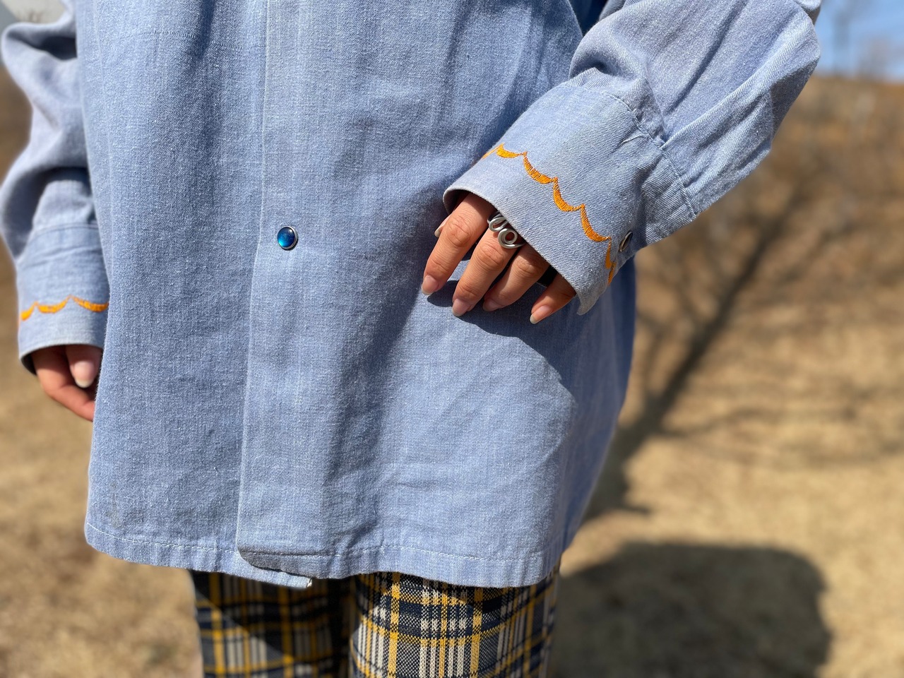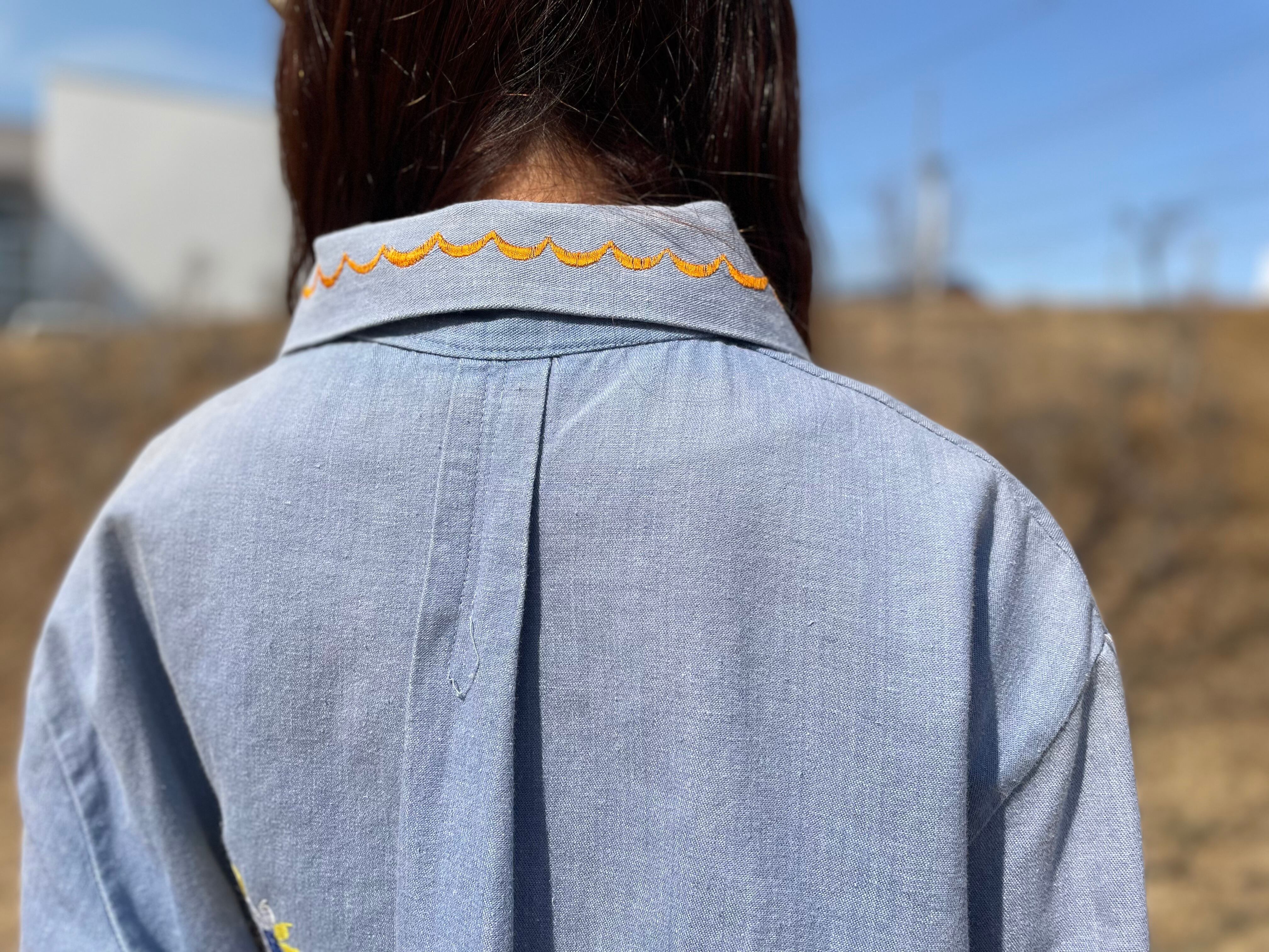 鮮やかな配色のステッチでハッピーな気分になれるデニムシャツ