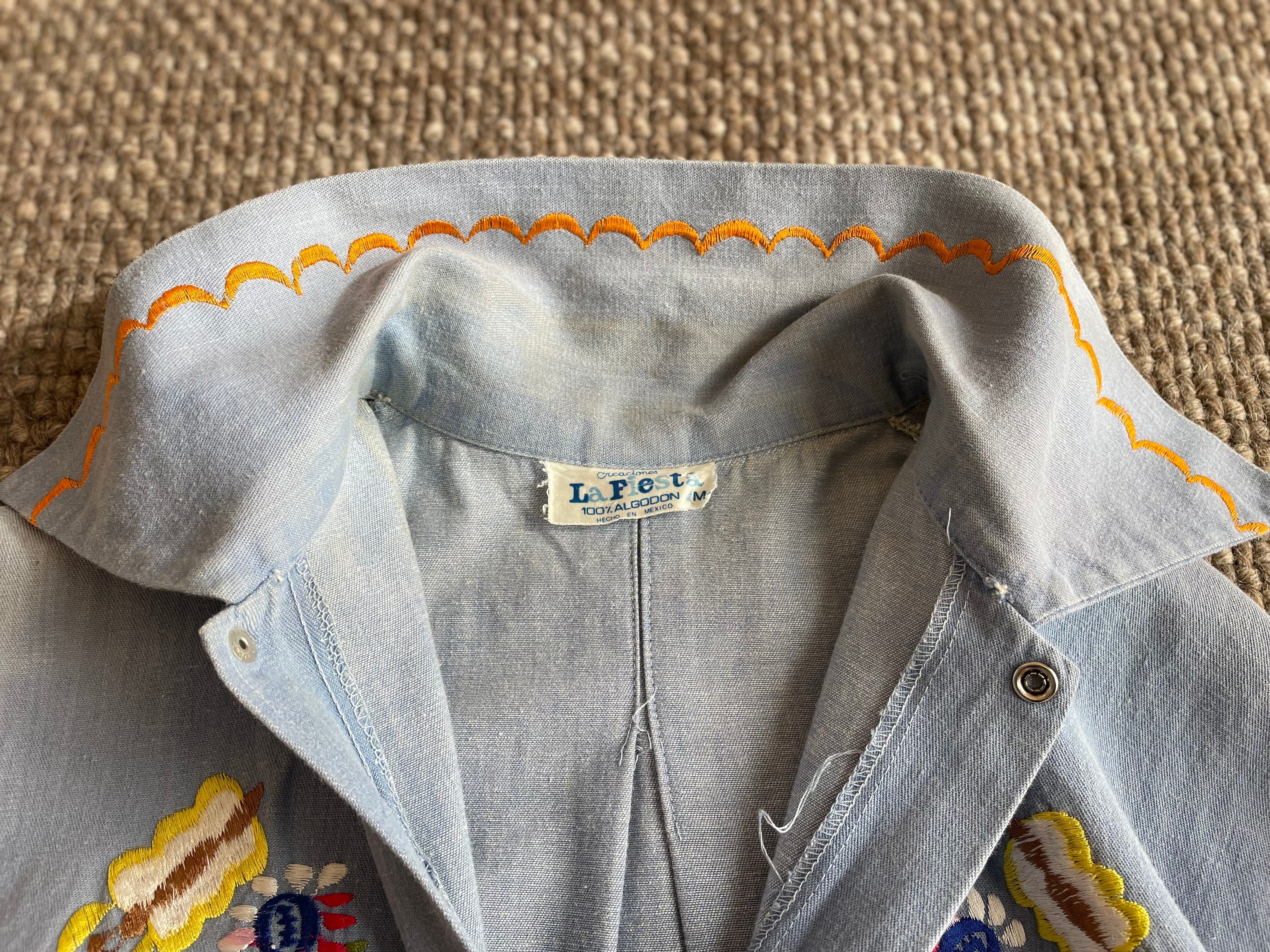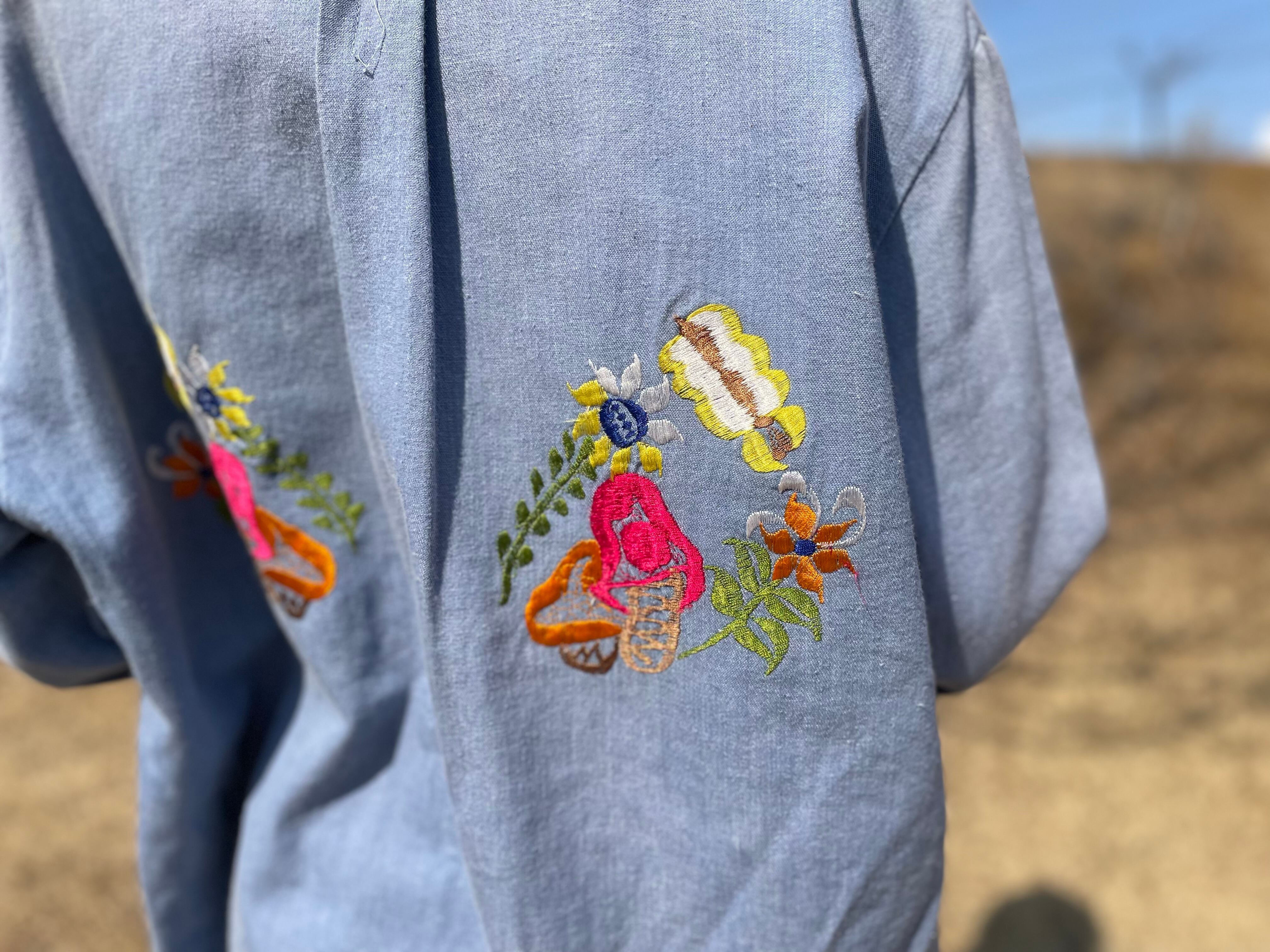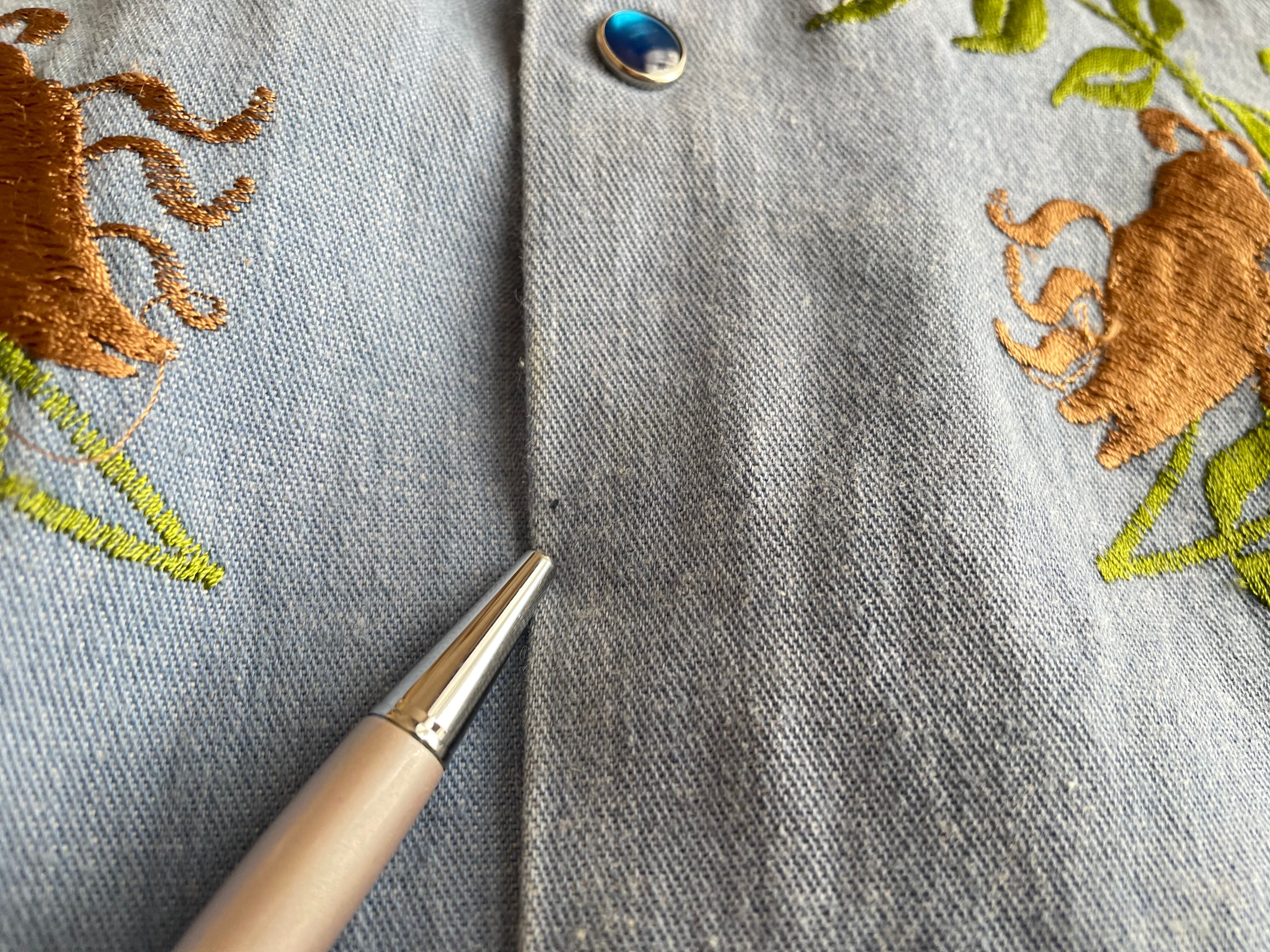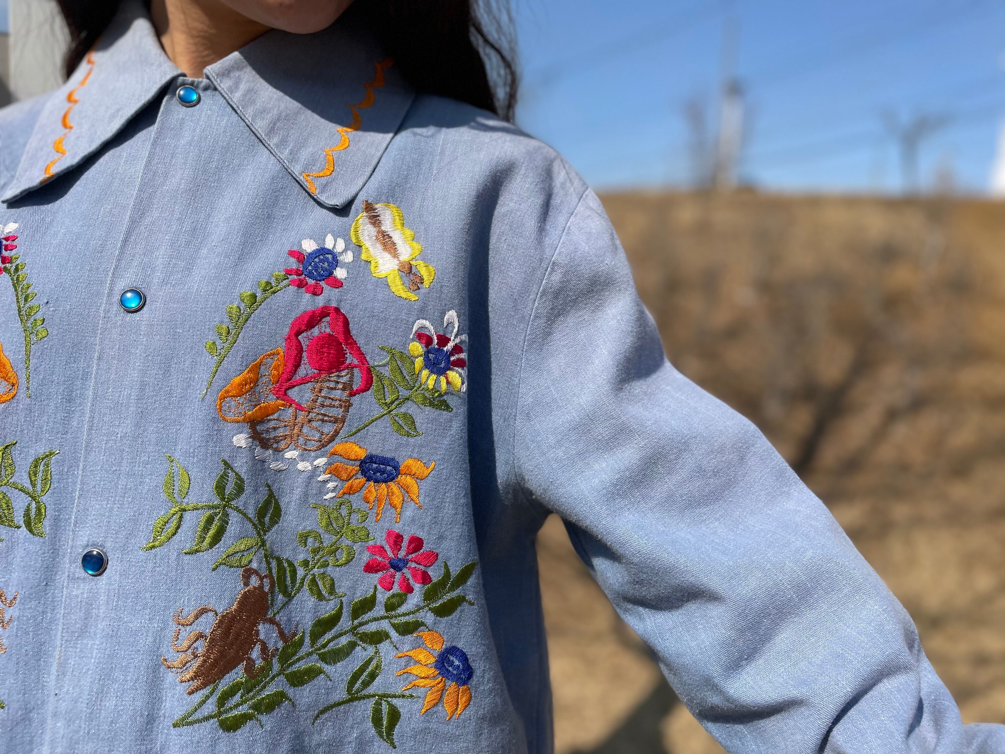 鮮やかな配色のステッチでハッピーな気分になれるデニムシャツ